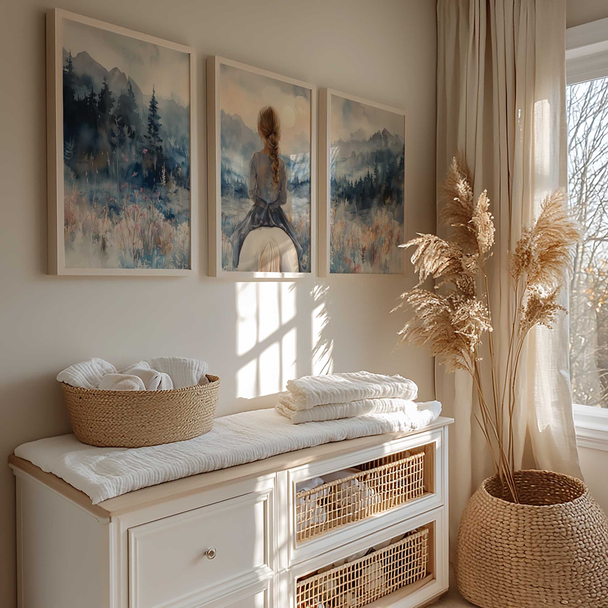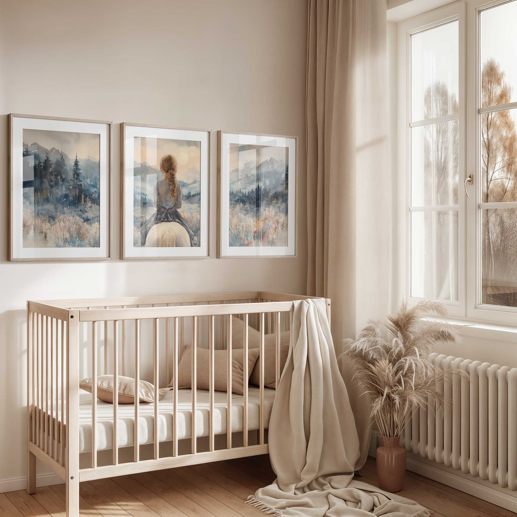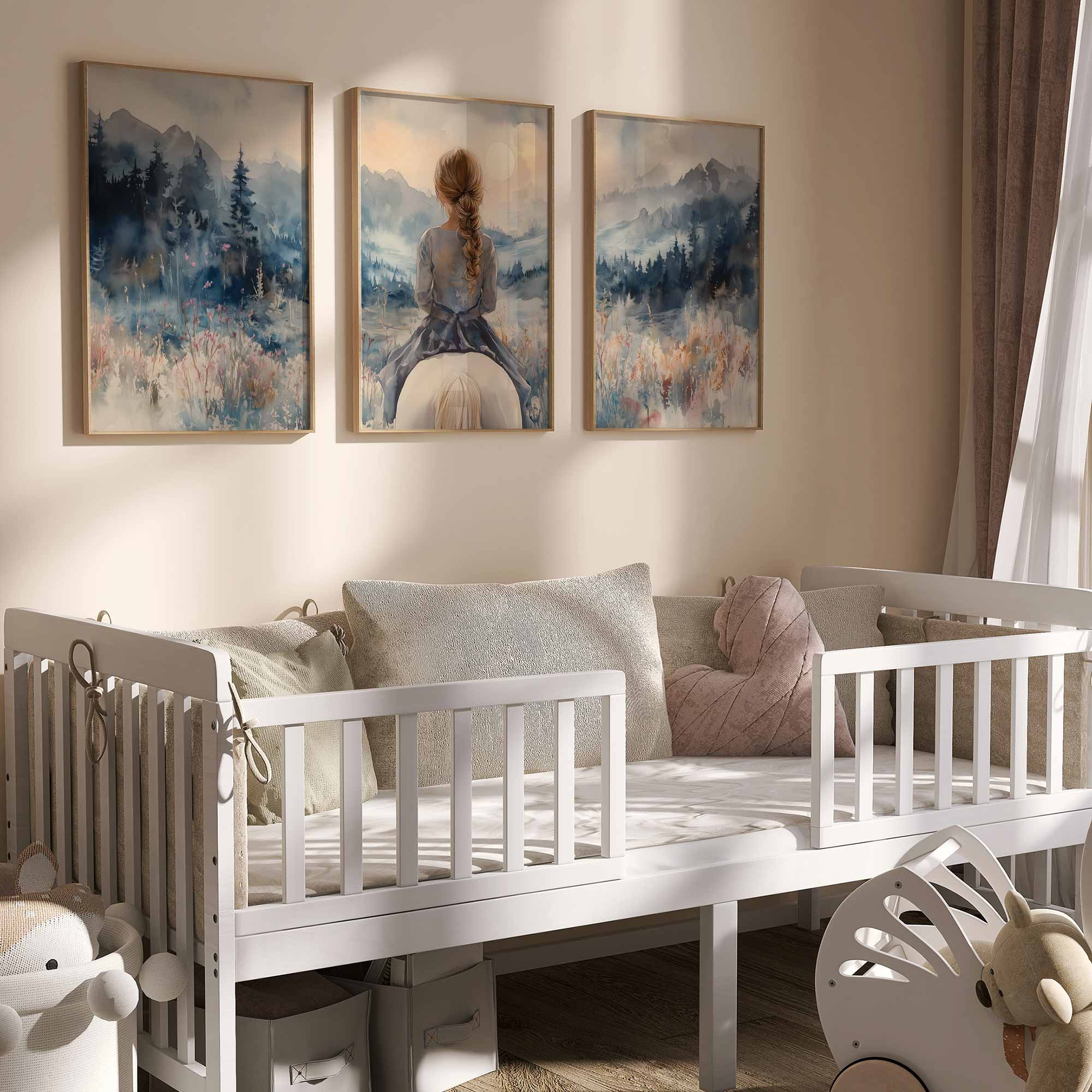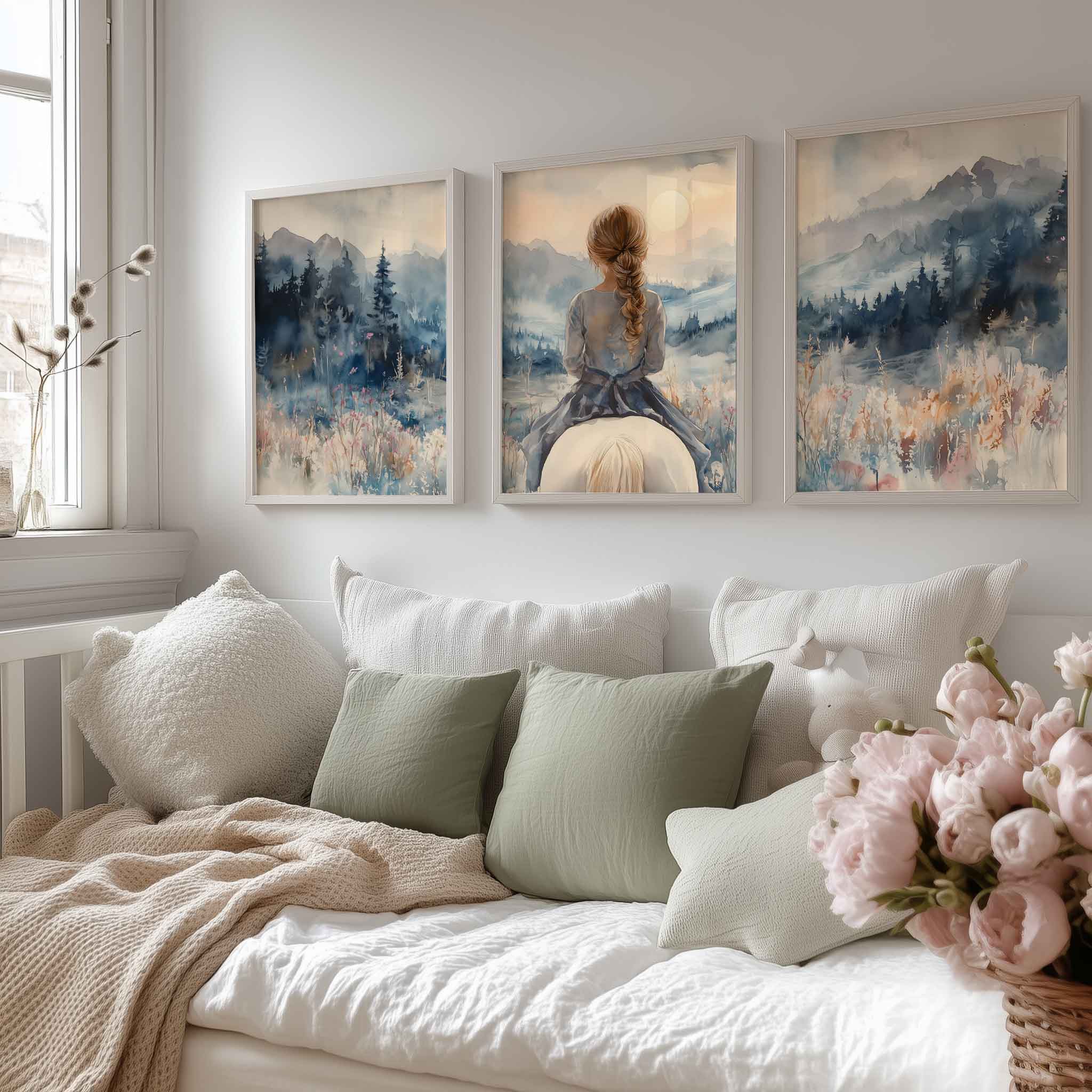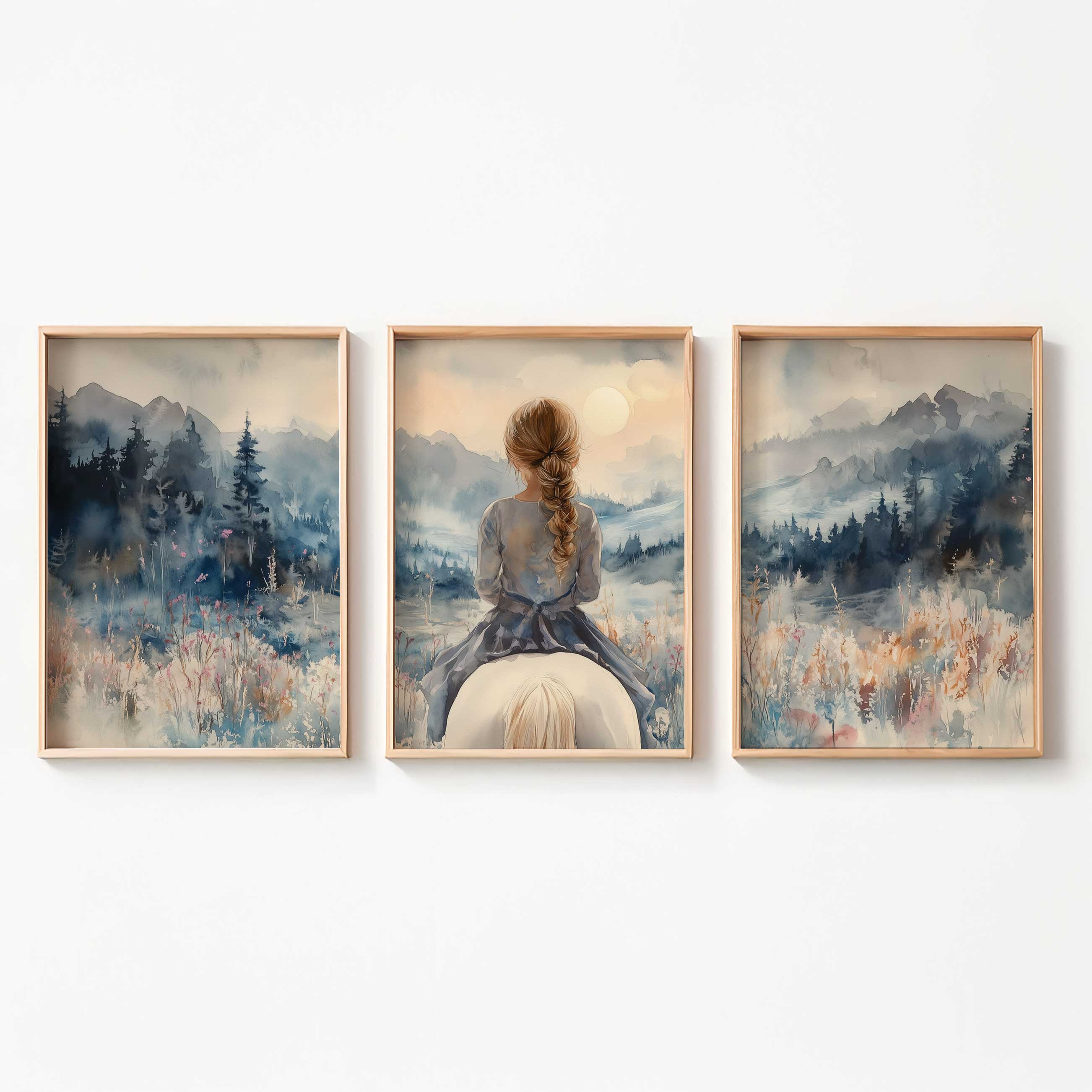 Speels Meisje op Paard in Serene Bergweide