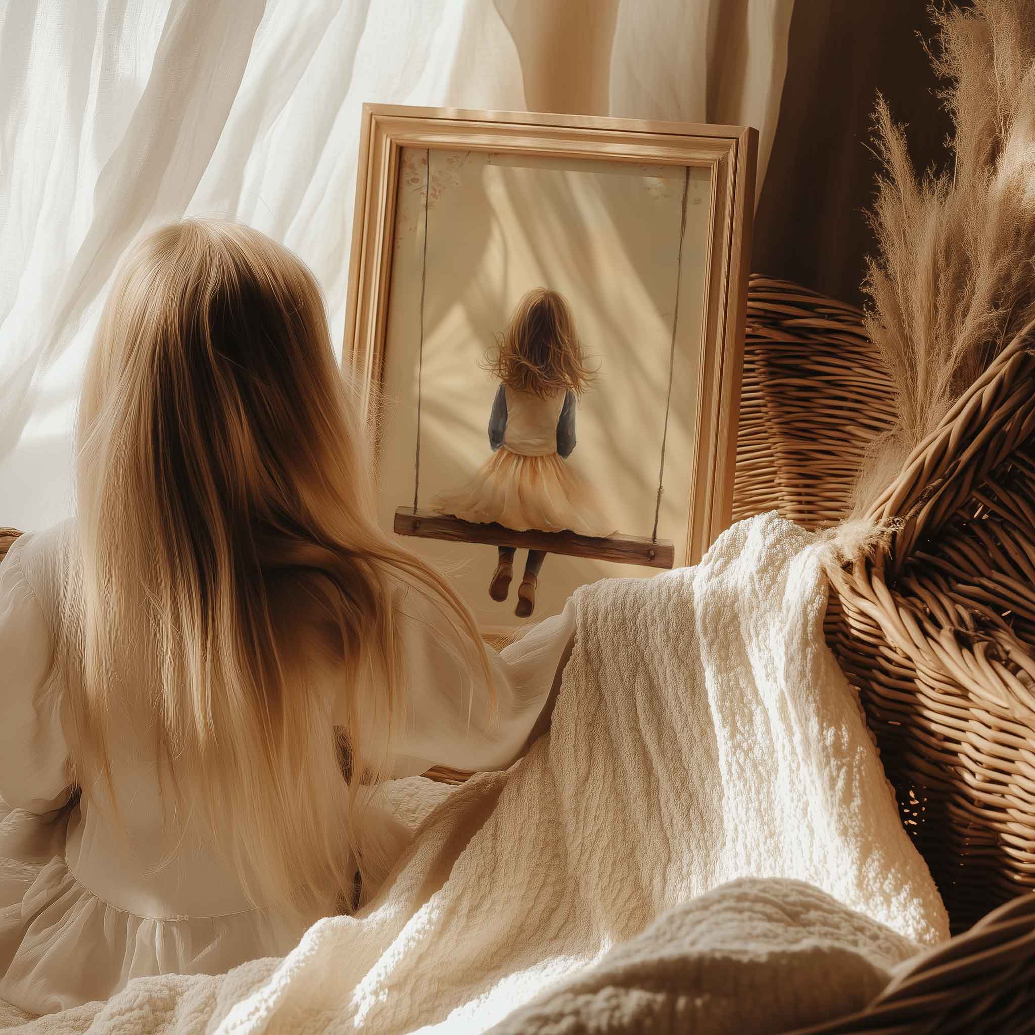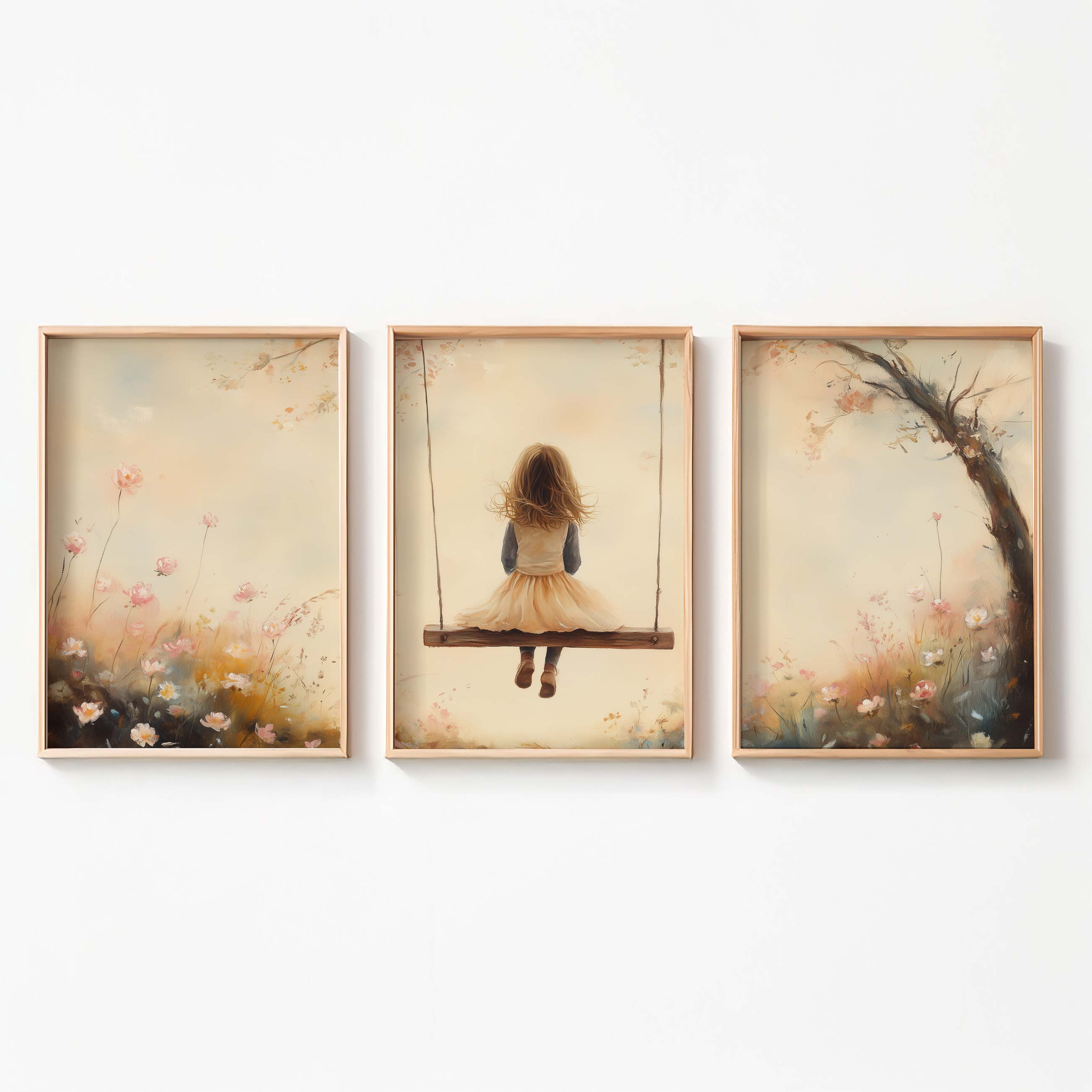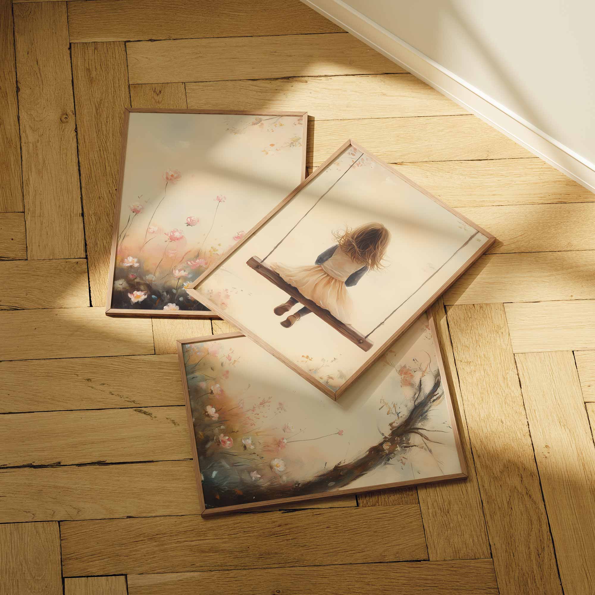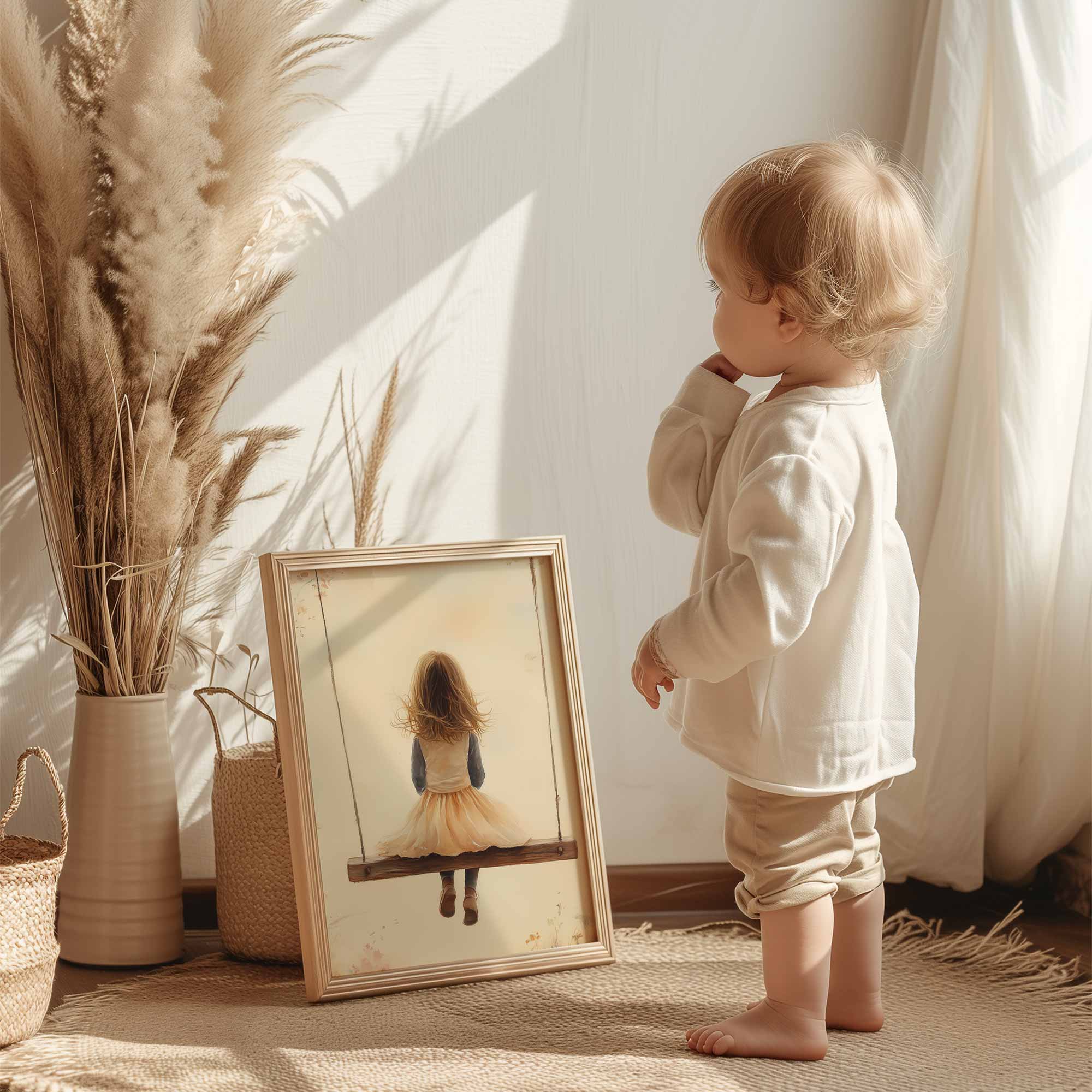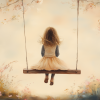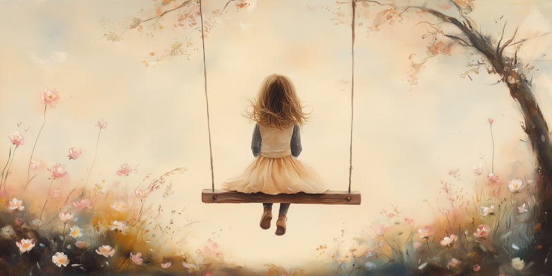 Speels Meisje op Schommel tussen Bloemen