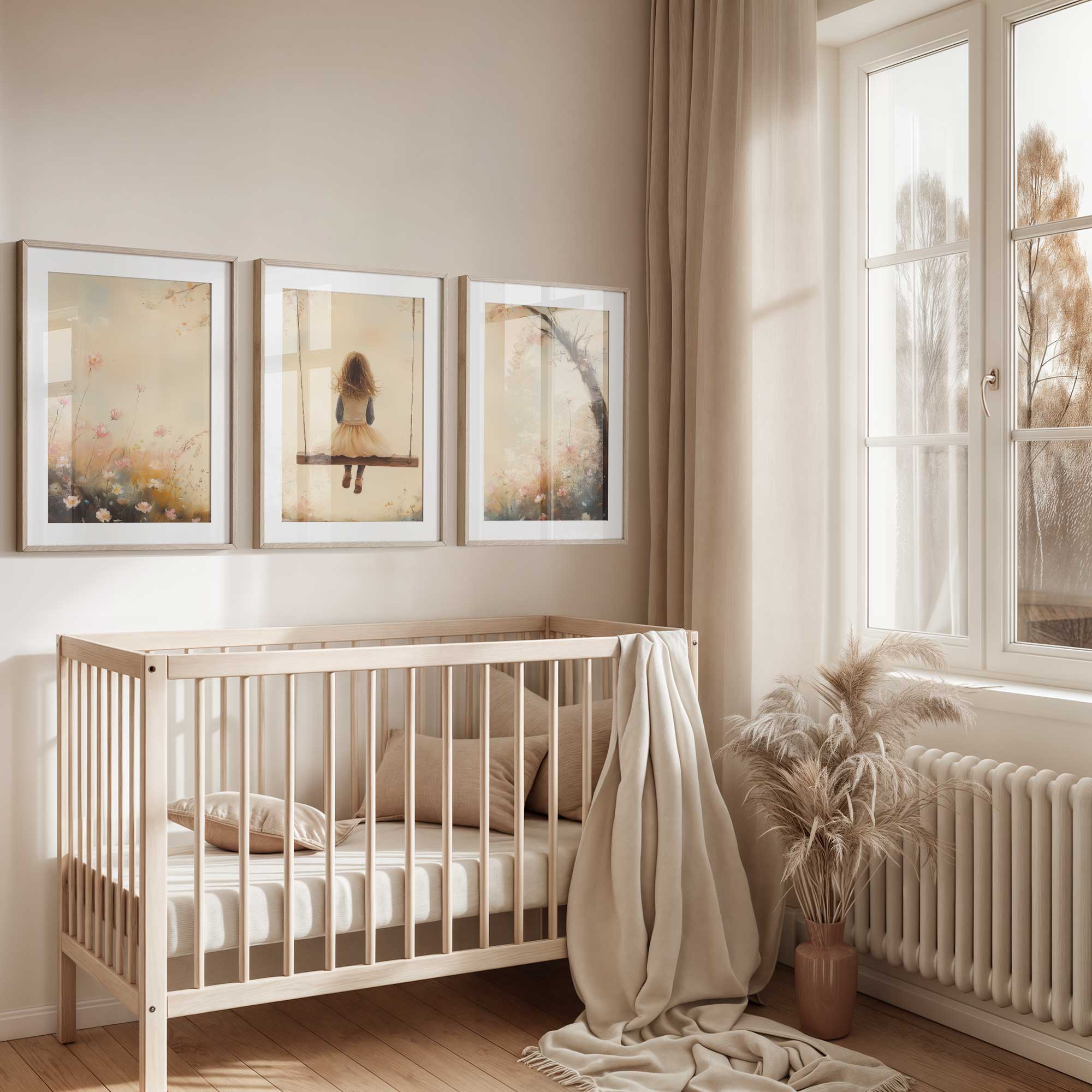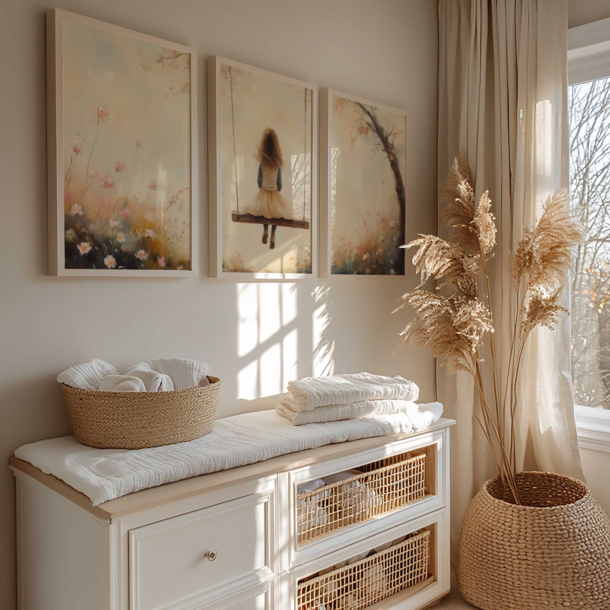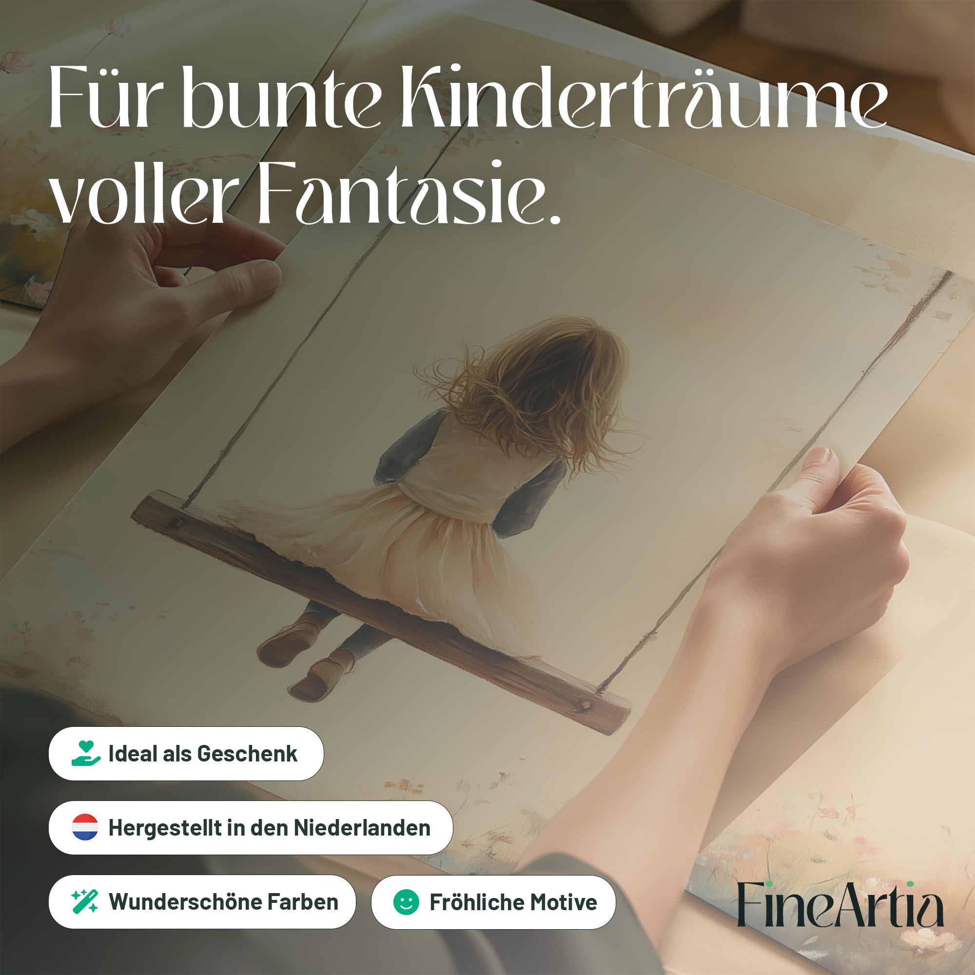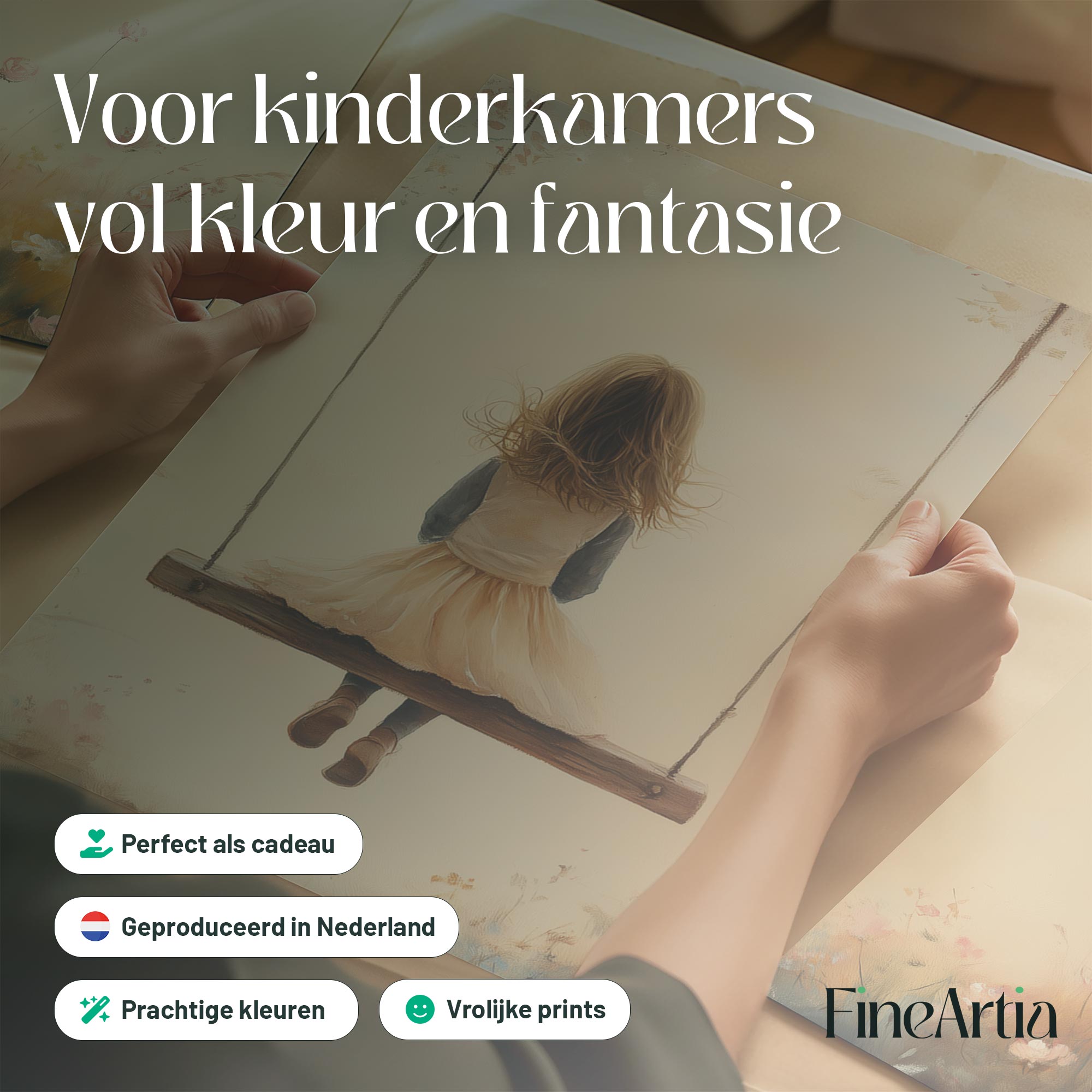 Speels Meisje op Schommel tussen Bloemen
