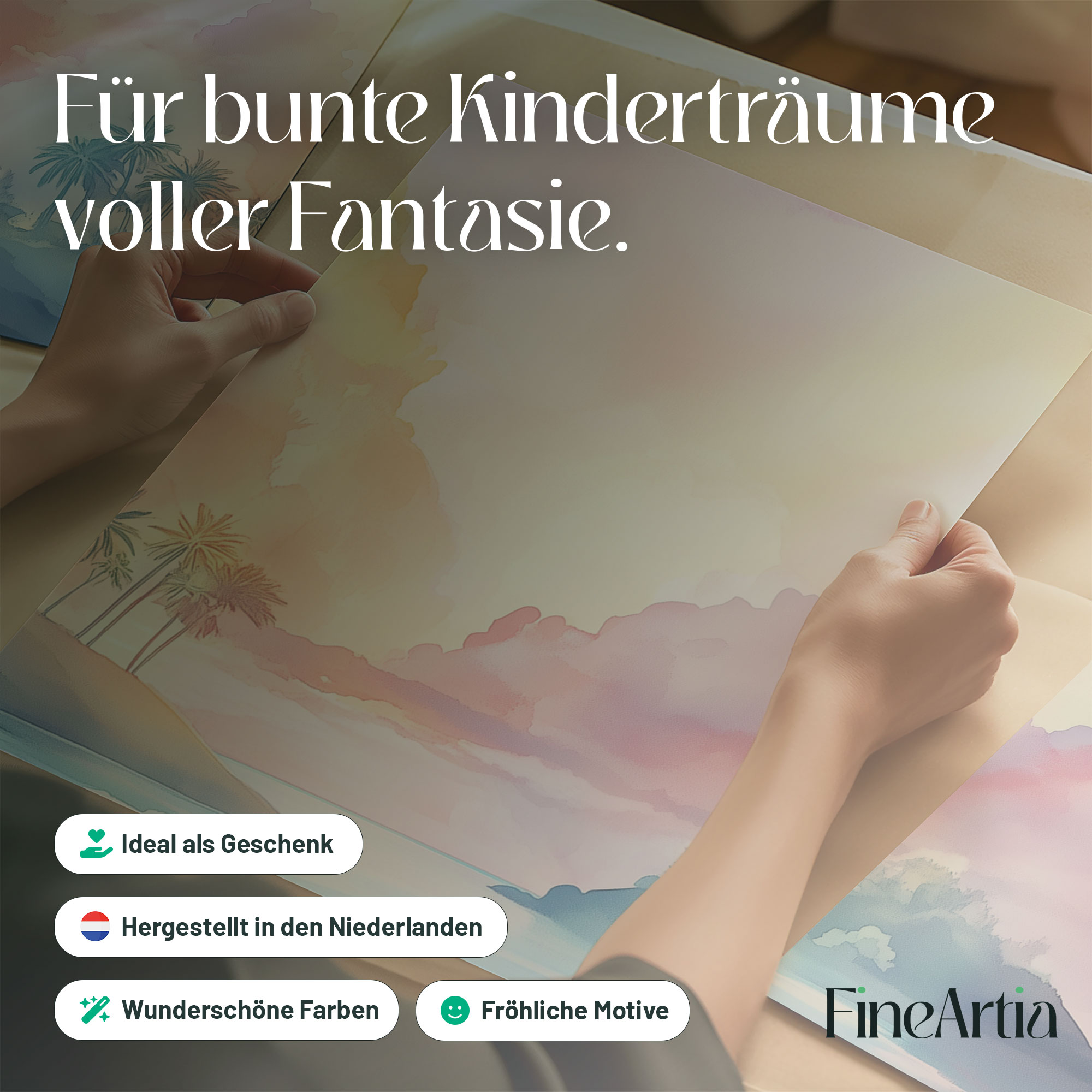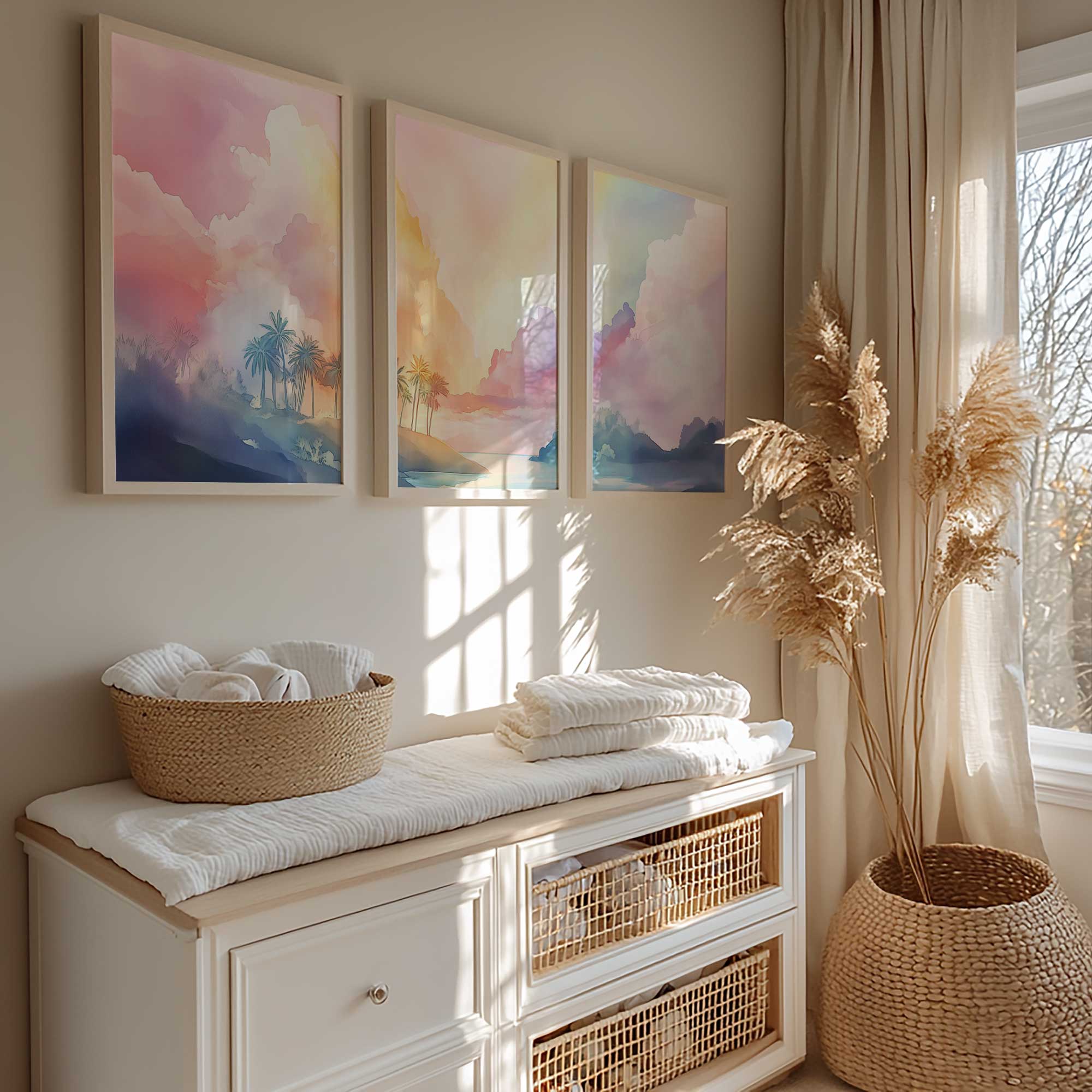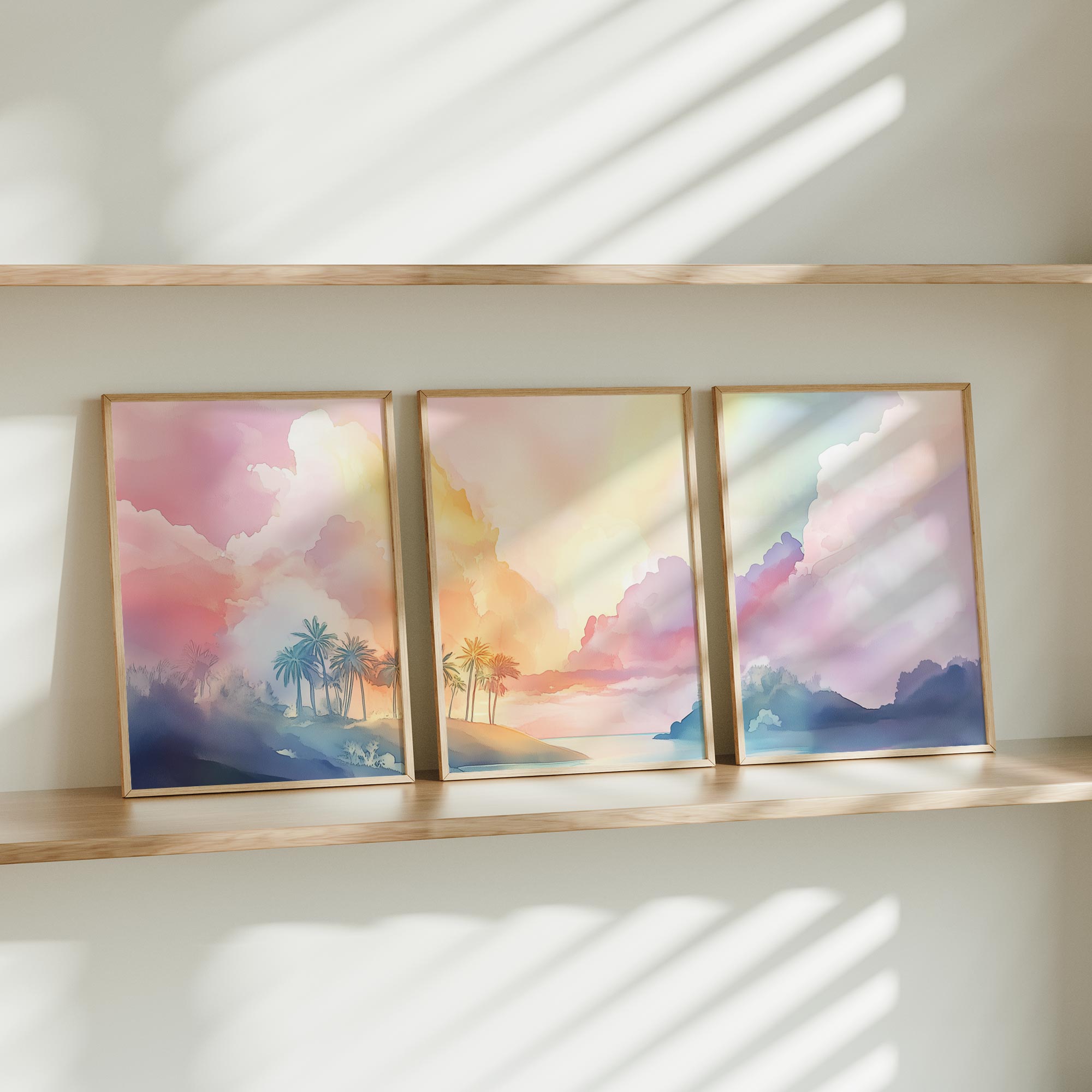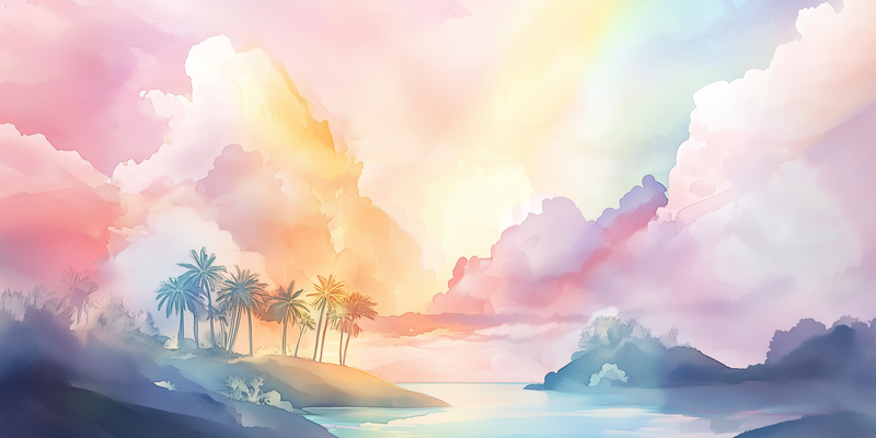 Speels Tropisch Droomparadijs in Roze, Blauw en Geel