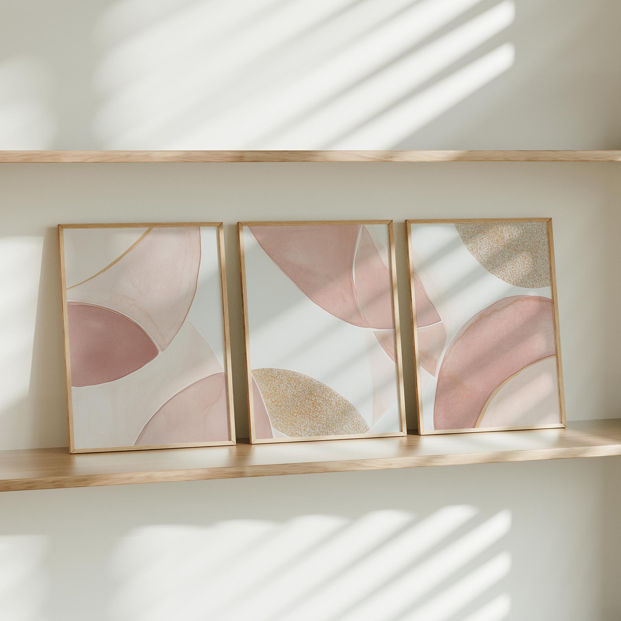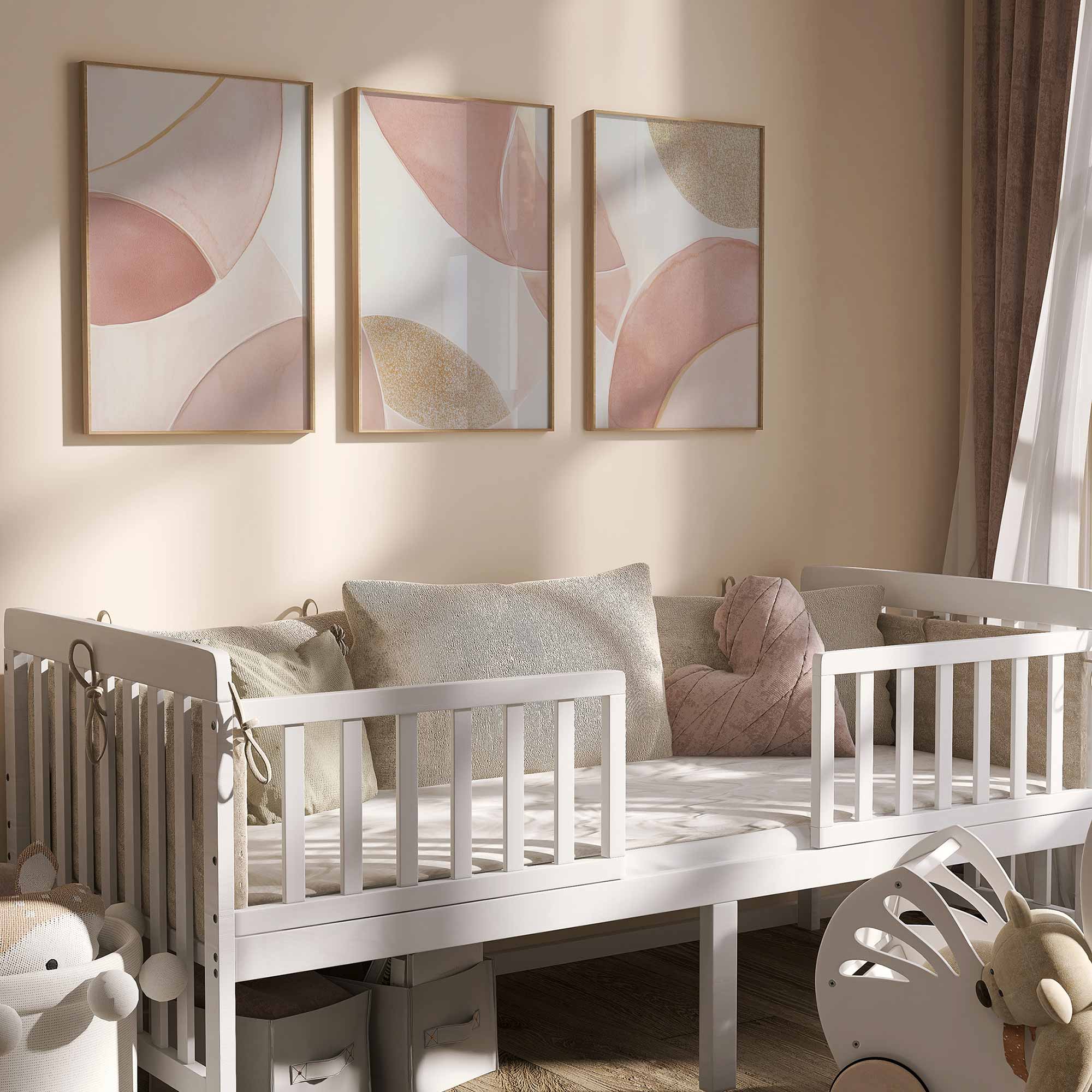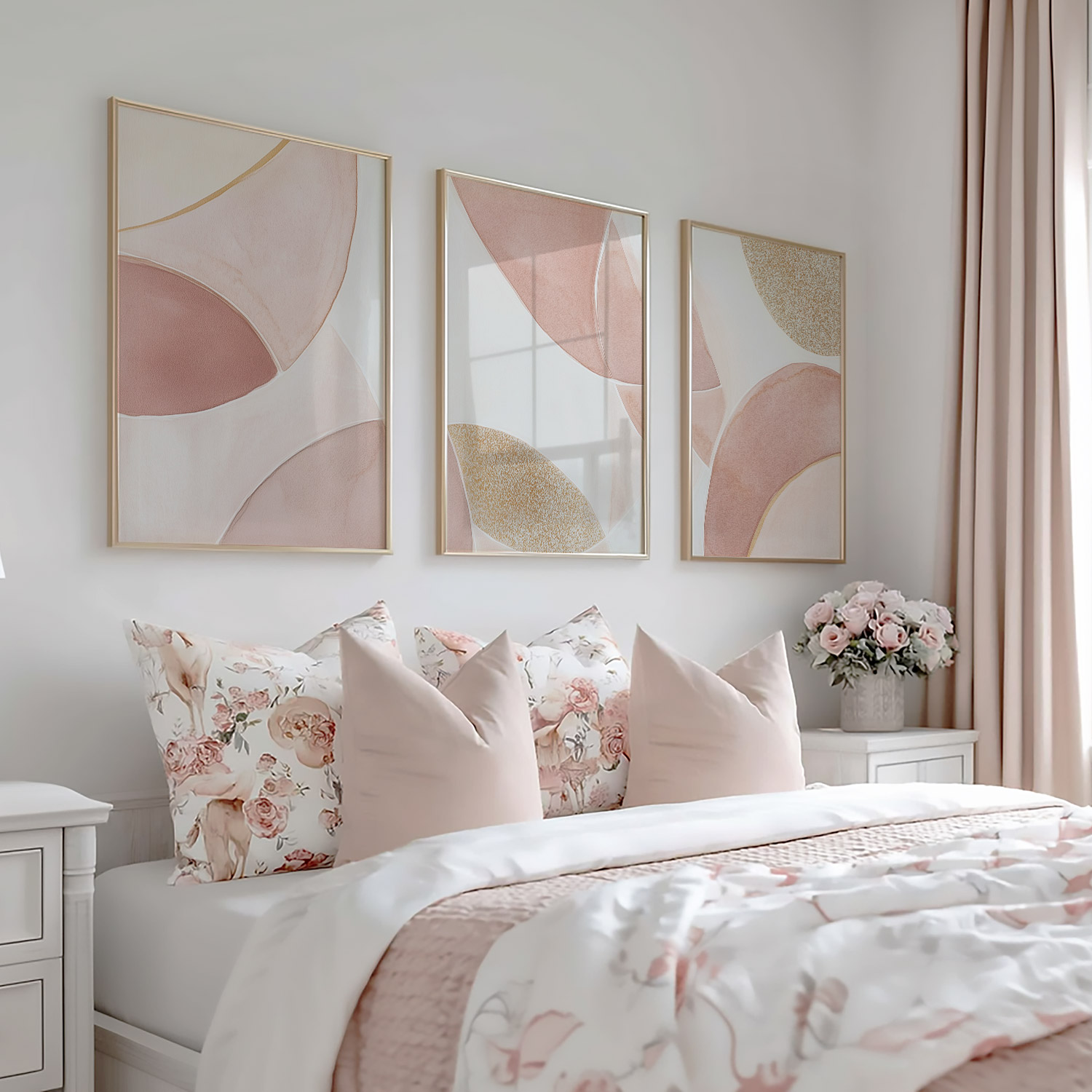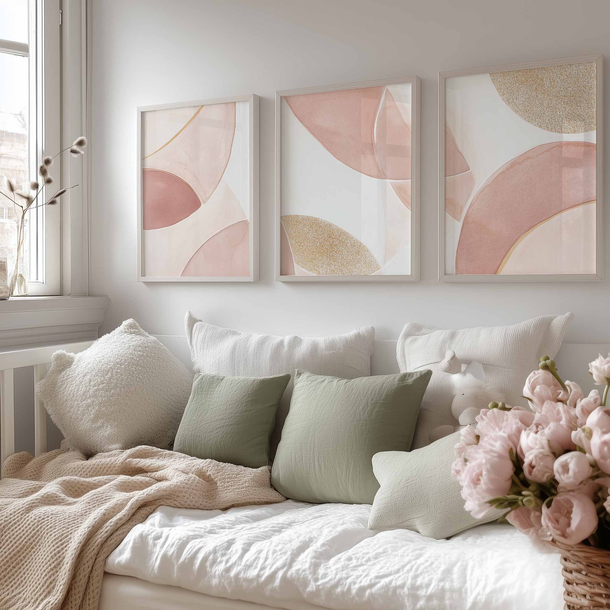 Speelse Abstracte Wanddecoratie in Roze, Wit en Goud
