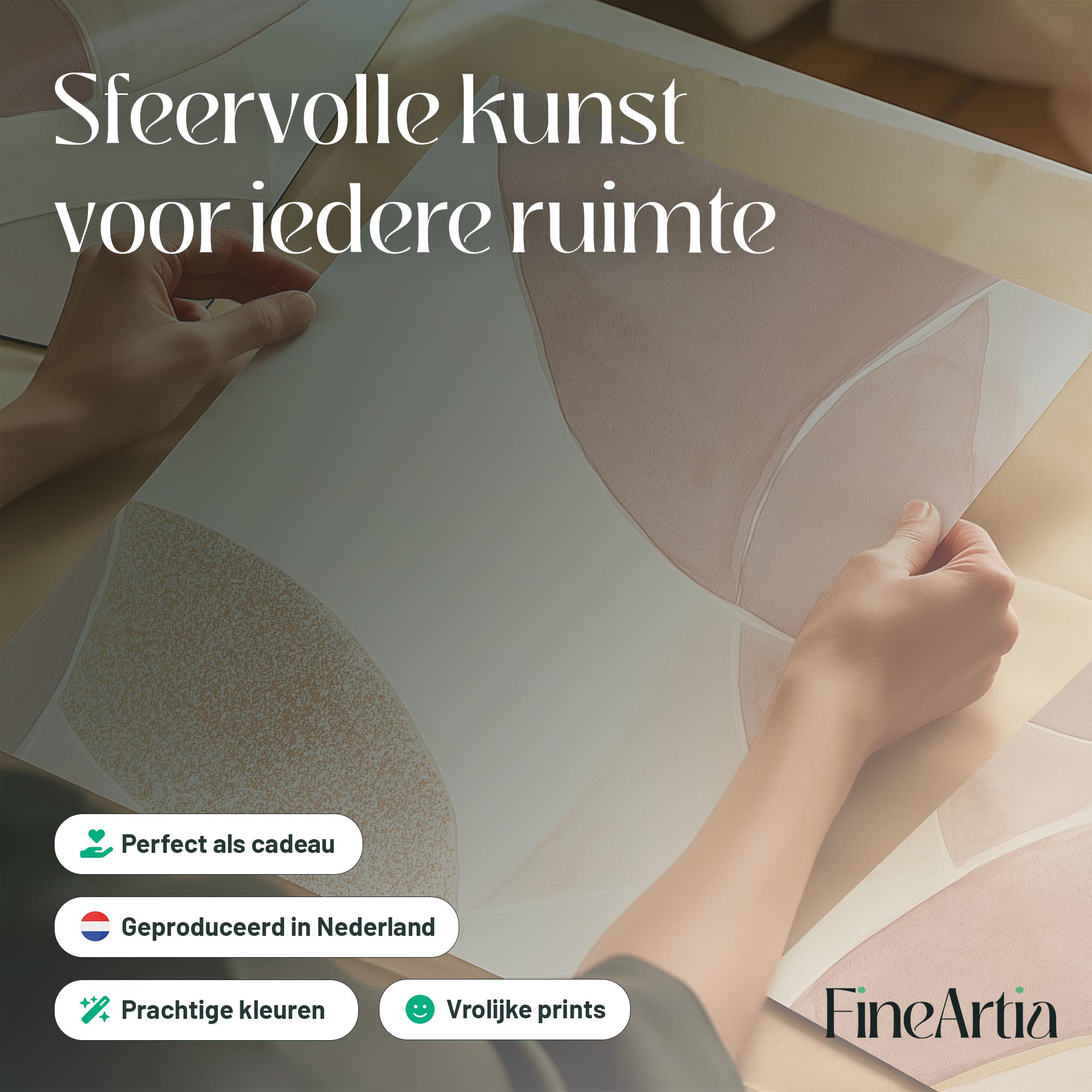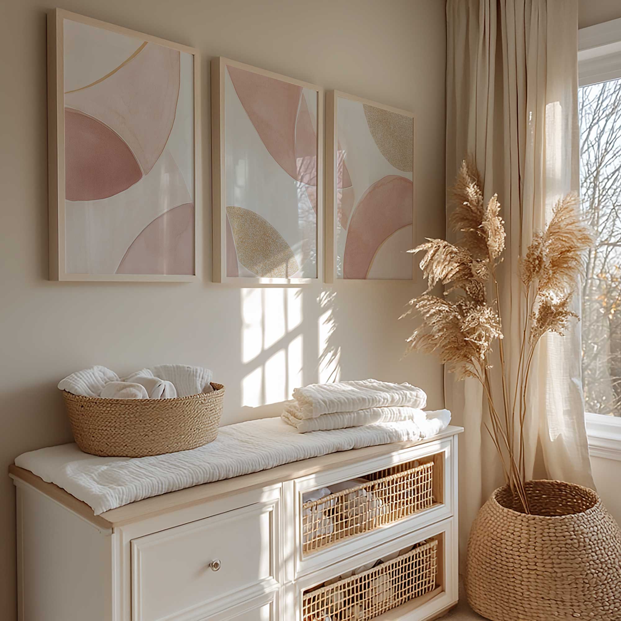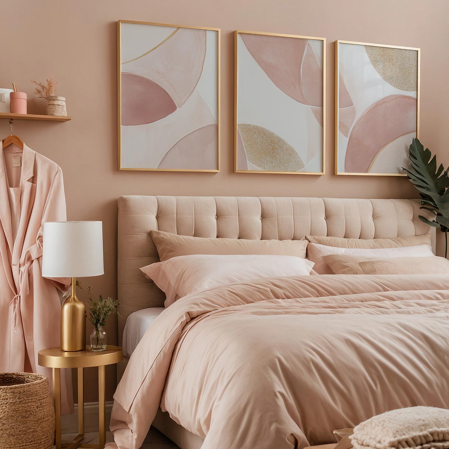 Speelse Abstracte Wanddecoratie in Roze, Wit en Goud