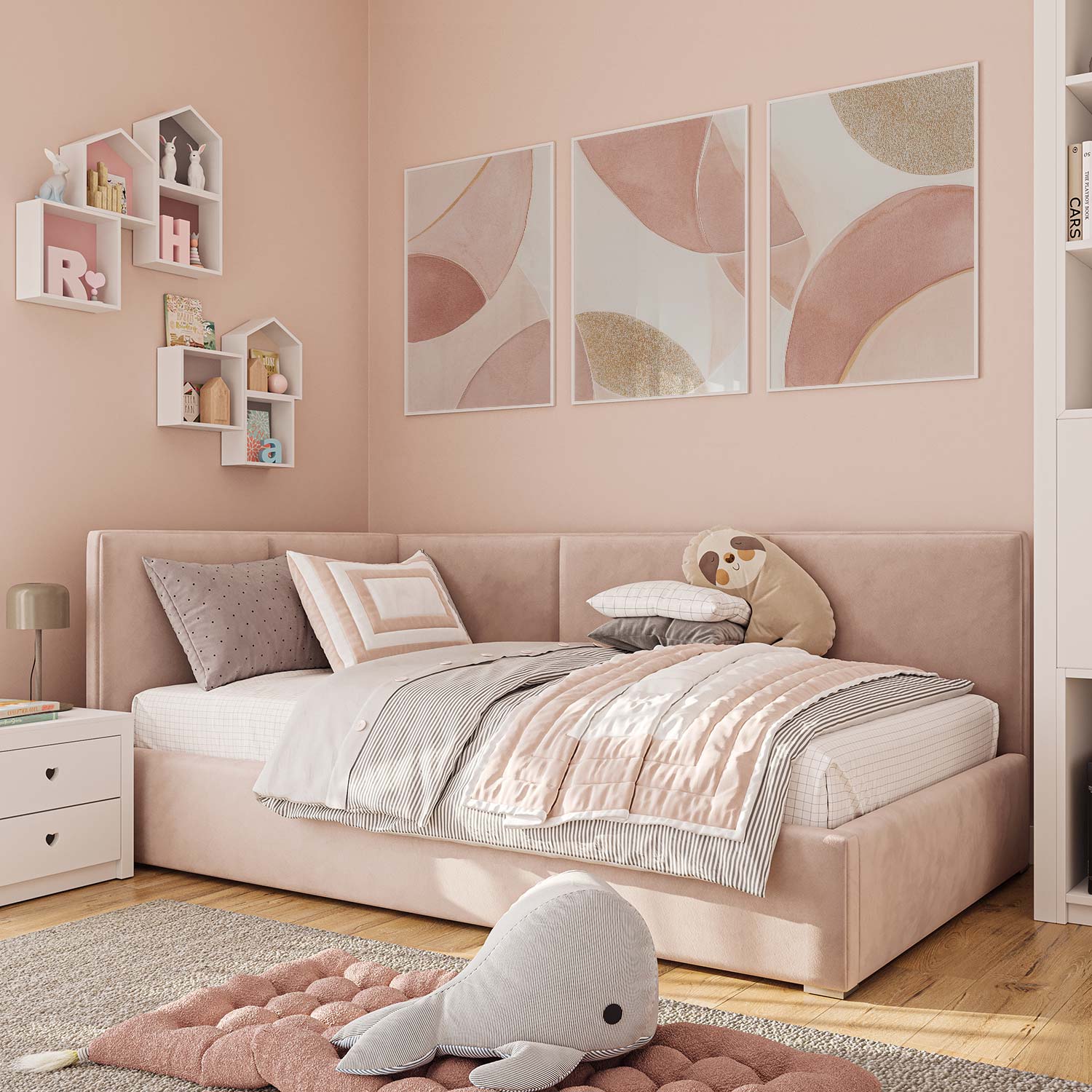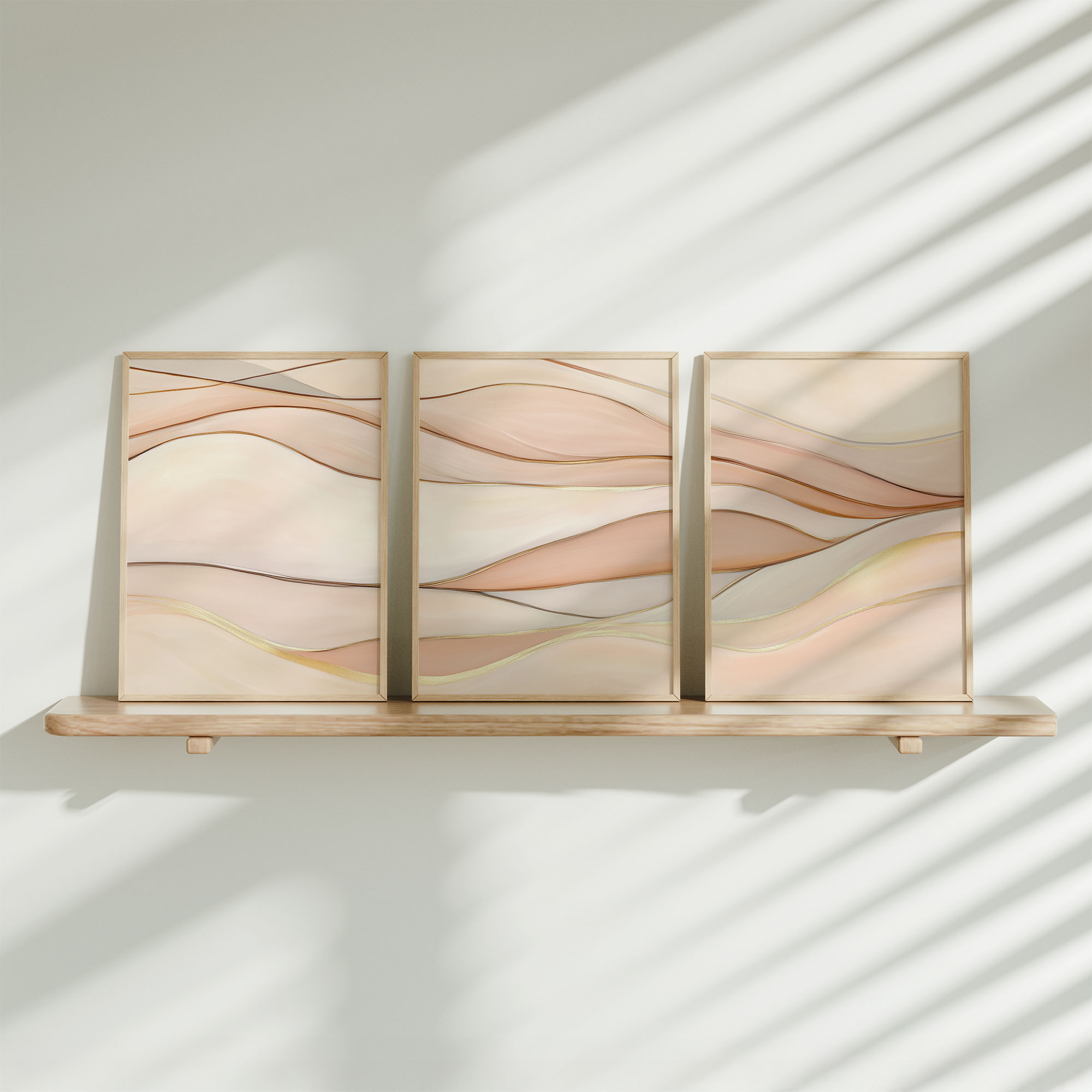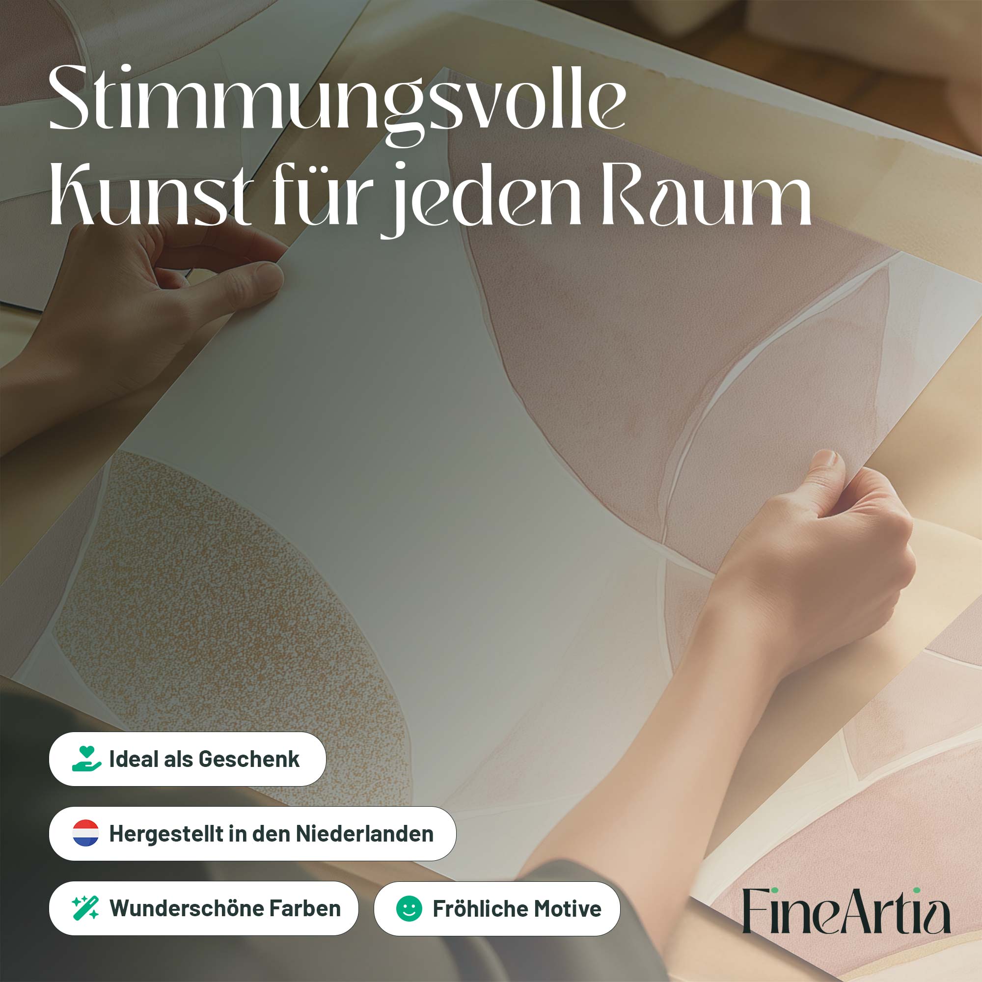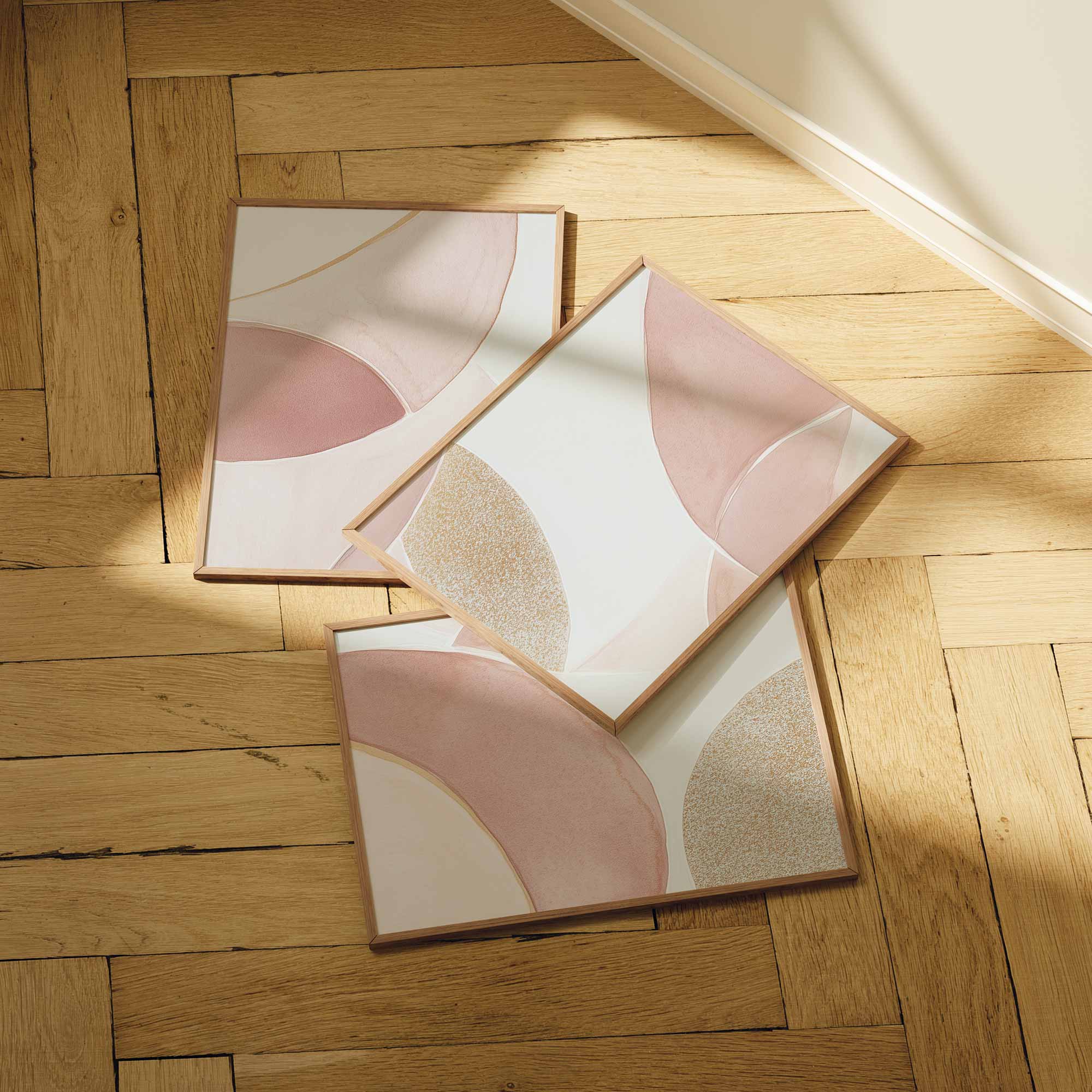 Speelse Abstracte Wanddecoratie in Roze, Wit en Goud