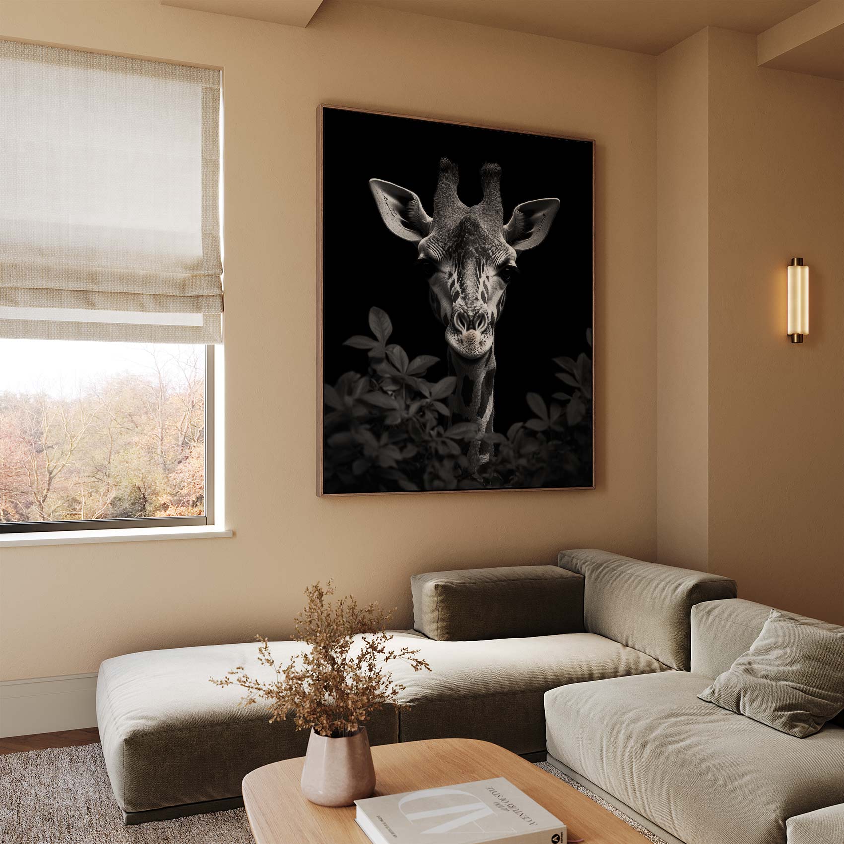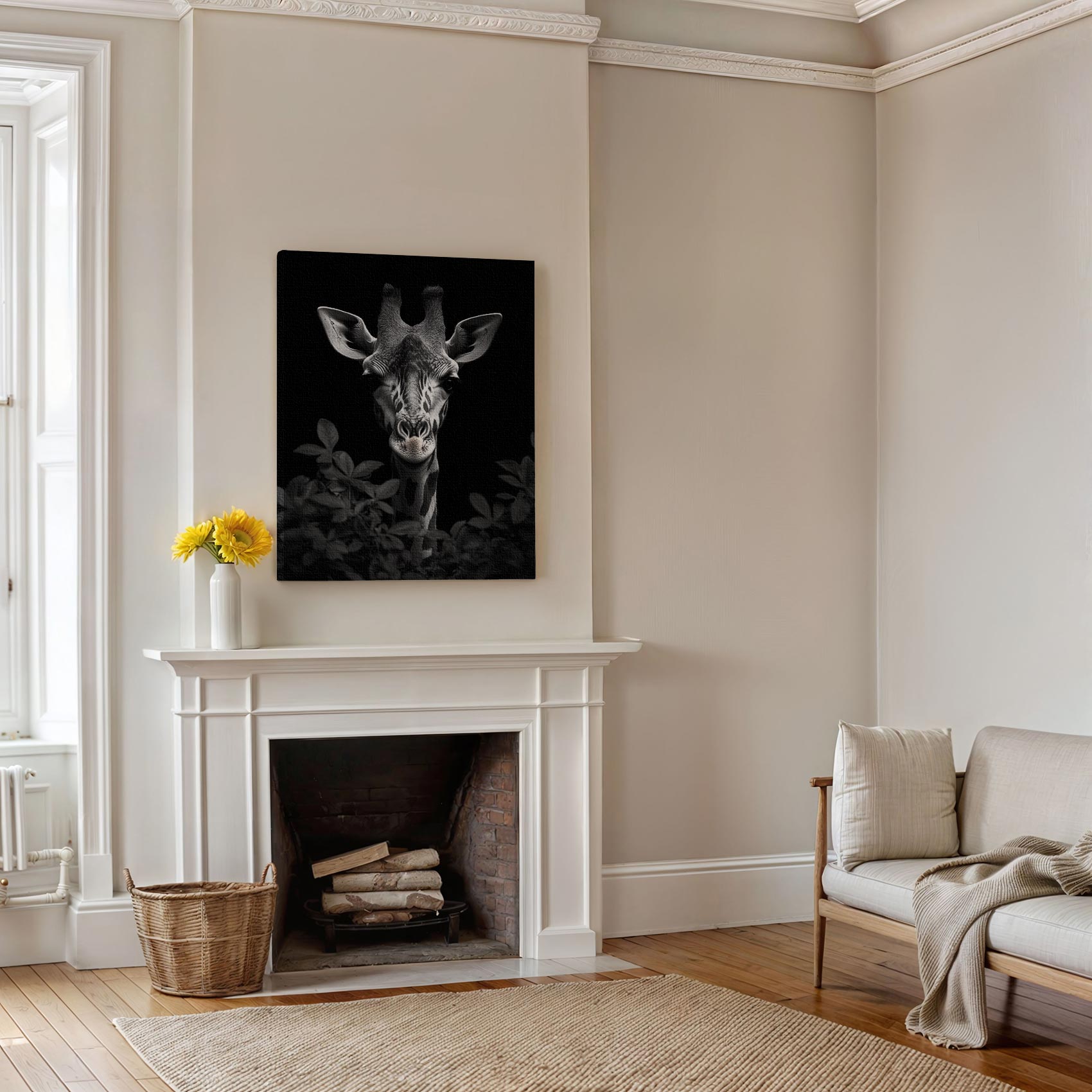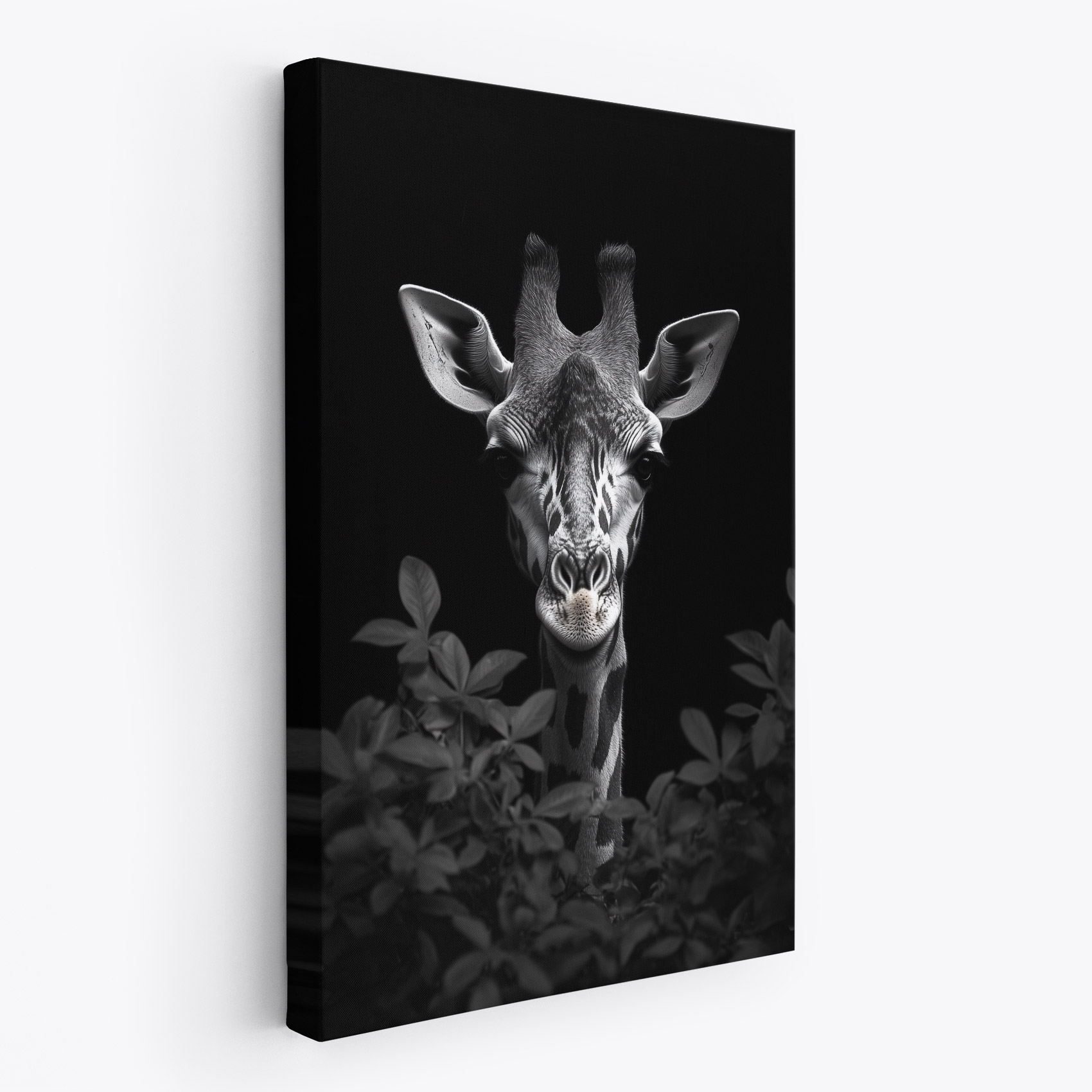 Terug naar collectie Canvas Speelse giraf in zwart-wit