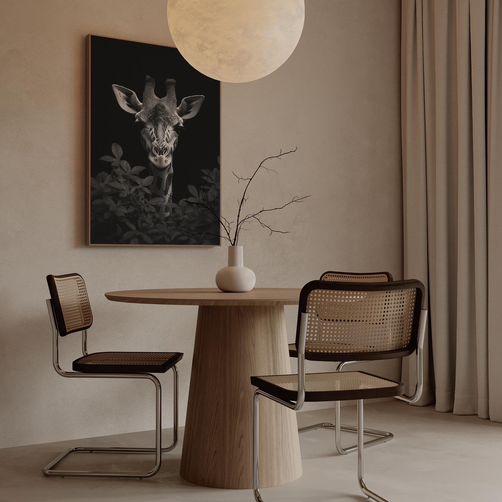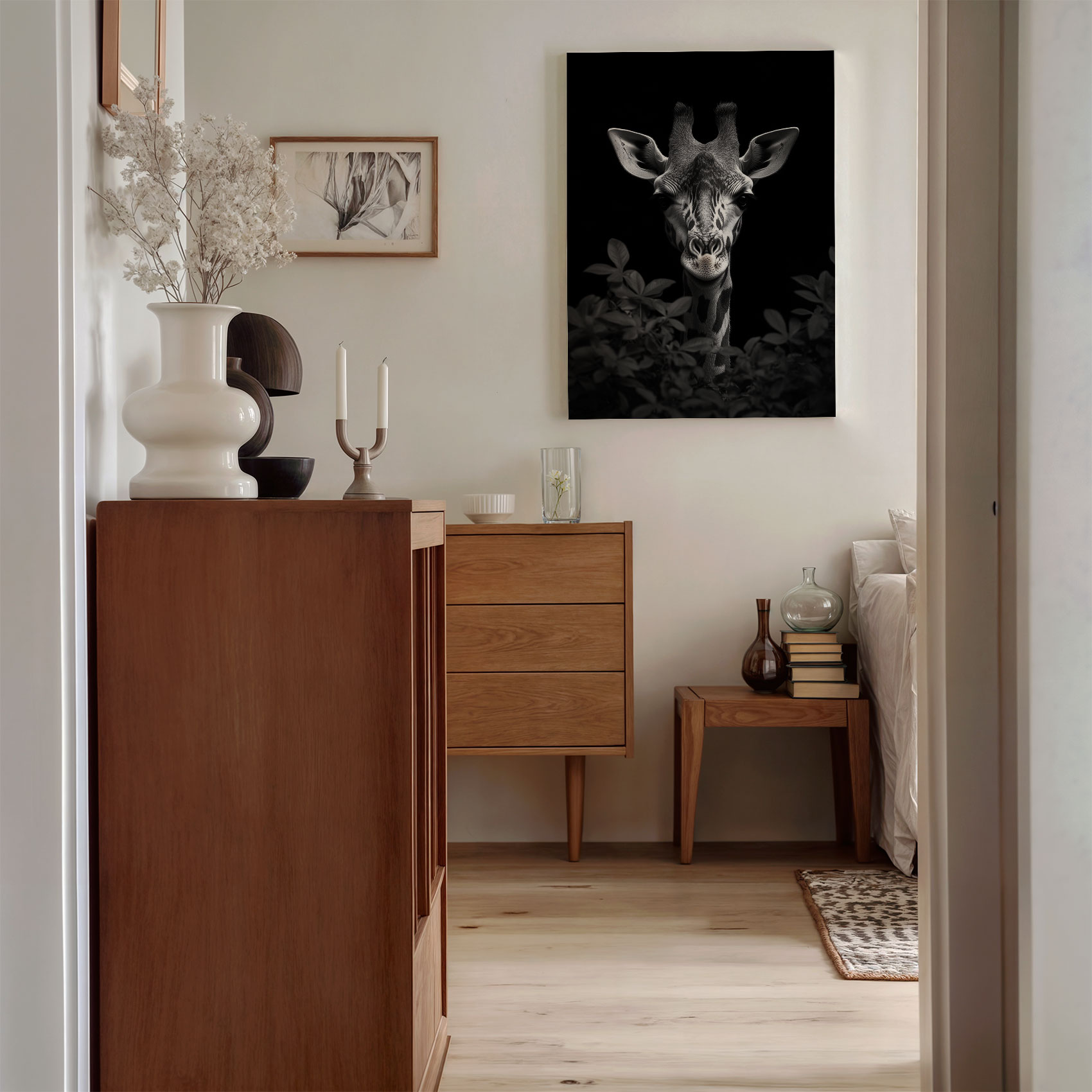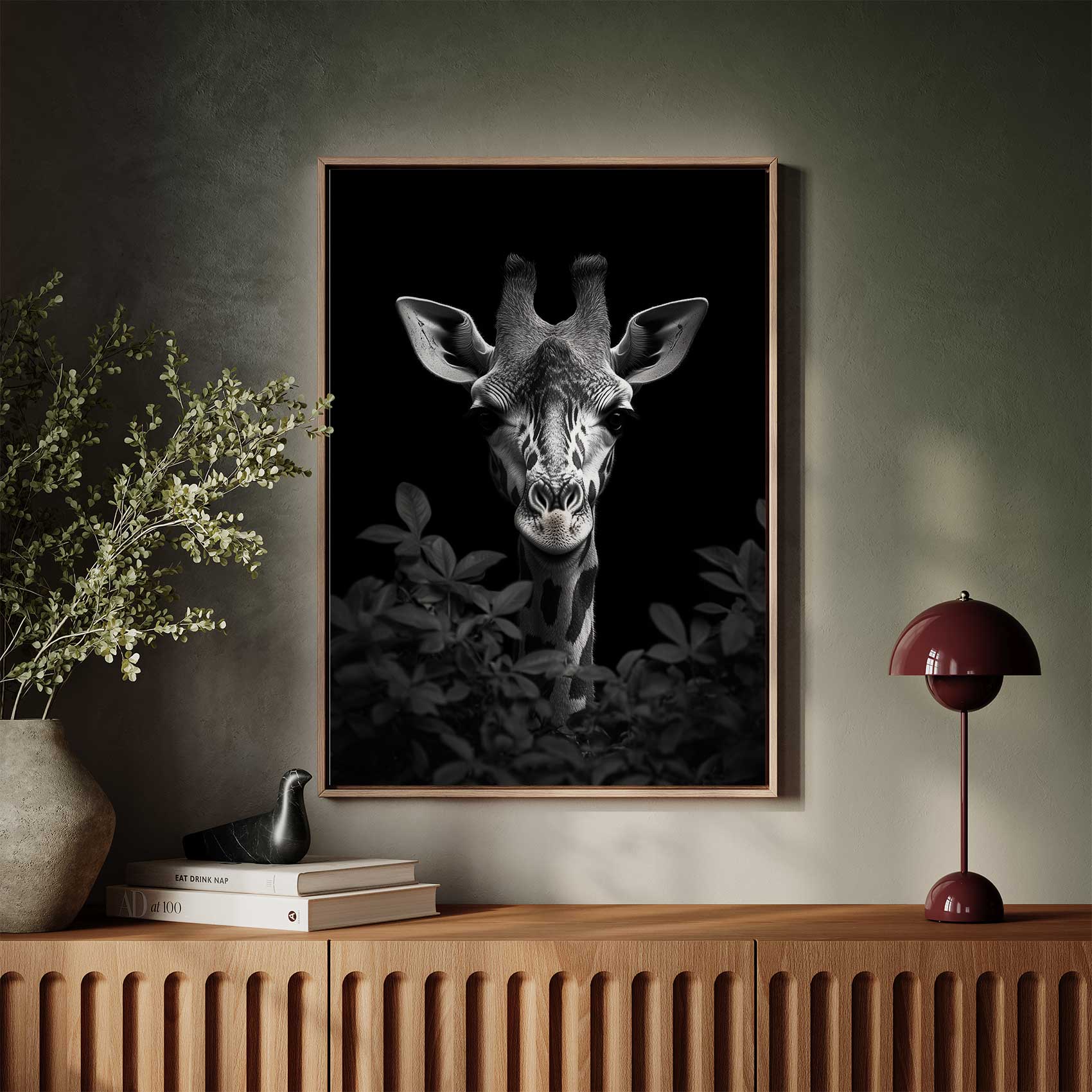 Terug naar collectie Canvas Speelse giraf in zwart-wit