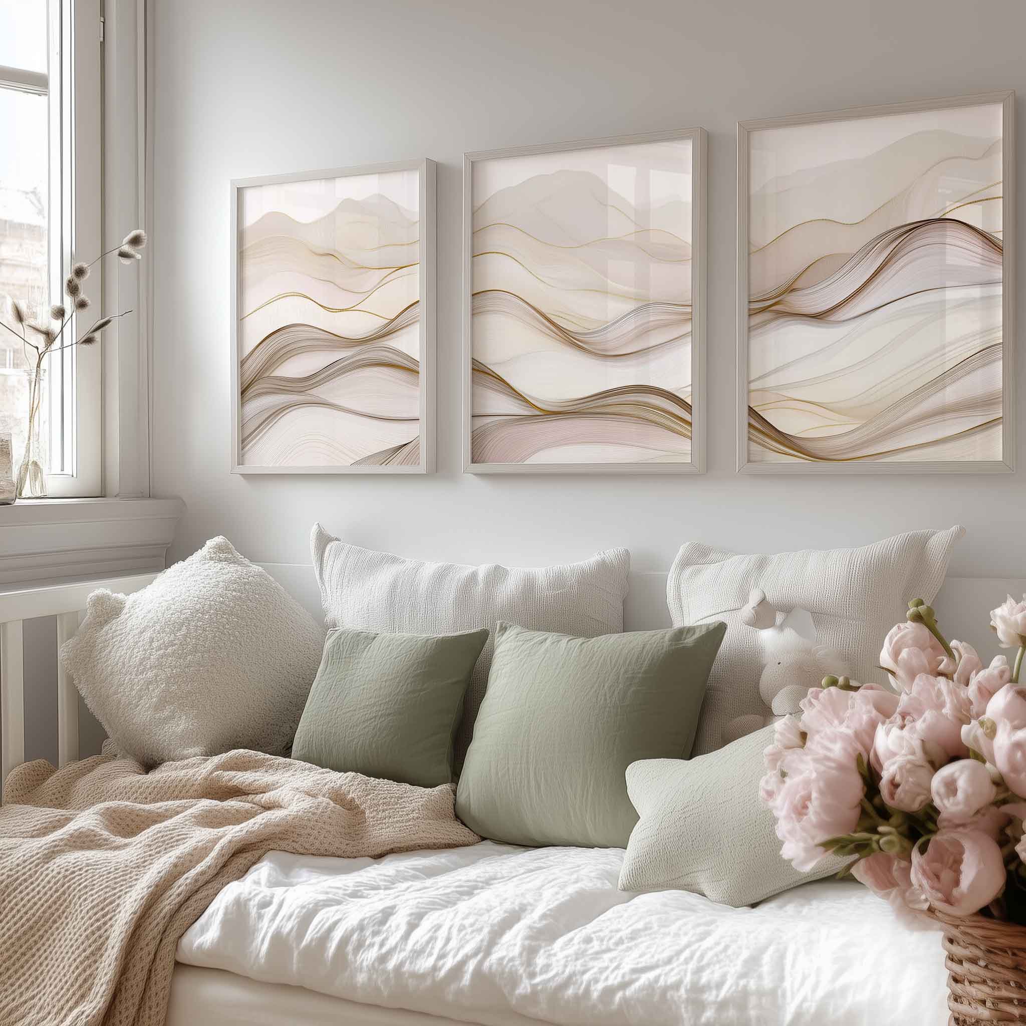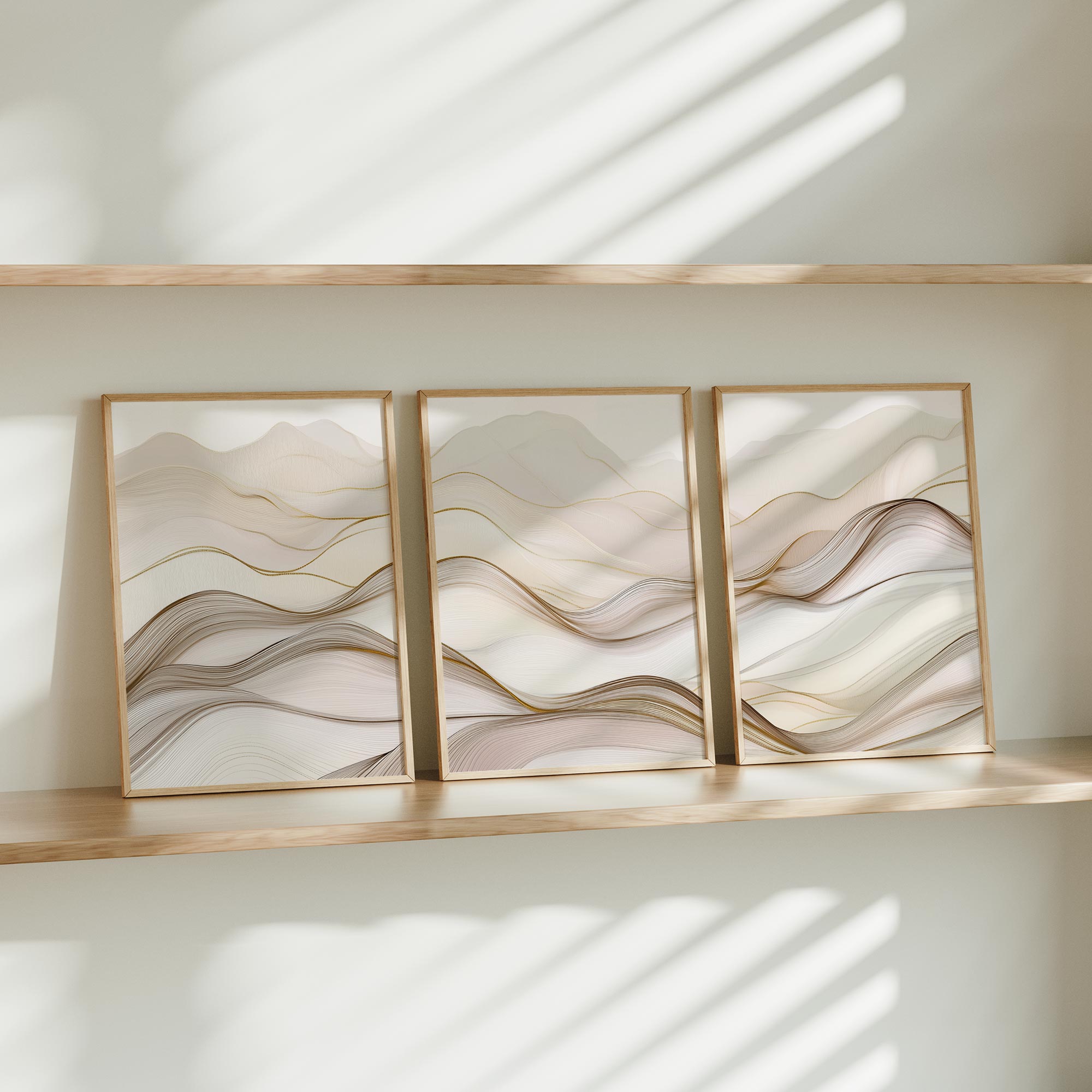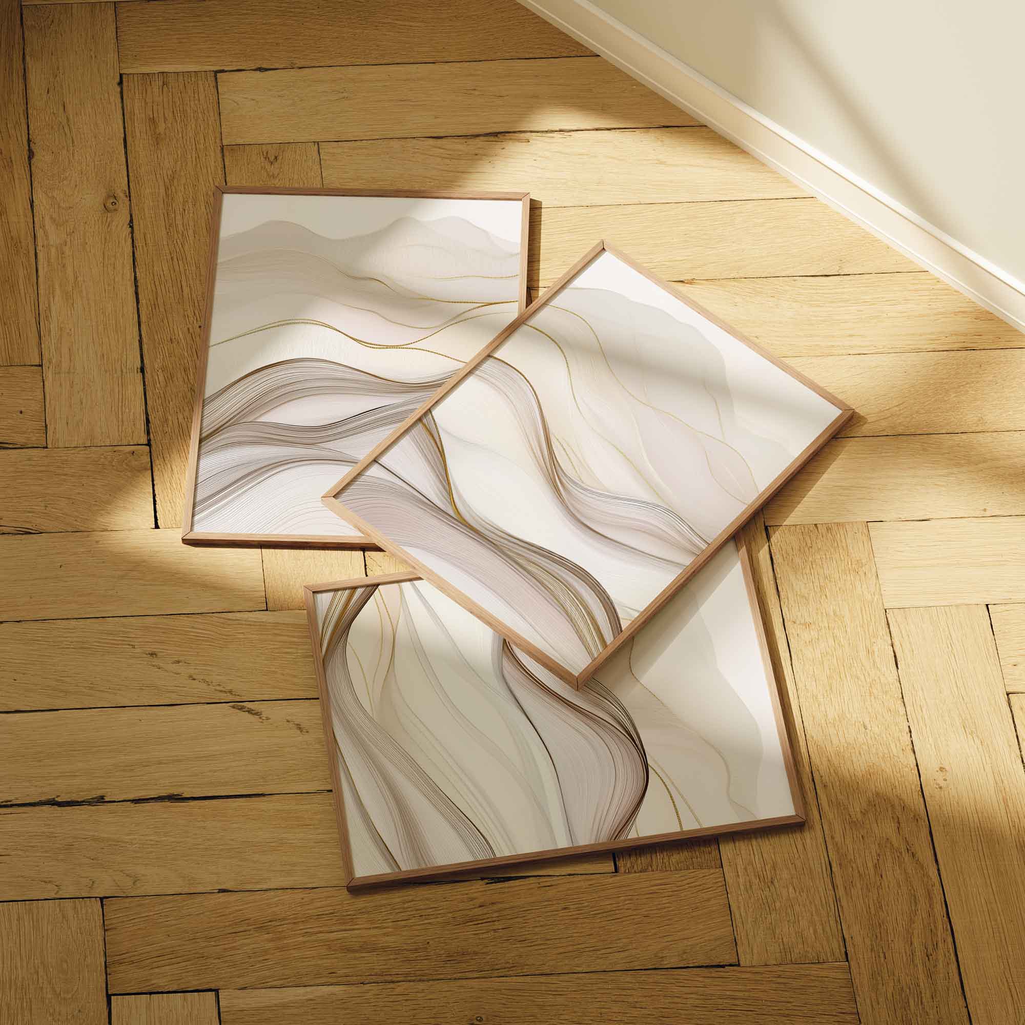 Speelse Golven in Bruin en Wit – Abstracte Wanddecoratie