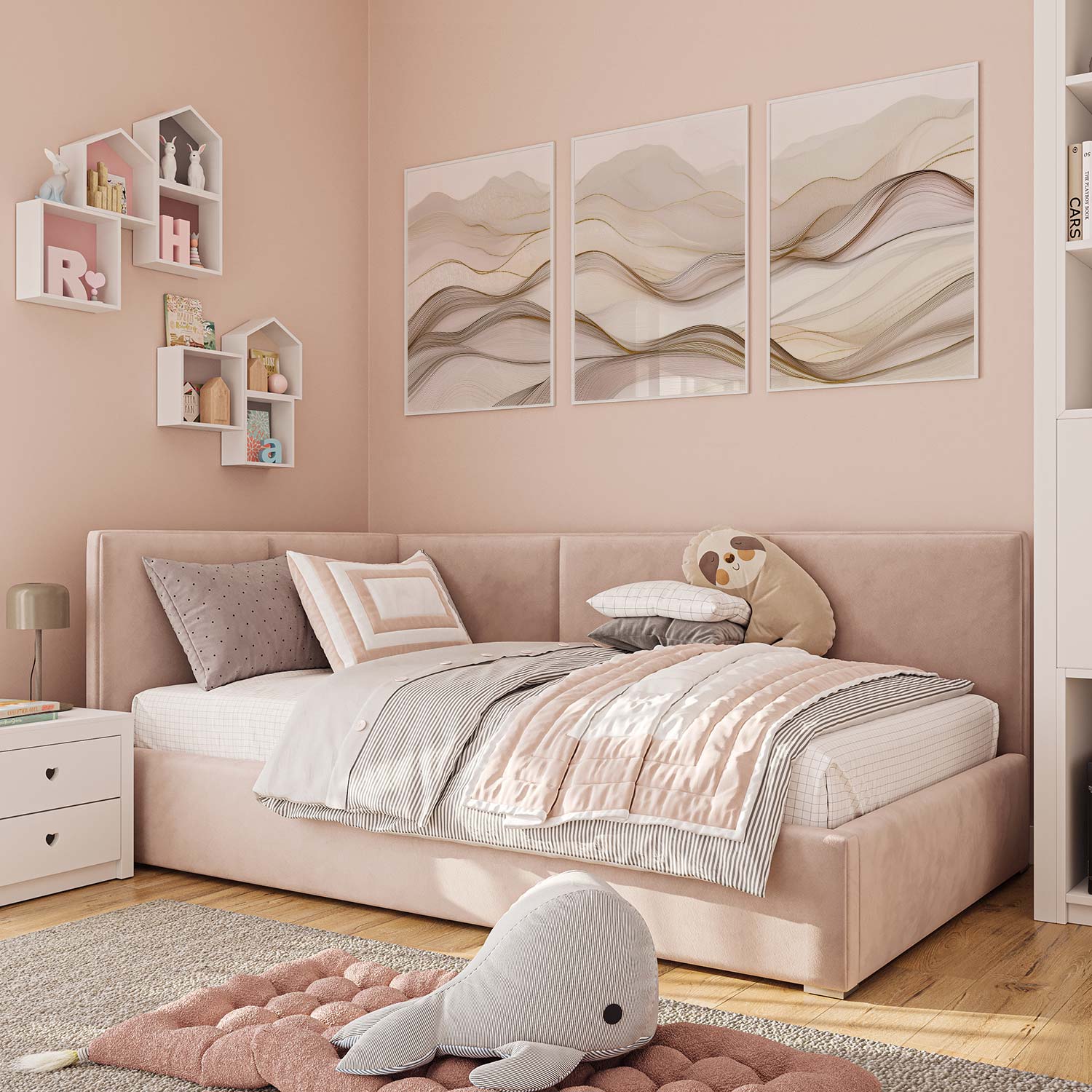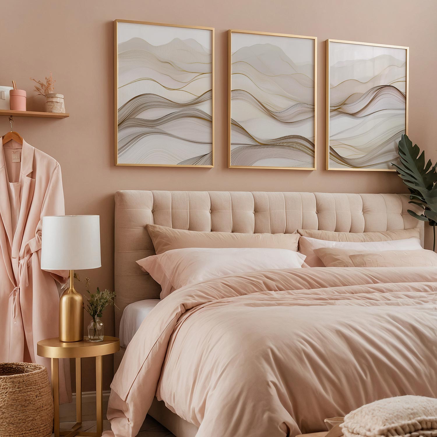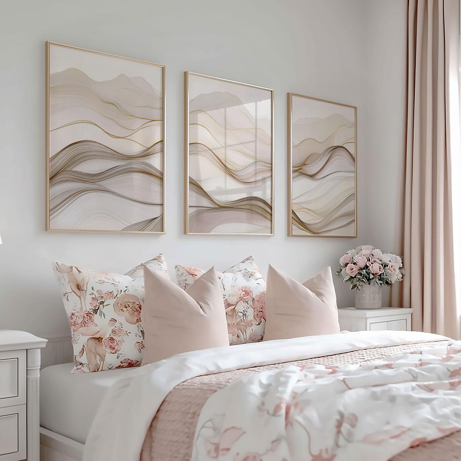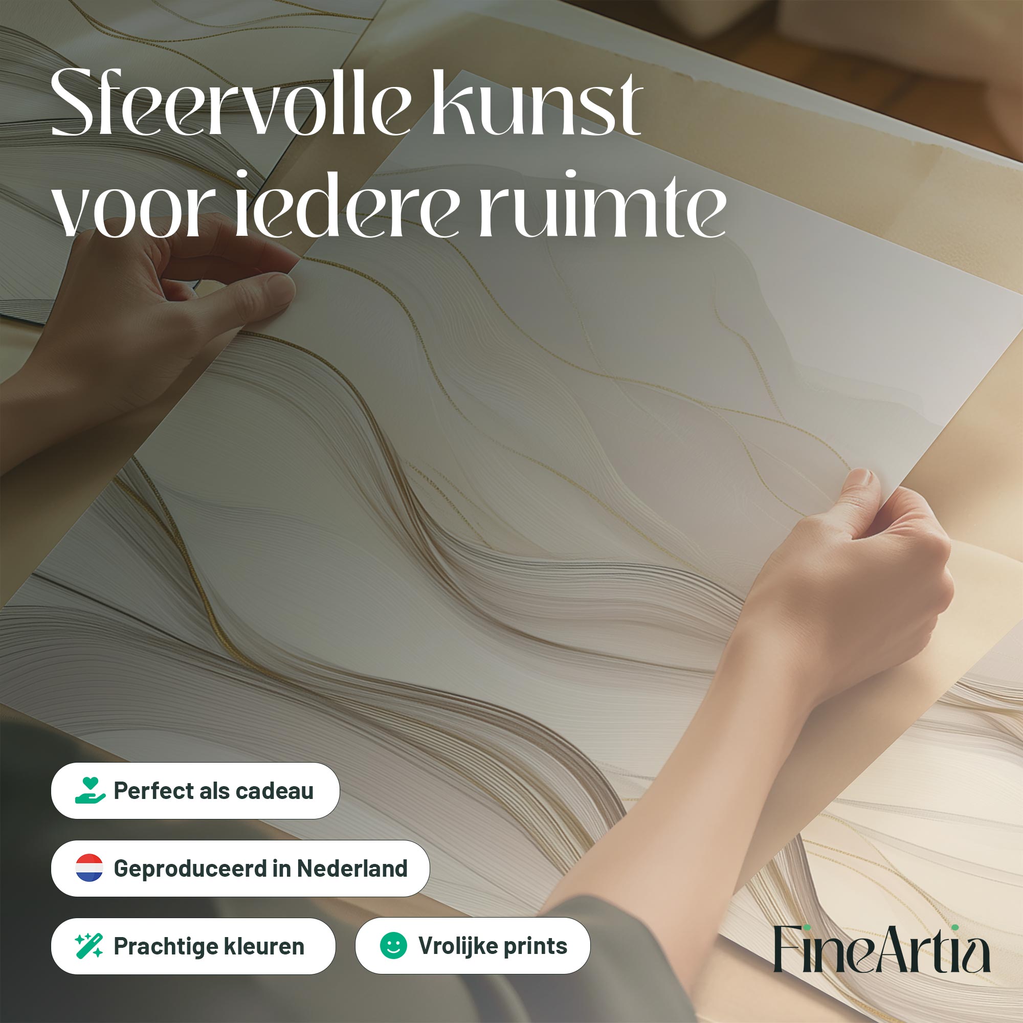 Speelse Golven in Bruin en Wit – Abstracte Wanddecoratie