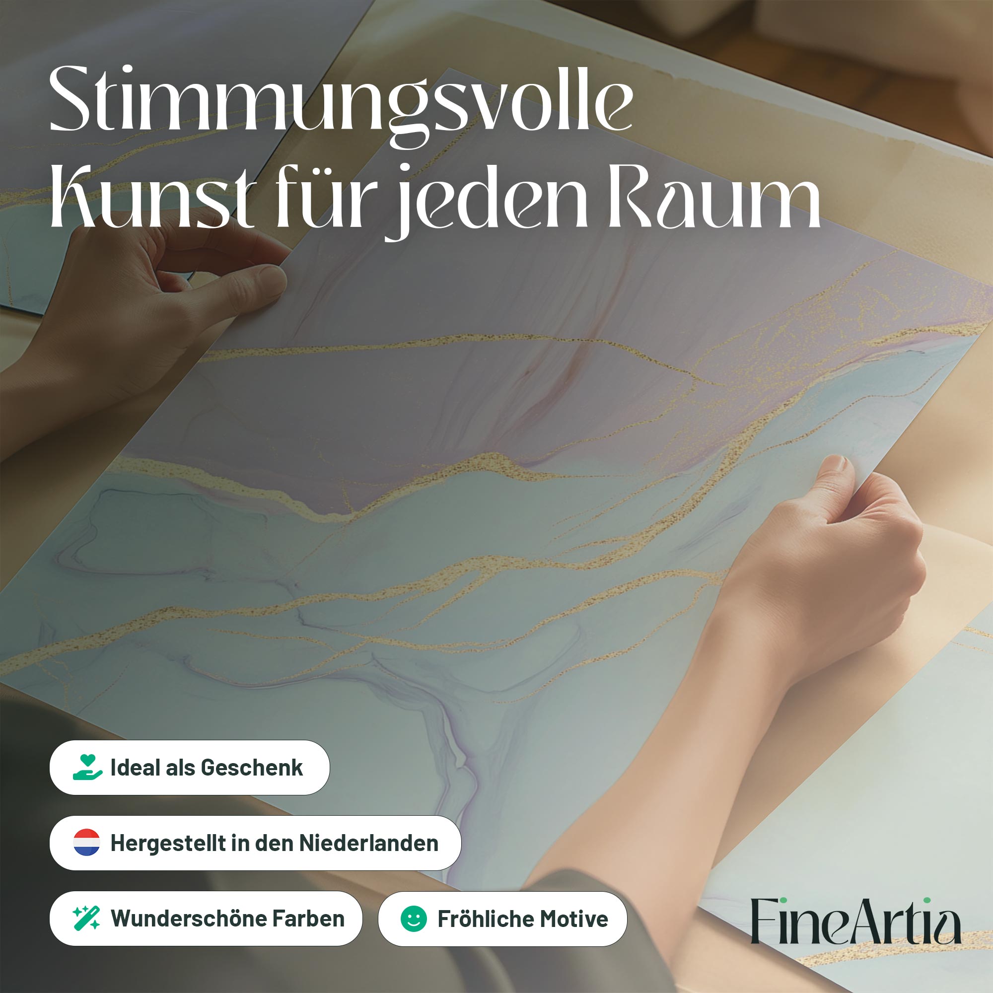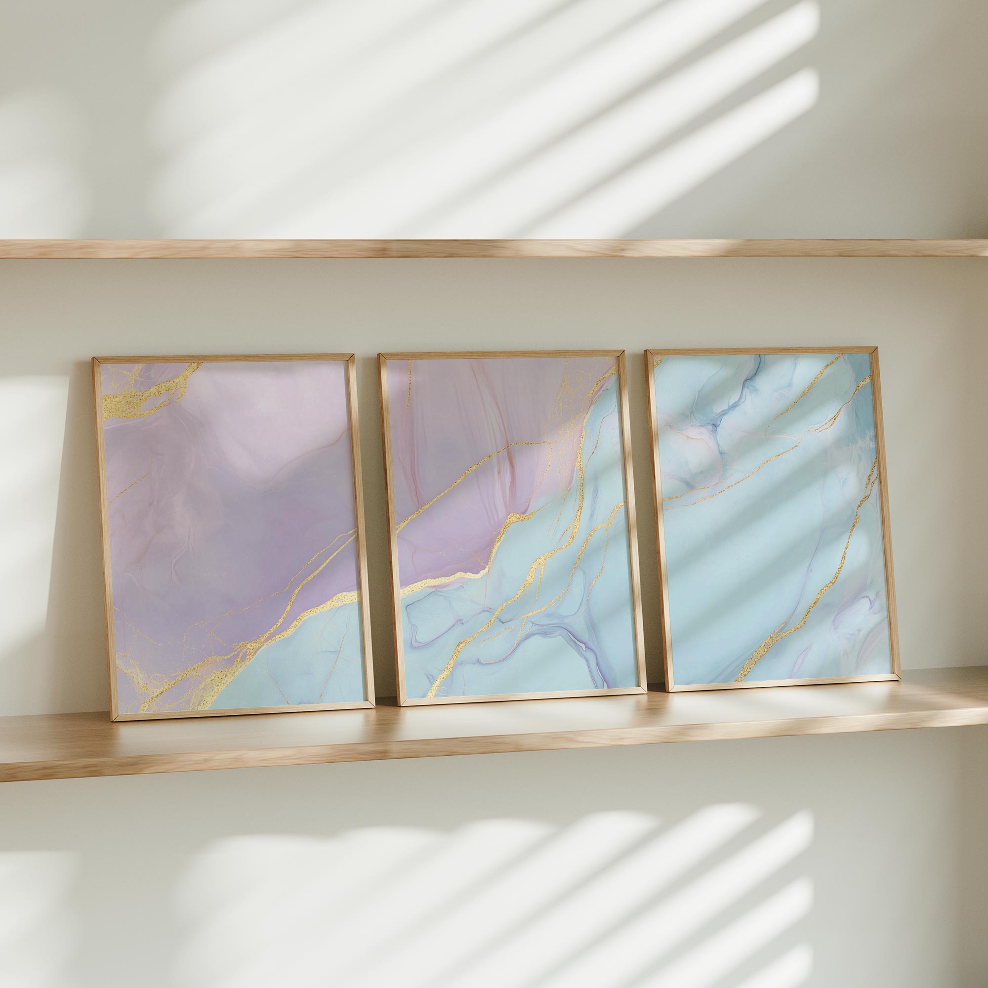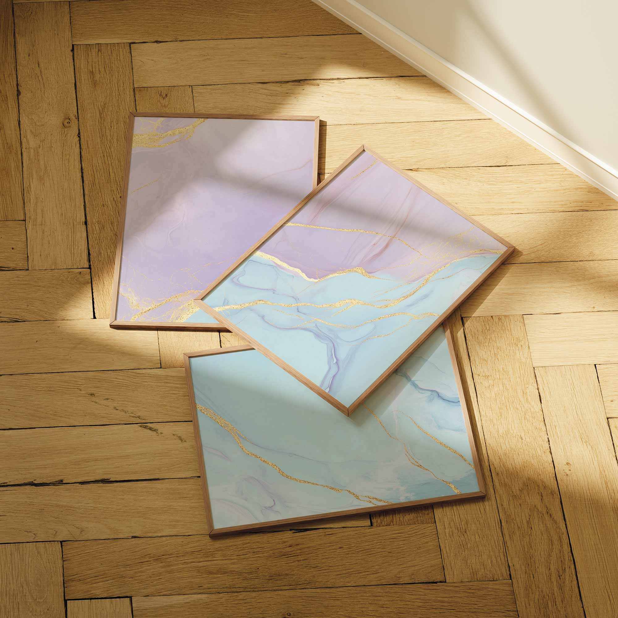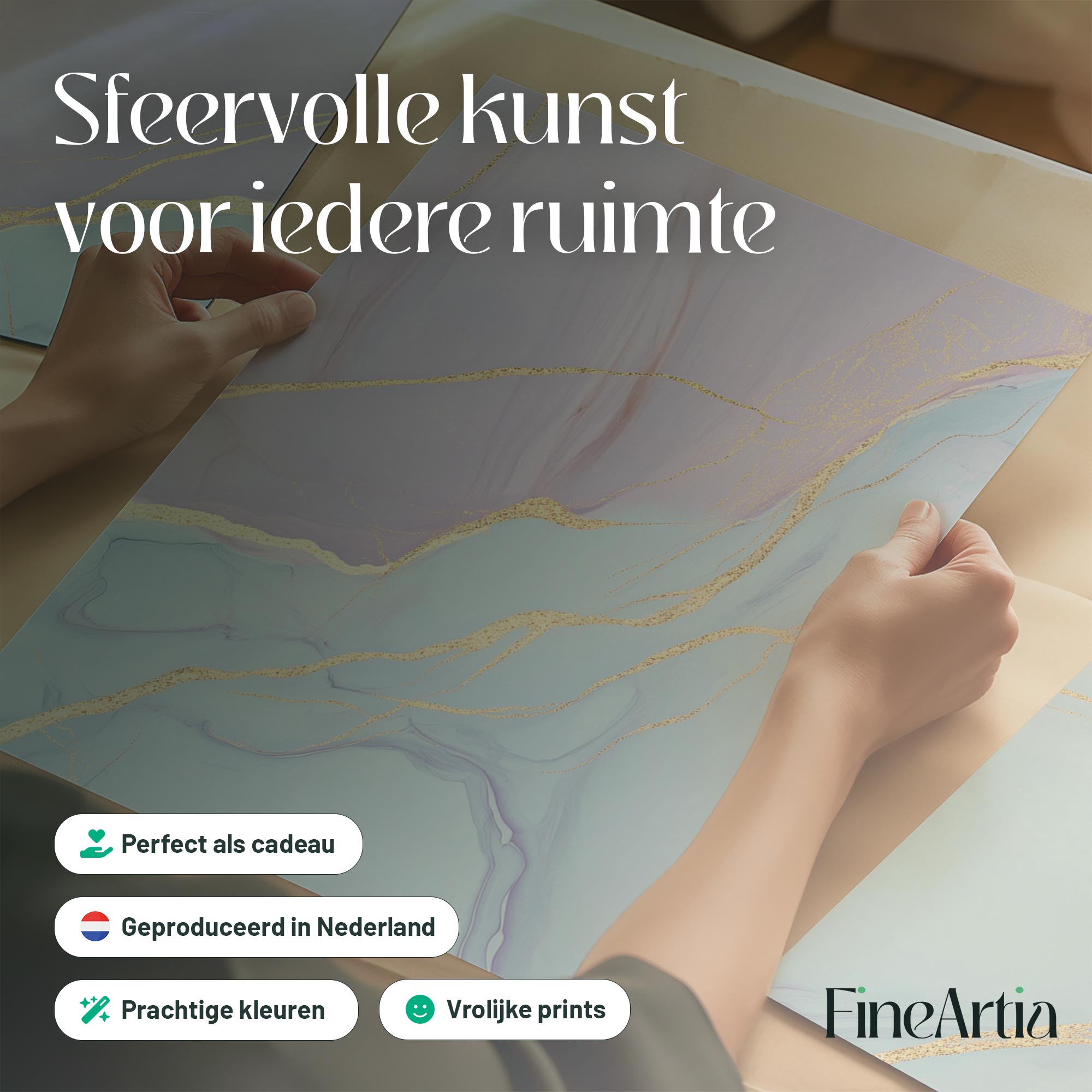 Speelse Marmeren Elegance in Blauw, Roze en Goud