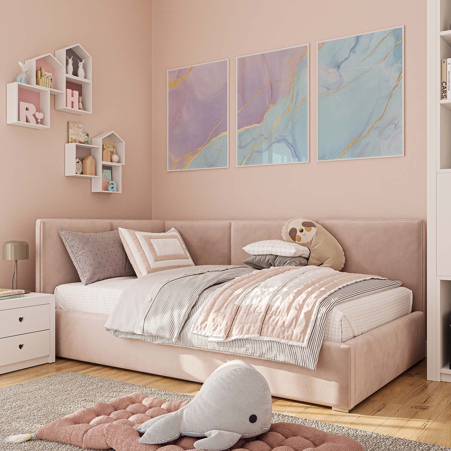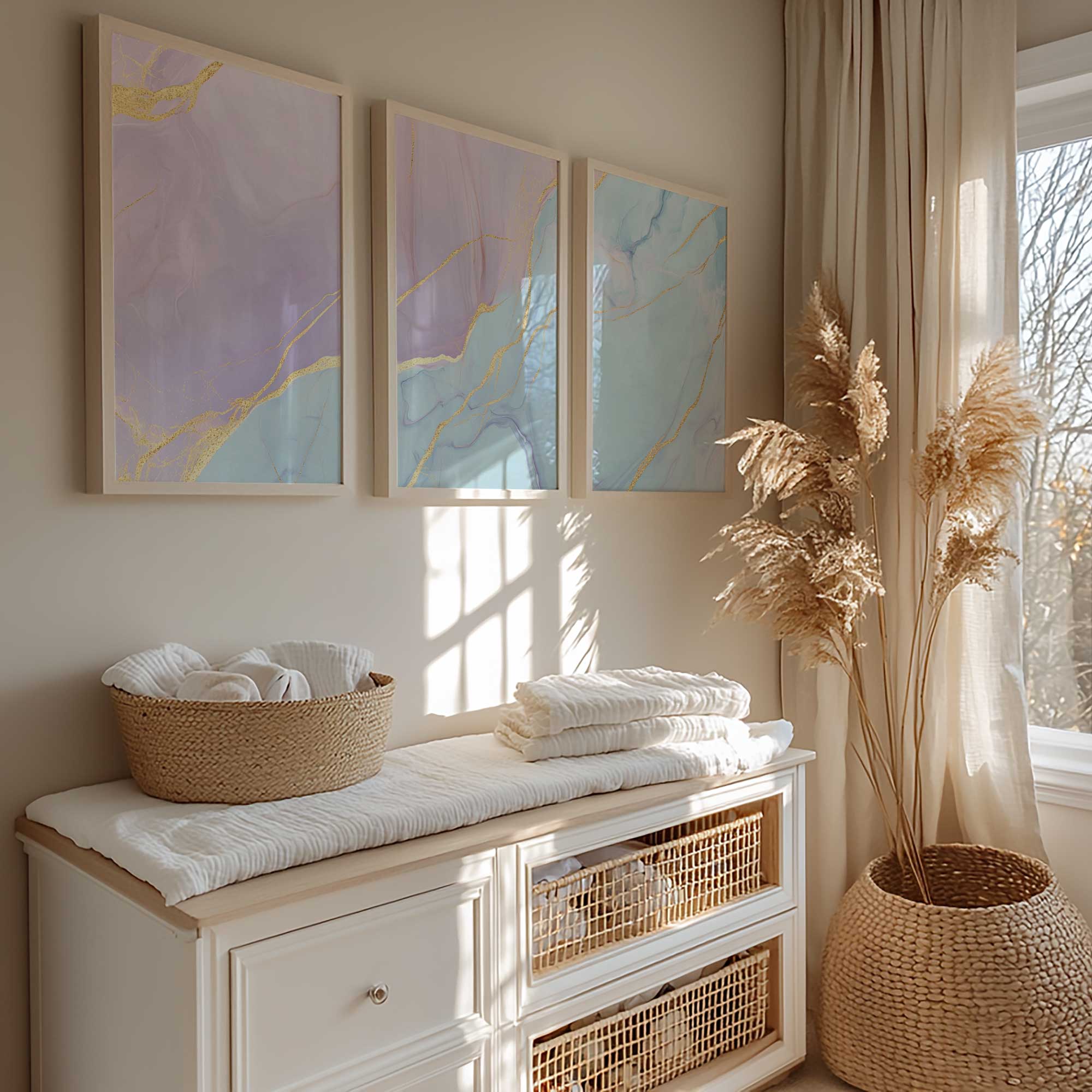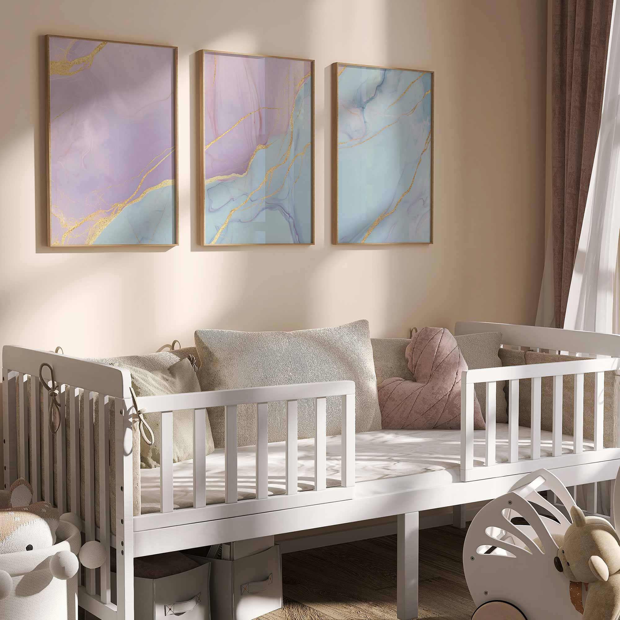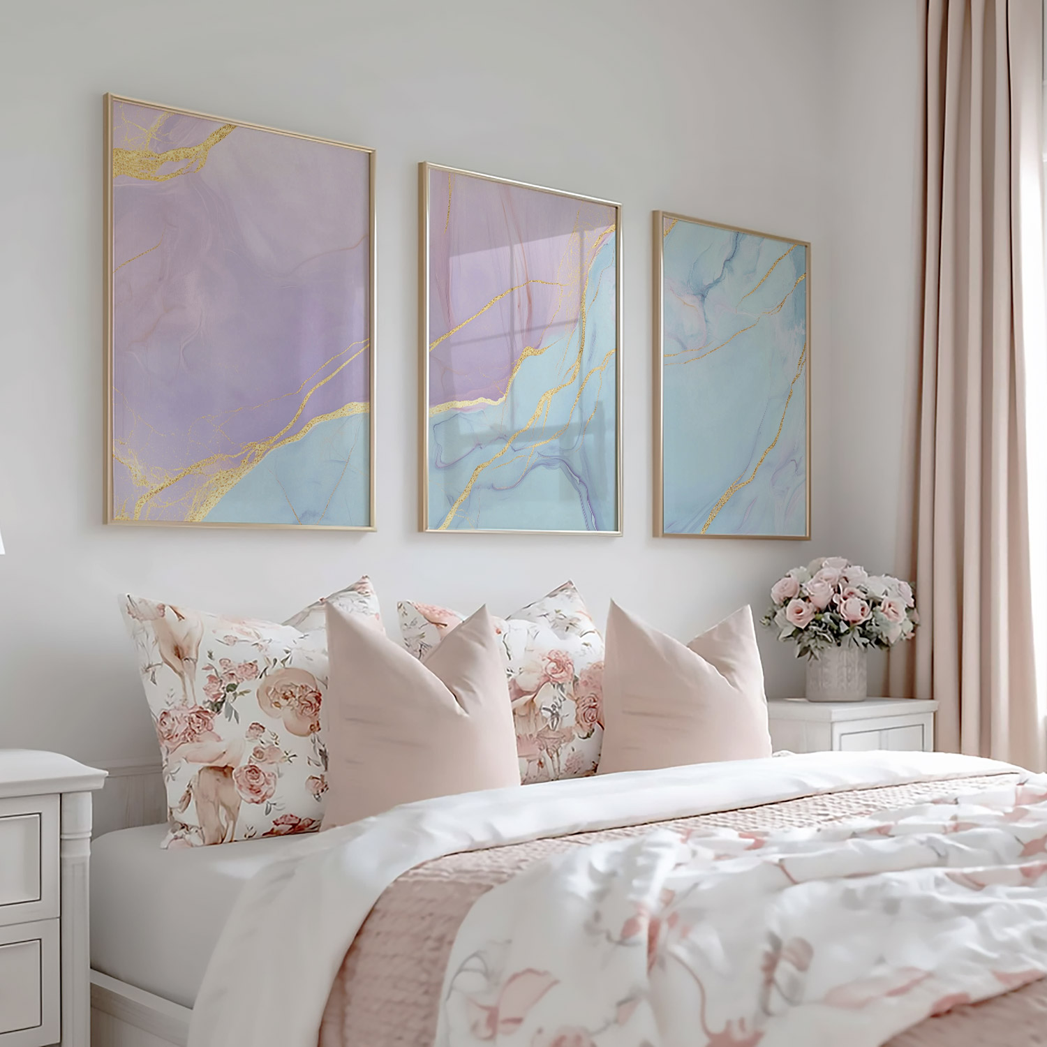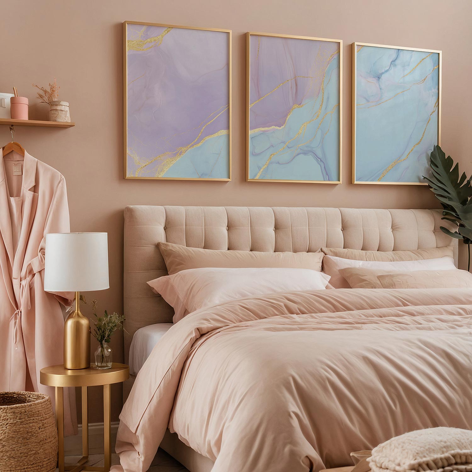Speelse Marmeren Elegance in Blauw, Roze en Goud