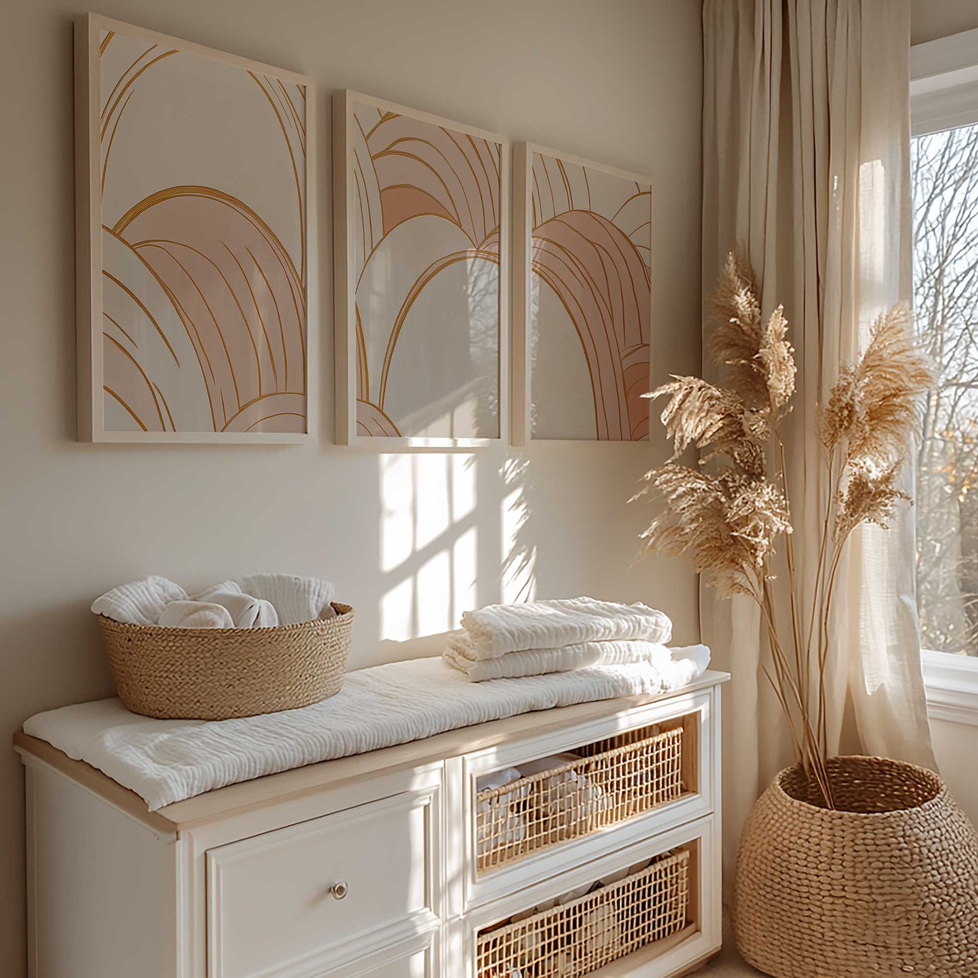 Speelse Roze Circulaire Wanddecoratie met Vloeiende Lijnen