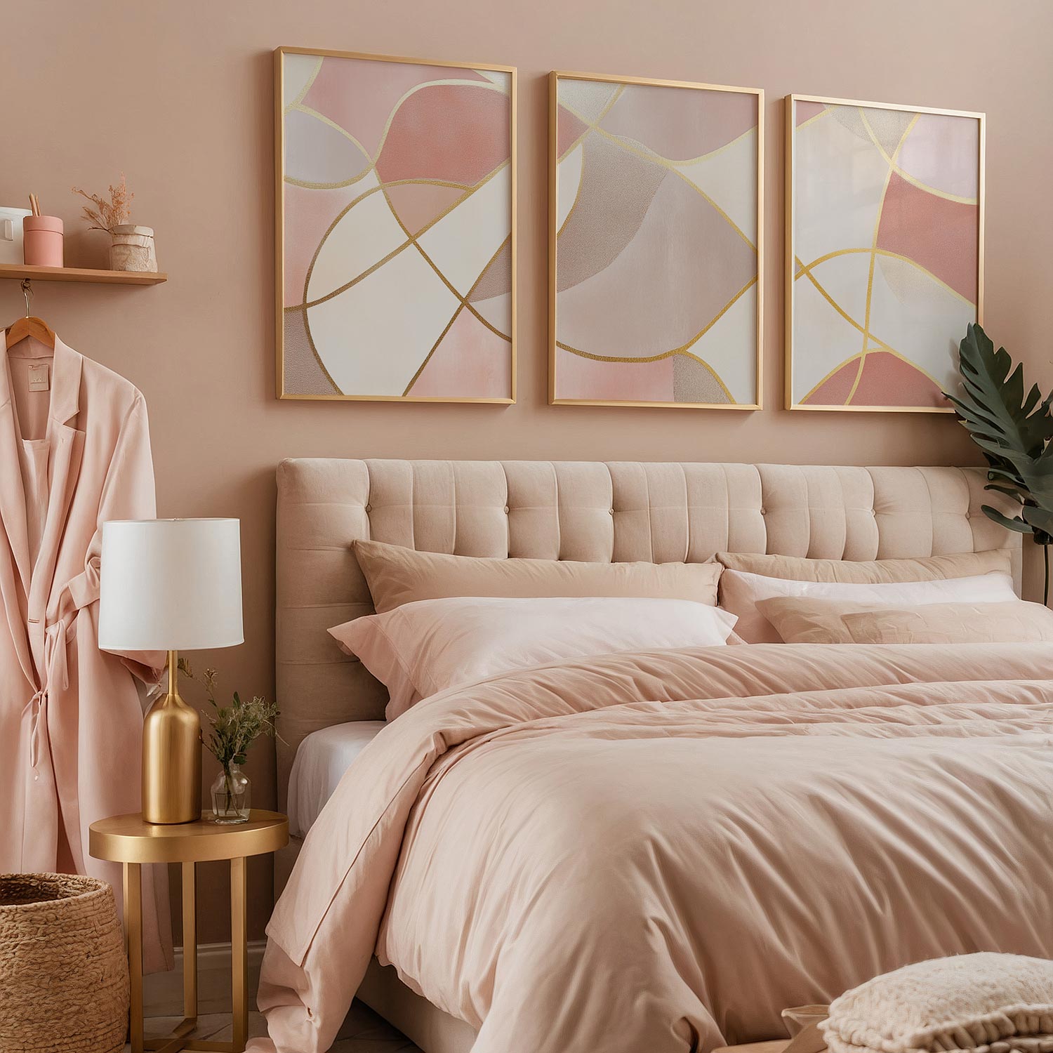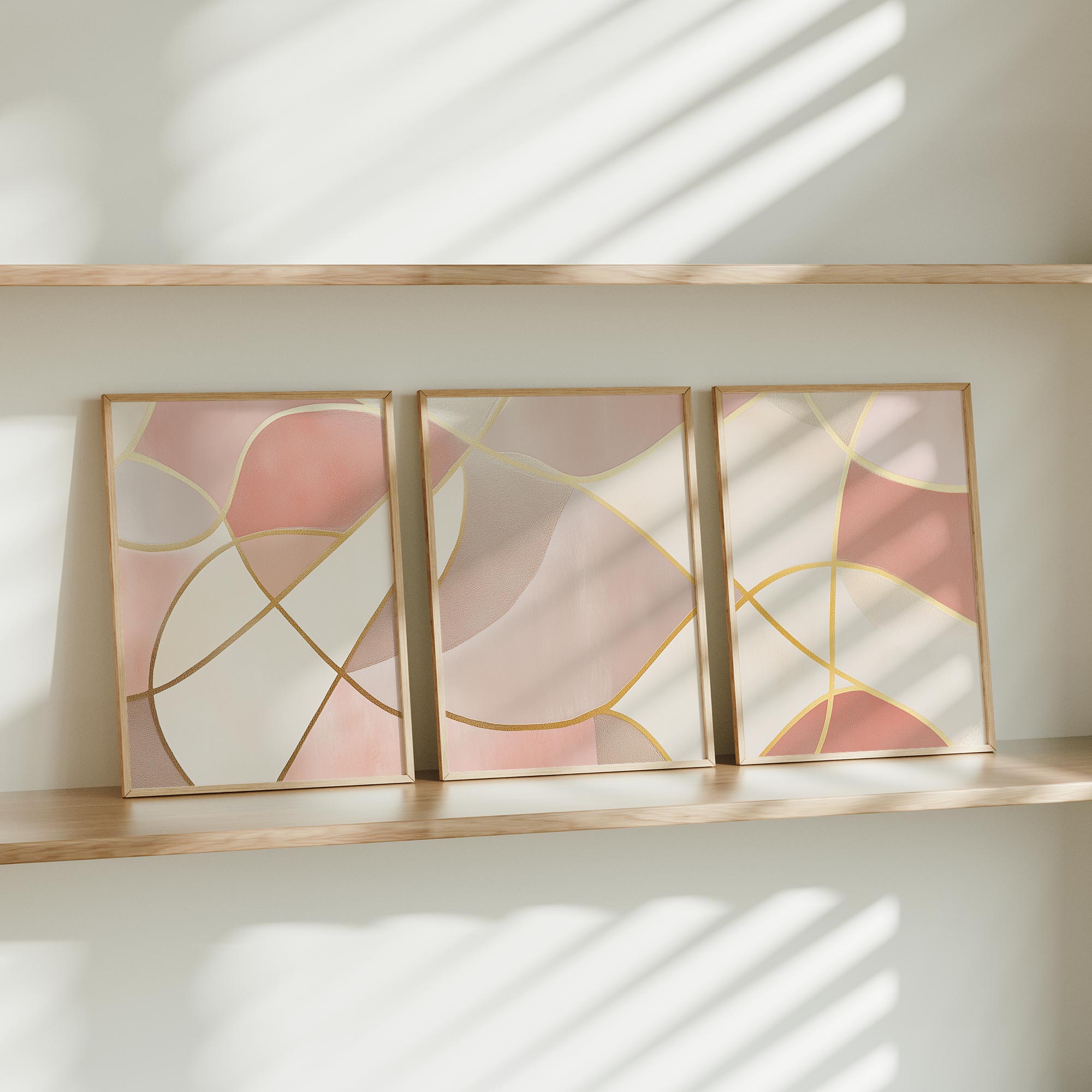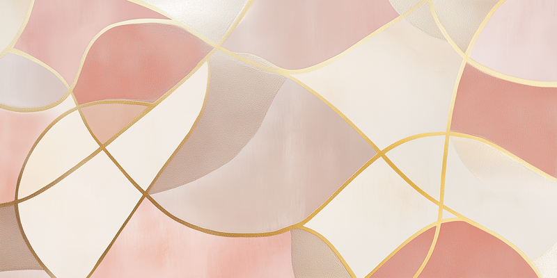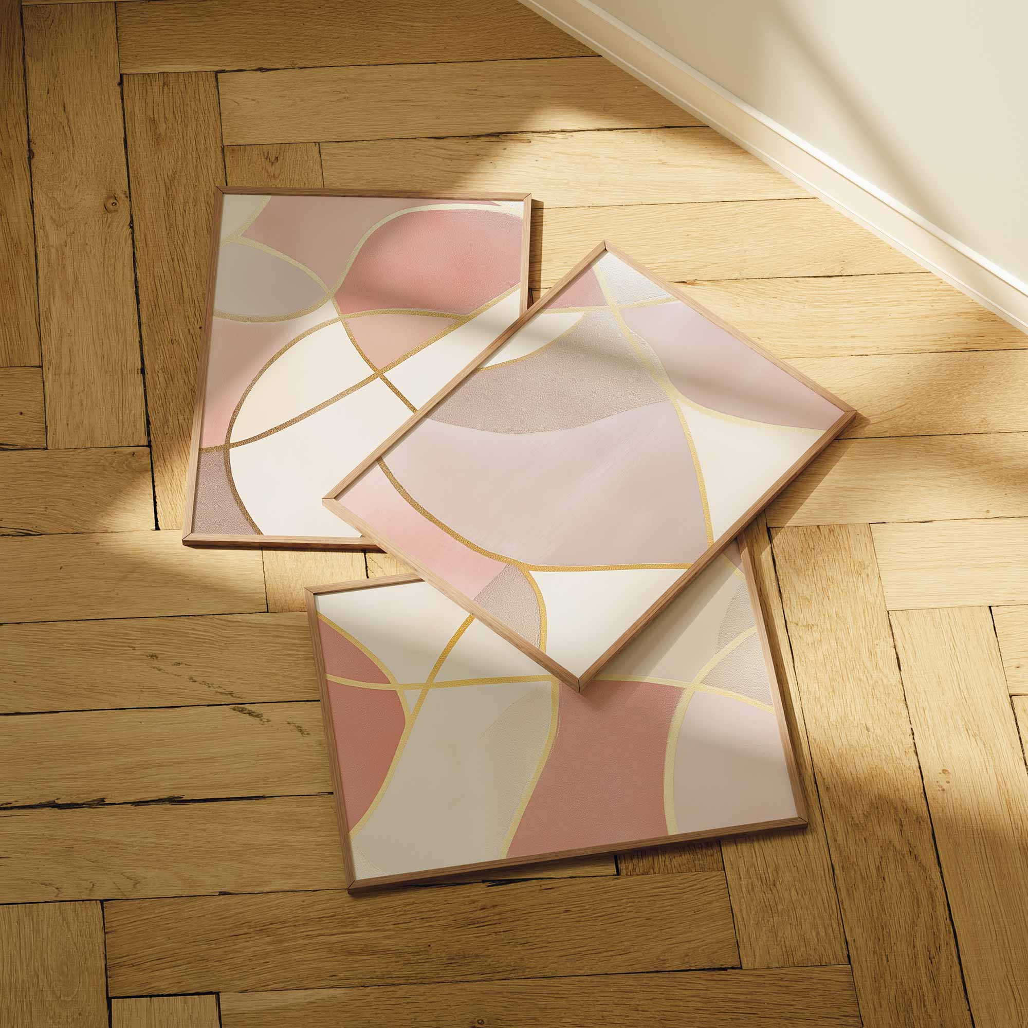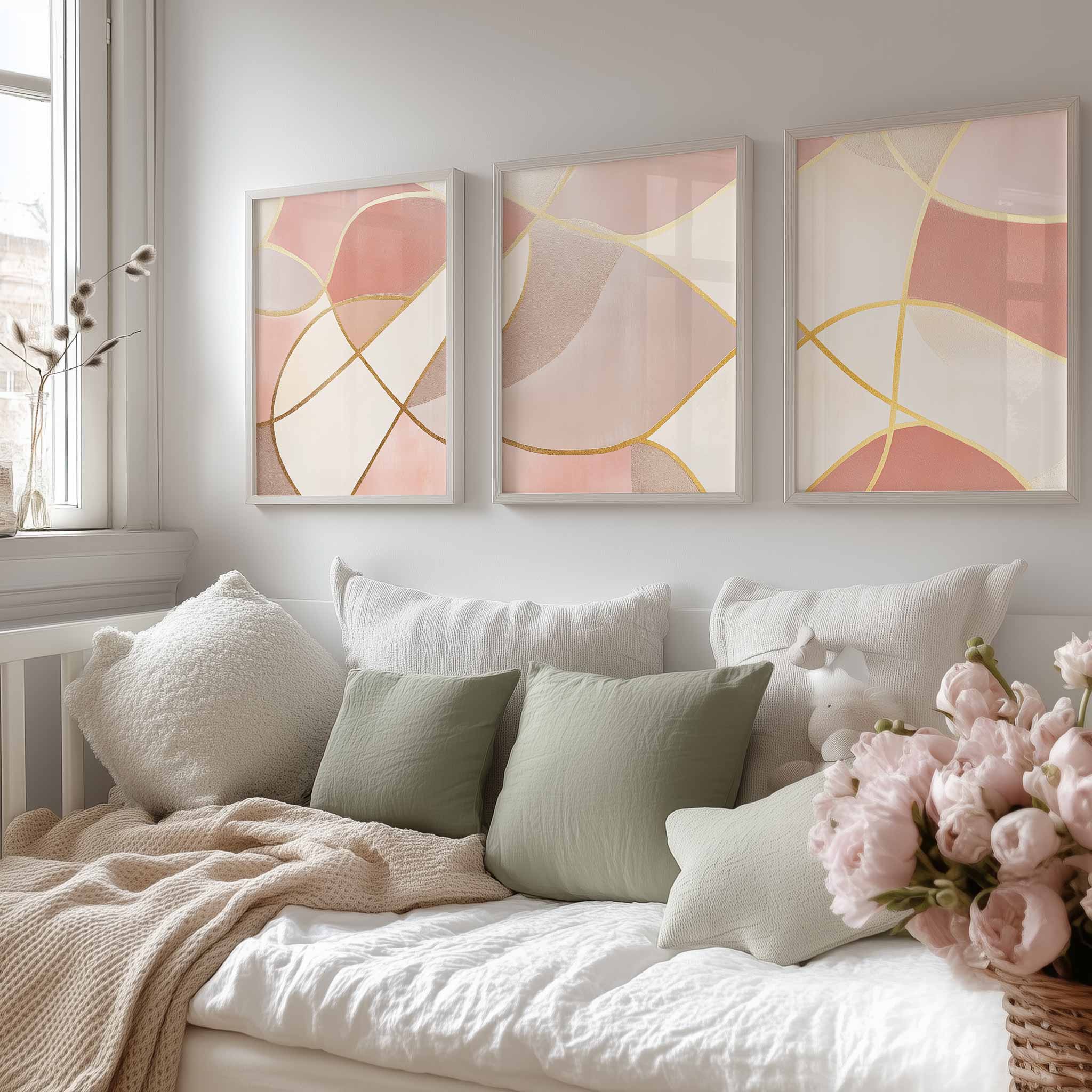 Speelse Roze Elegance: Abstracte Wanddecoratie met Gouden Accenten