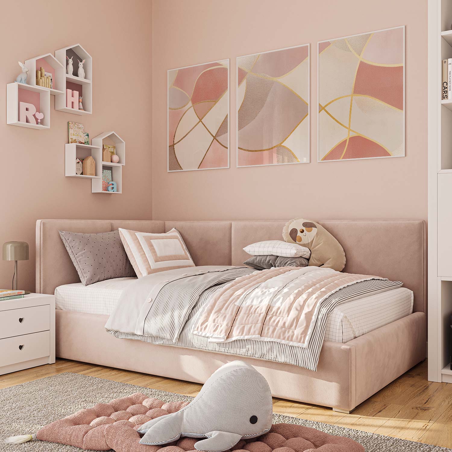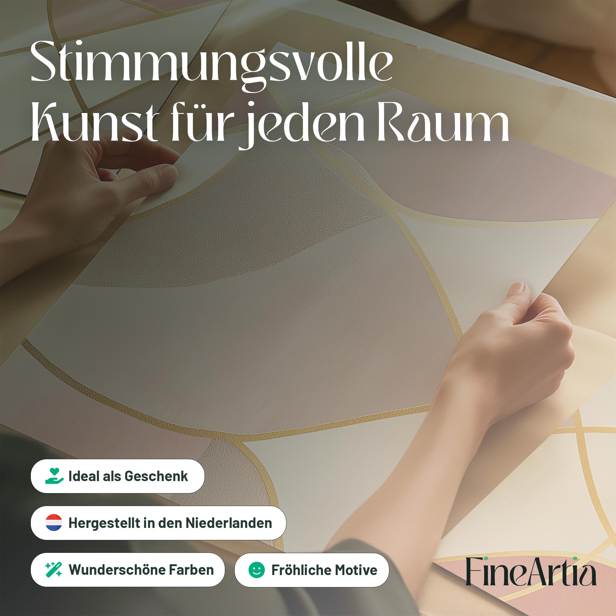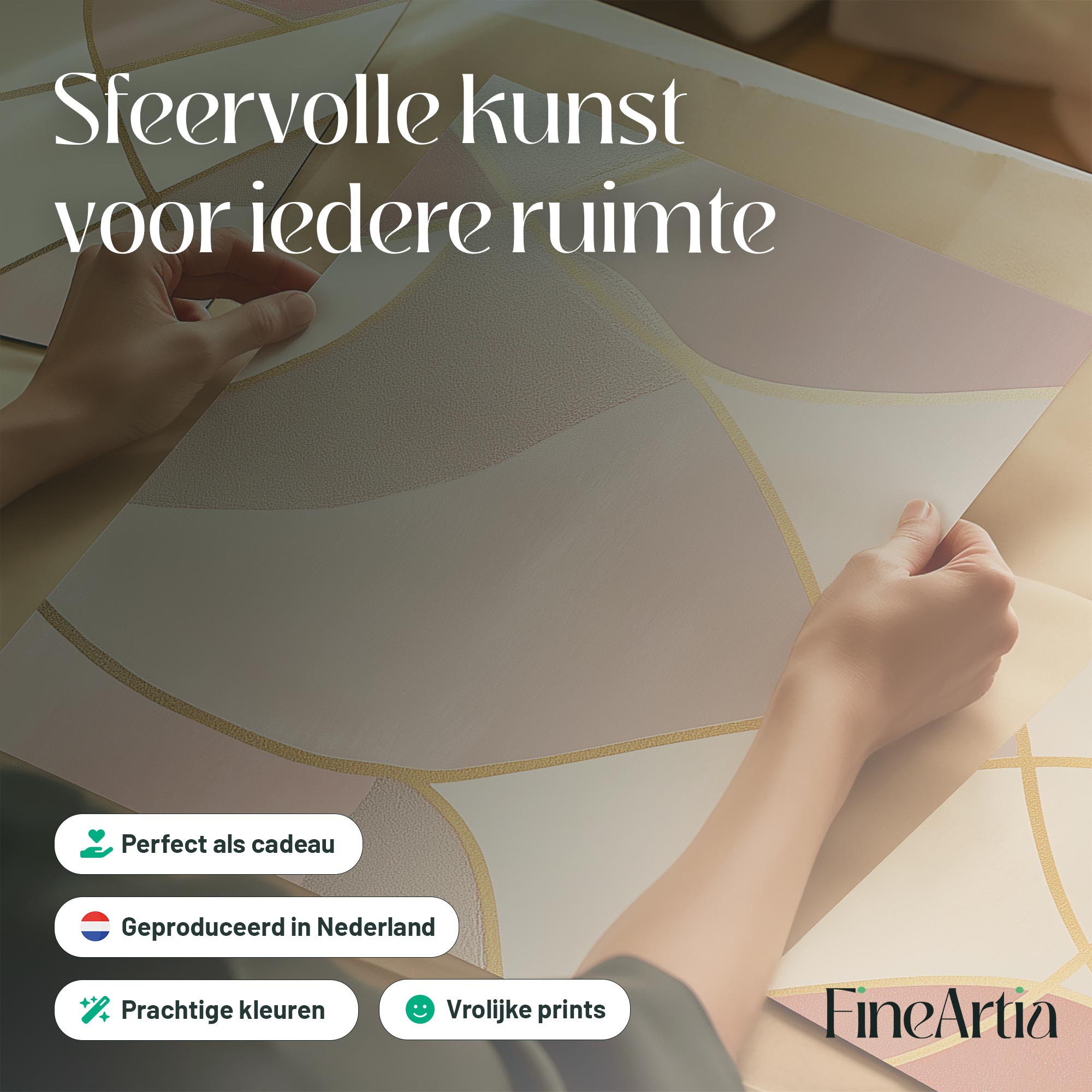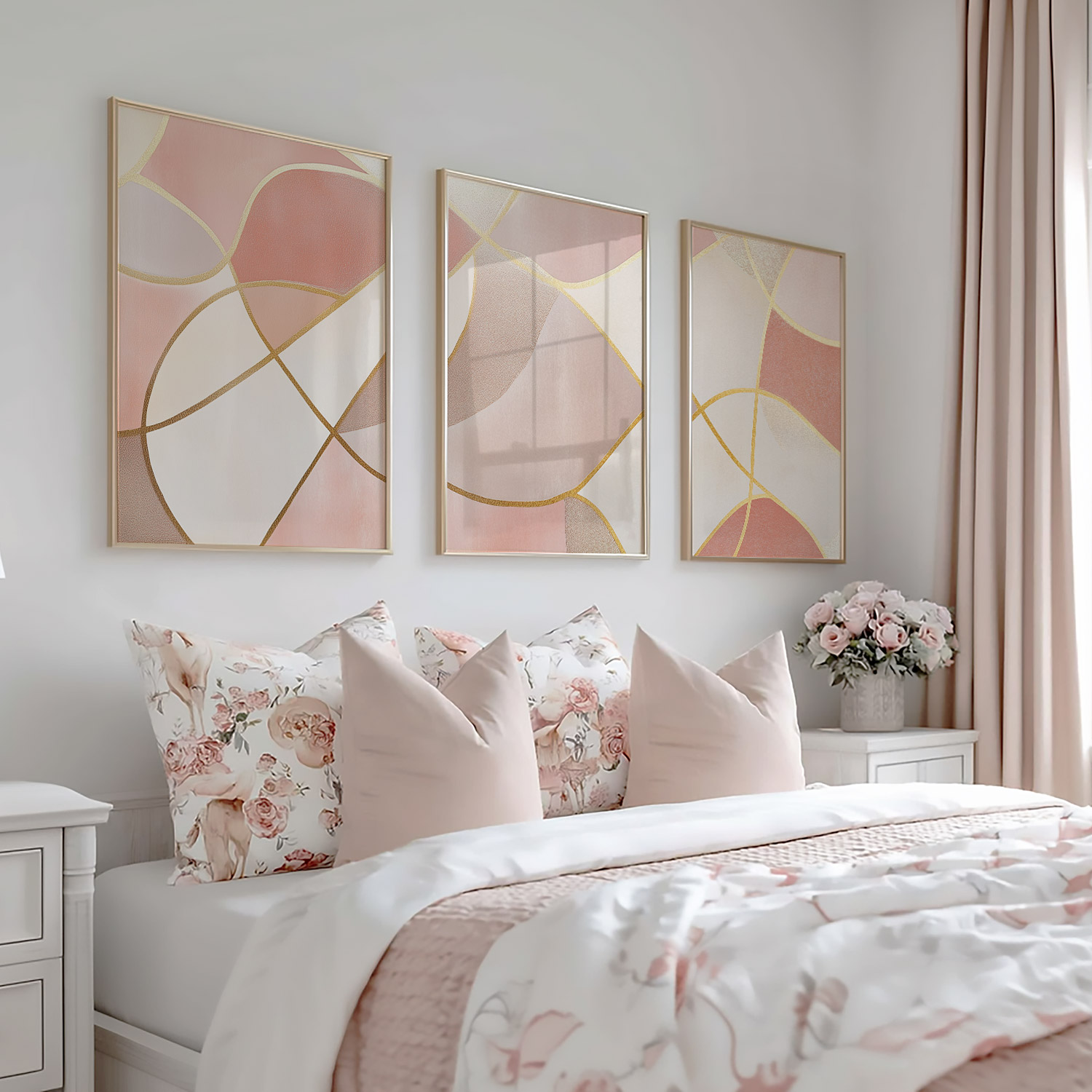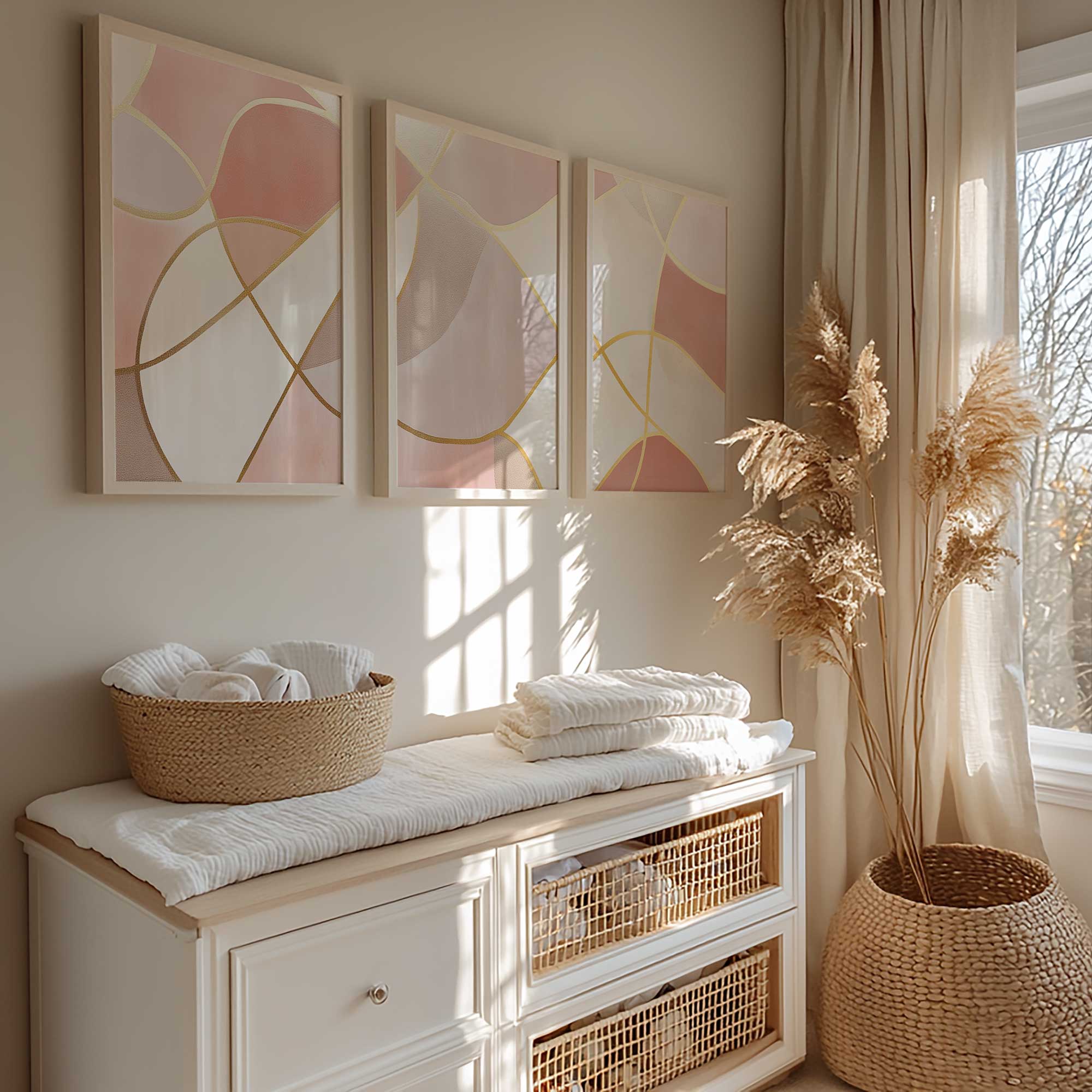 Speelse Roze Elegance: Abstracte Wanddecoratie met Gouden Accenten