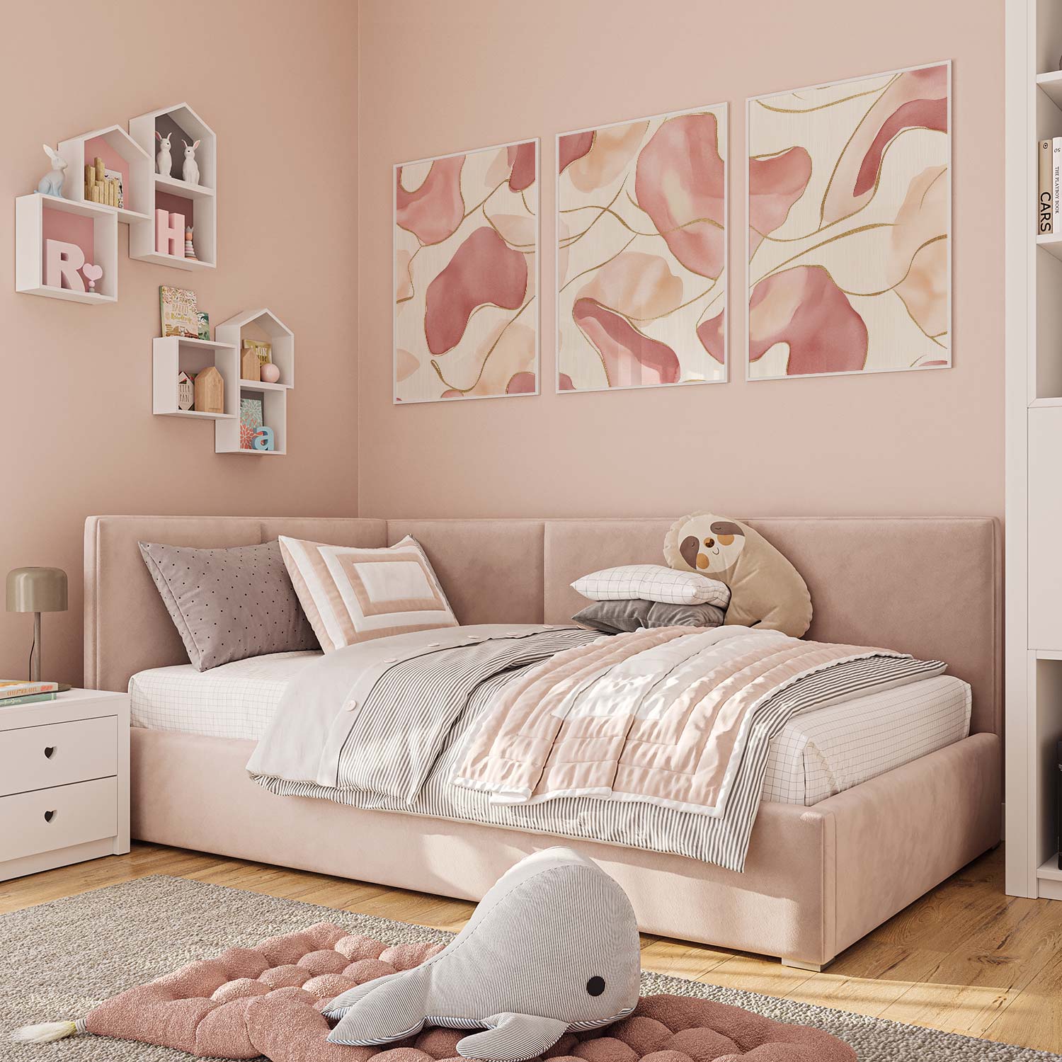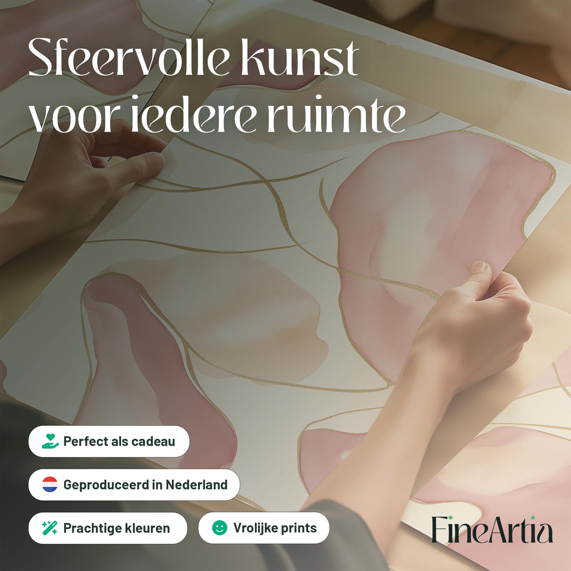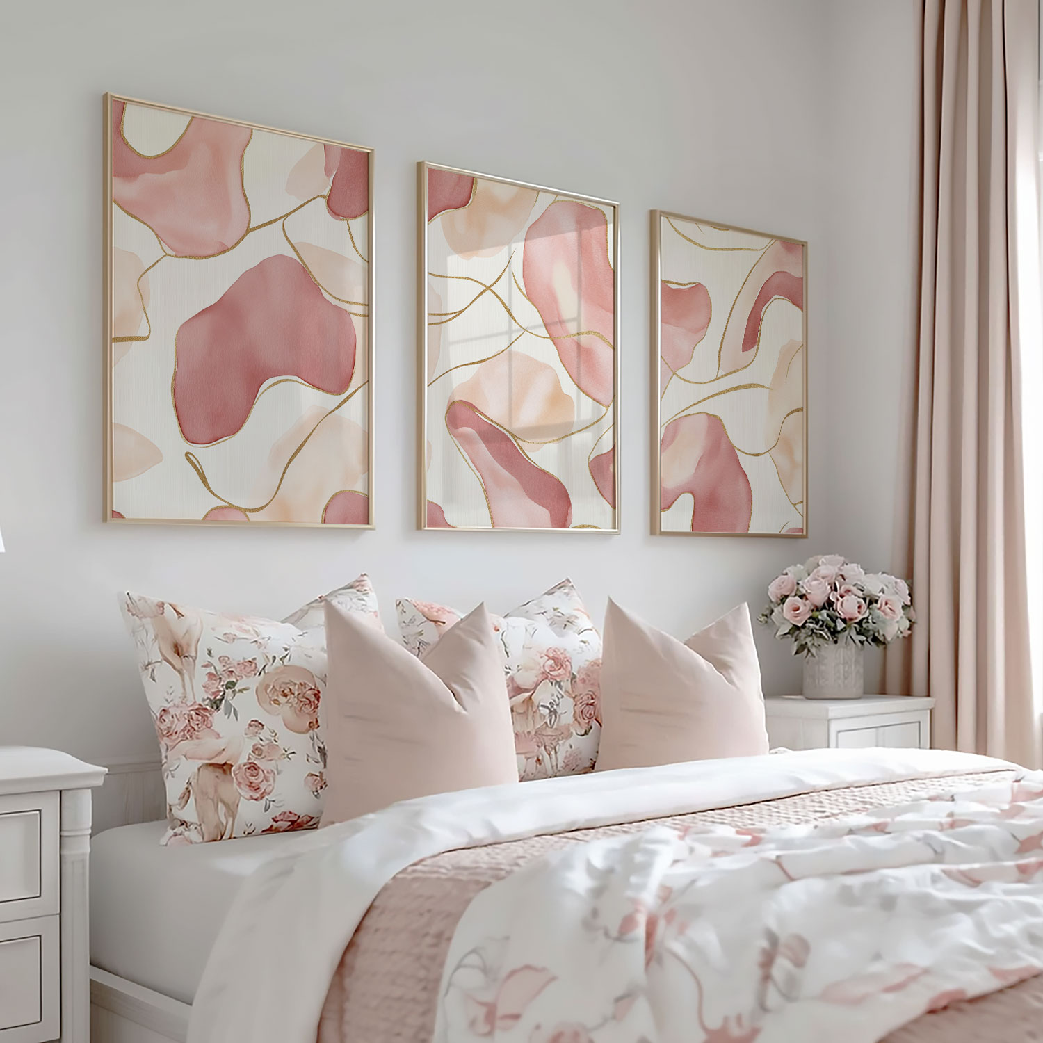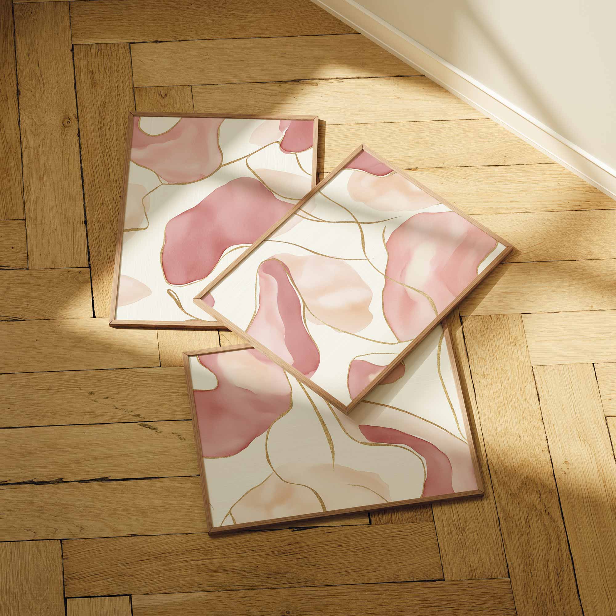 Speelse Roze en Beige Abstracte Vormen Wanddecoratie