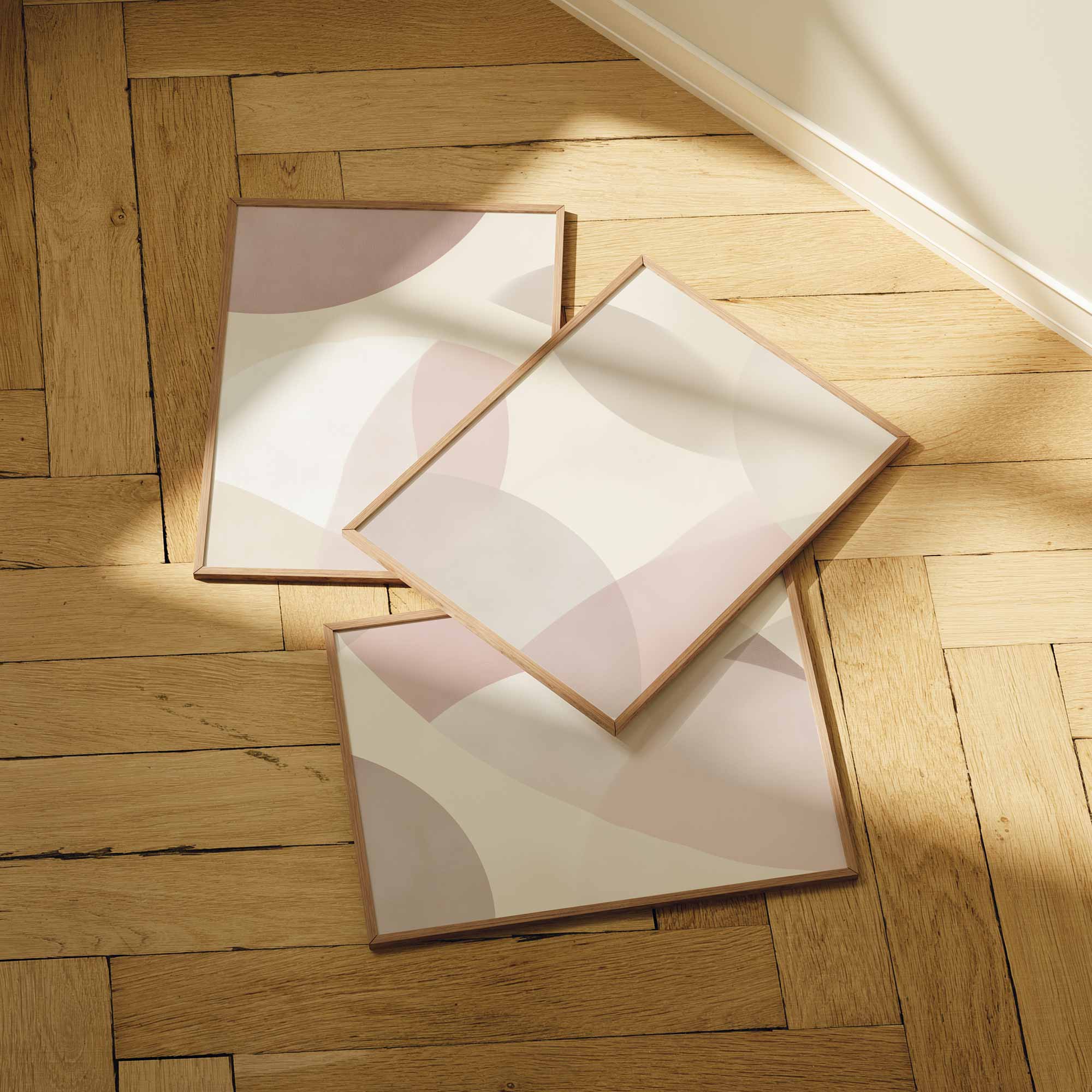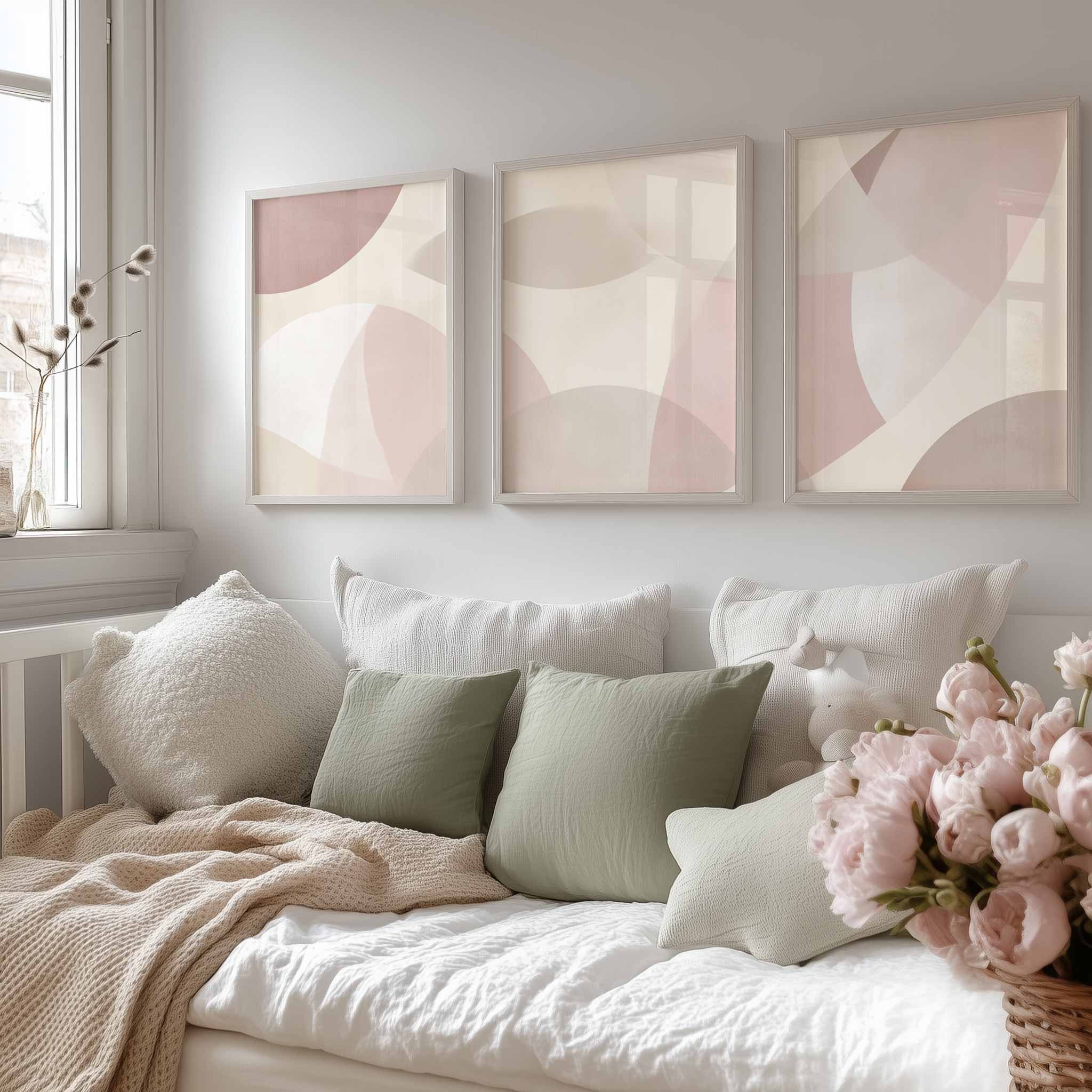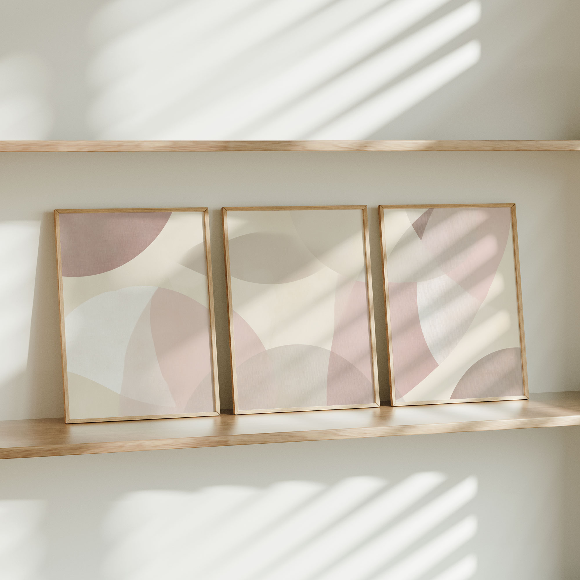 Speelse Roze en Beige Cirkelcompositie – Abstracte Wanddecoratie