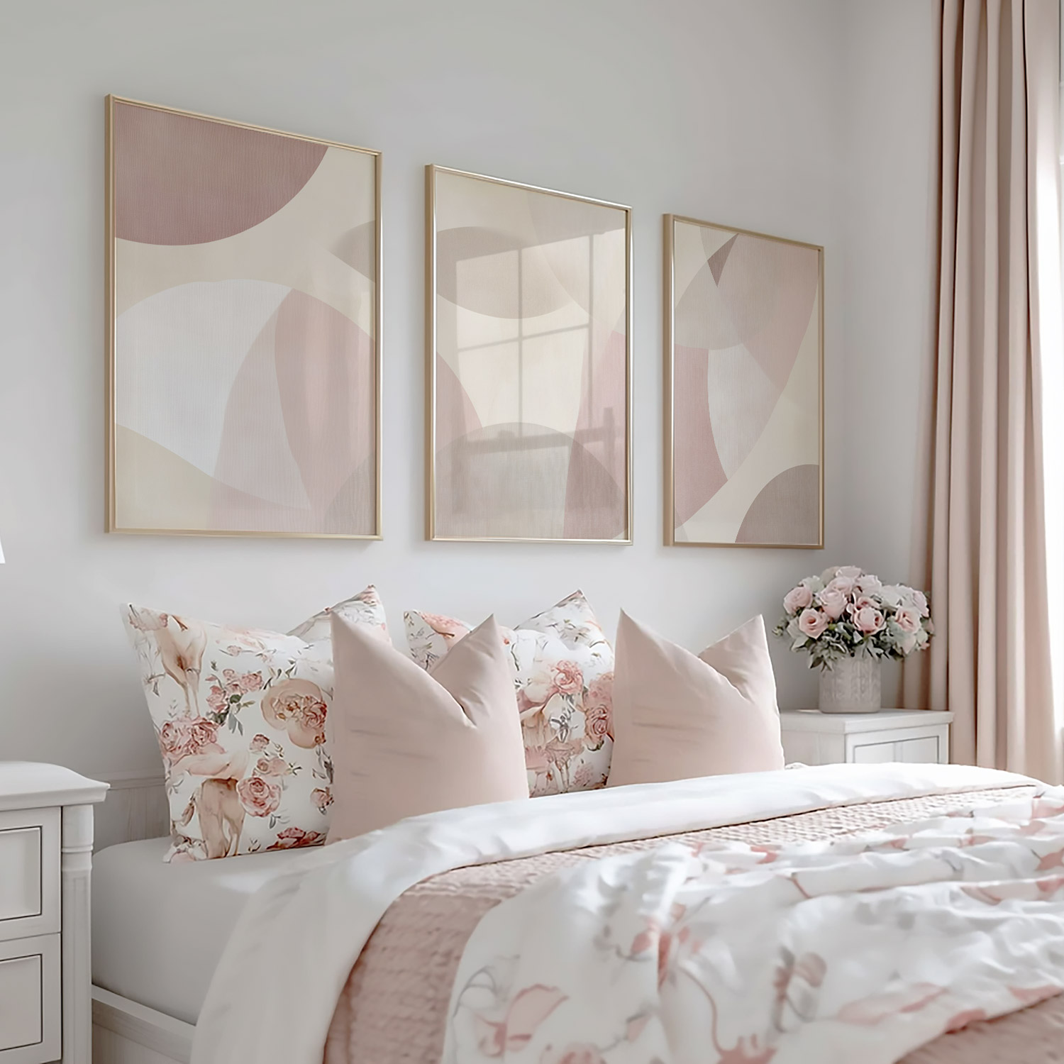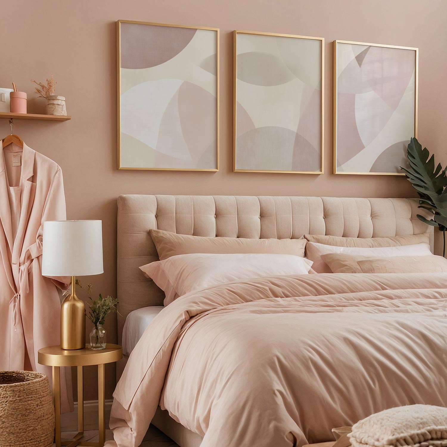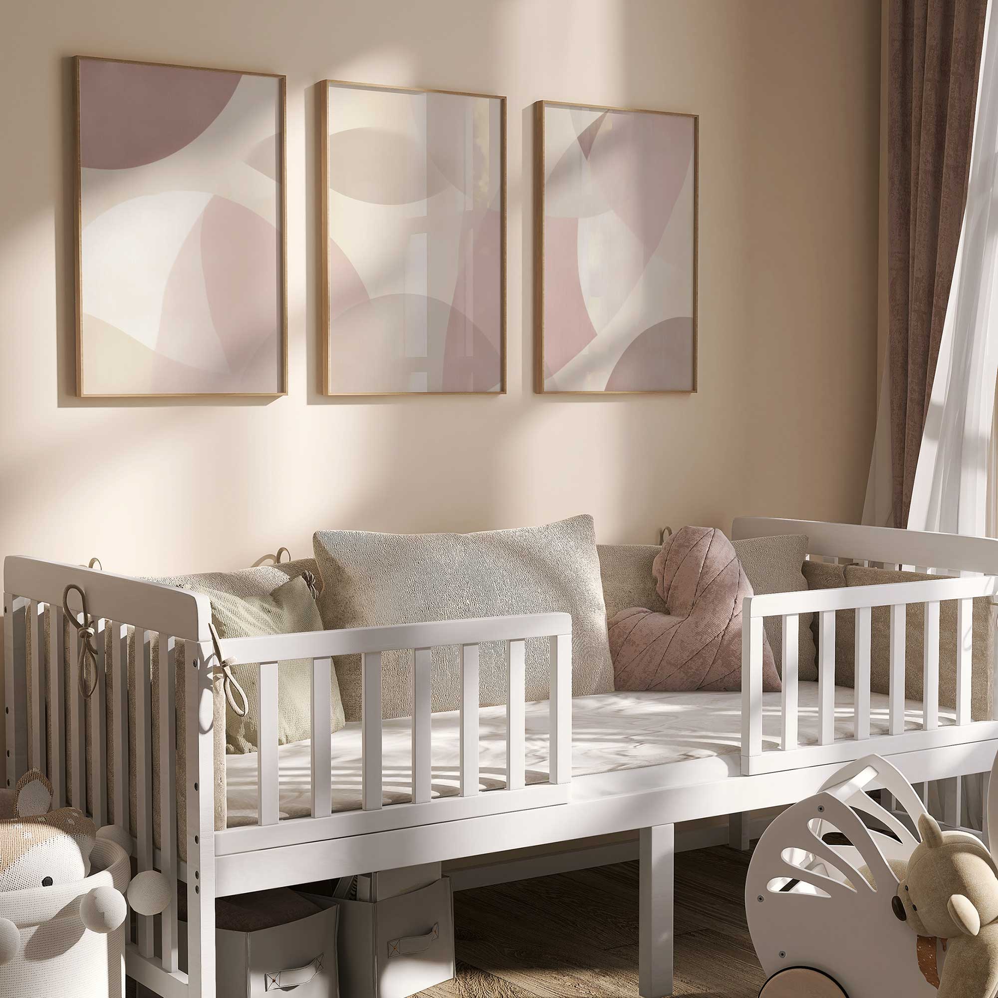 Speelse Roze en Beige Cirkelcompositie – Abstracte Wanddecoratie
