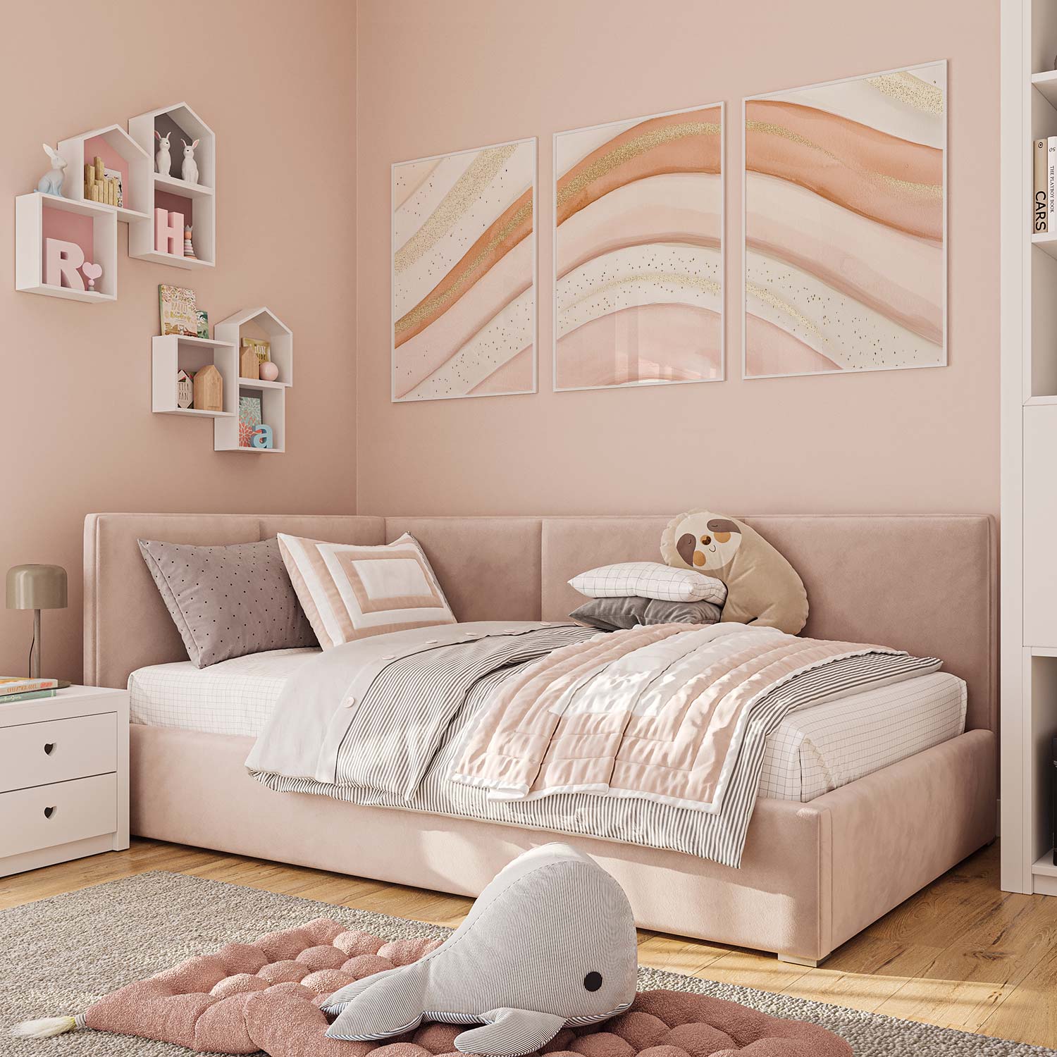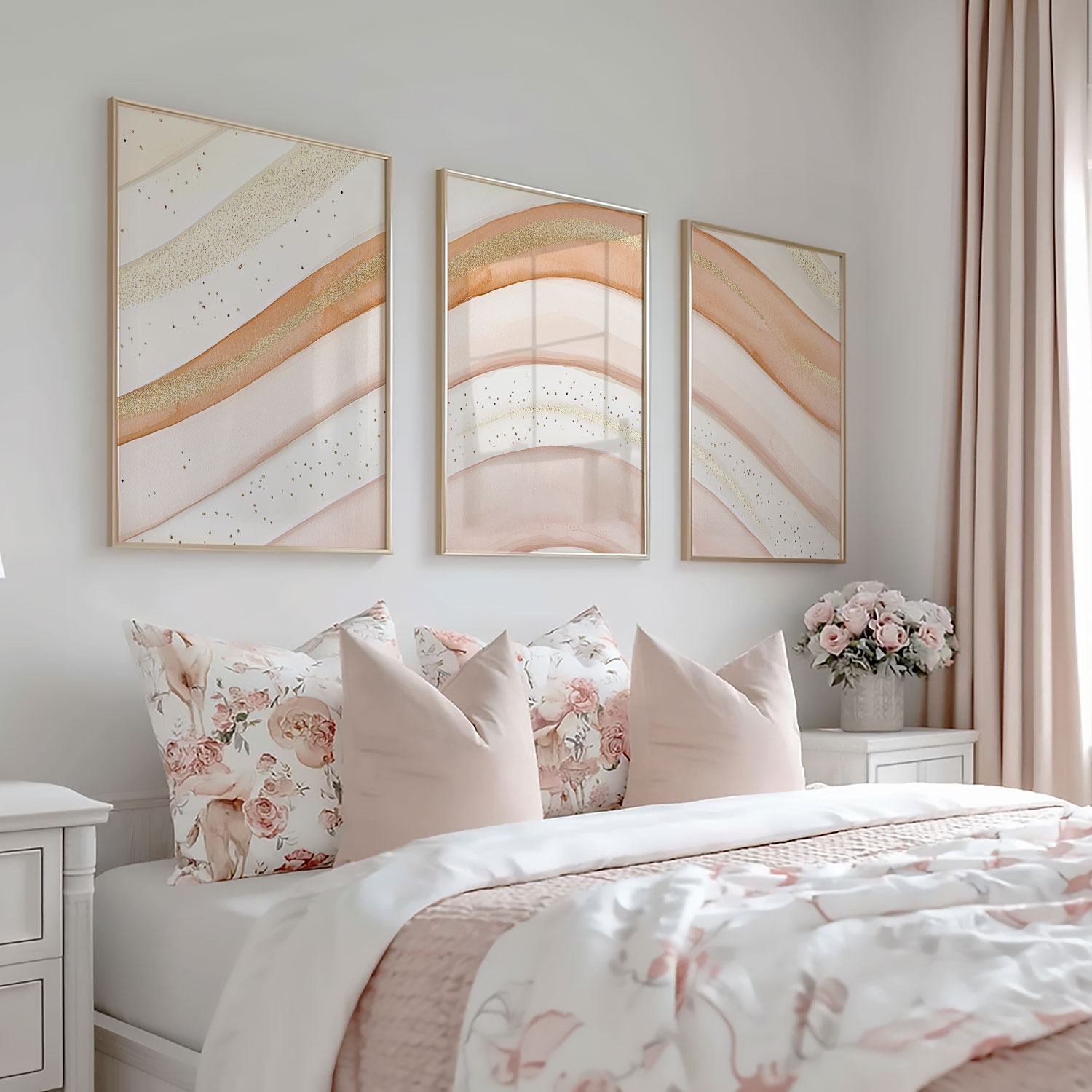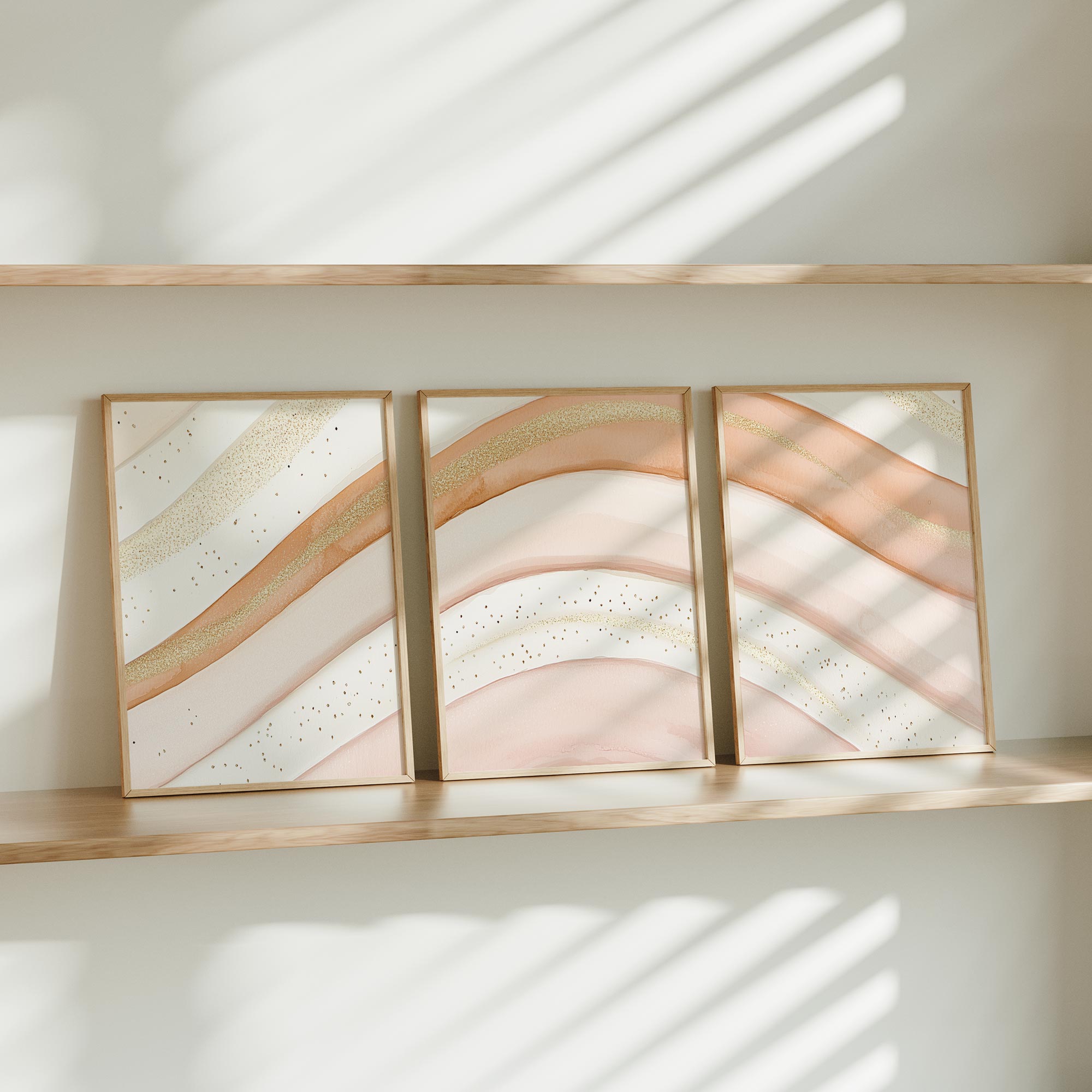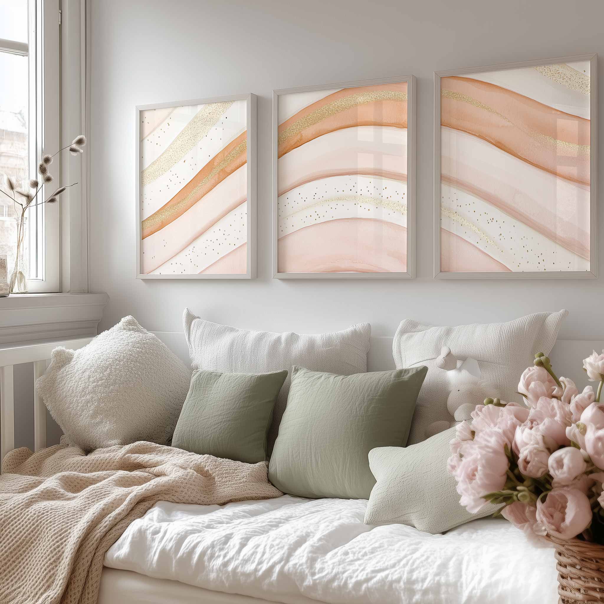 Speelse Roze & Gouden Abstracte Wanddecoratie met Elegante Lijnen