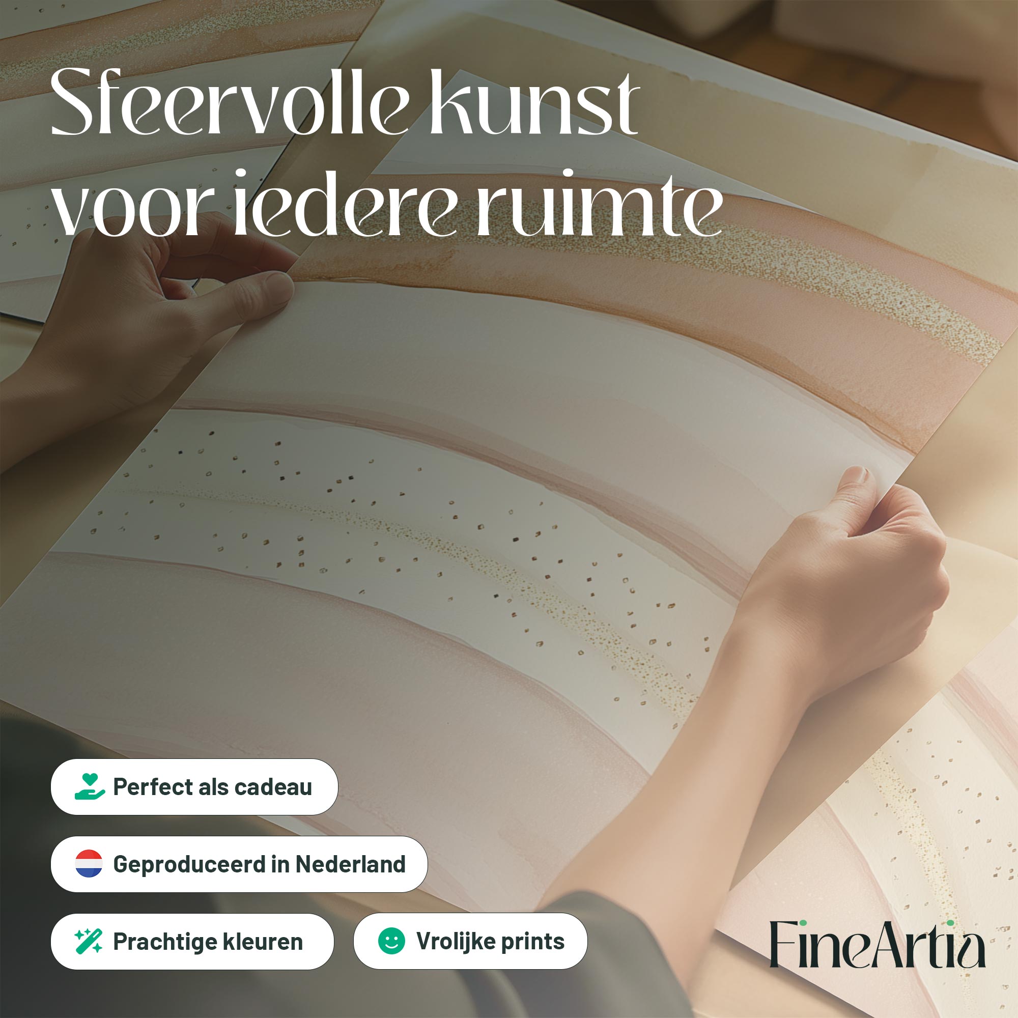 Terug naar collectie Posters Speelse Roze & Gouden Abstracte Wanddecoratie met Elegante Lijnen