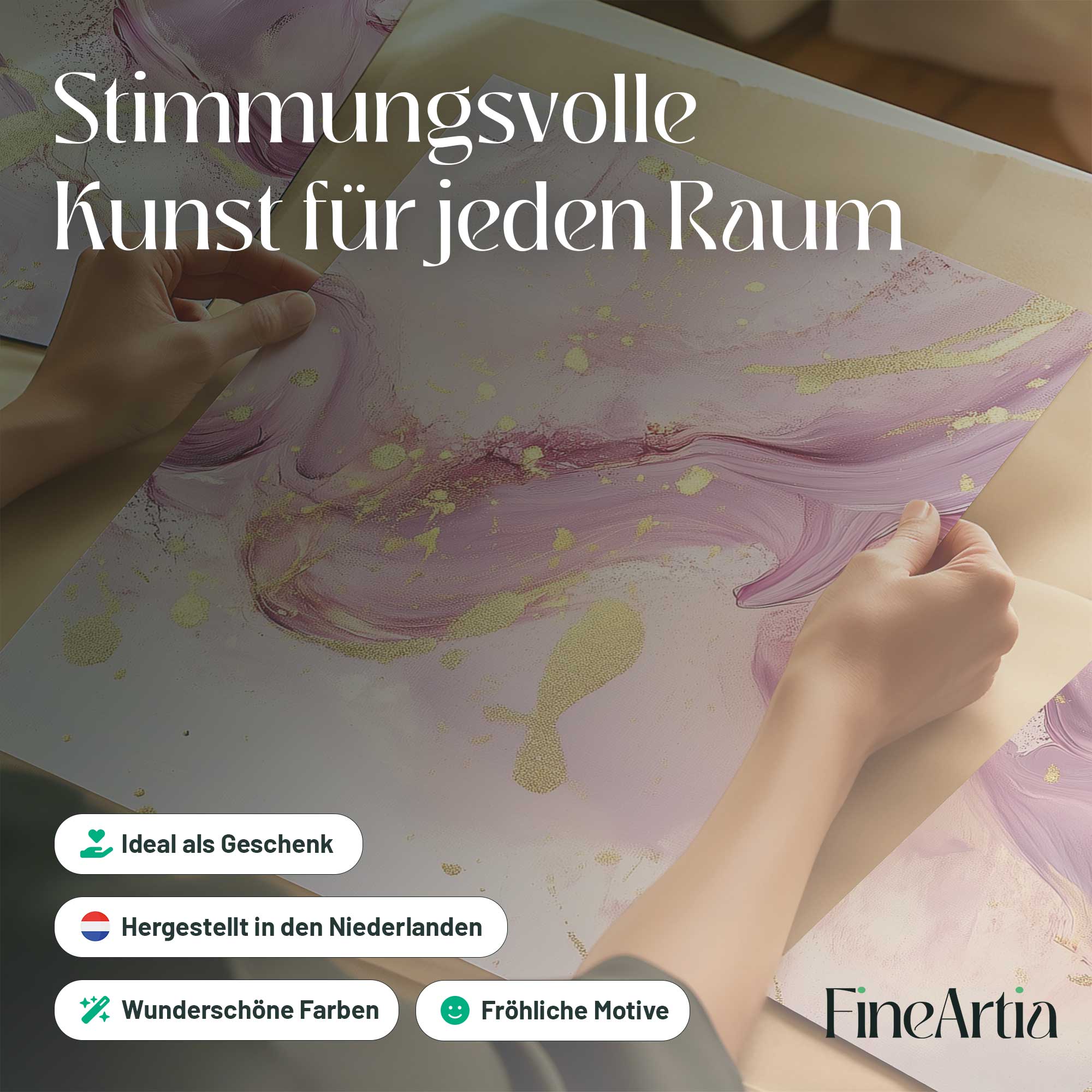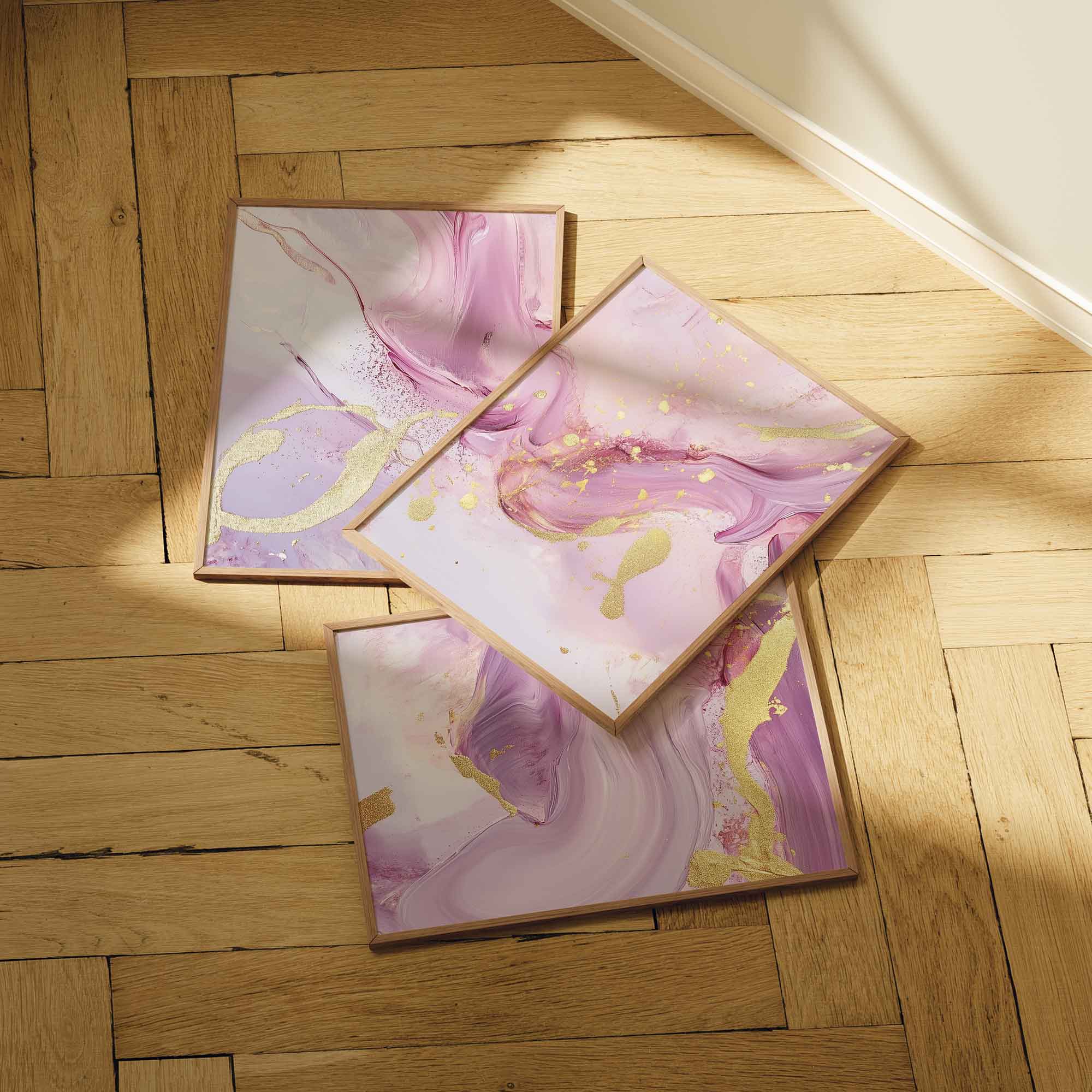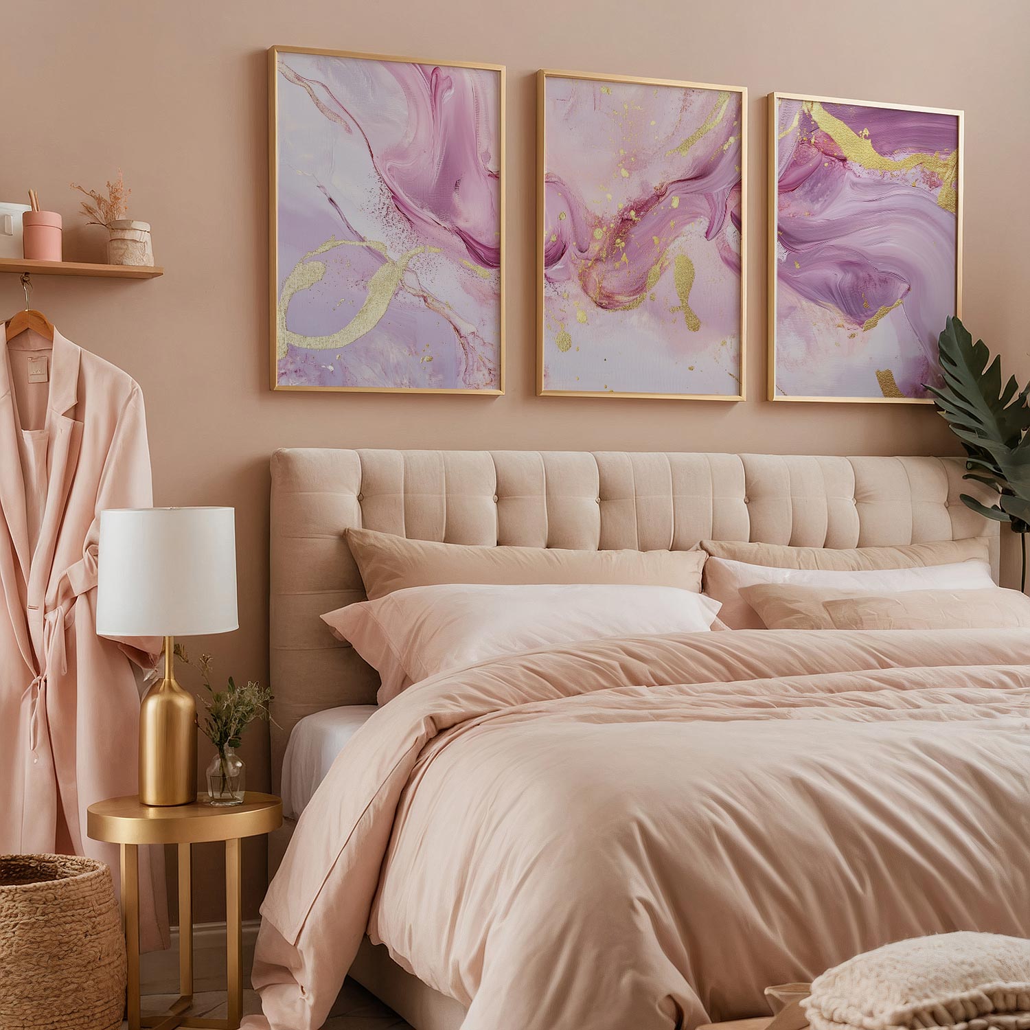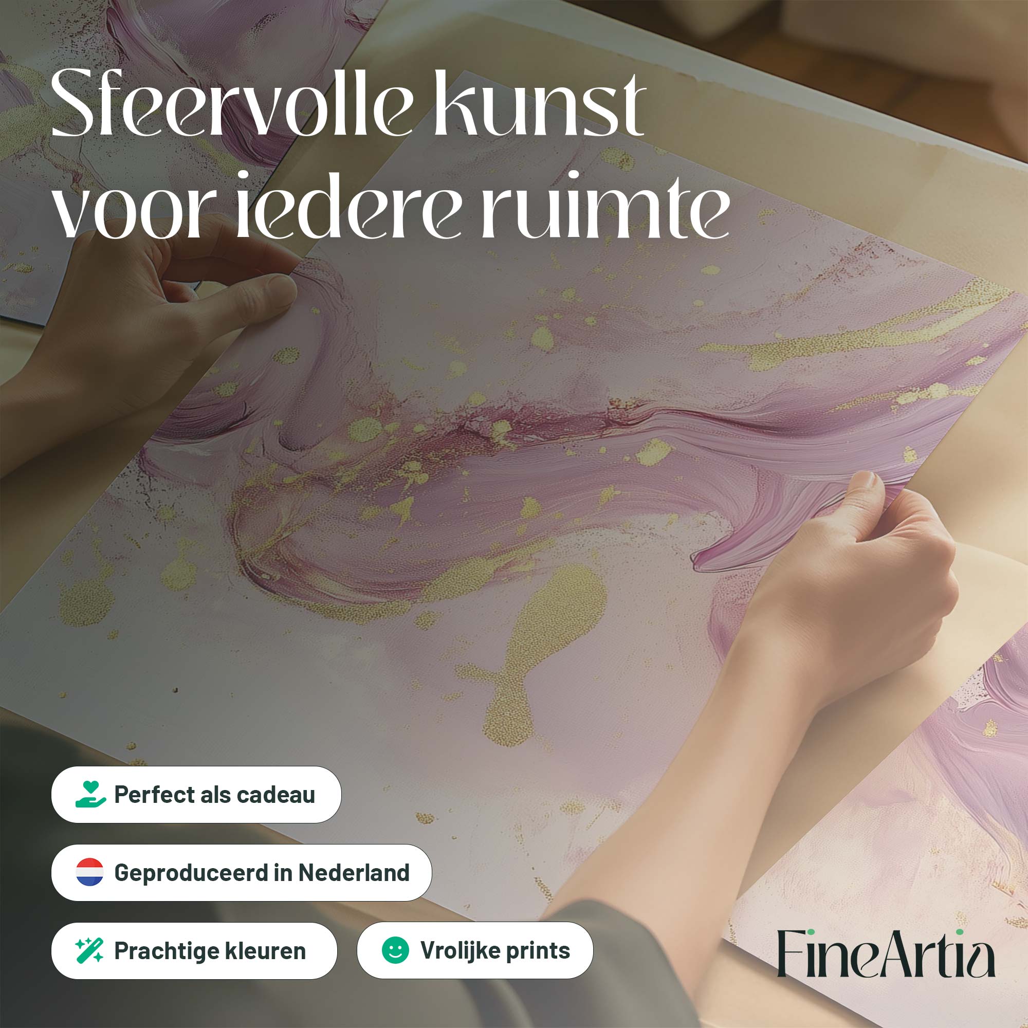 Speelse Roze & Gouden Abstracte Wanddecoratie met Luxe Accenten