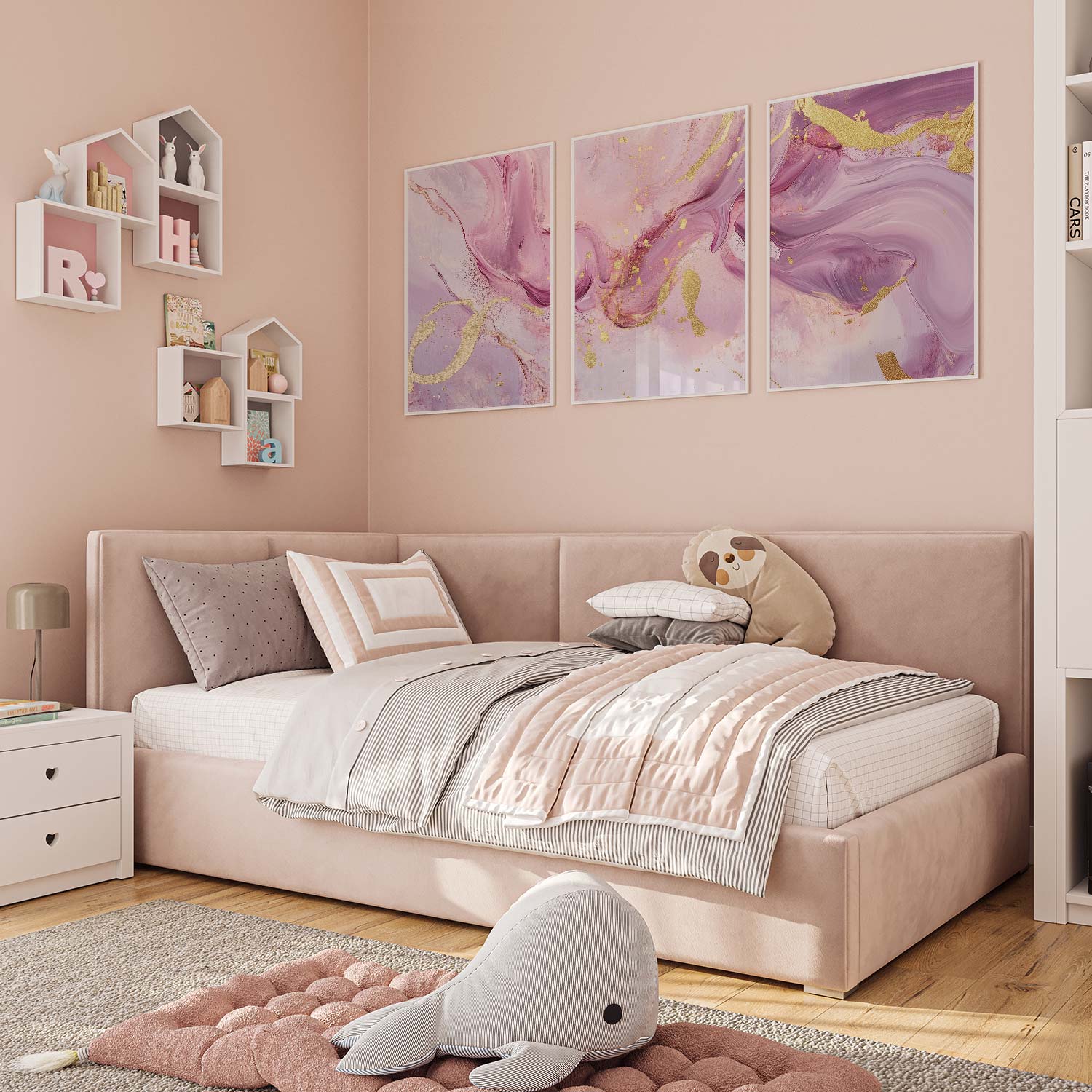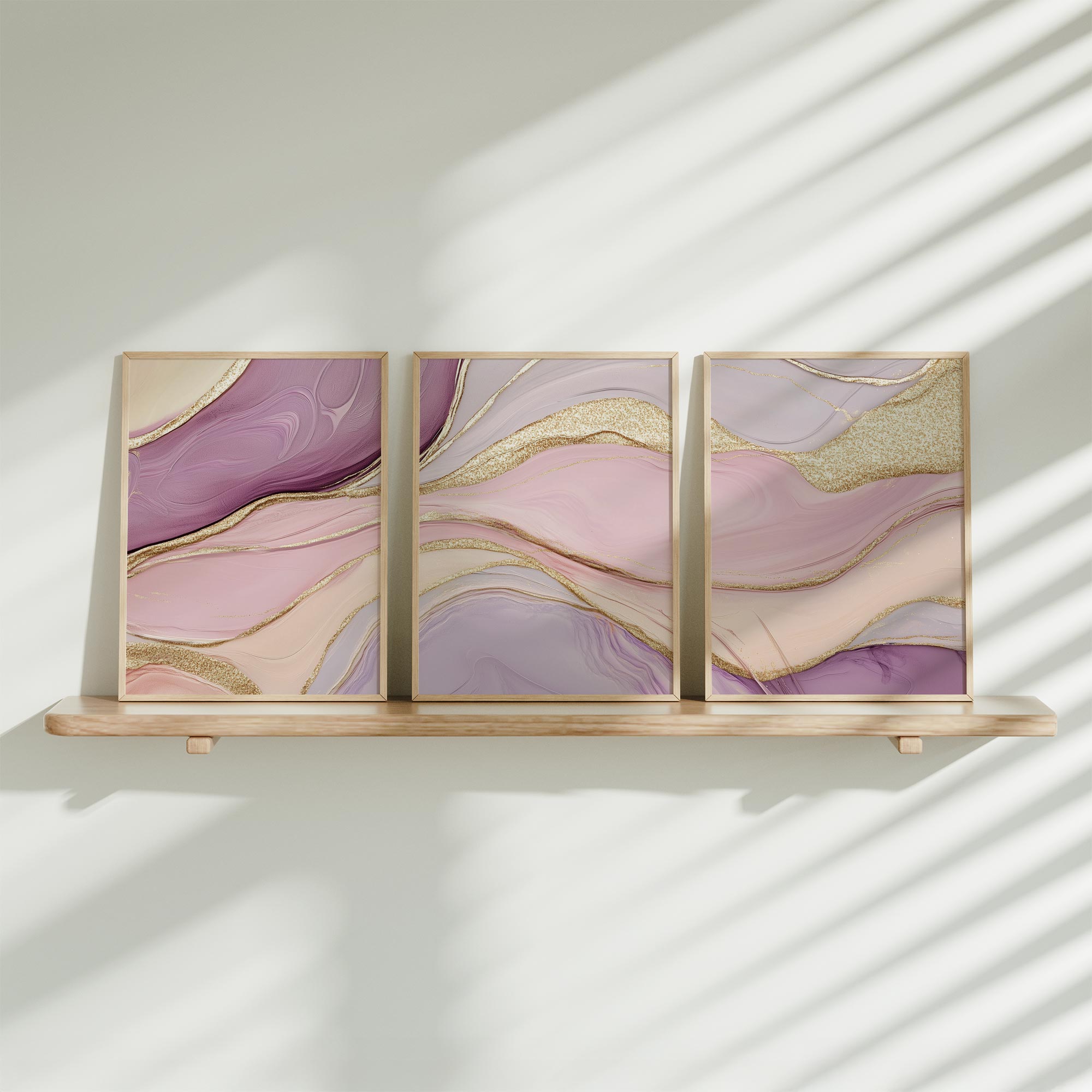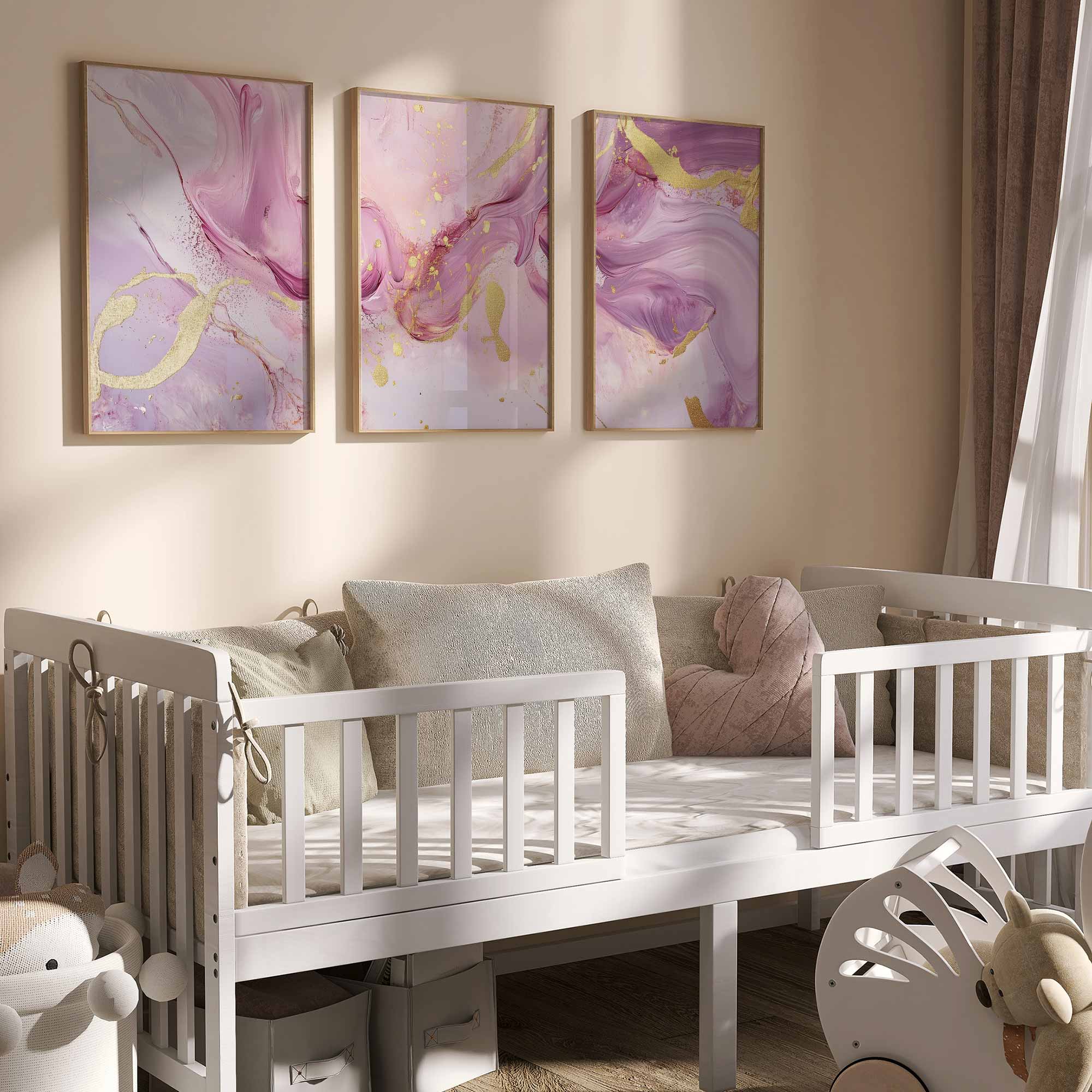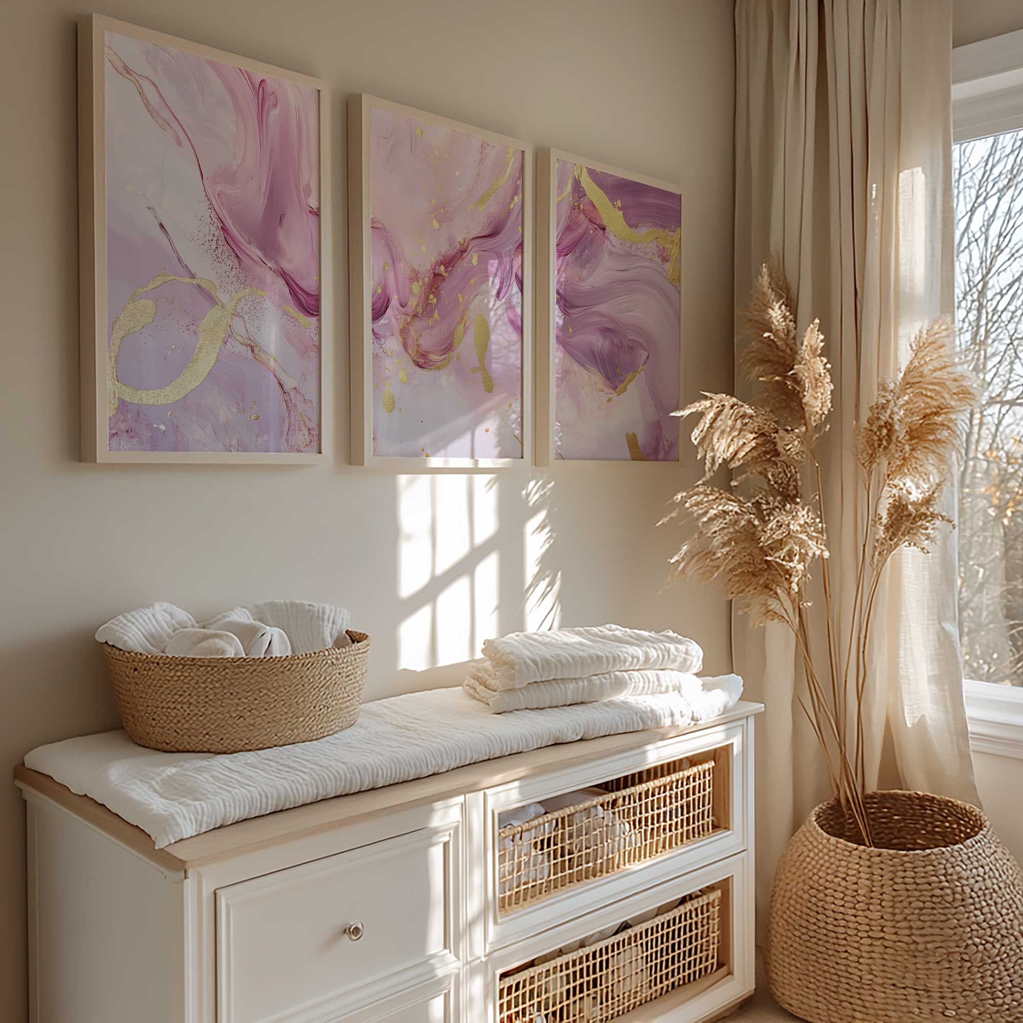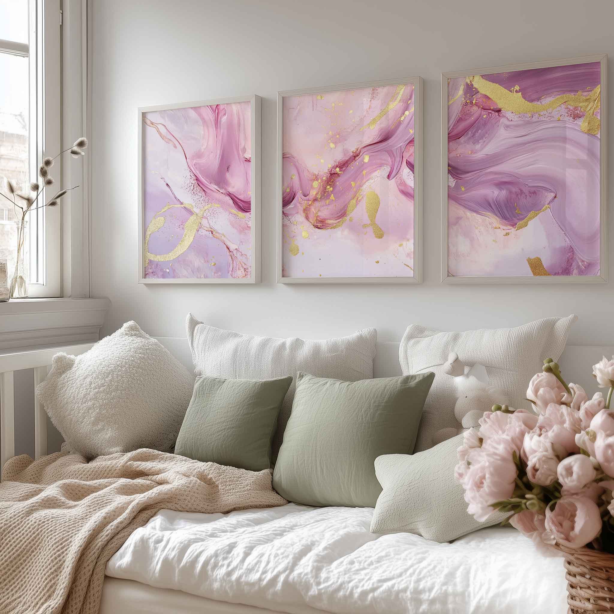 Speelse Roze & Gouden Abstracte Wanddecoratie met Luxe Accenten