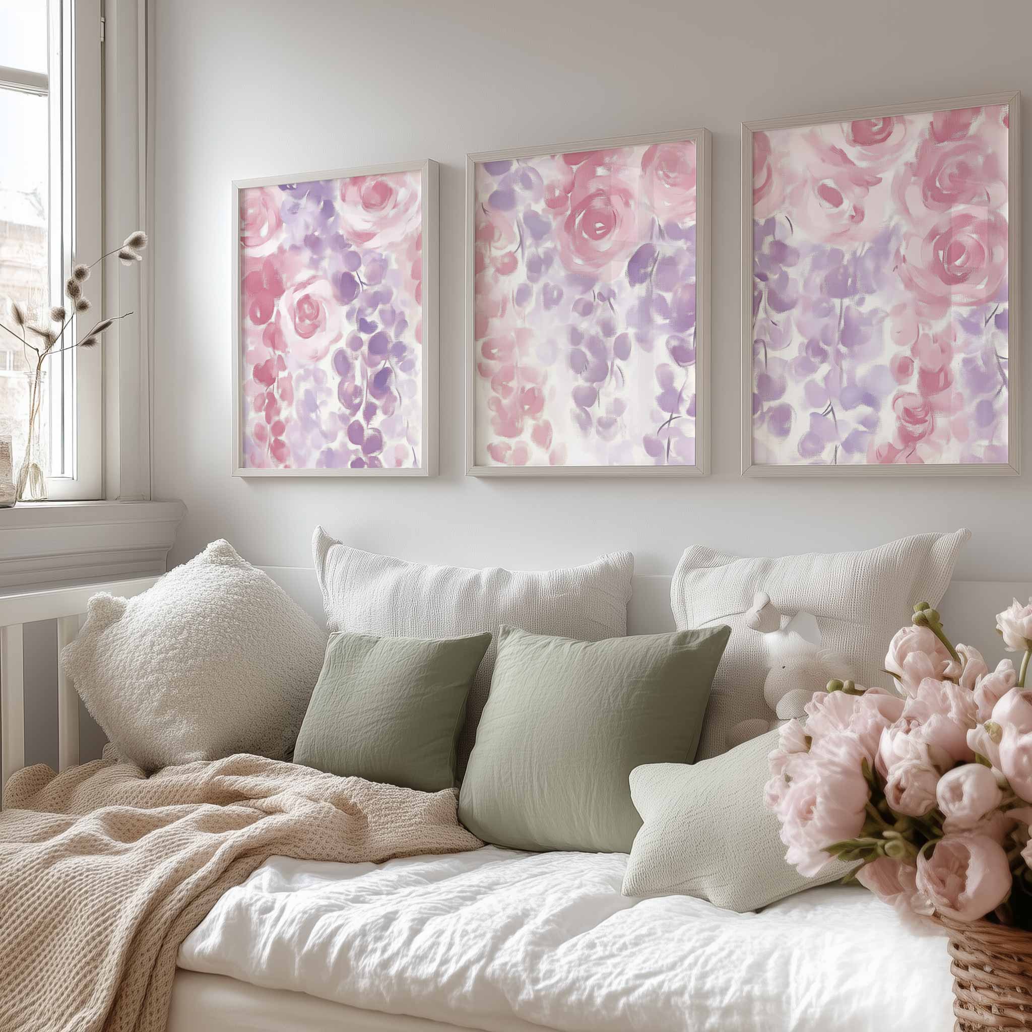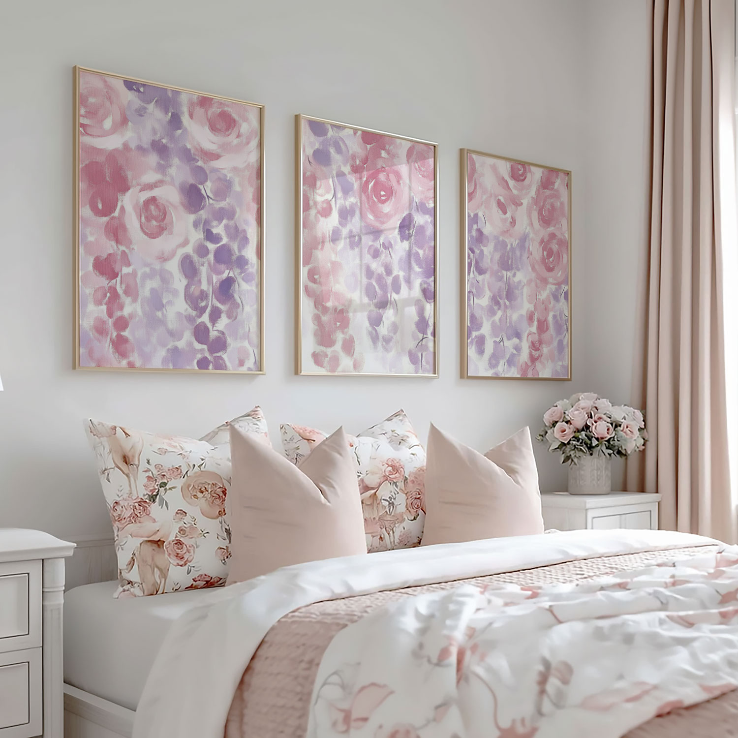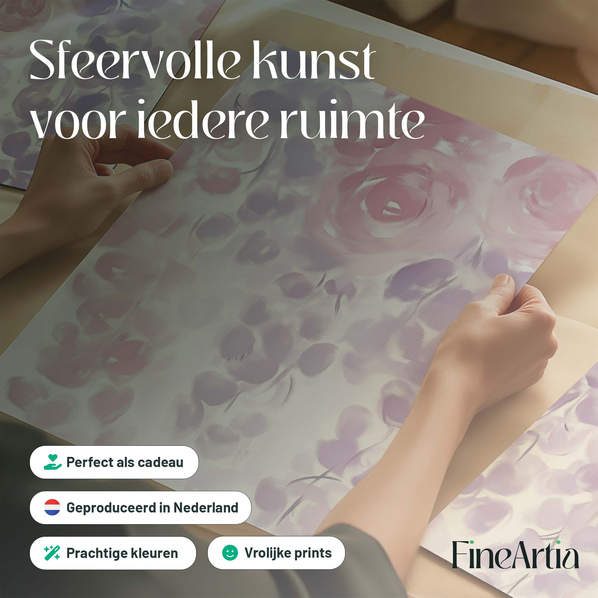Speelse Roze & Paarse Bloemen – Vrolijke Wanddecoratie