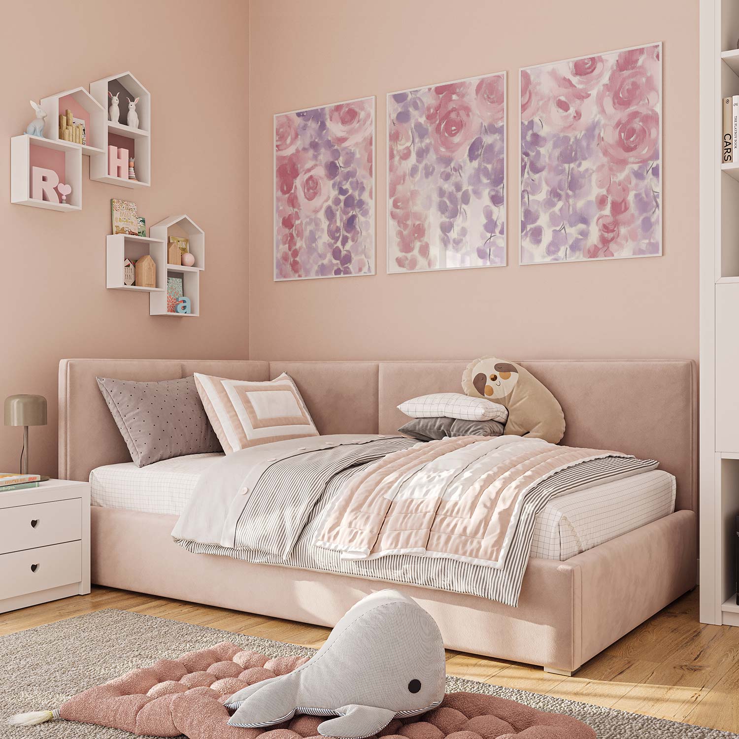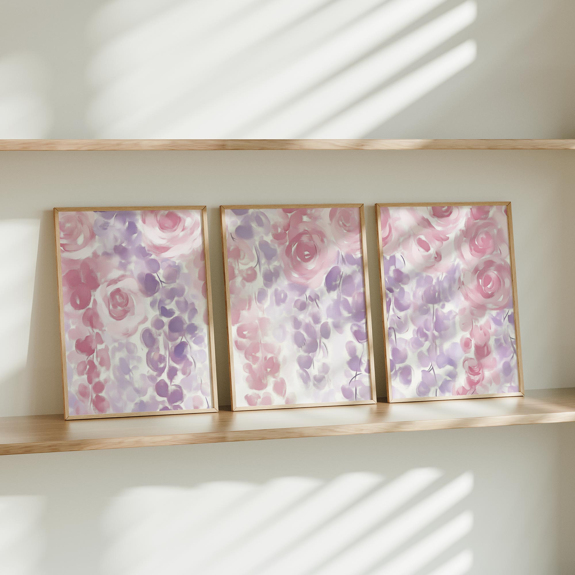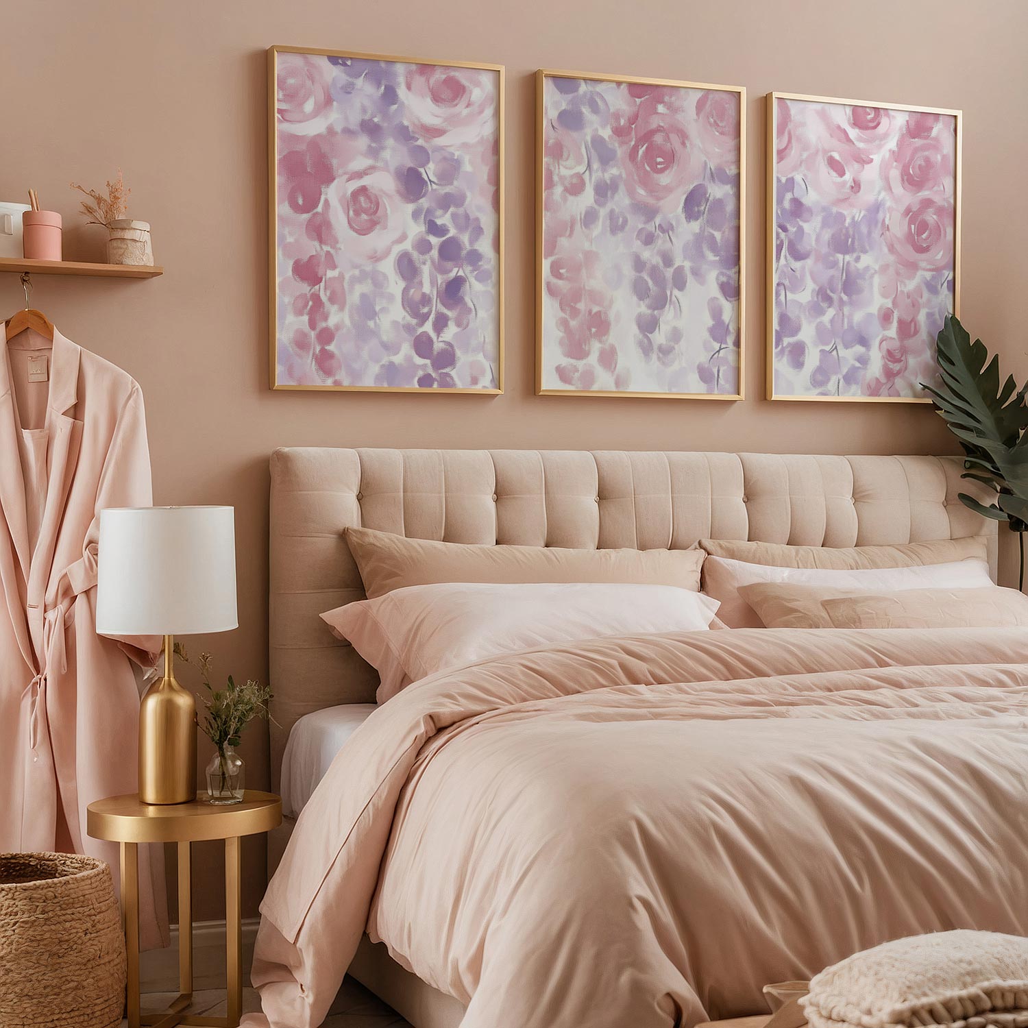 Speelse Roze & Paarse Bloemen – Vrolijke Wanddecoratie