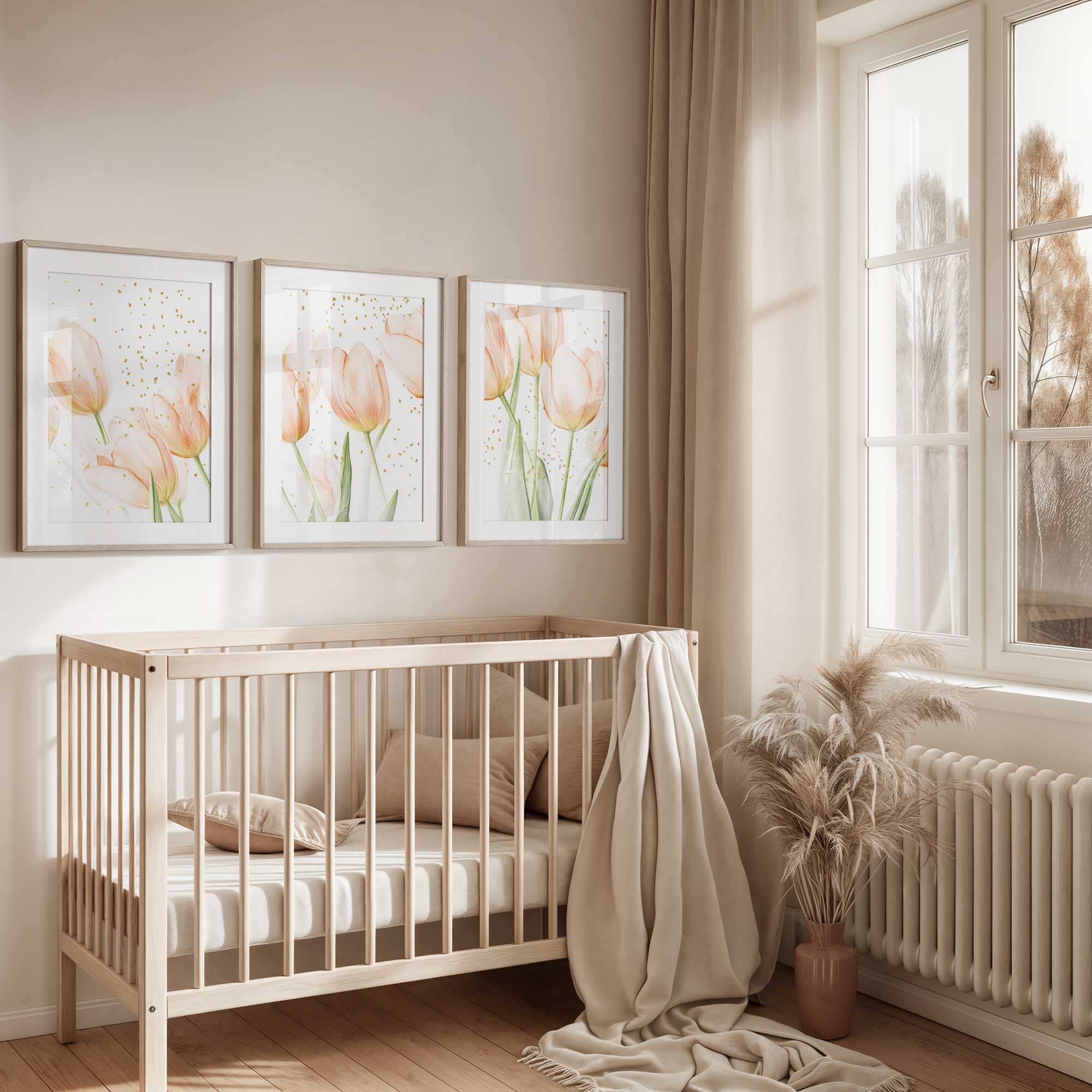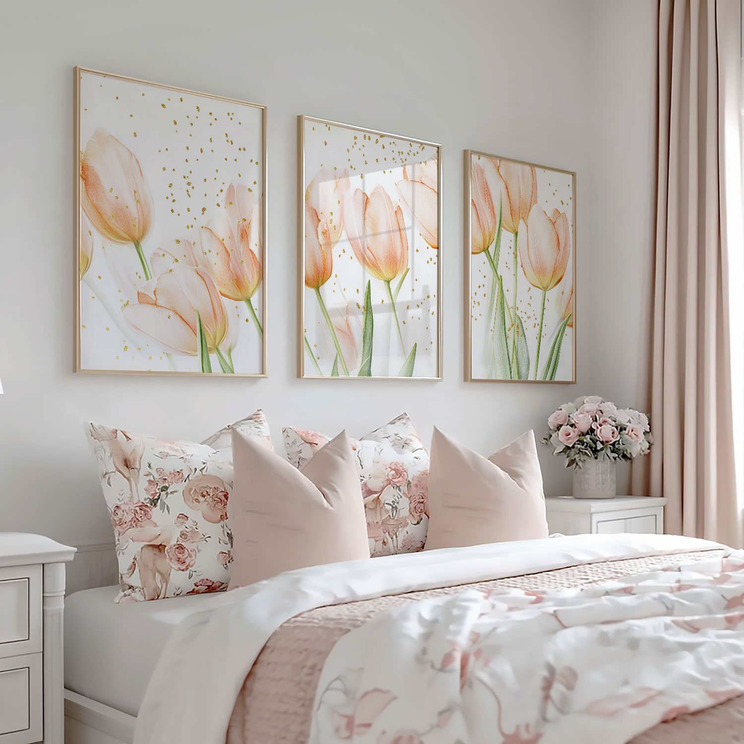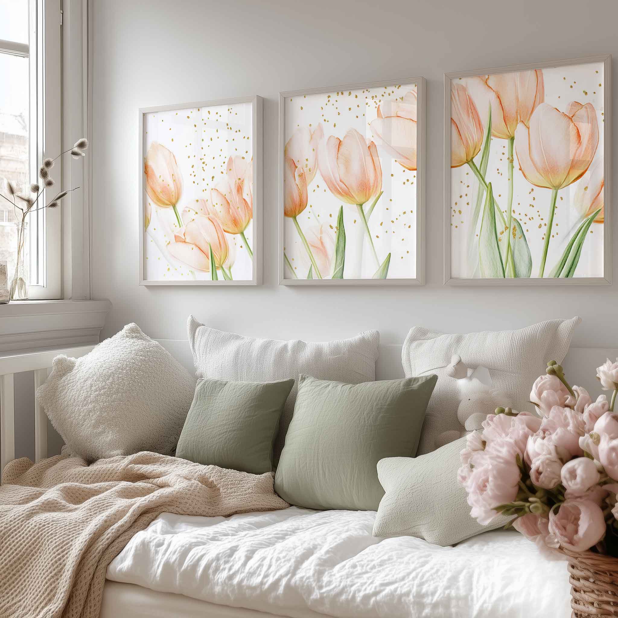 Speelse Roze Tulpen – Frisse Stijlvolle Wanddecoratie