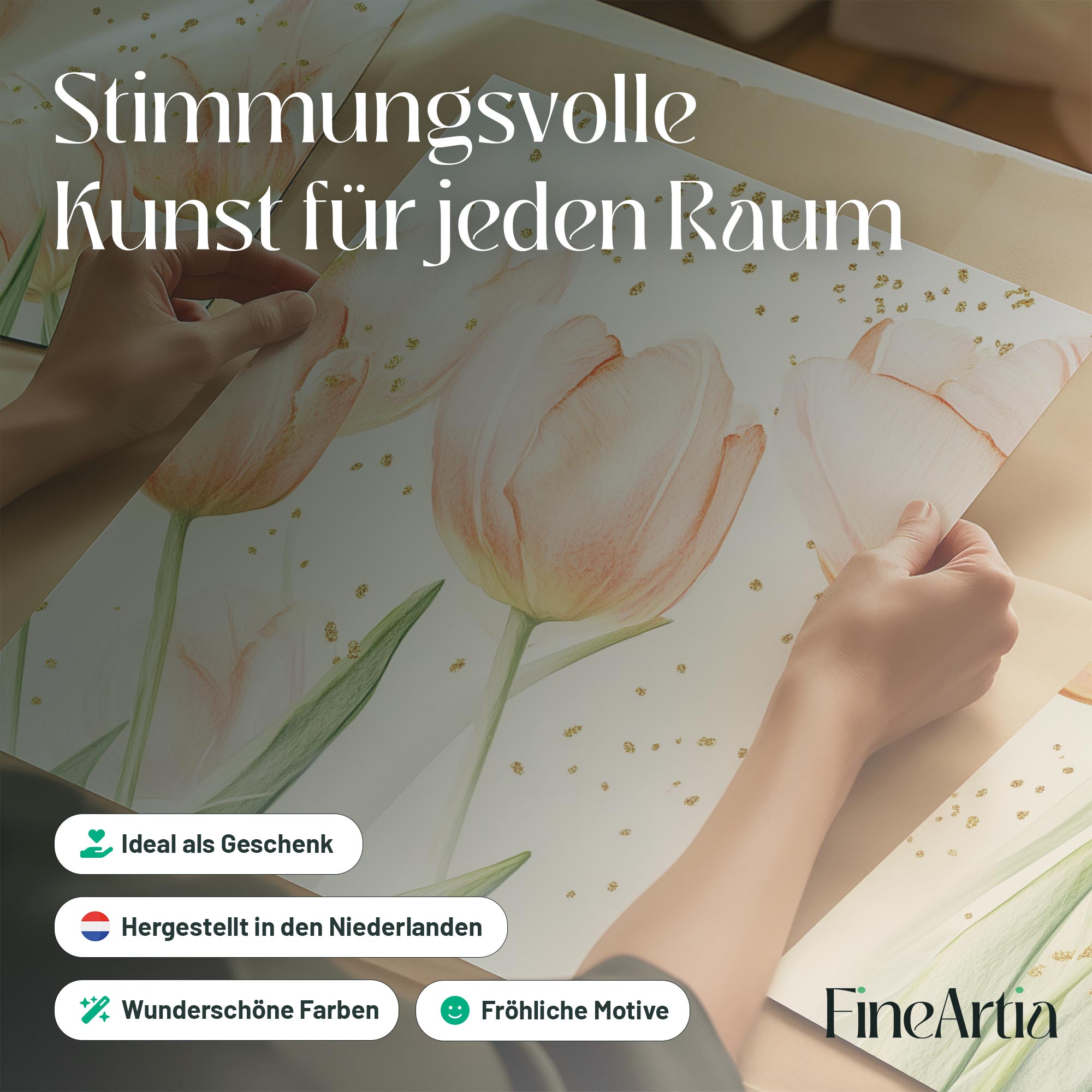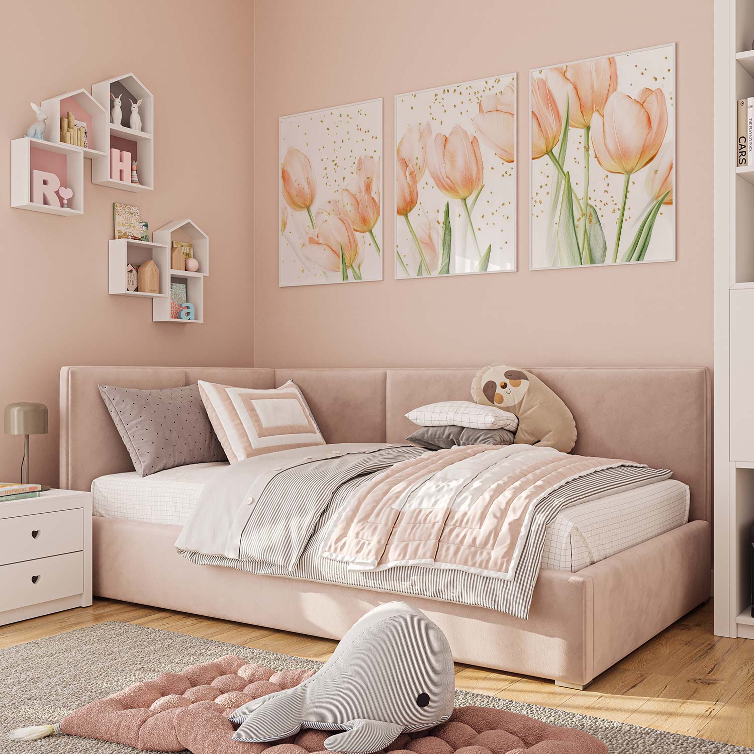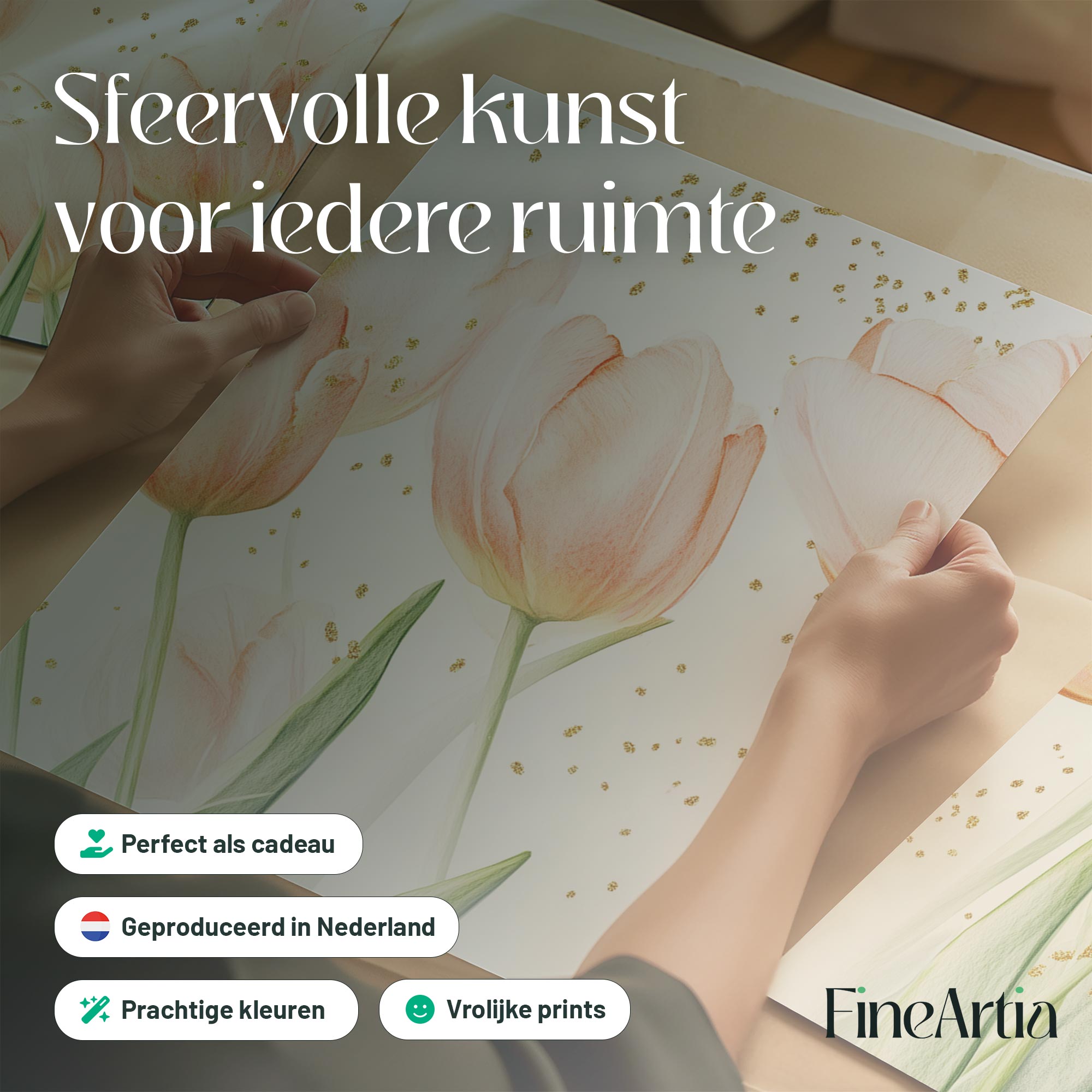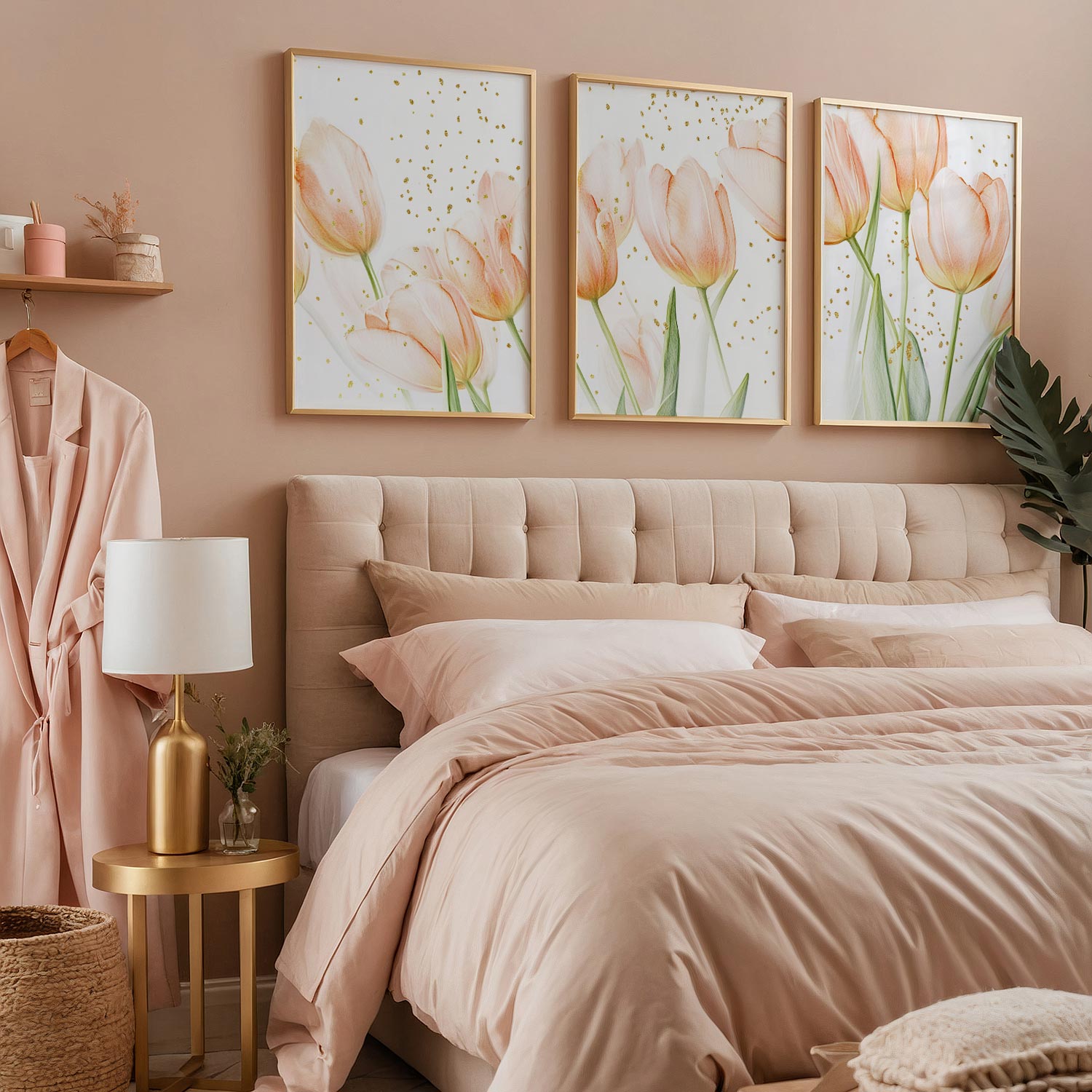 Speelse Roze Tulpen – Frisse Stijlvolle Wanddecoratie