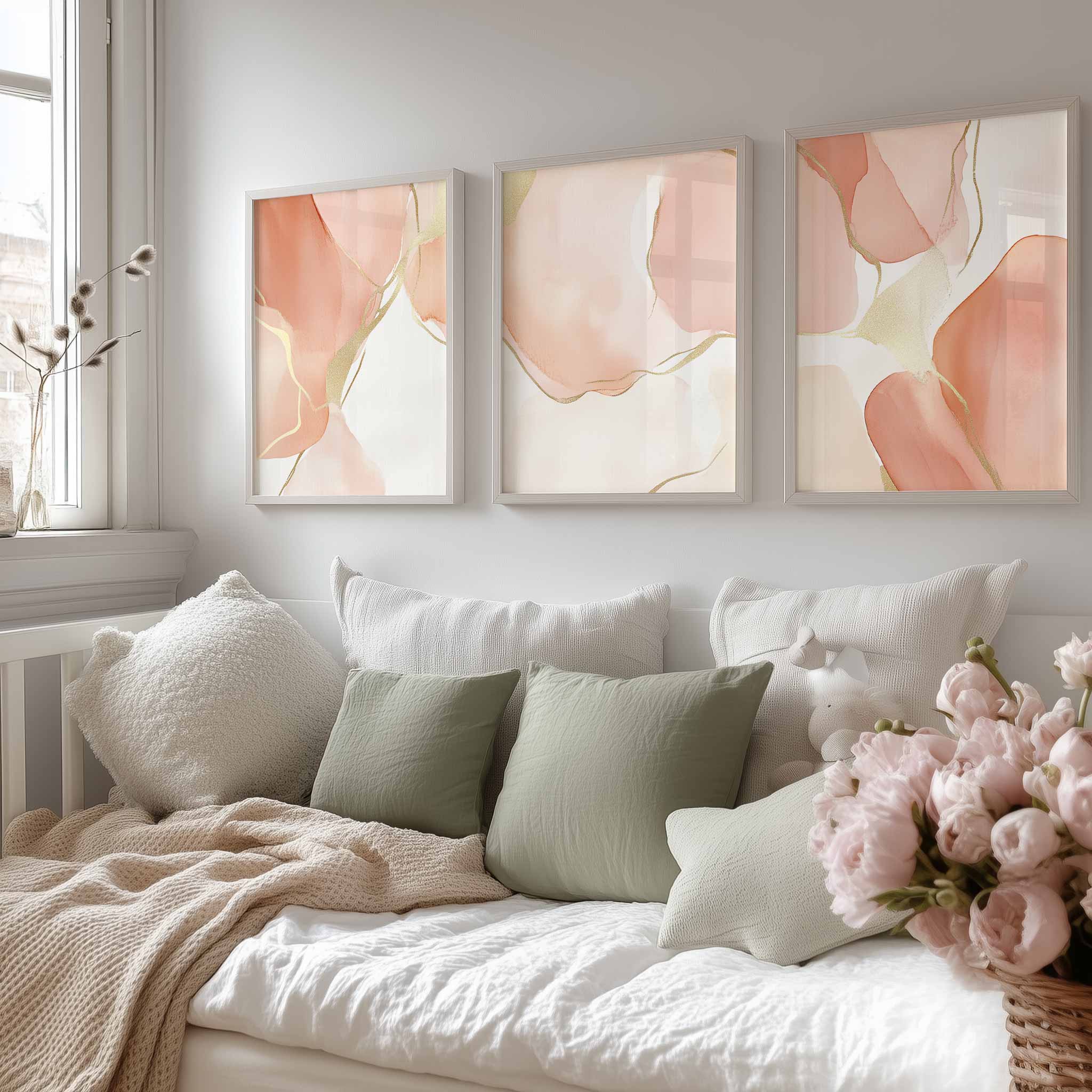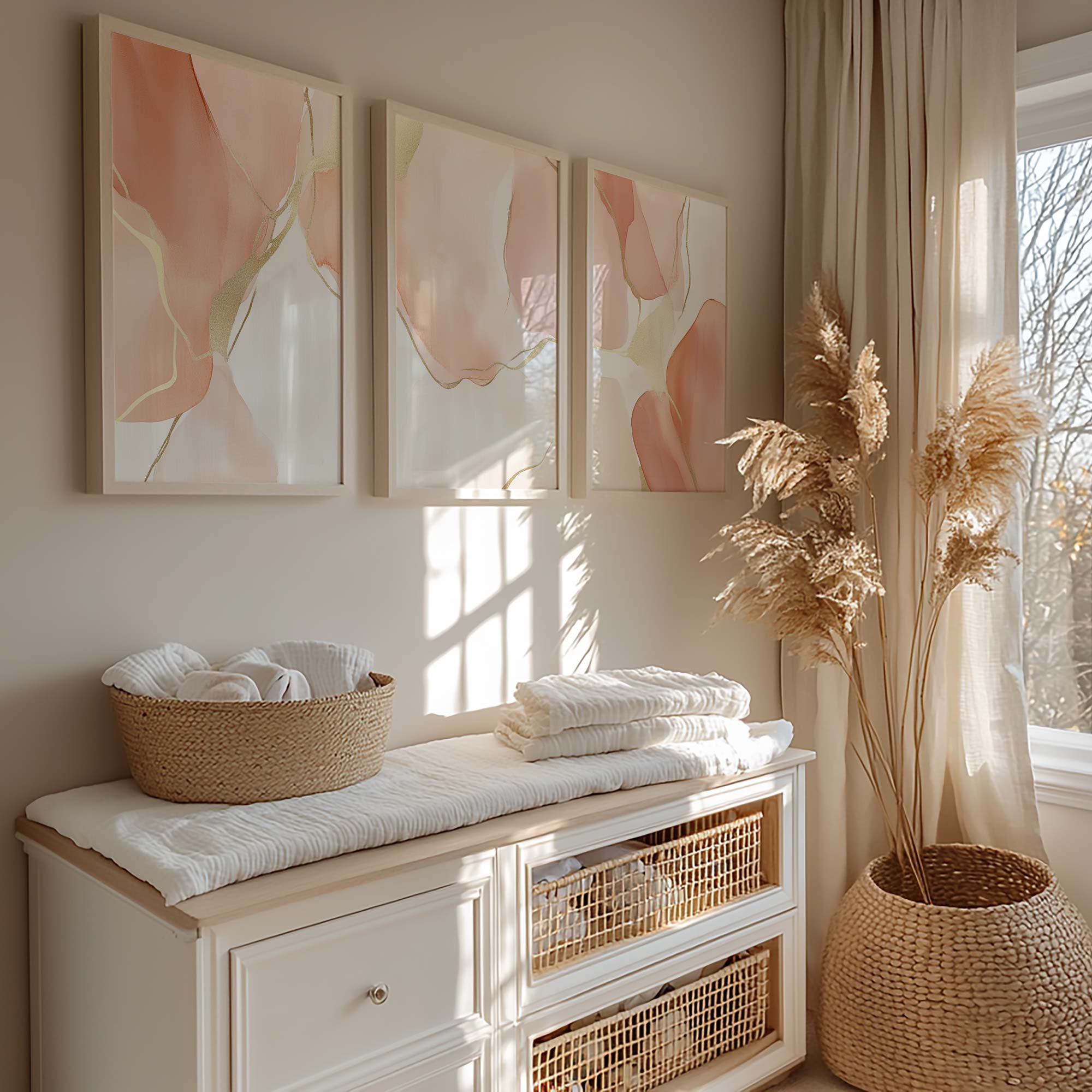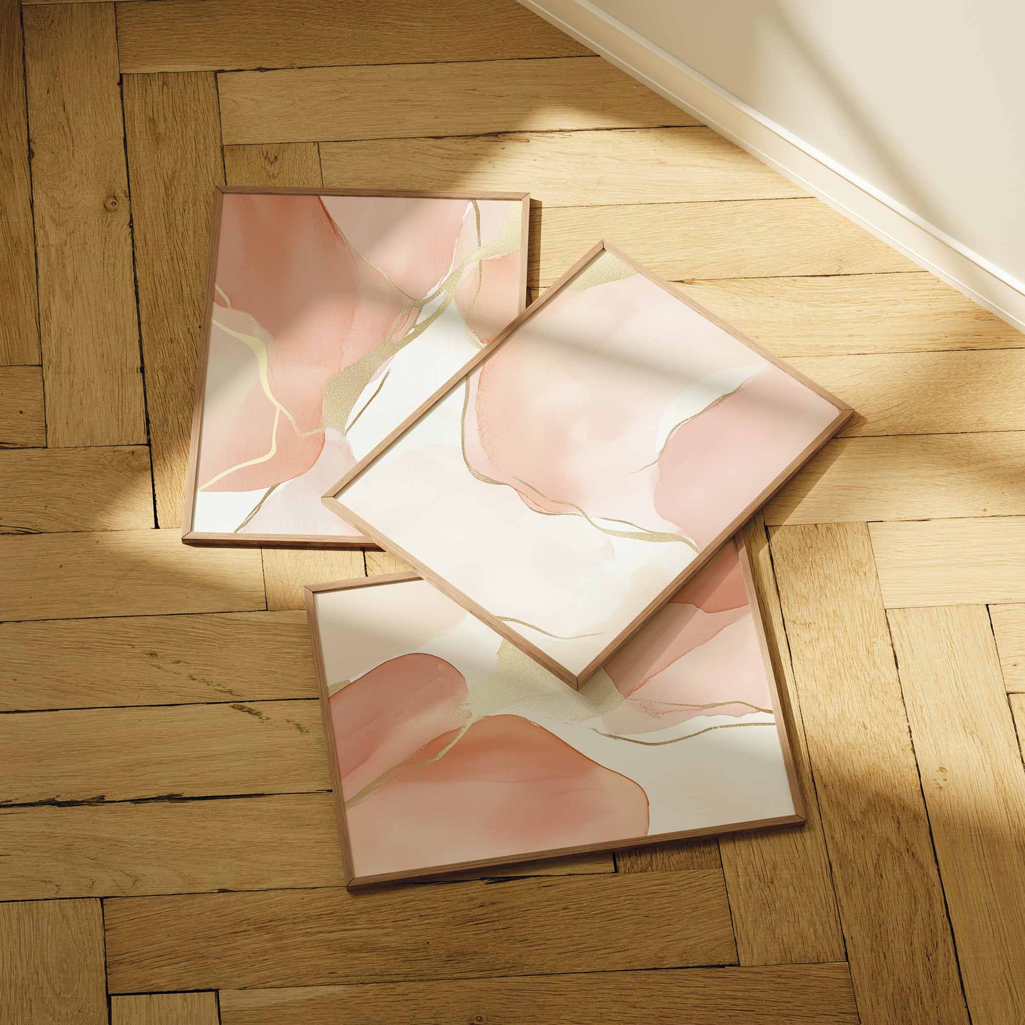 Speelse Roze Watercolor Wanddecoratie met Dynamische Vormen