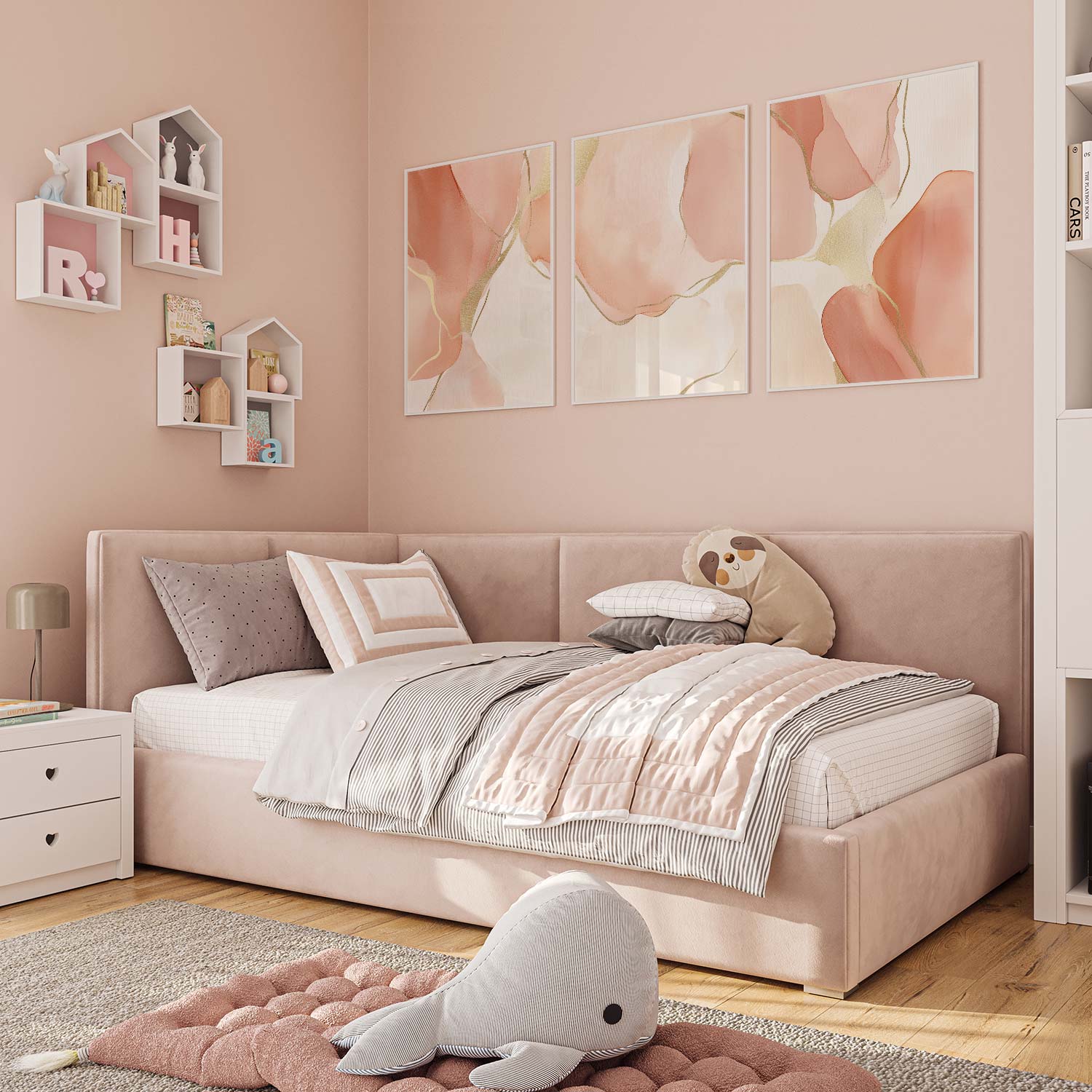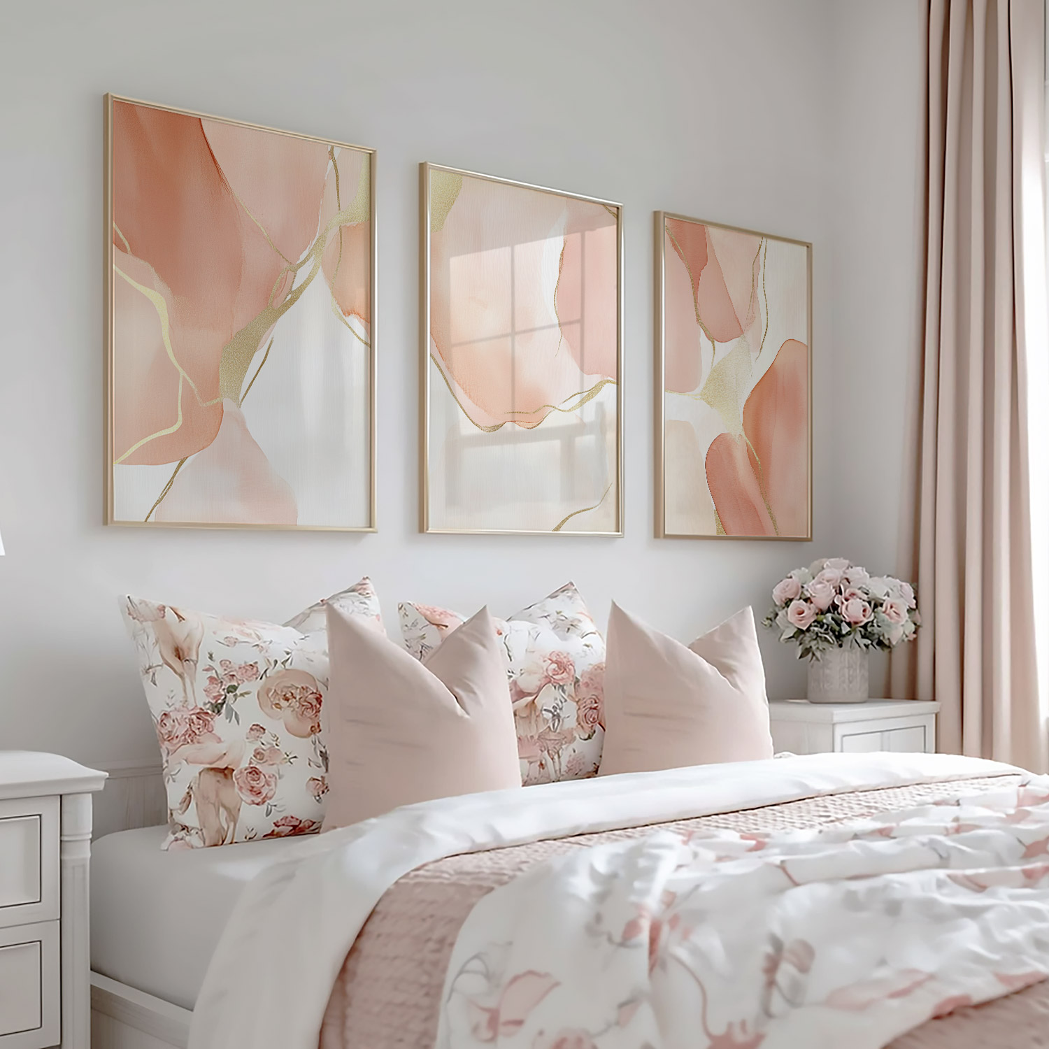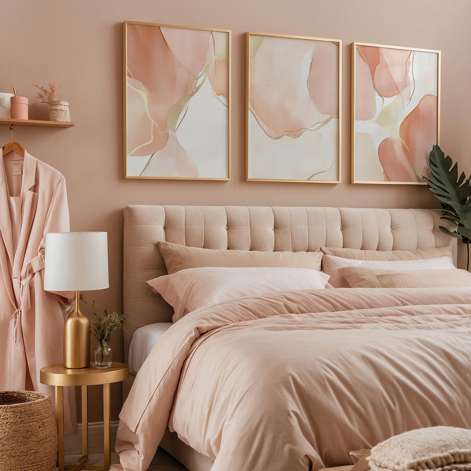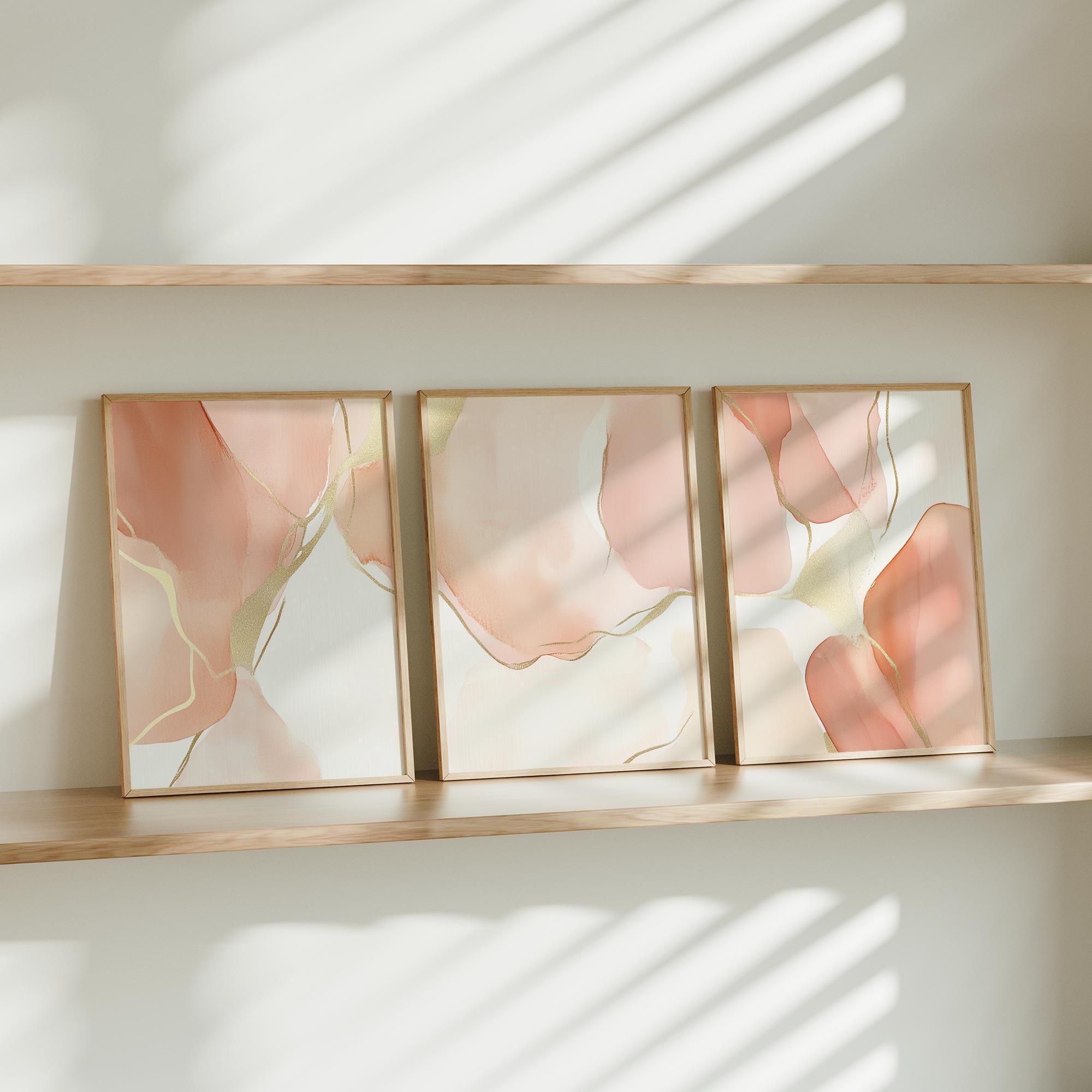 Speelse Roze Watercolor Wanddecoratie met Dynamische Vormen