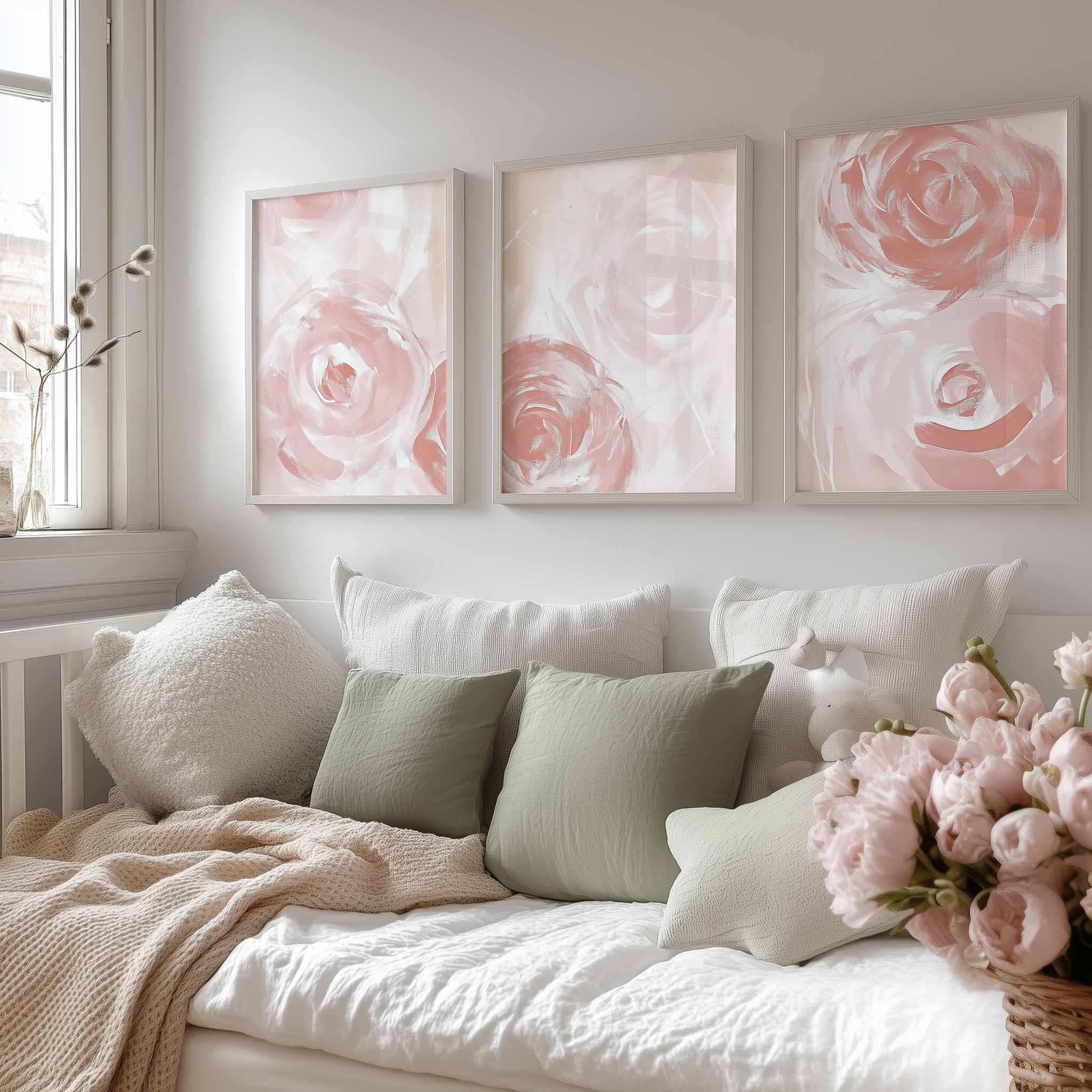 Speelse Rozen – Abstracte Pastel Muurdecoratie