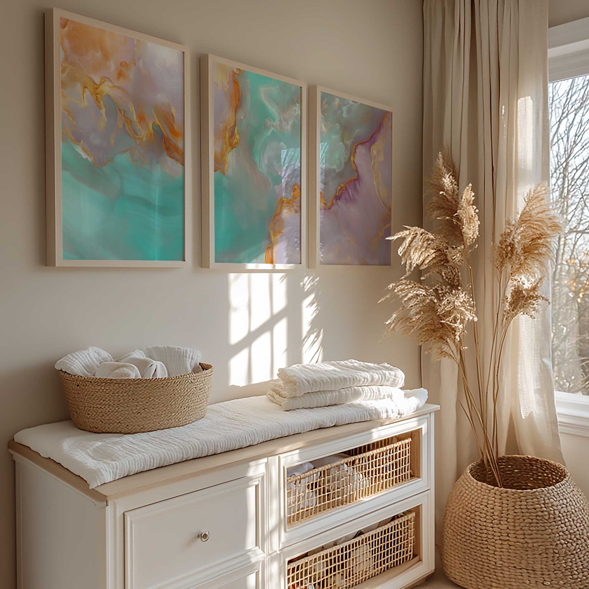 Terug naar collectie Posters Speelse Swirls in Levendige Blauw, Oranje & Paars