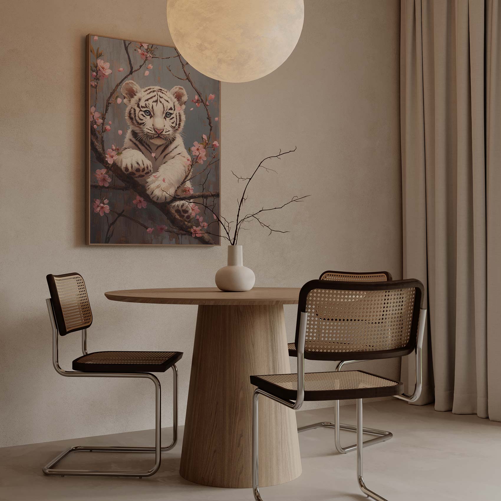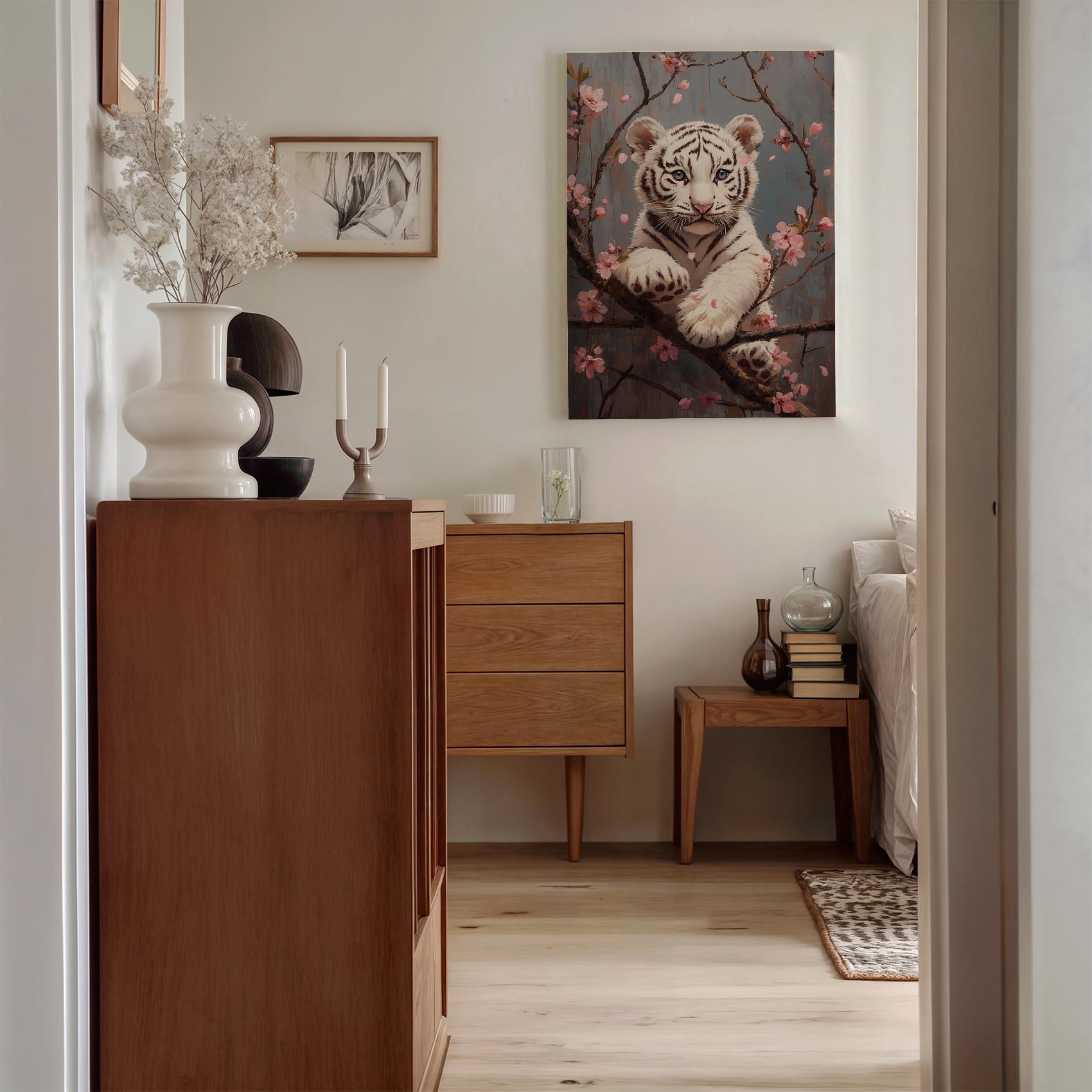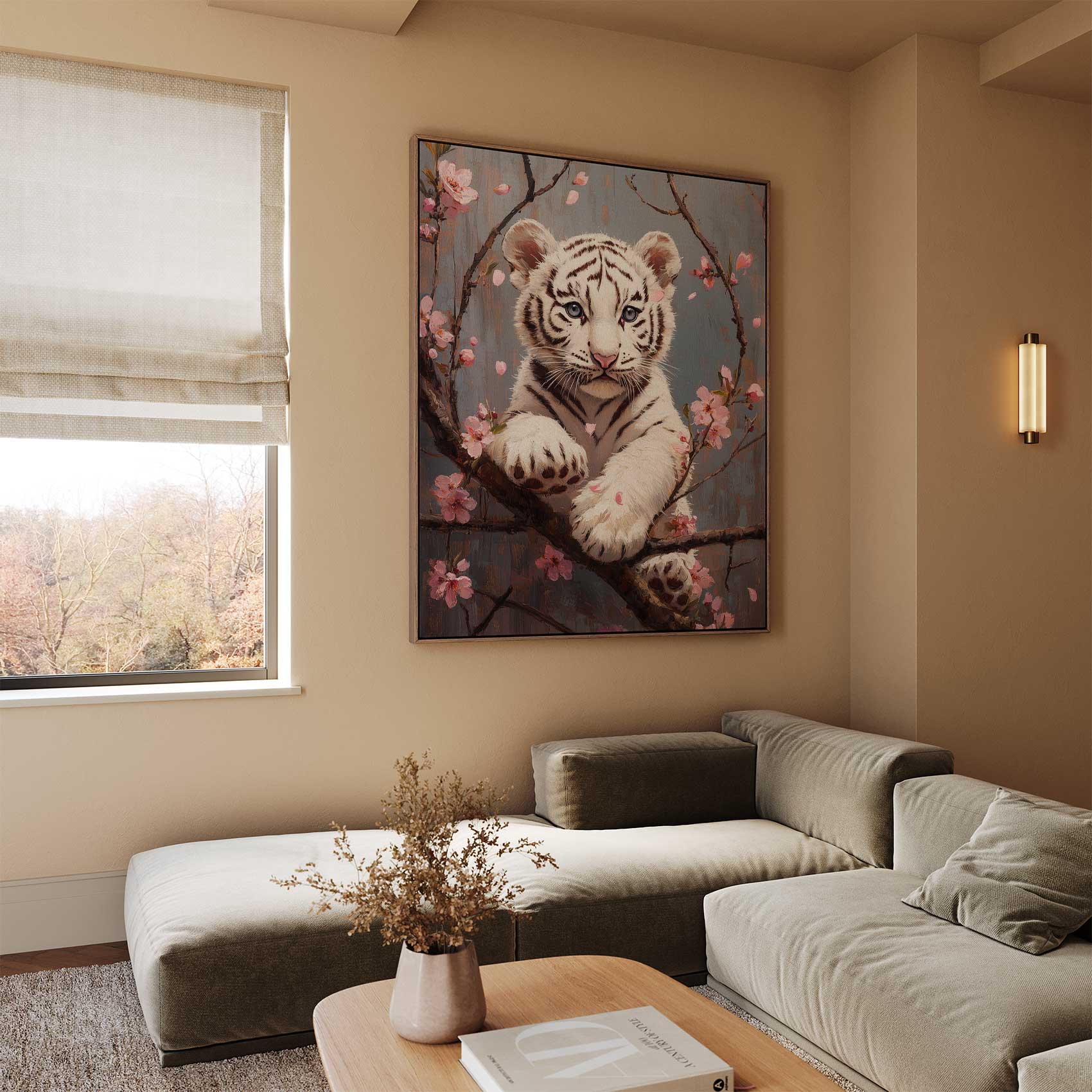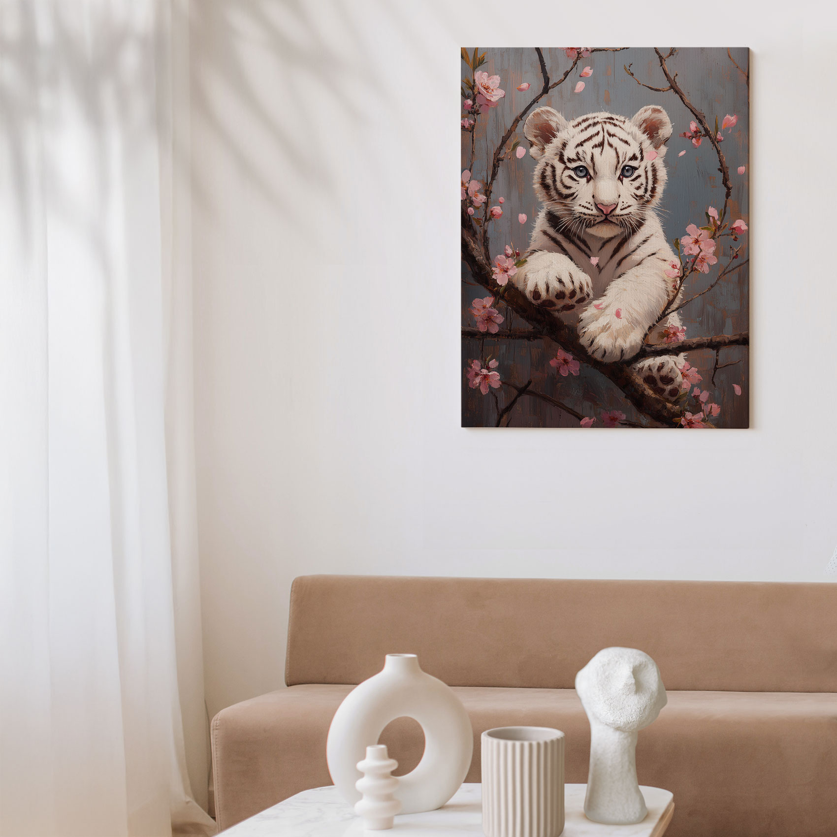 Speelse tijger in bloesemtak