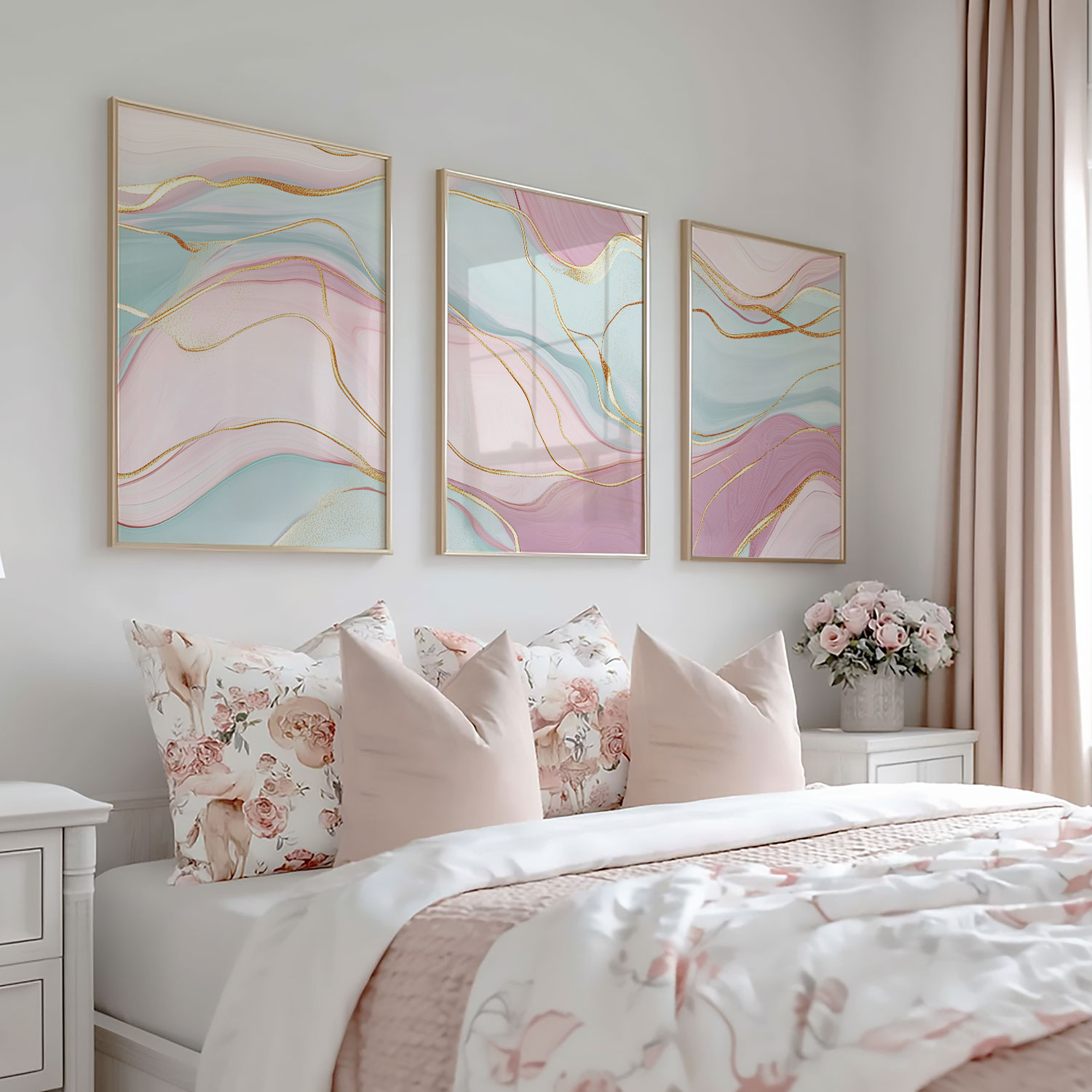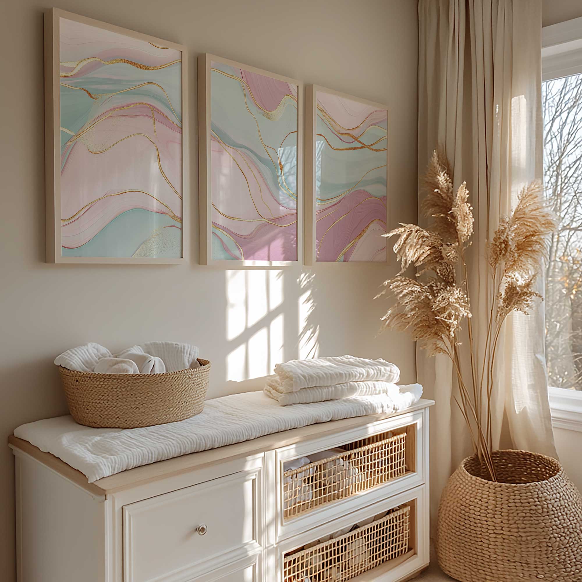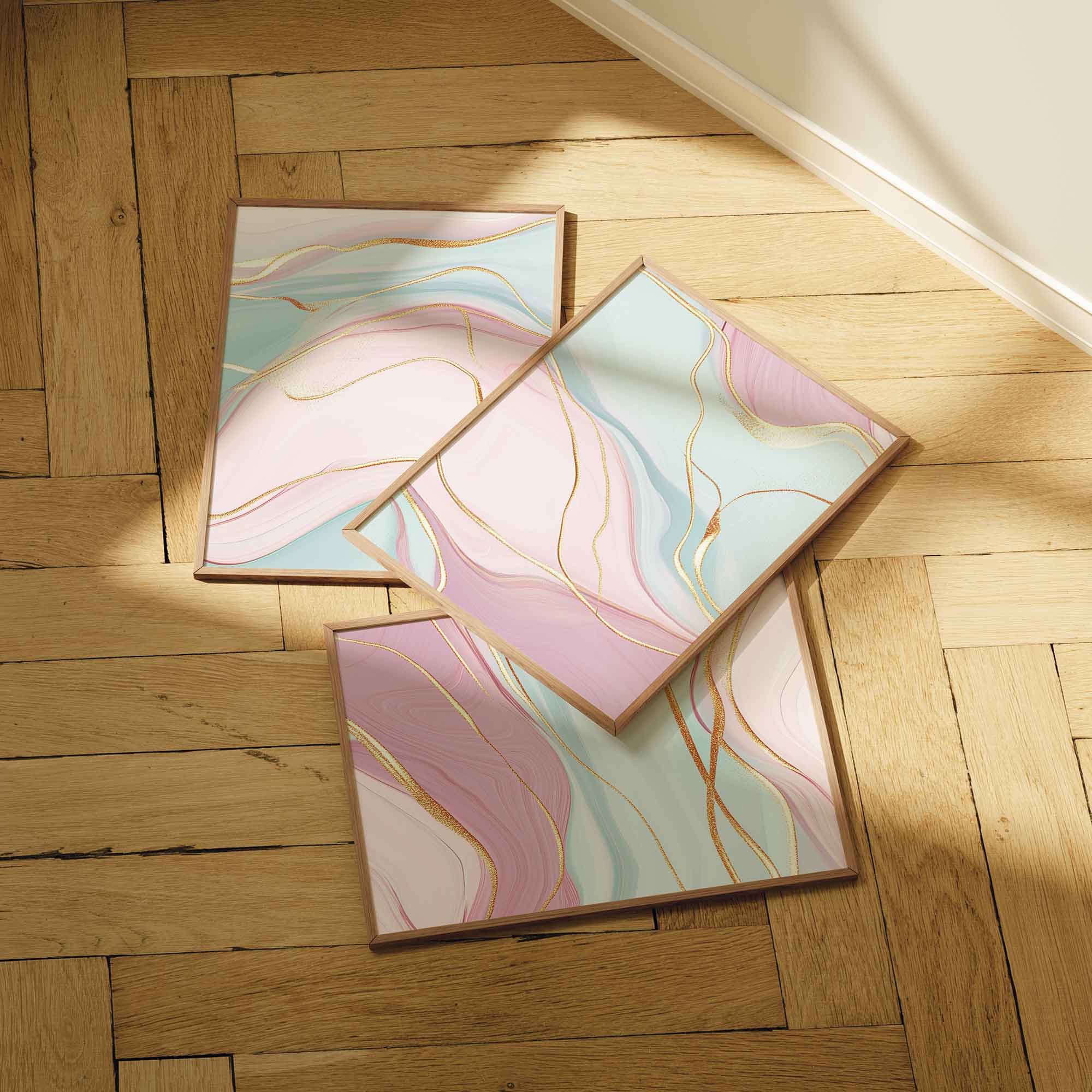 Speelse Waterkleuren: Abstracte Dynamiek in Roze, Blauw & Groen