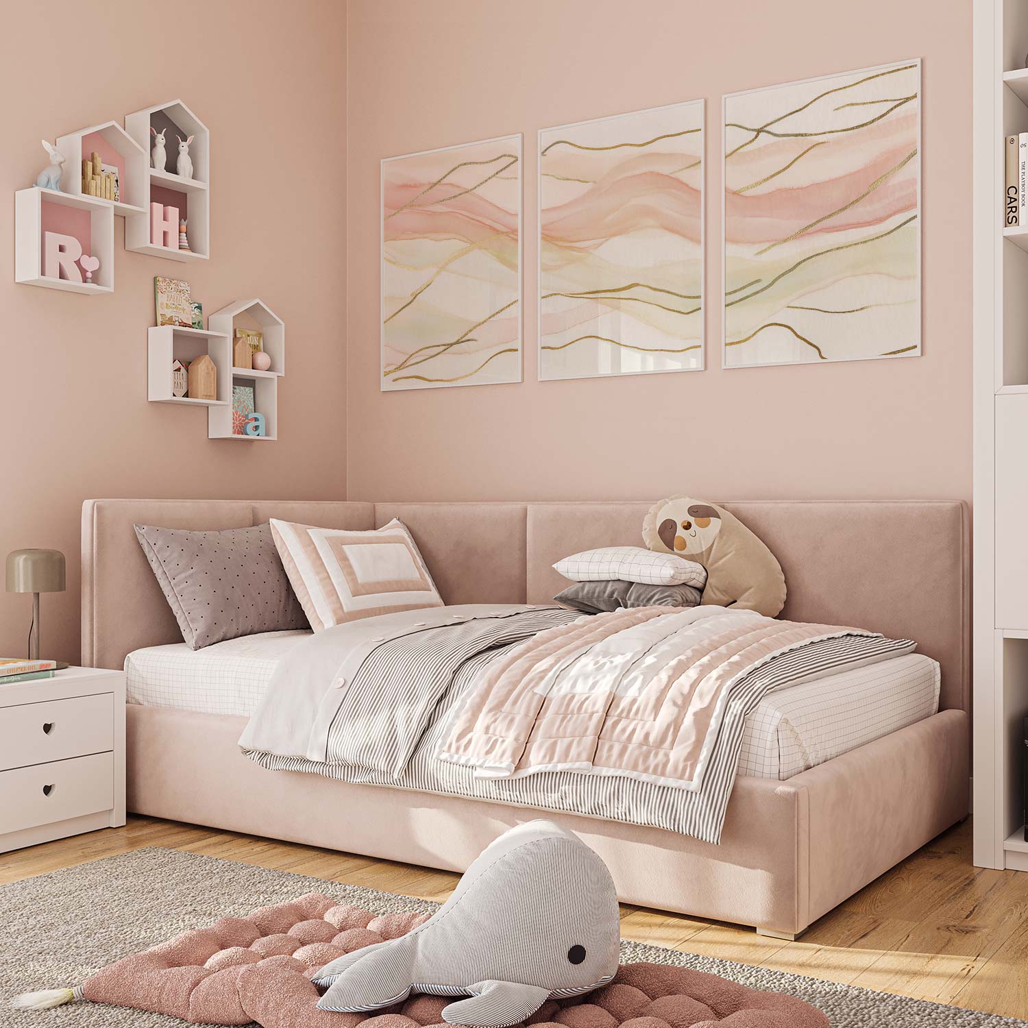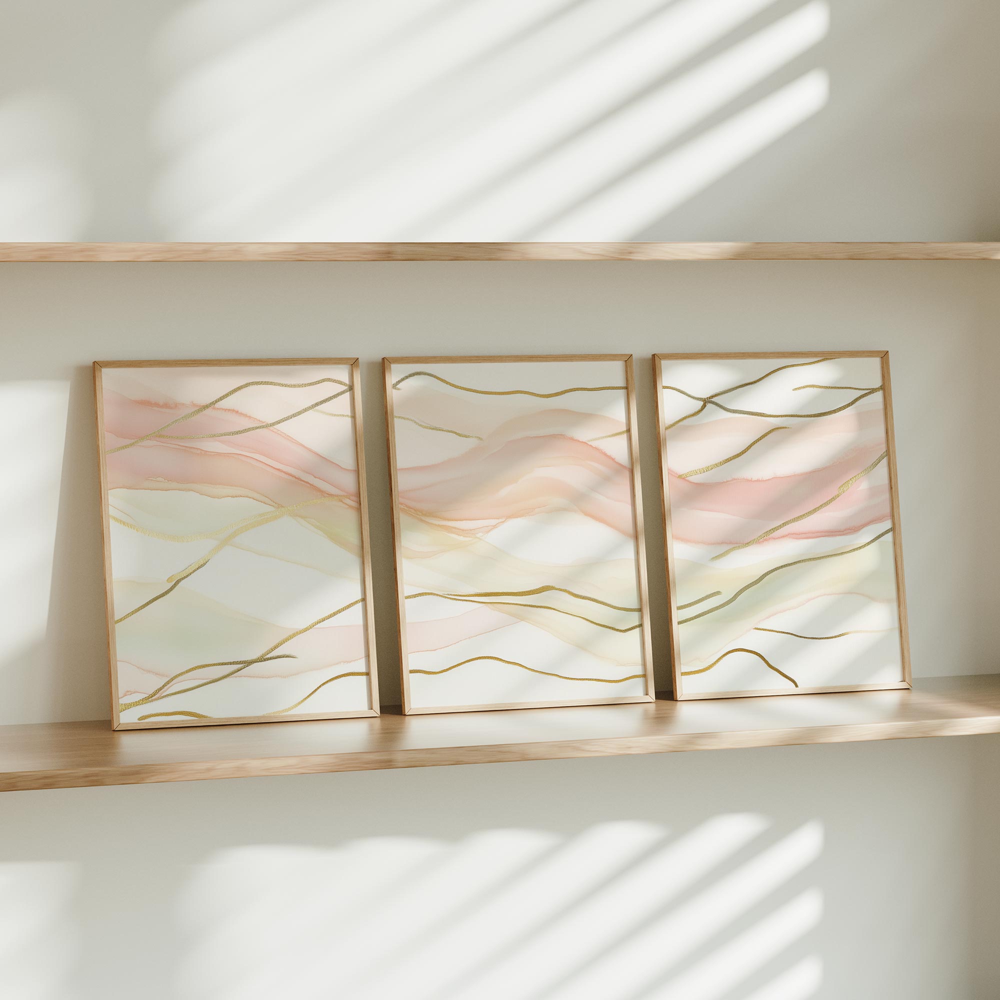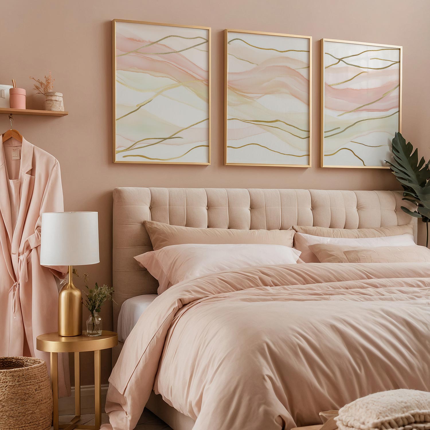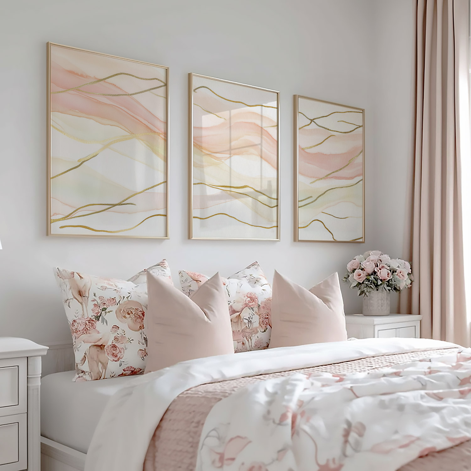 Speelse Waterverf Lijnen in Roze & Wit – Stijlvolle Wanddecoratie