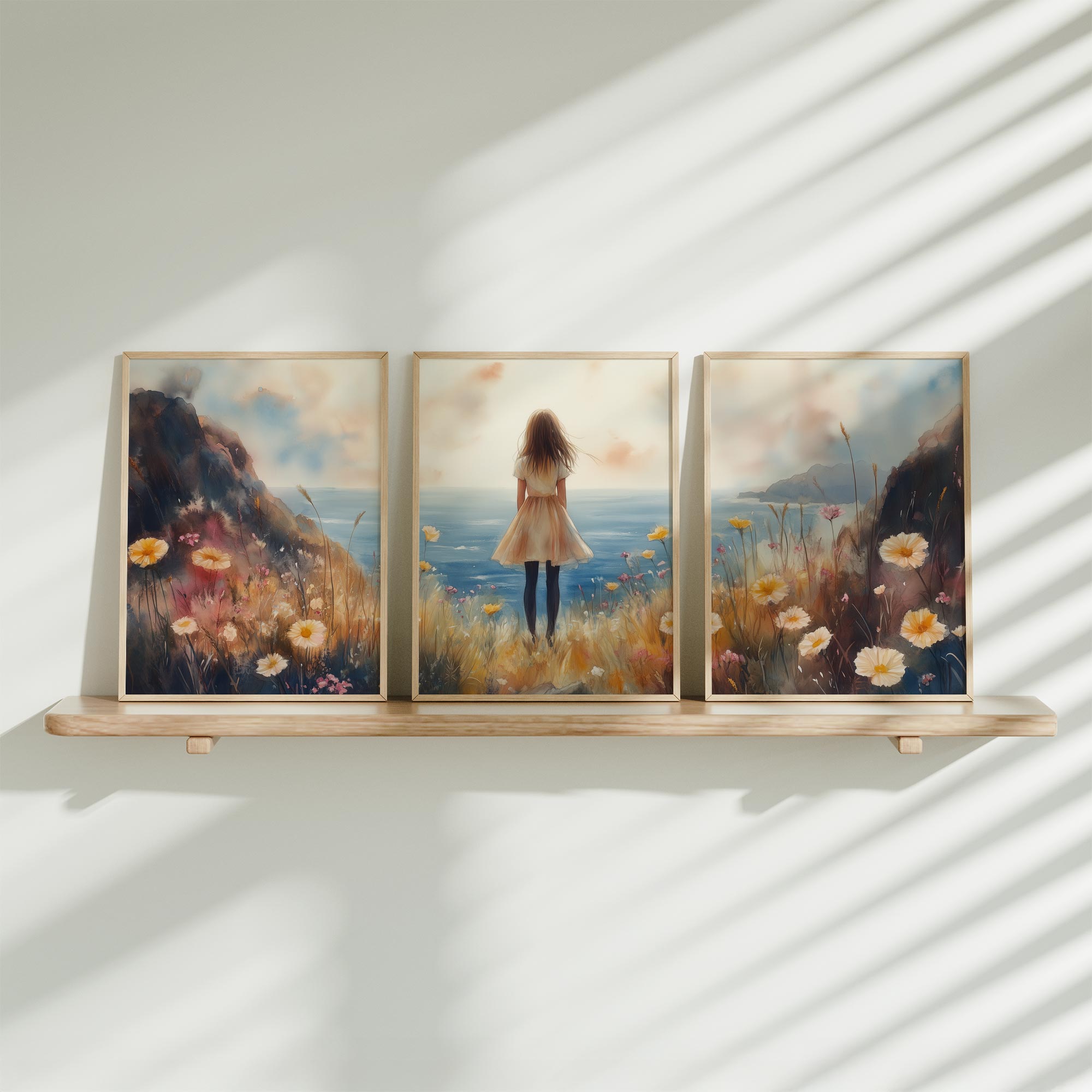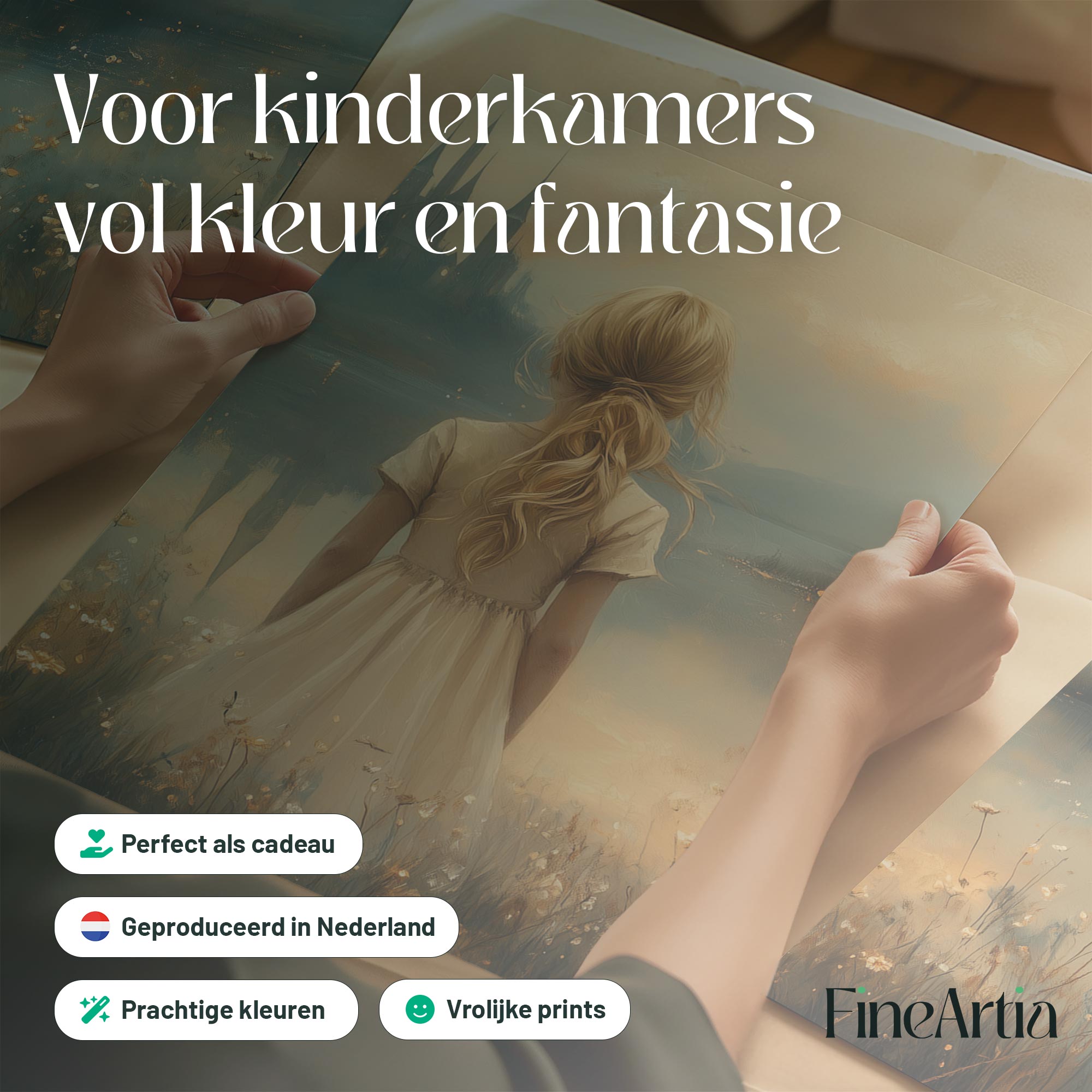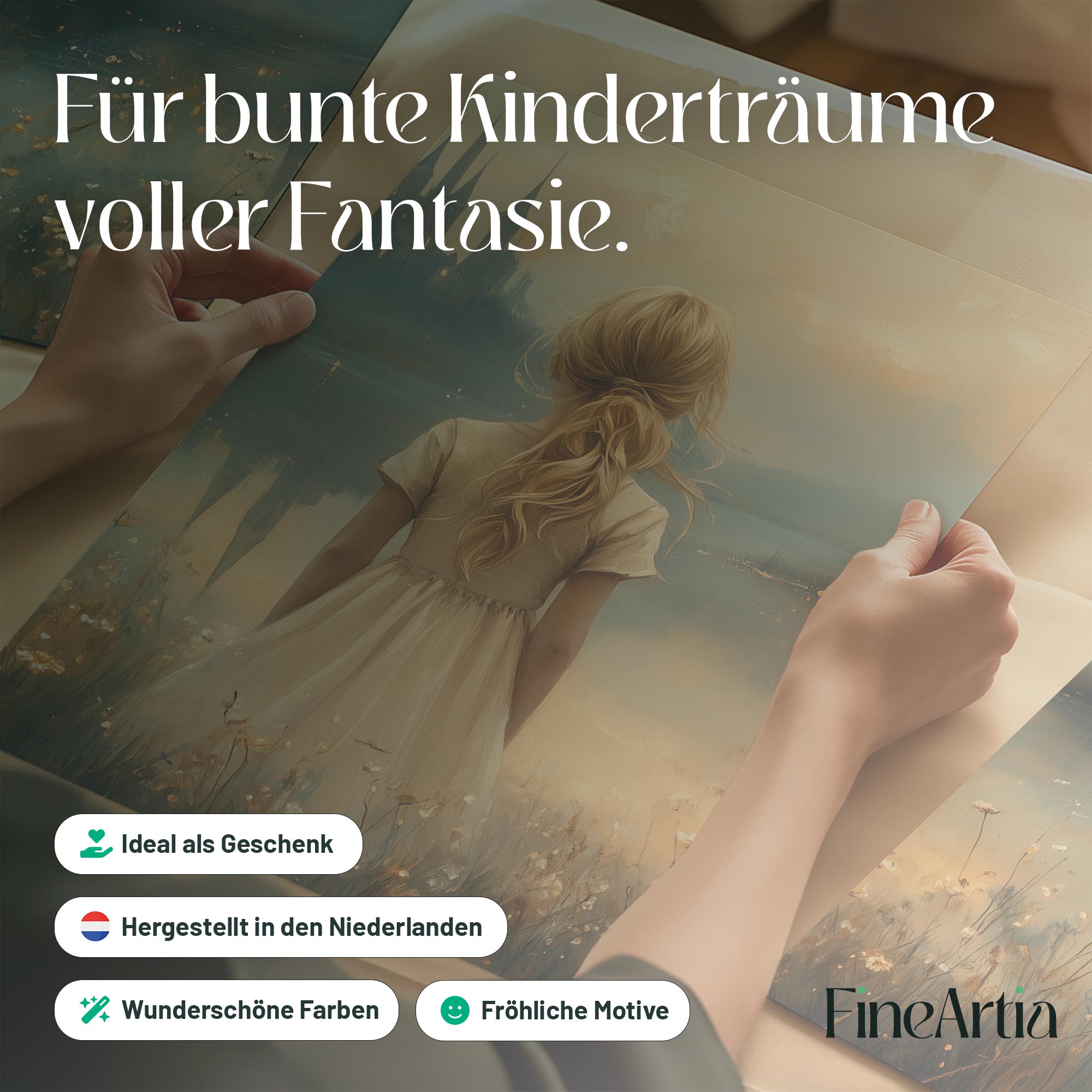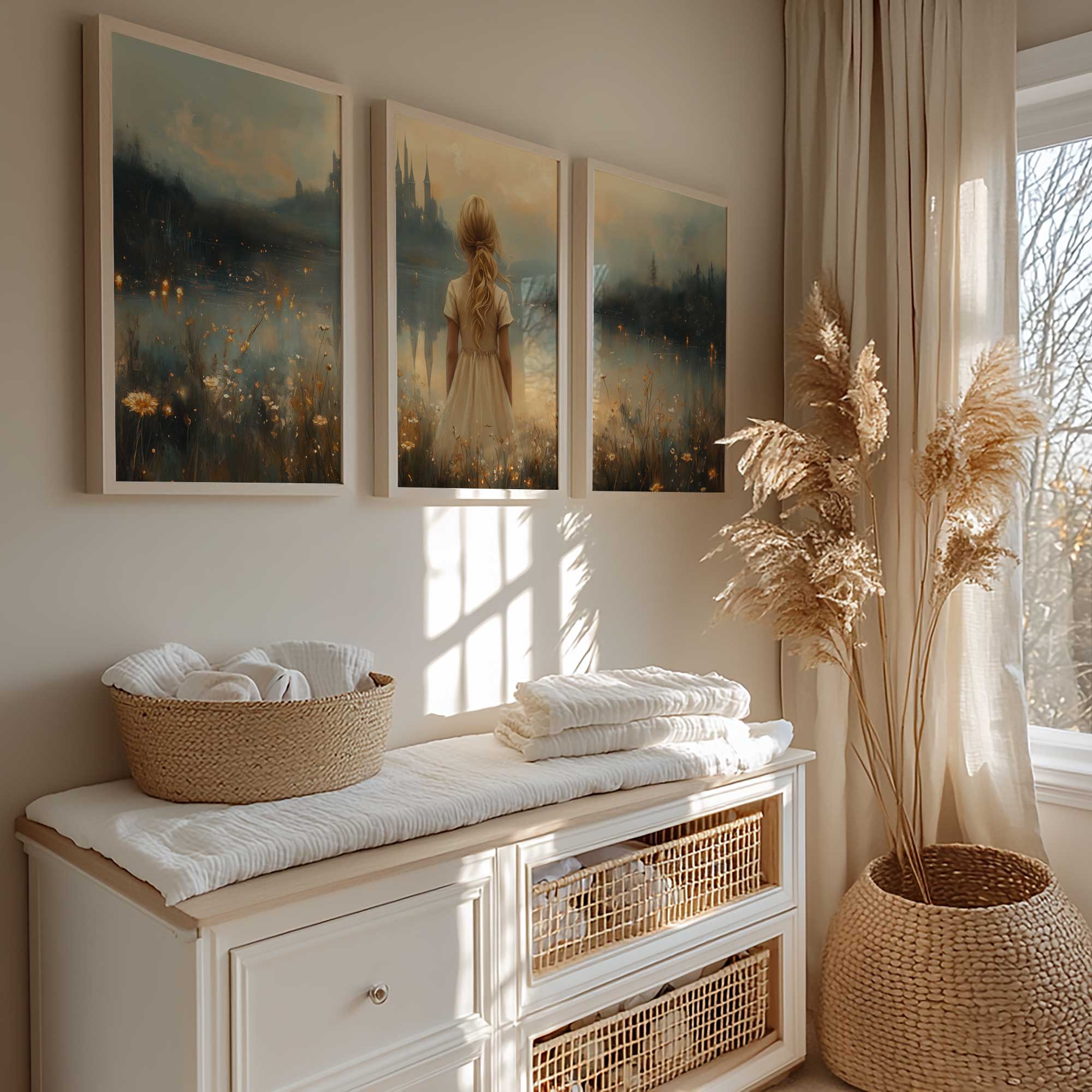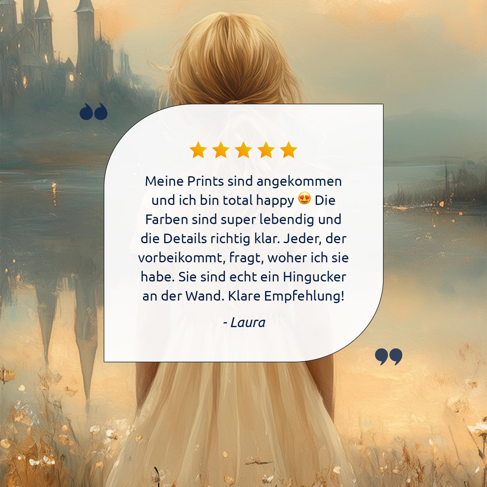 Terug naar collectie Posters Sprookjesachtig Meisje in Bloemenveld bij Kasteel