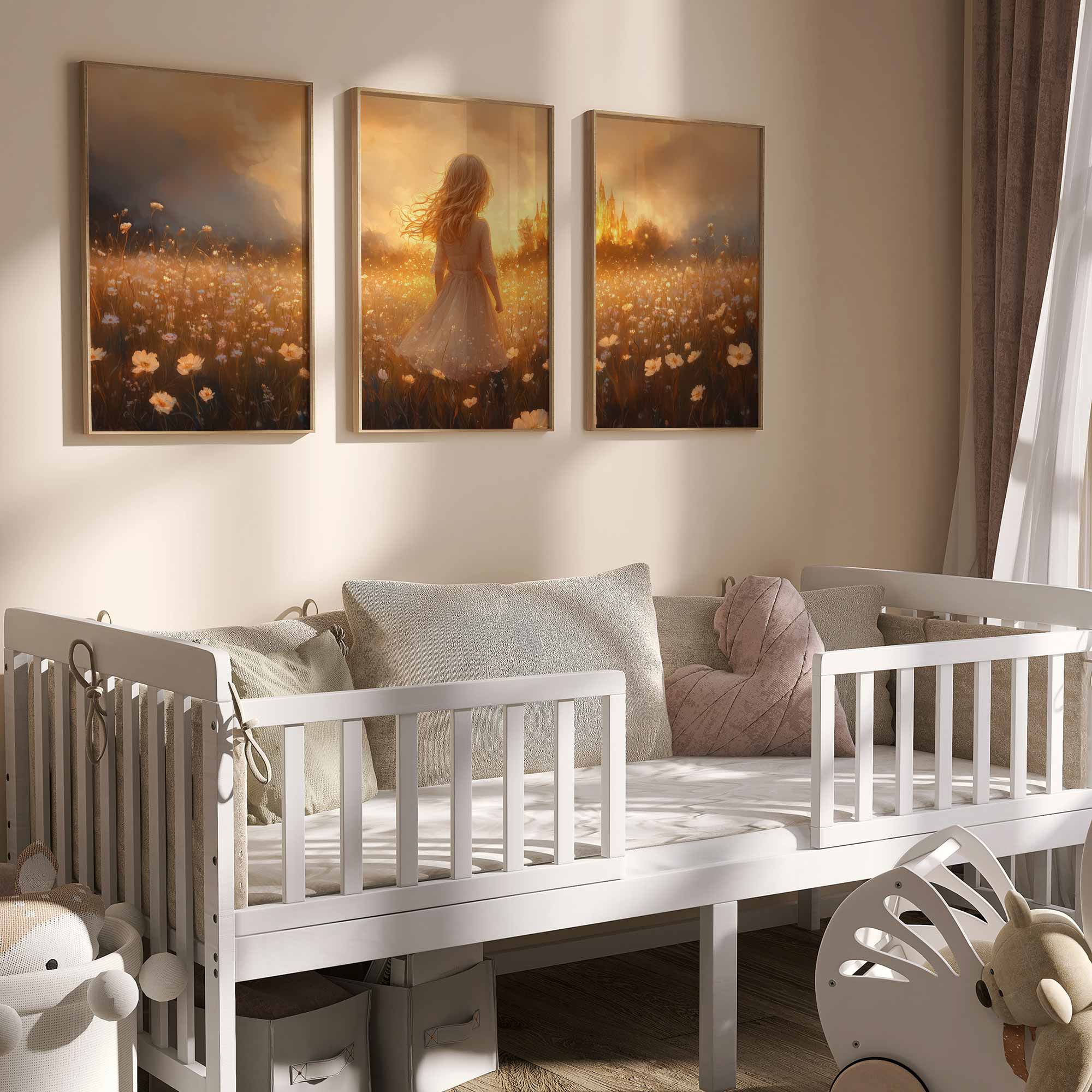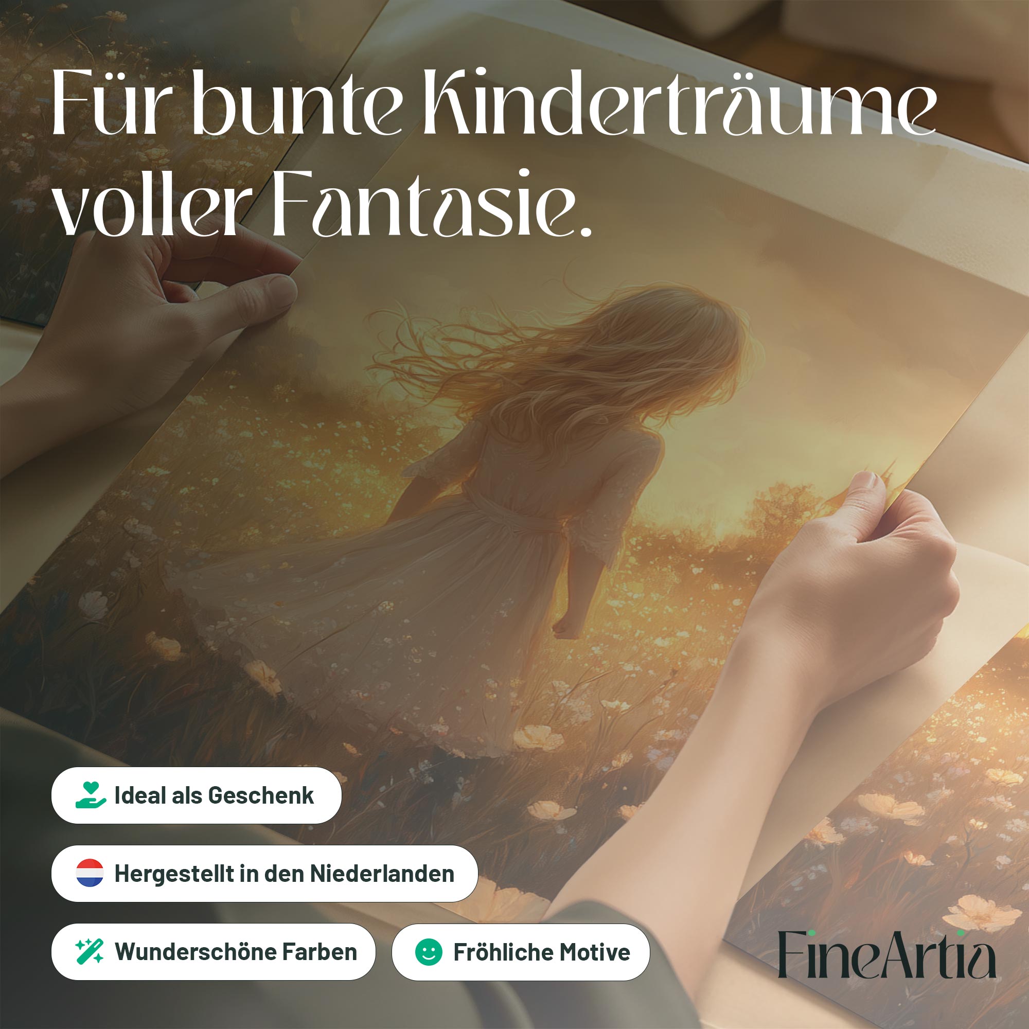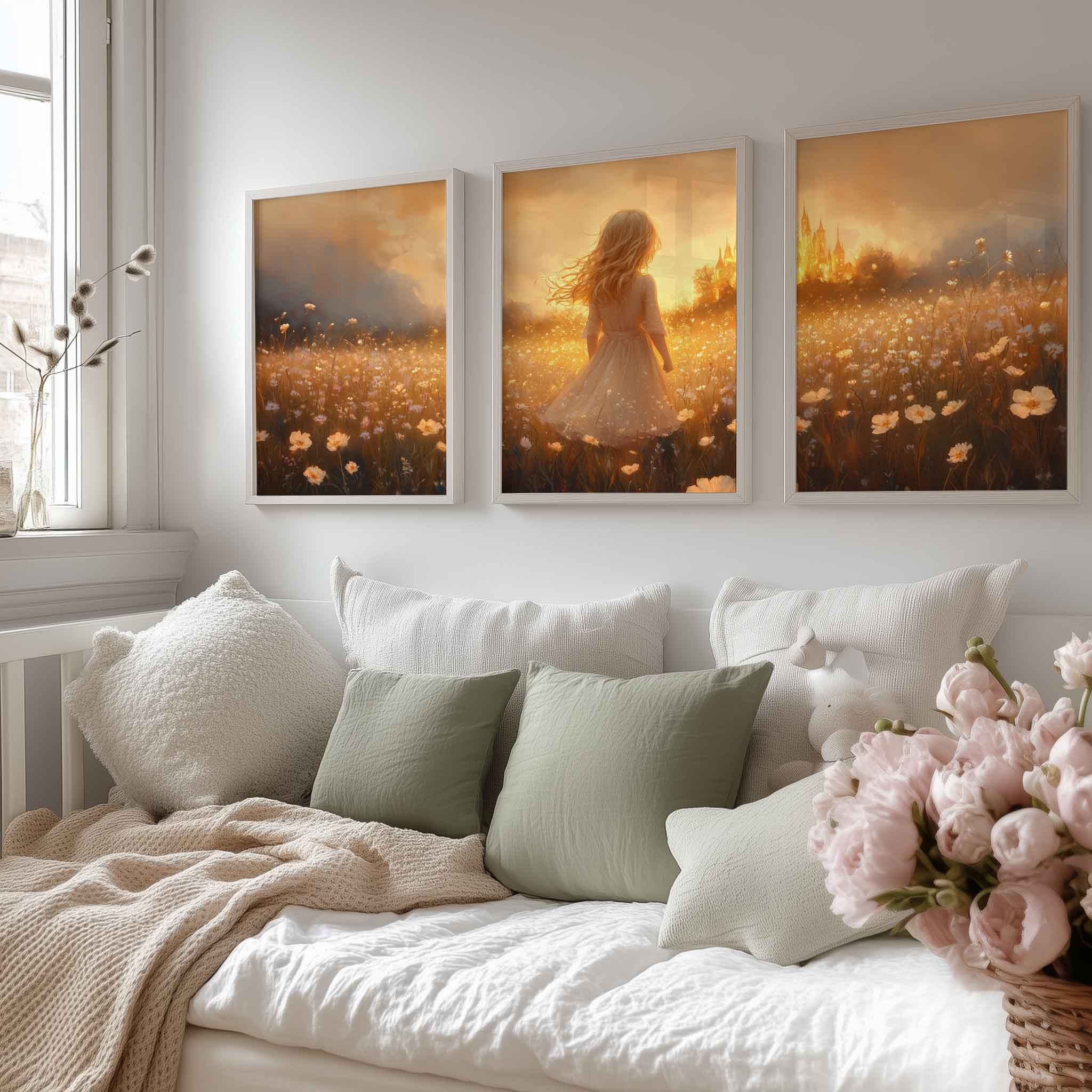 Sprookjesachtig Meisje in Bloemenveld met Kasteel