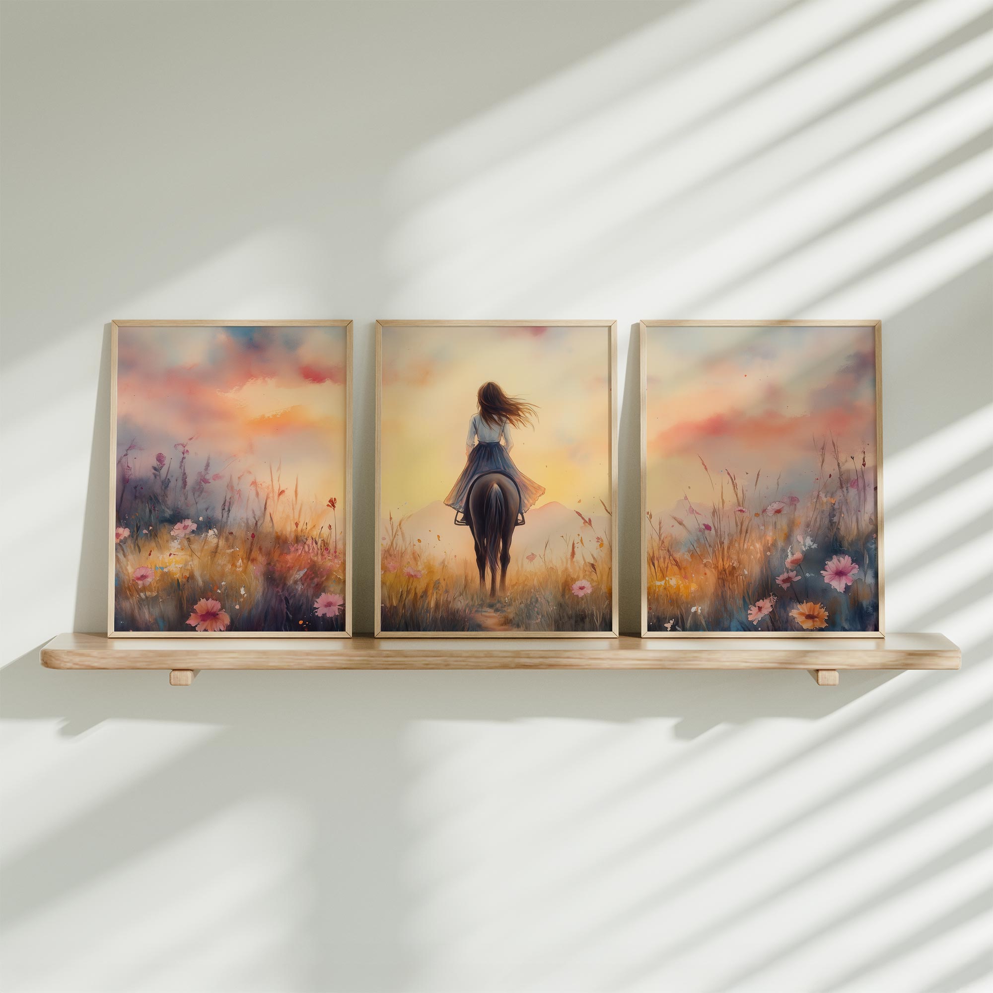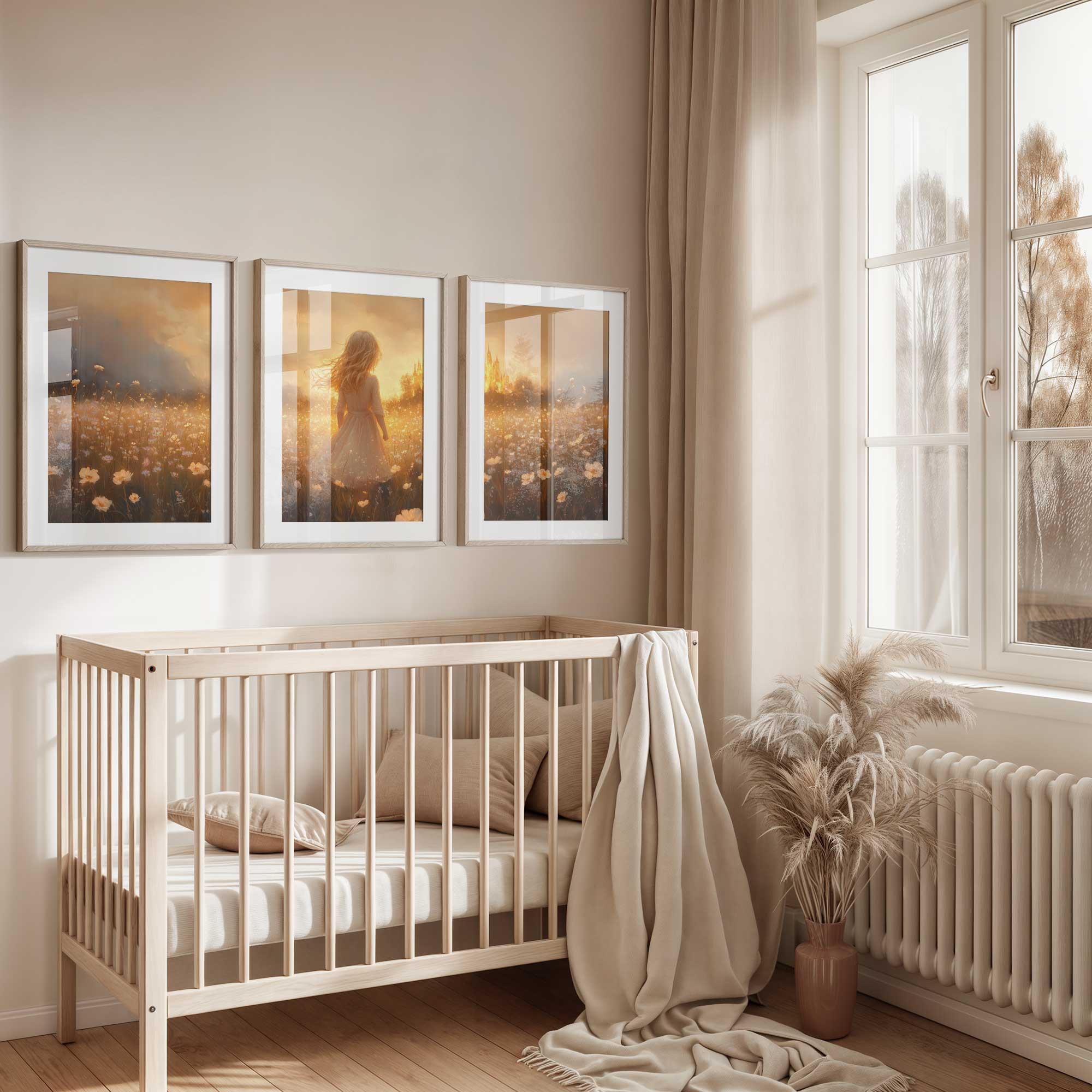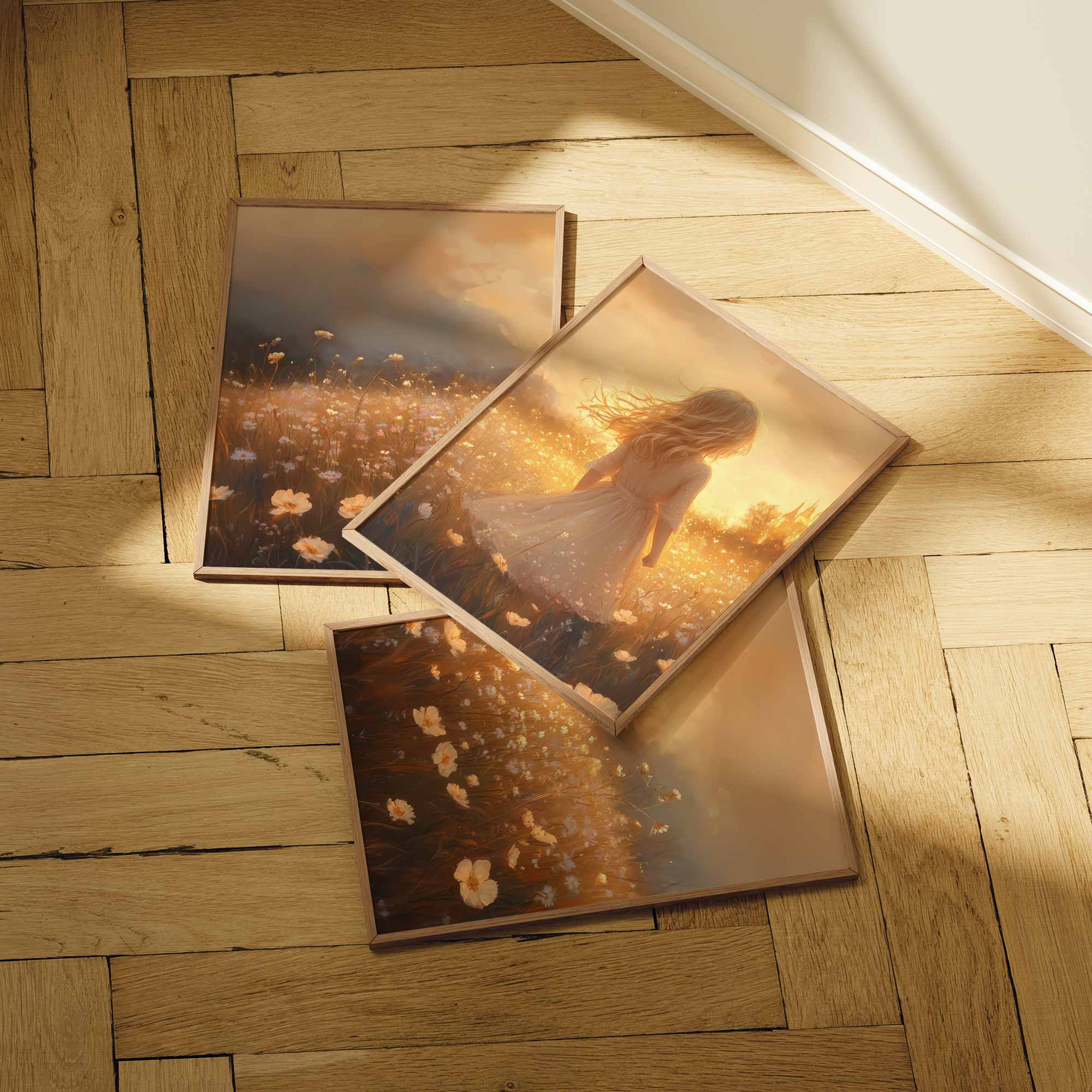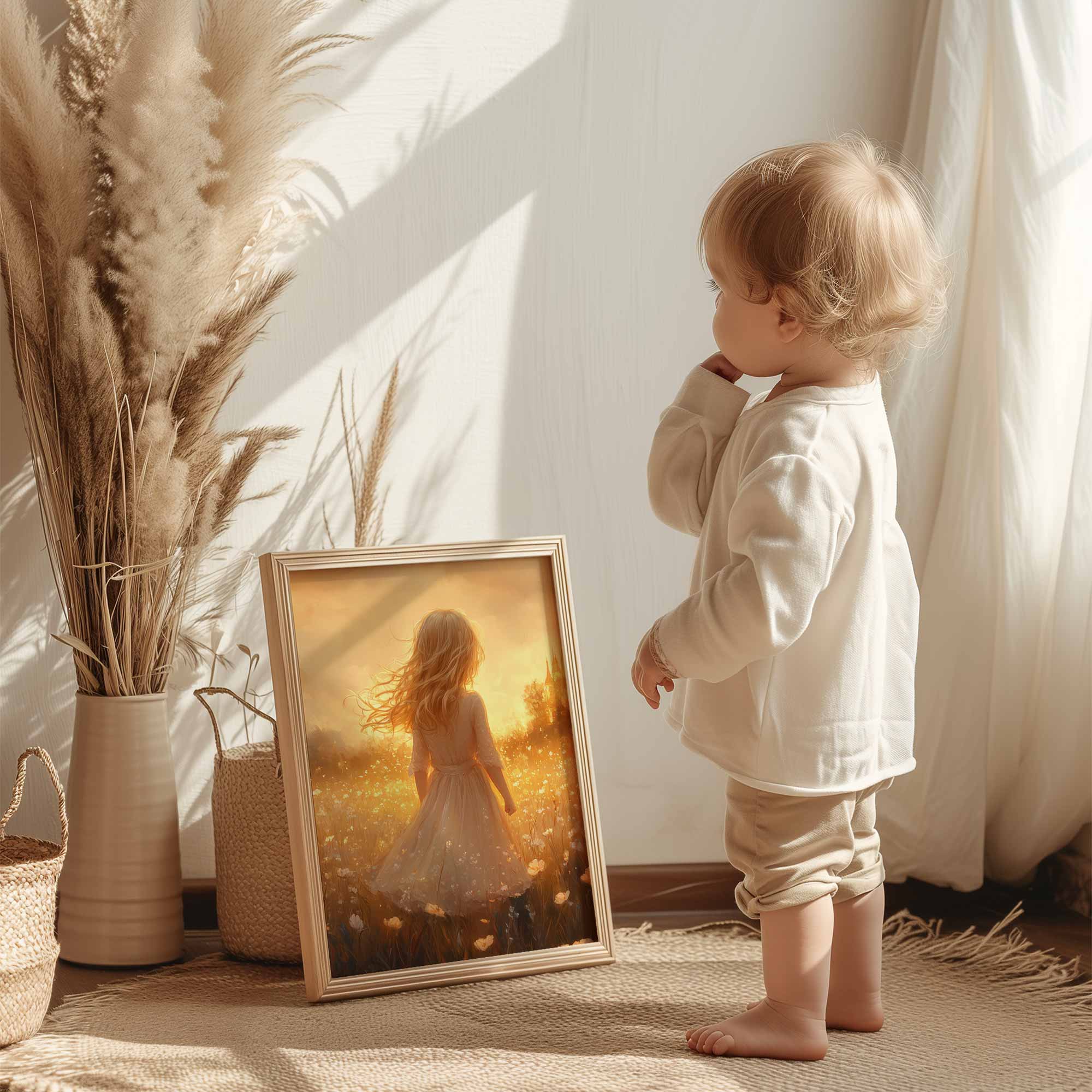 Sprookjesachtig Meisje in Bloemenveld met Kasteel