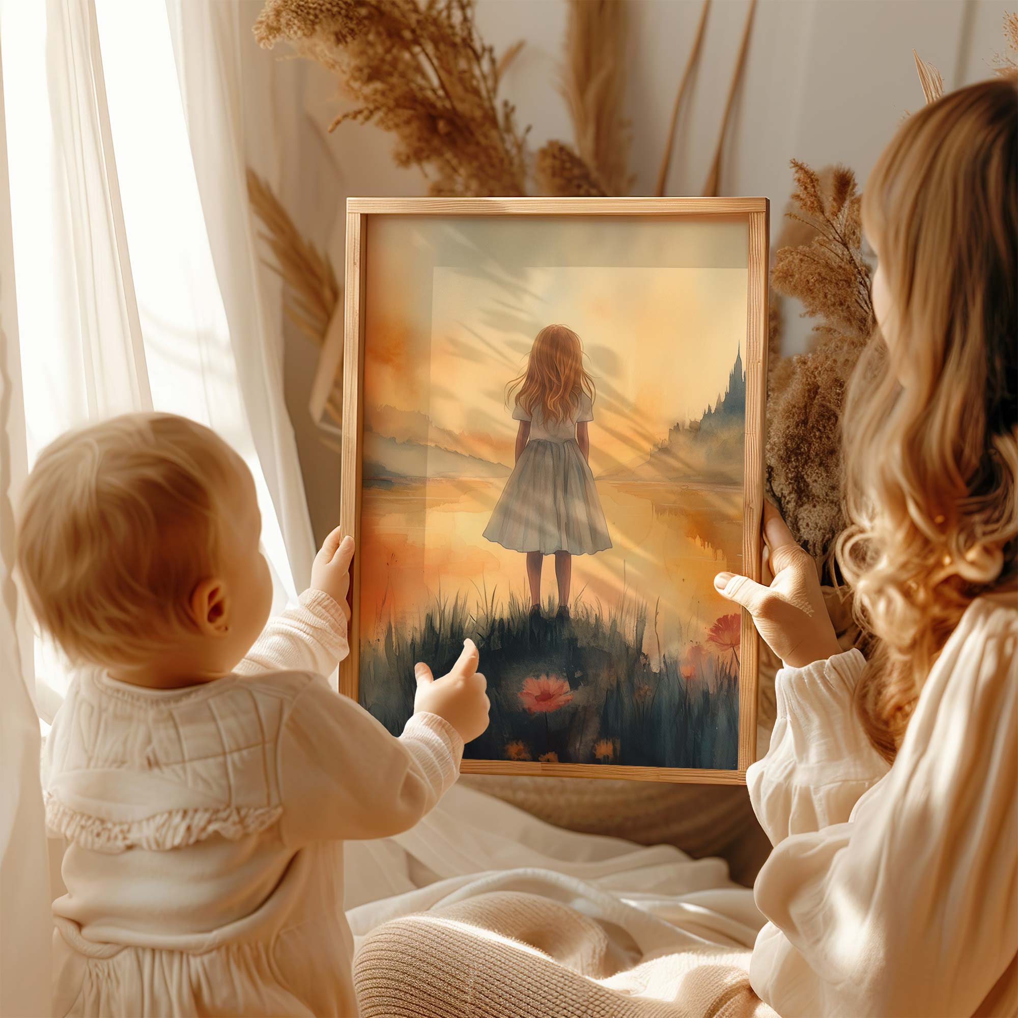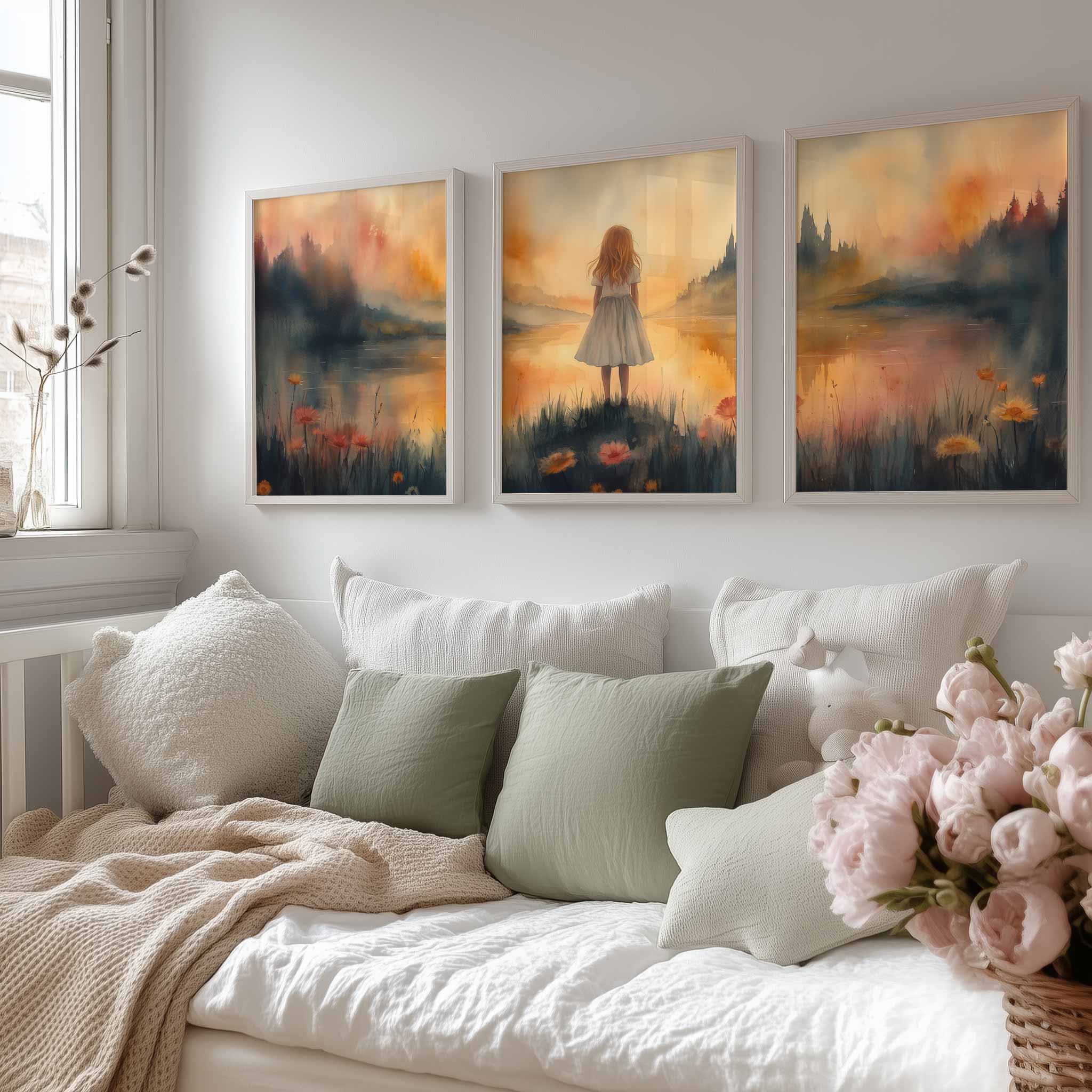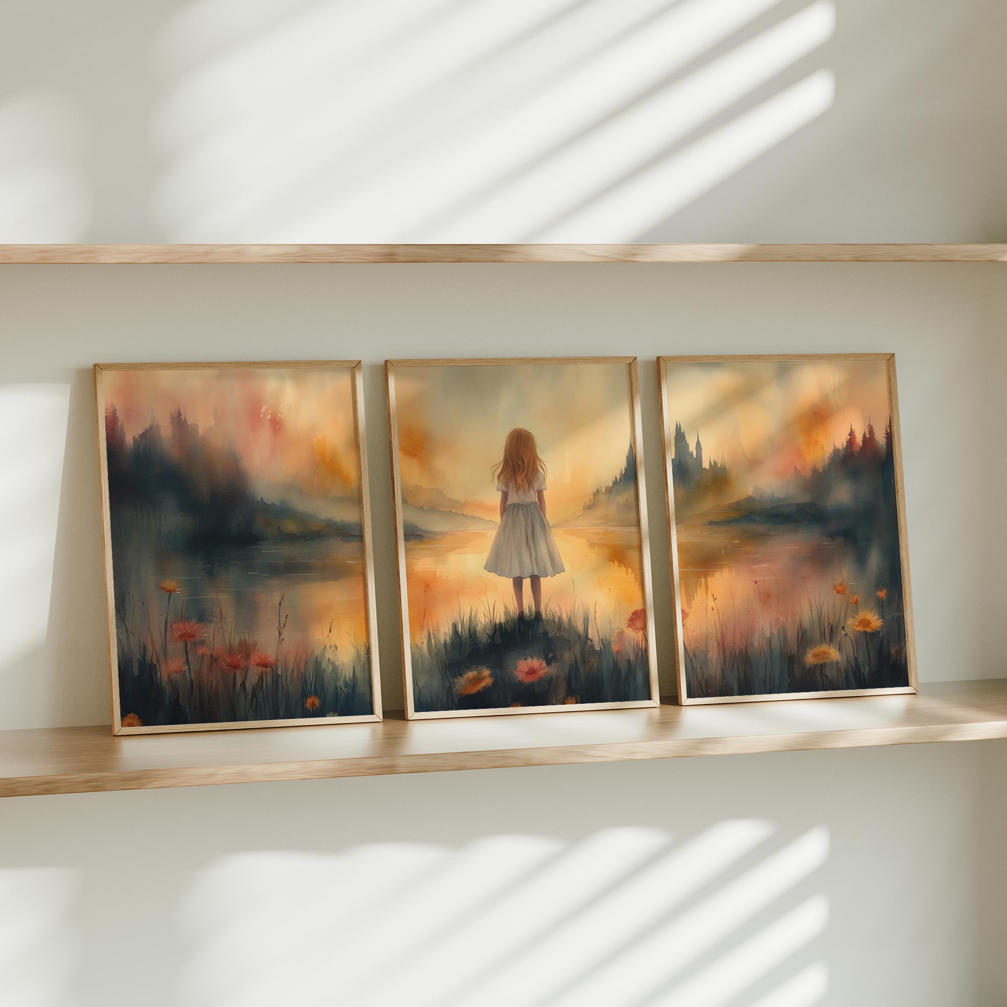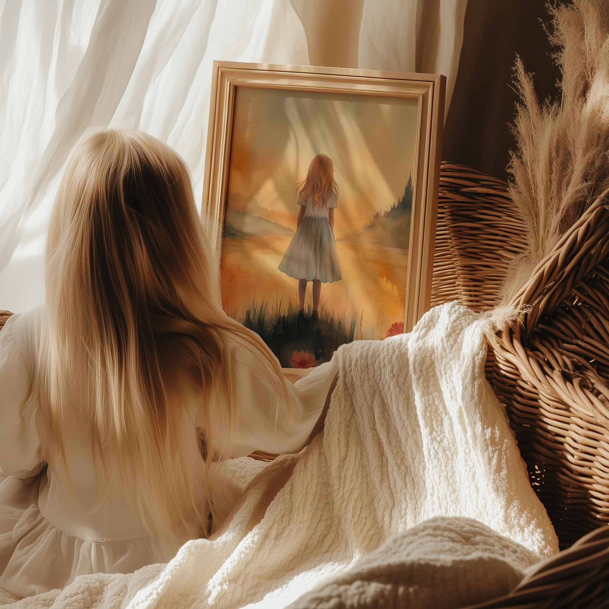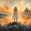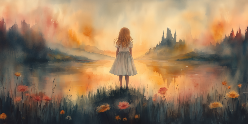 Sprookjesachtig Meisje in Mistig Kasteellandschap