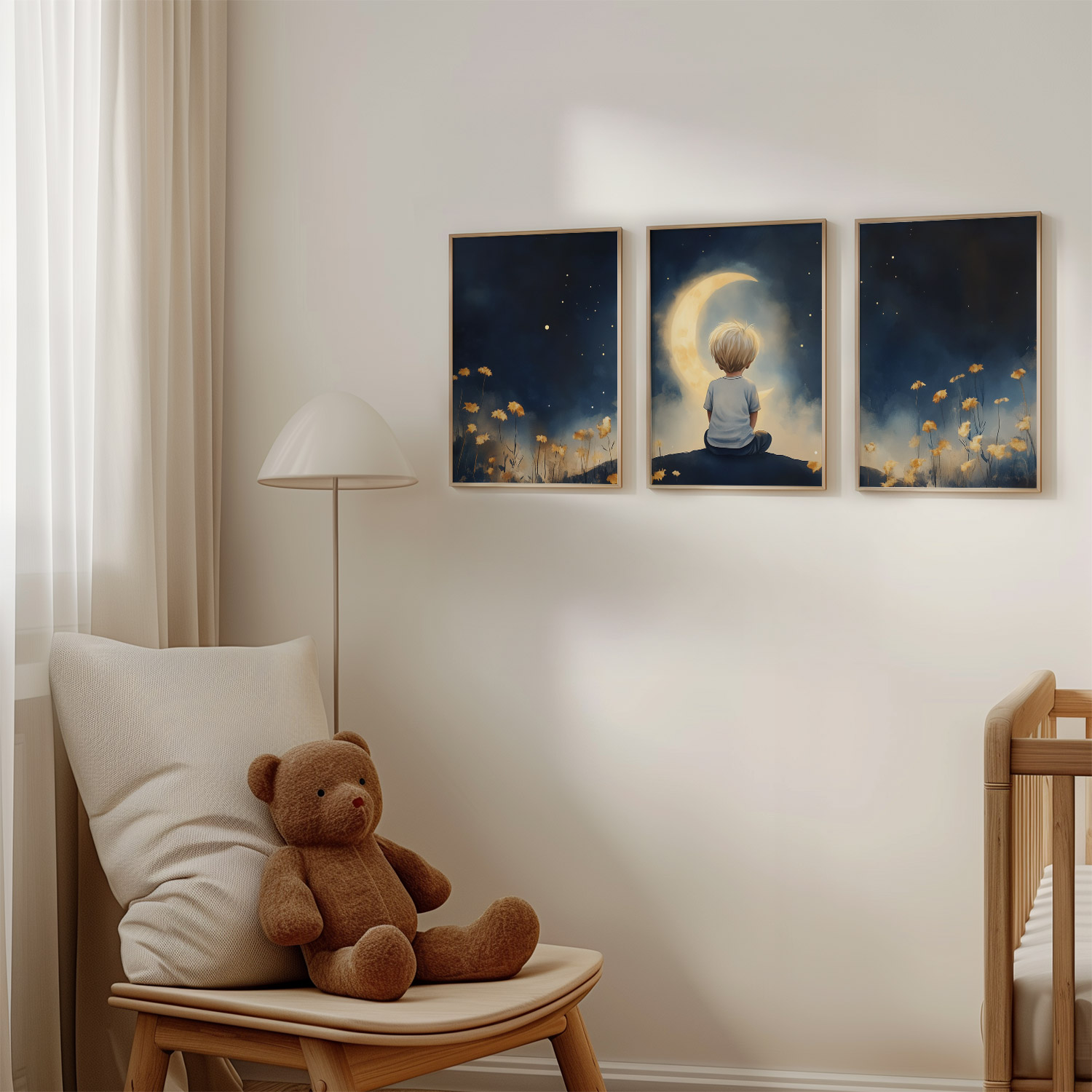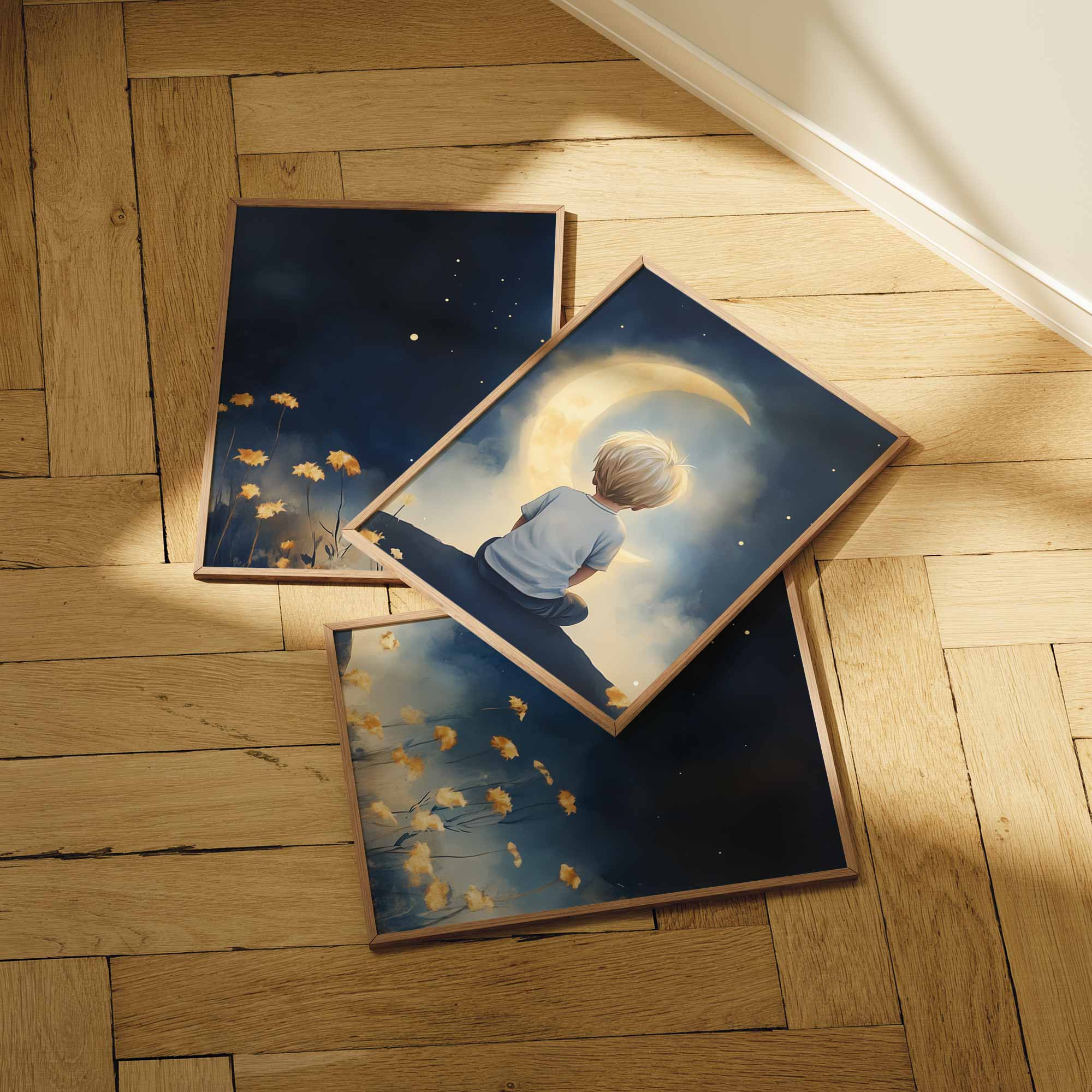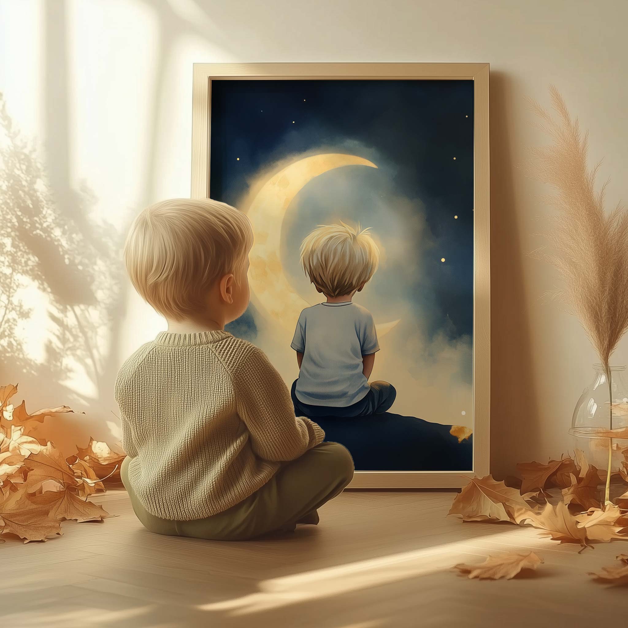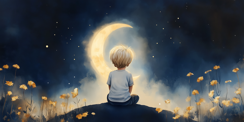 Starry Night Dream: Jongen tussen Bloemen en Sterren