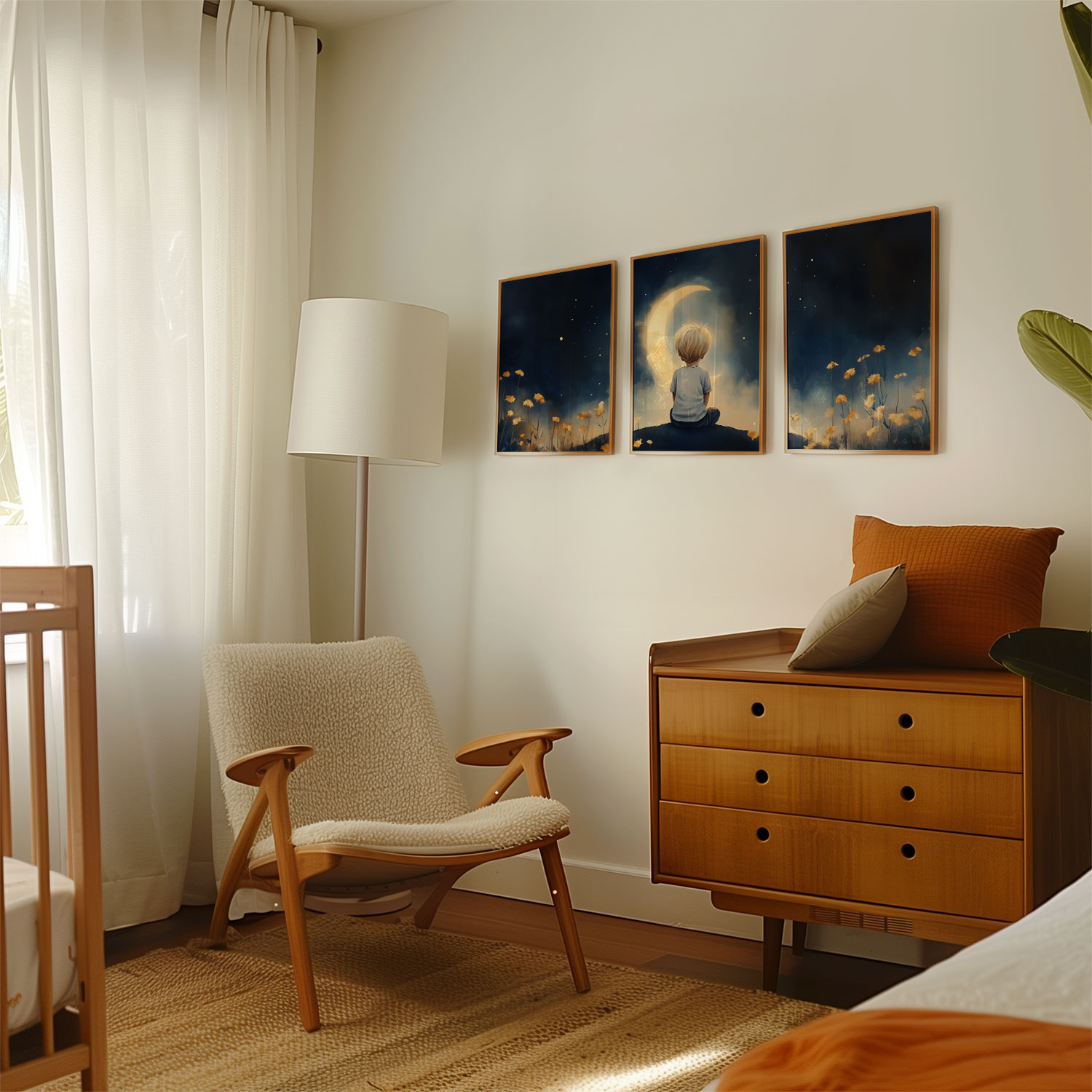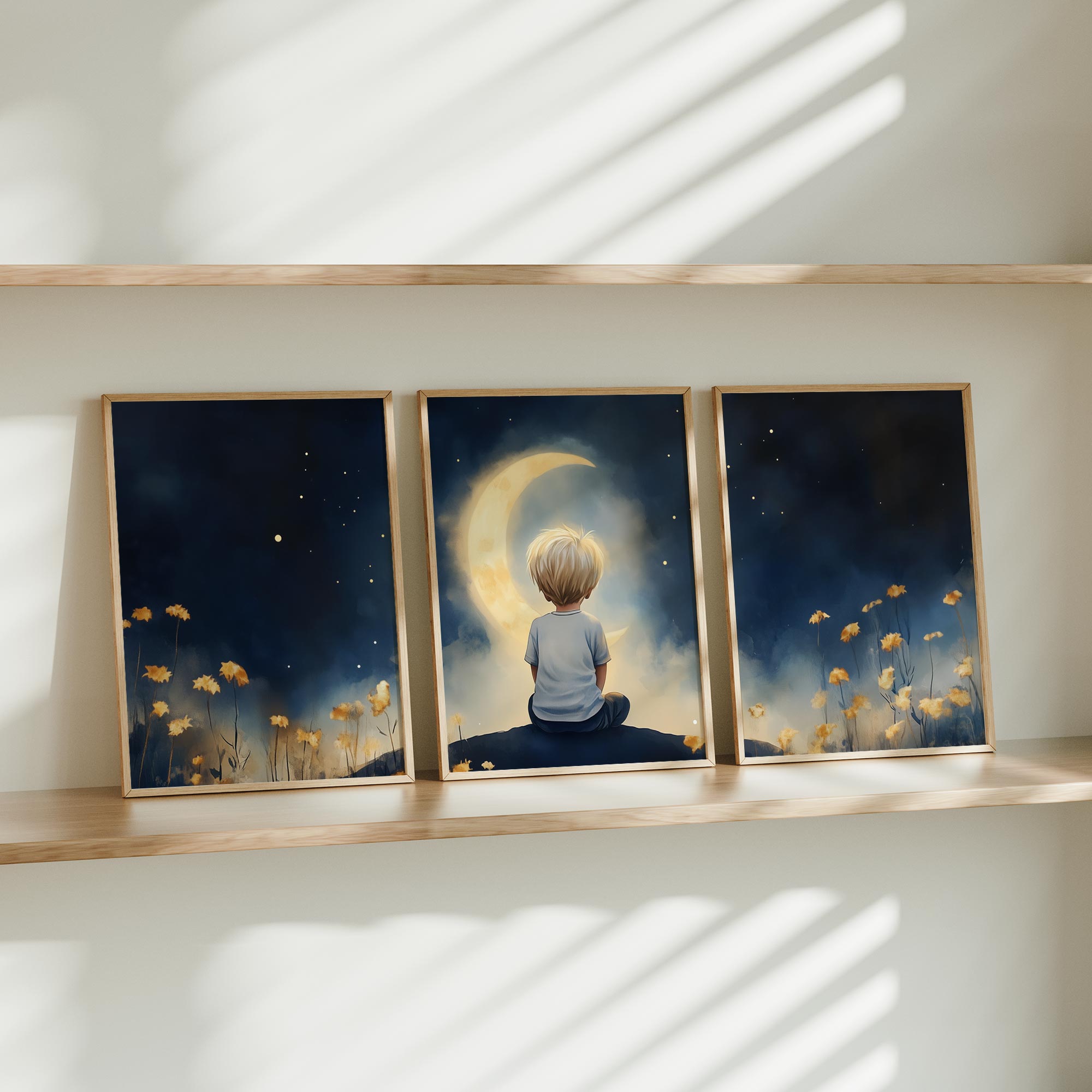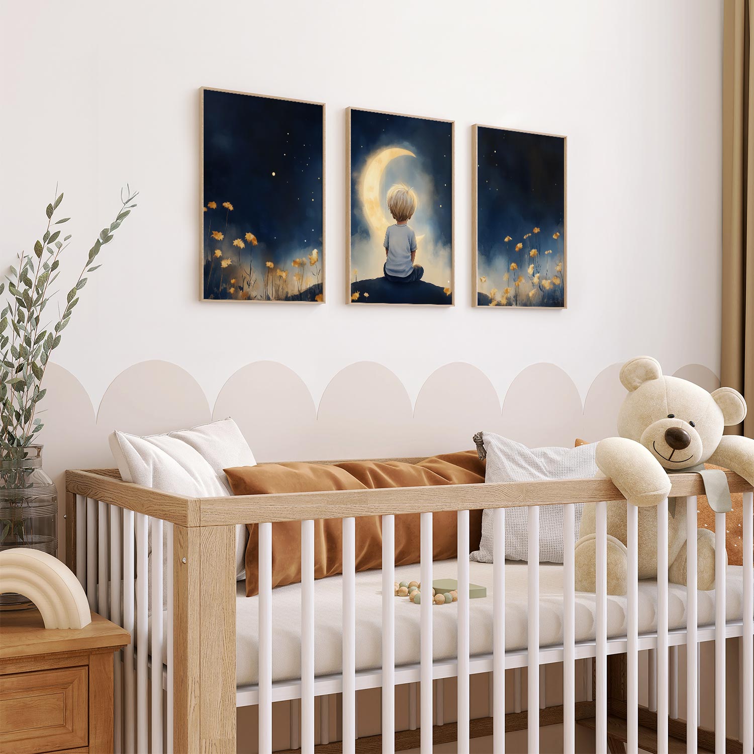 Starry Night Dream: Jongen tussen Bloemen en Sterren
