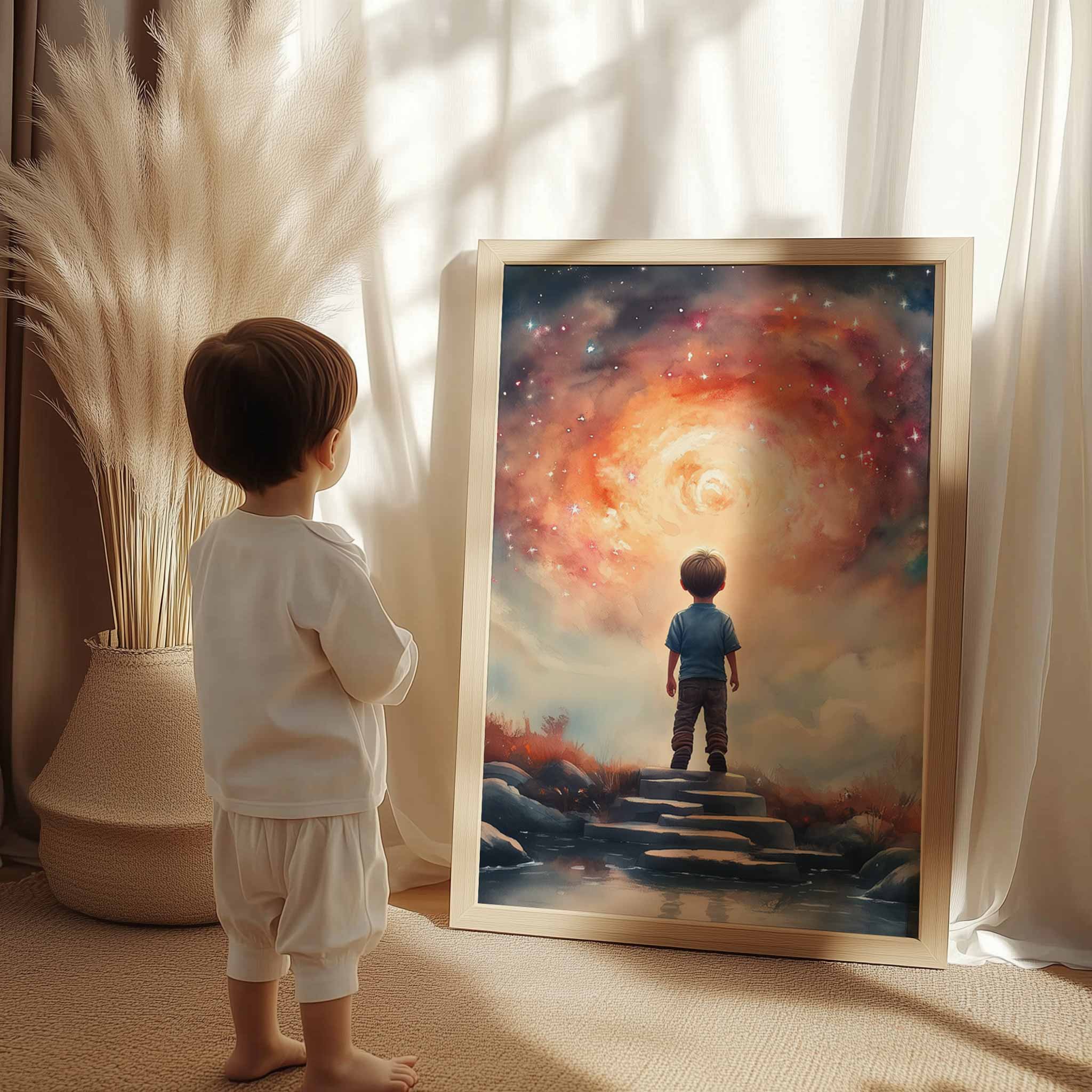 Terug naar collectie Posters Stralende Dromen: Jongen onder de Sterrenhemel
