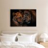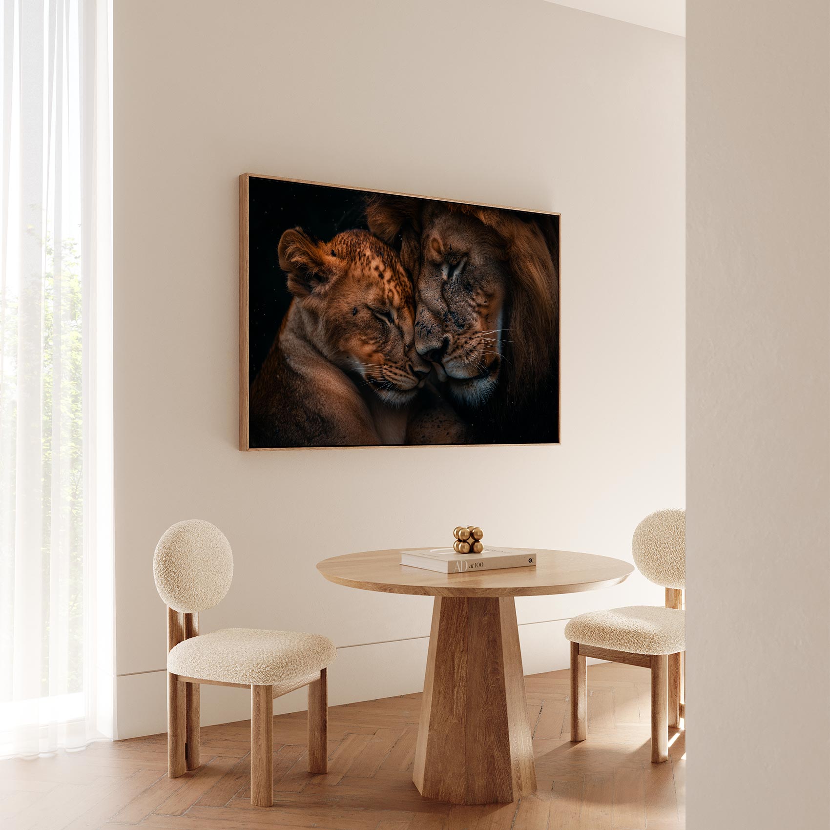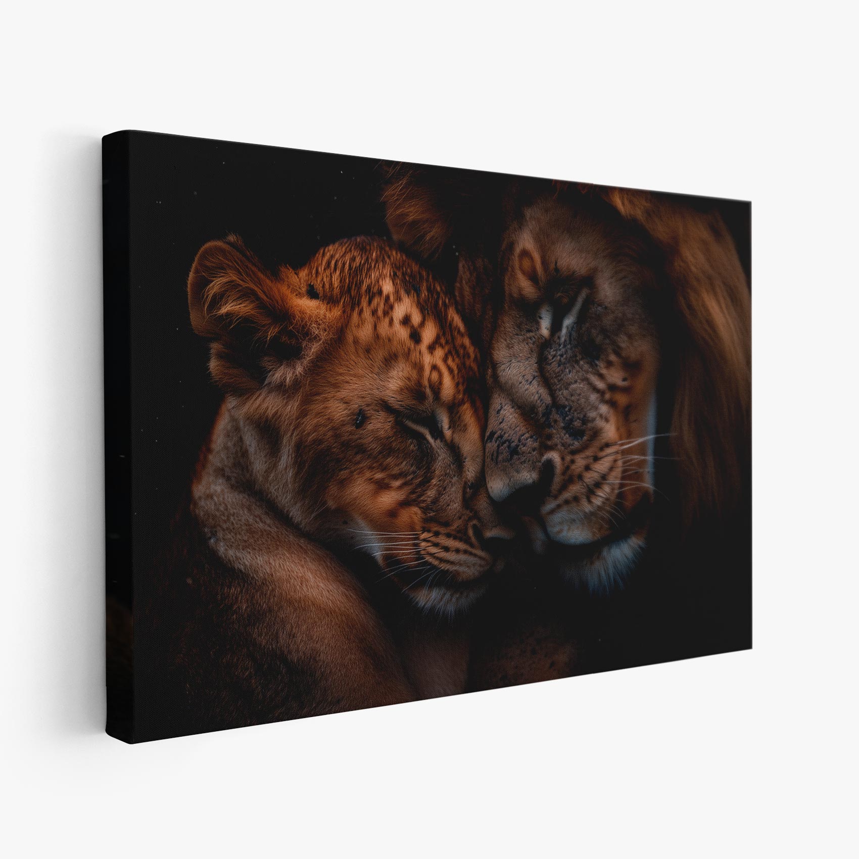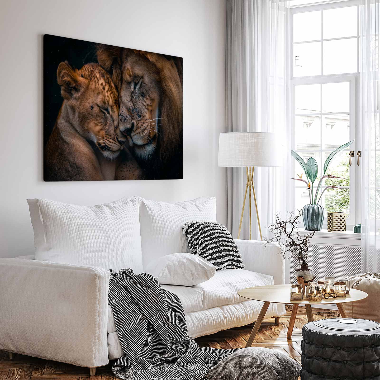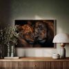 Teder leeuwenmoeder en welp
