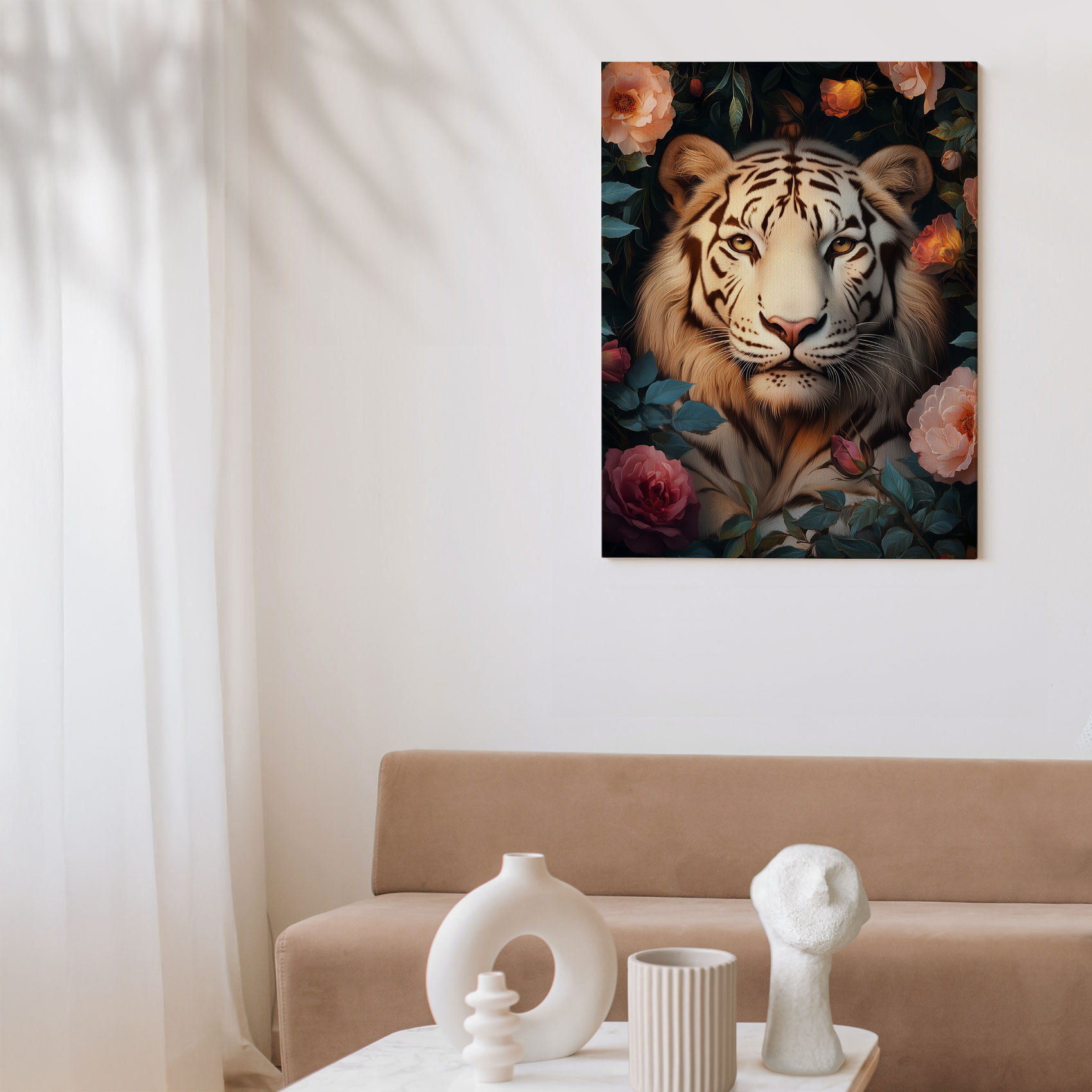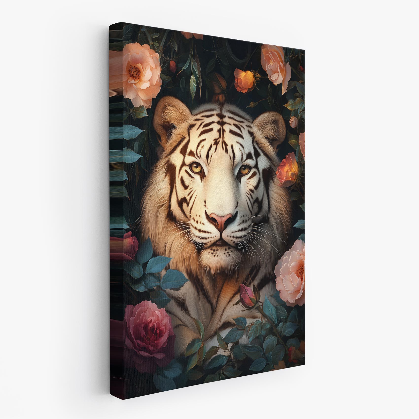 Terug naar collectie Canvas Tijger in bloemenparadijs