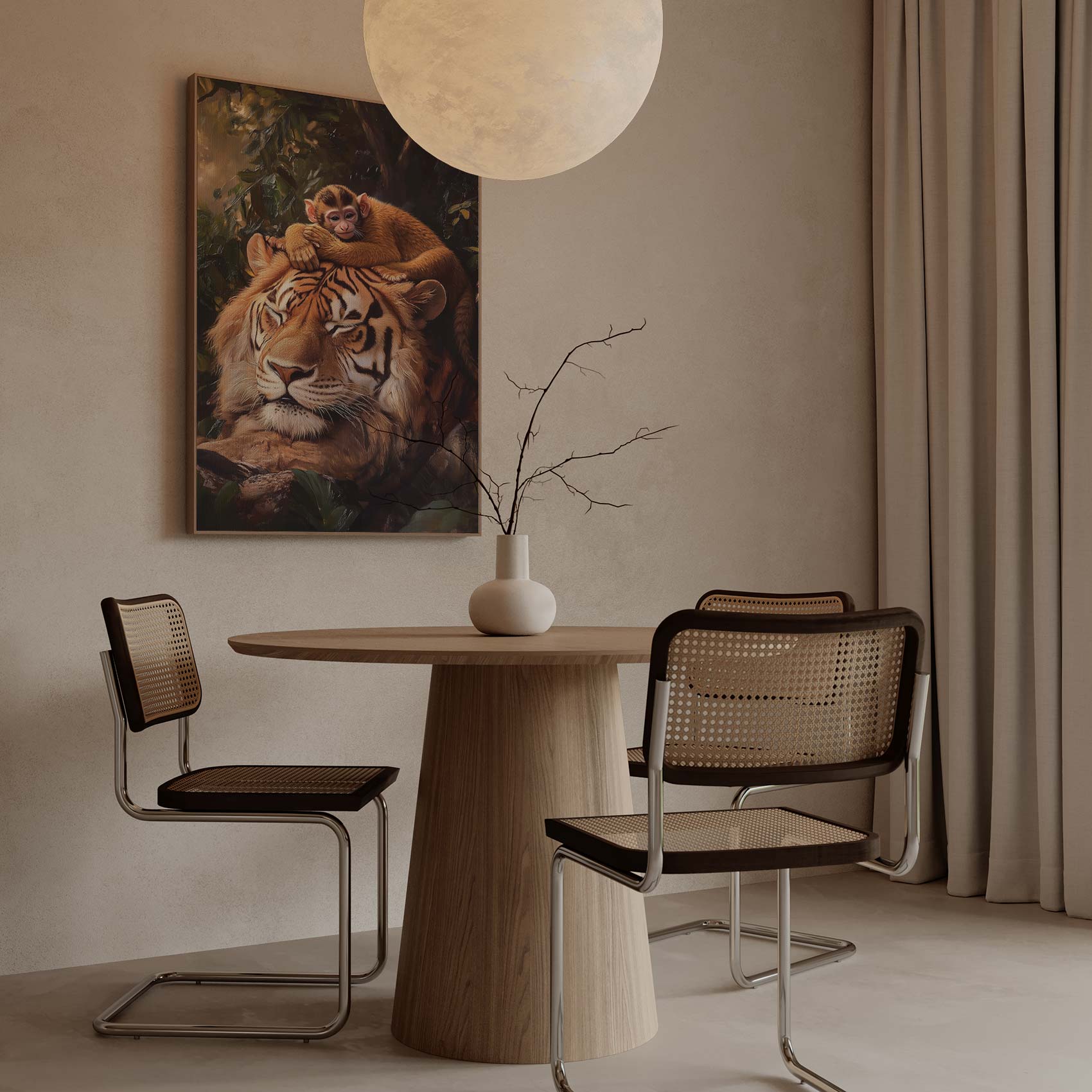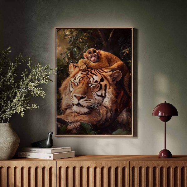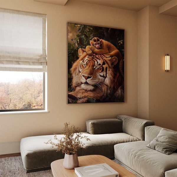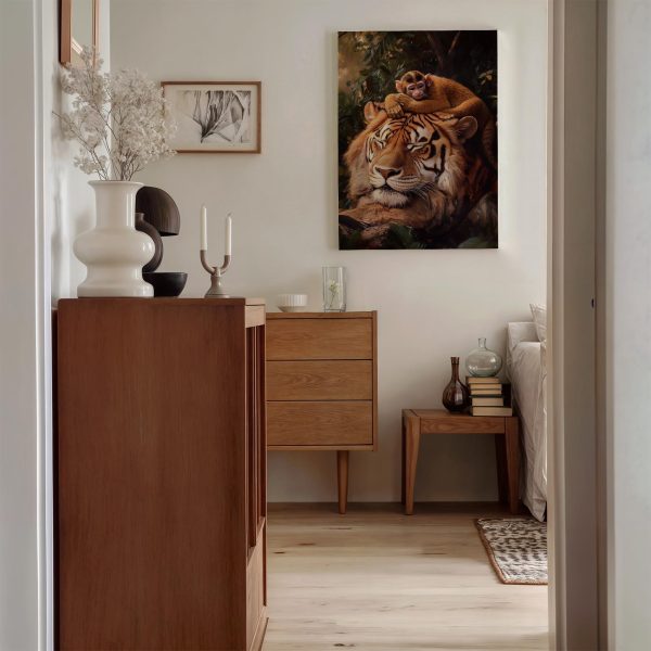 Terug naar collectie Canvas Tijger met rustende aap