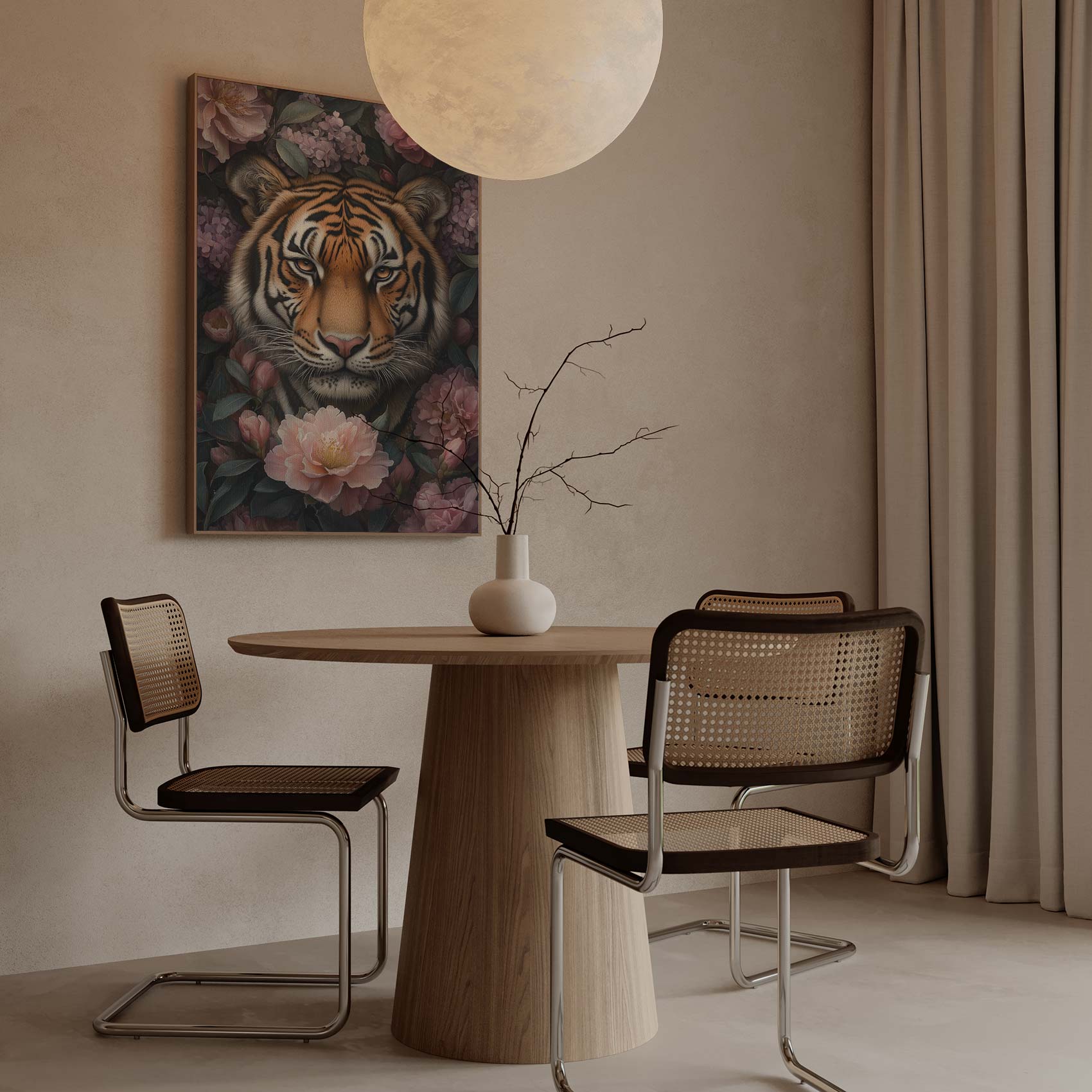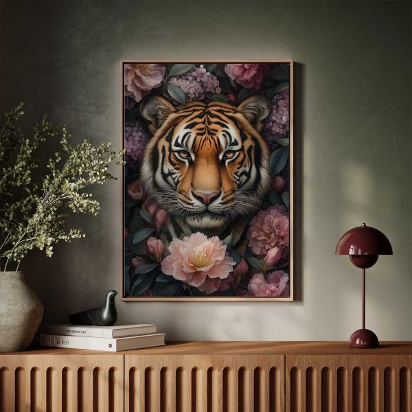 Terug naar collectie Canvas Tijger tussen bloemenpracht