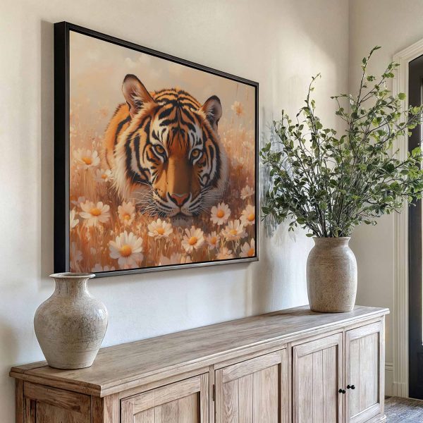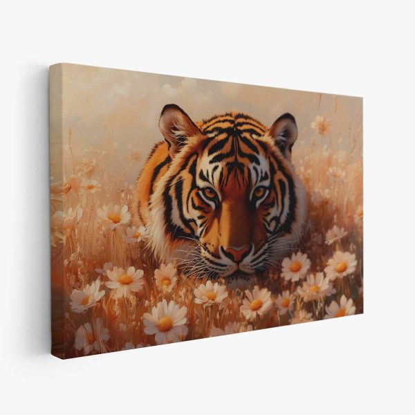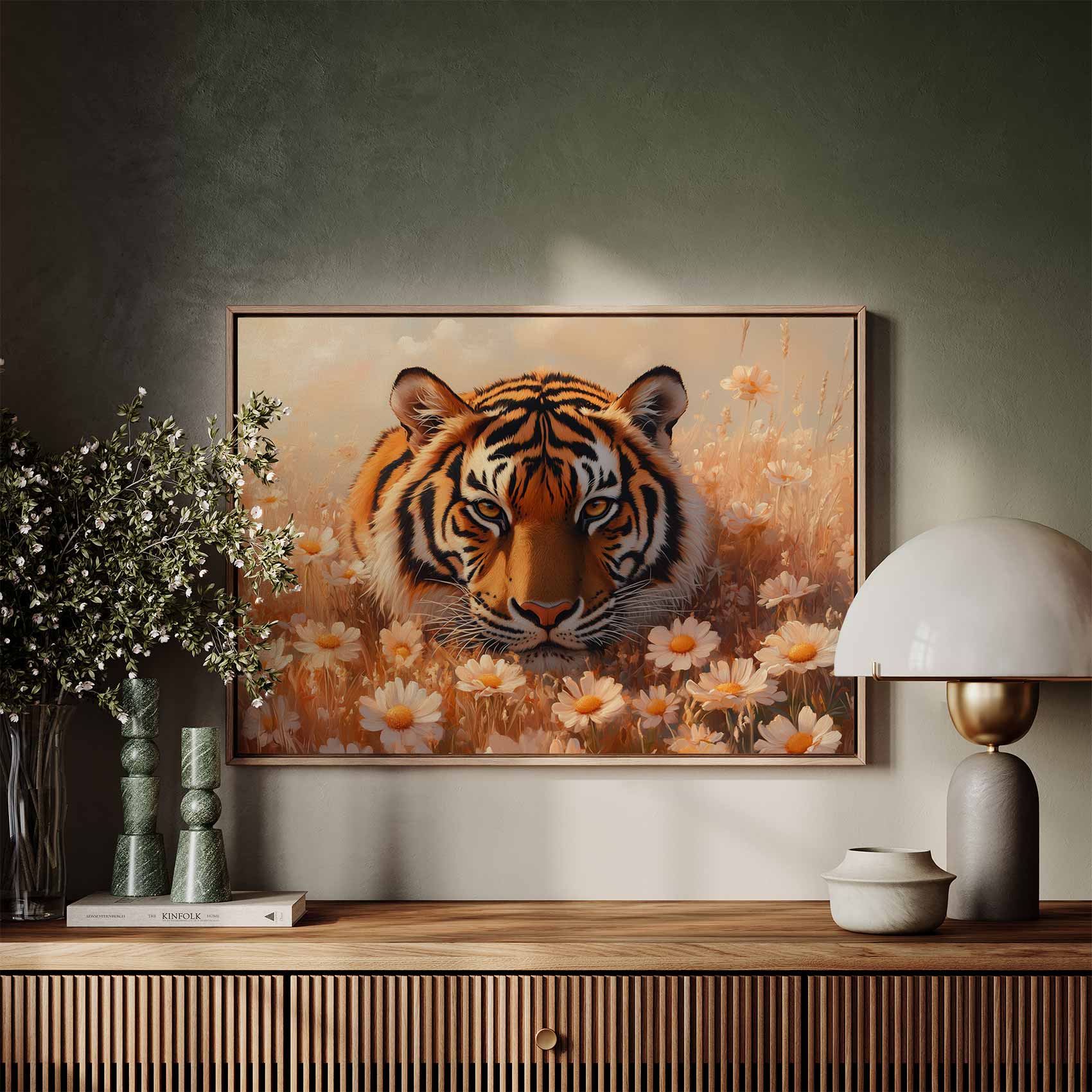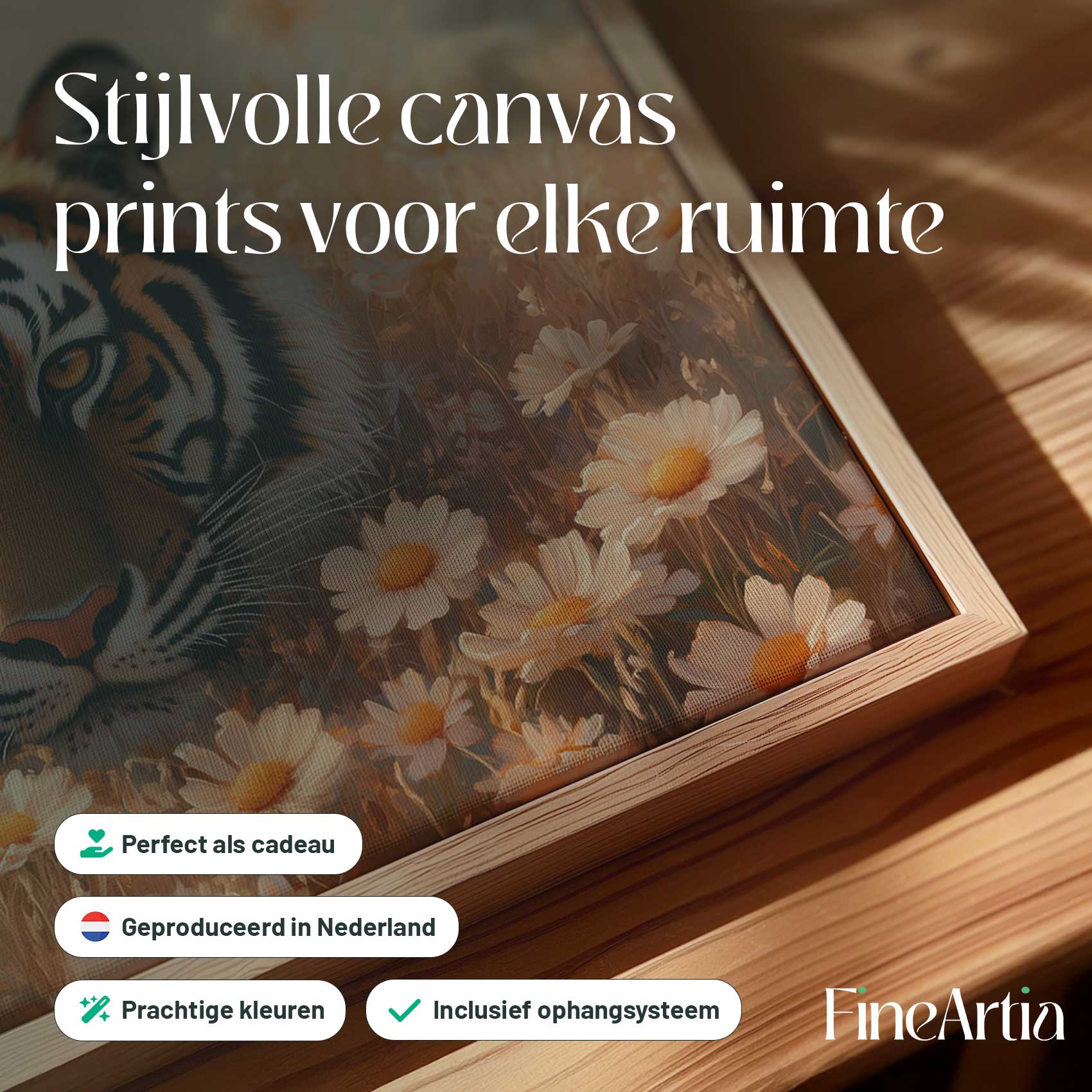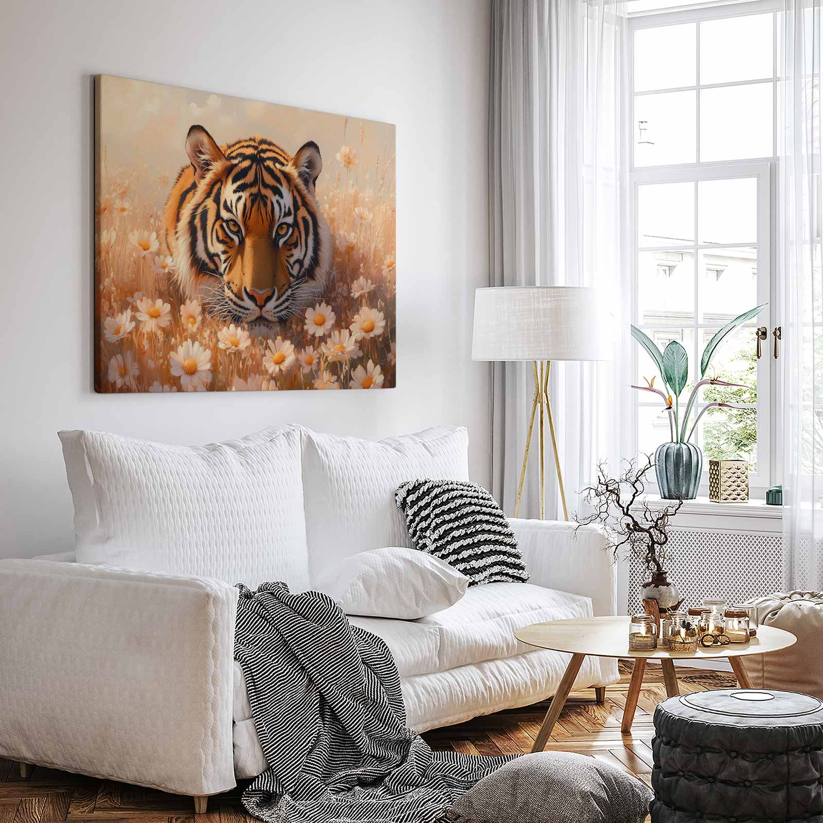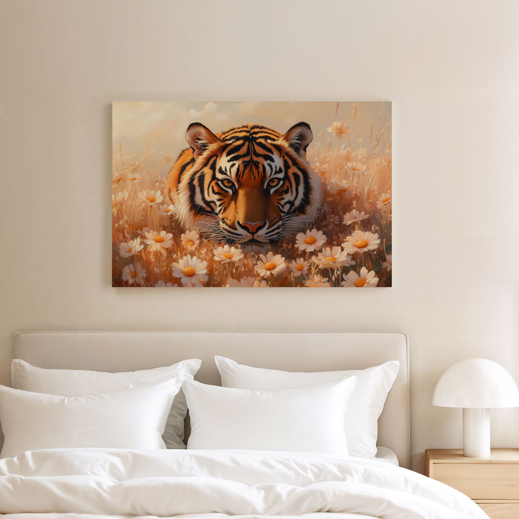 Terug naar collectie Canvas Tijger tussen bloemenveld