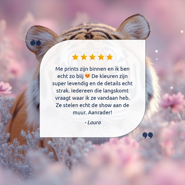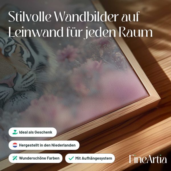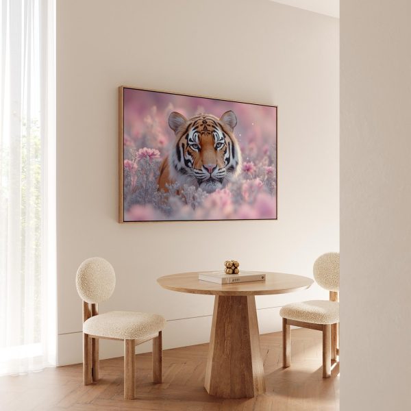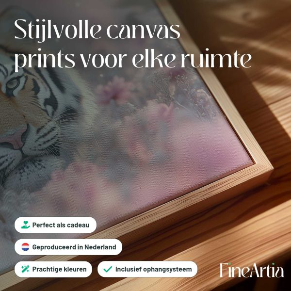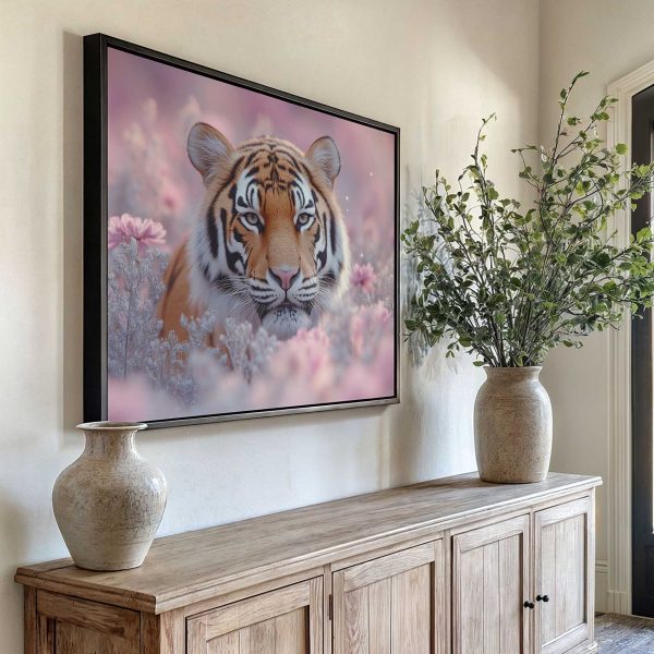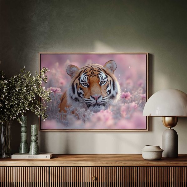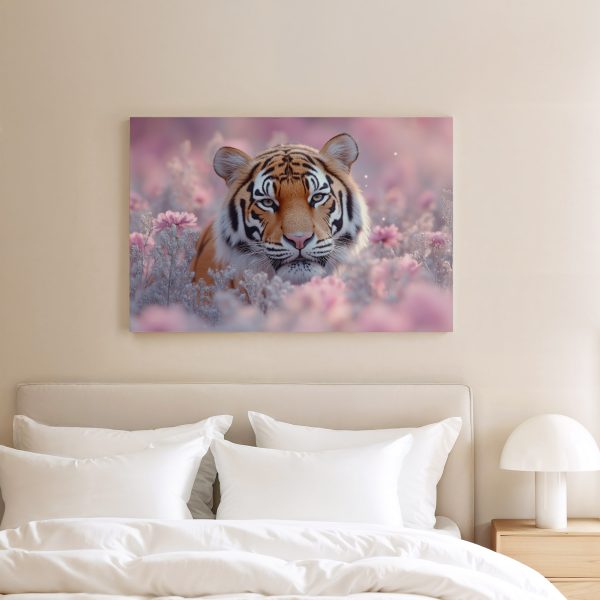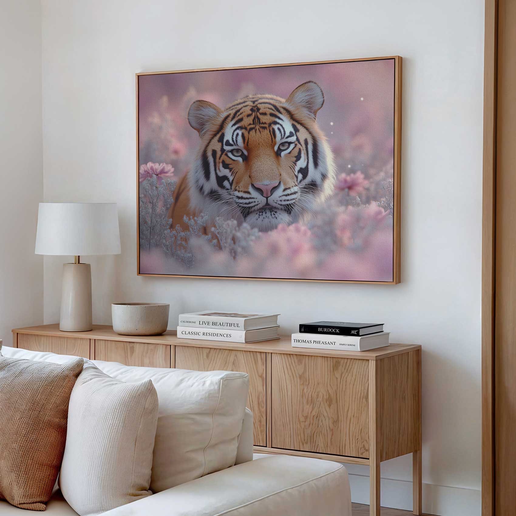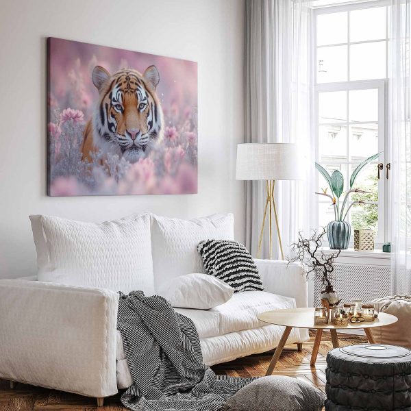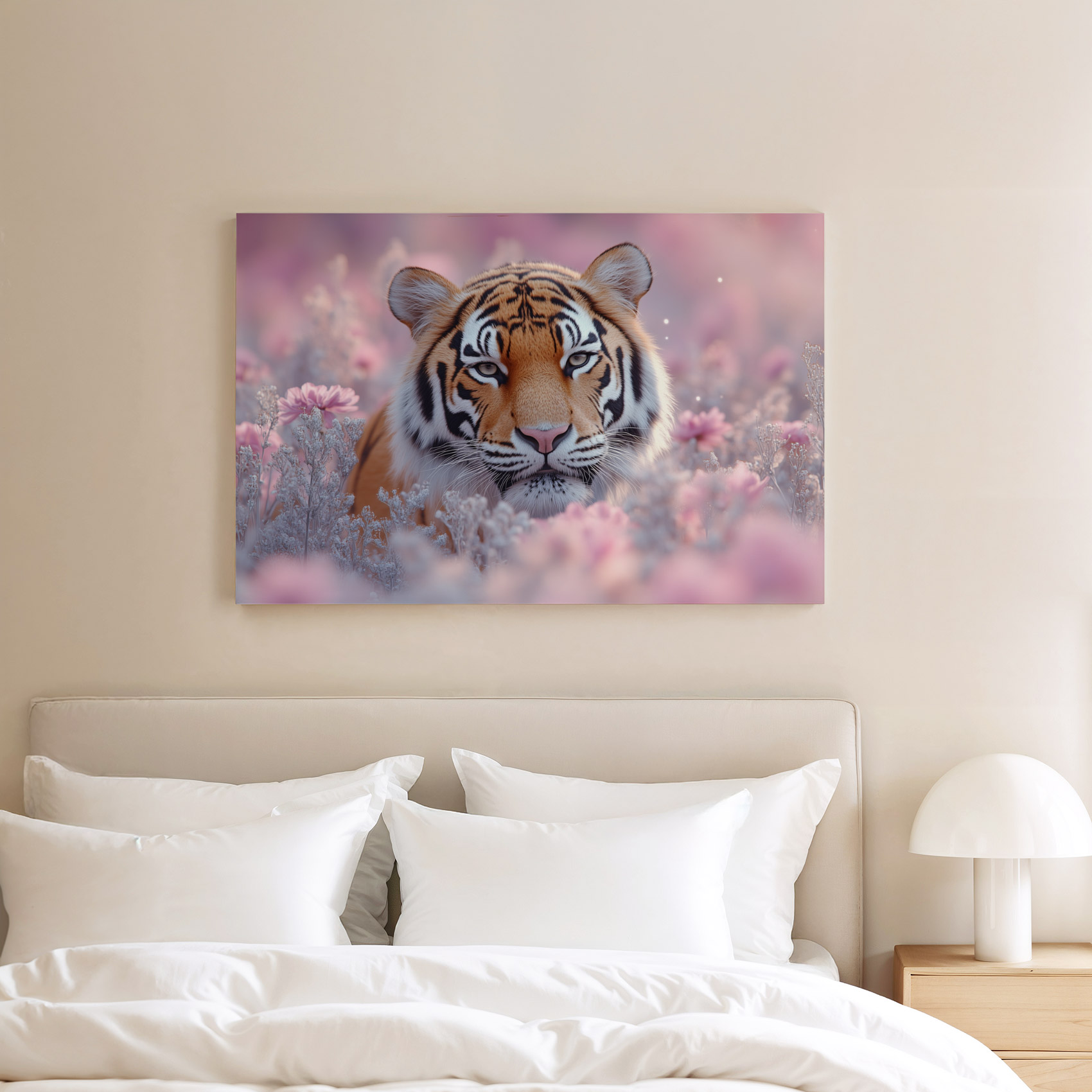 Terug naar collectie Canvas Tijger tussen roze bloemen