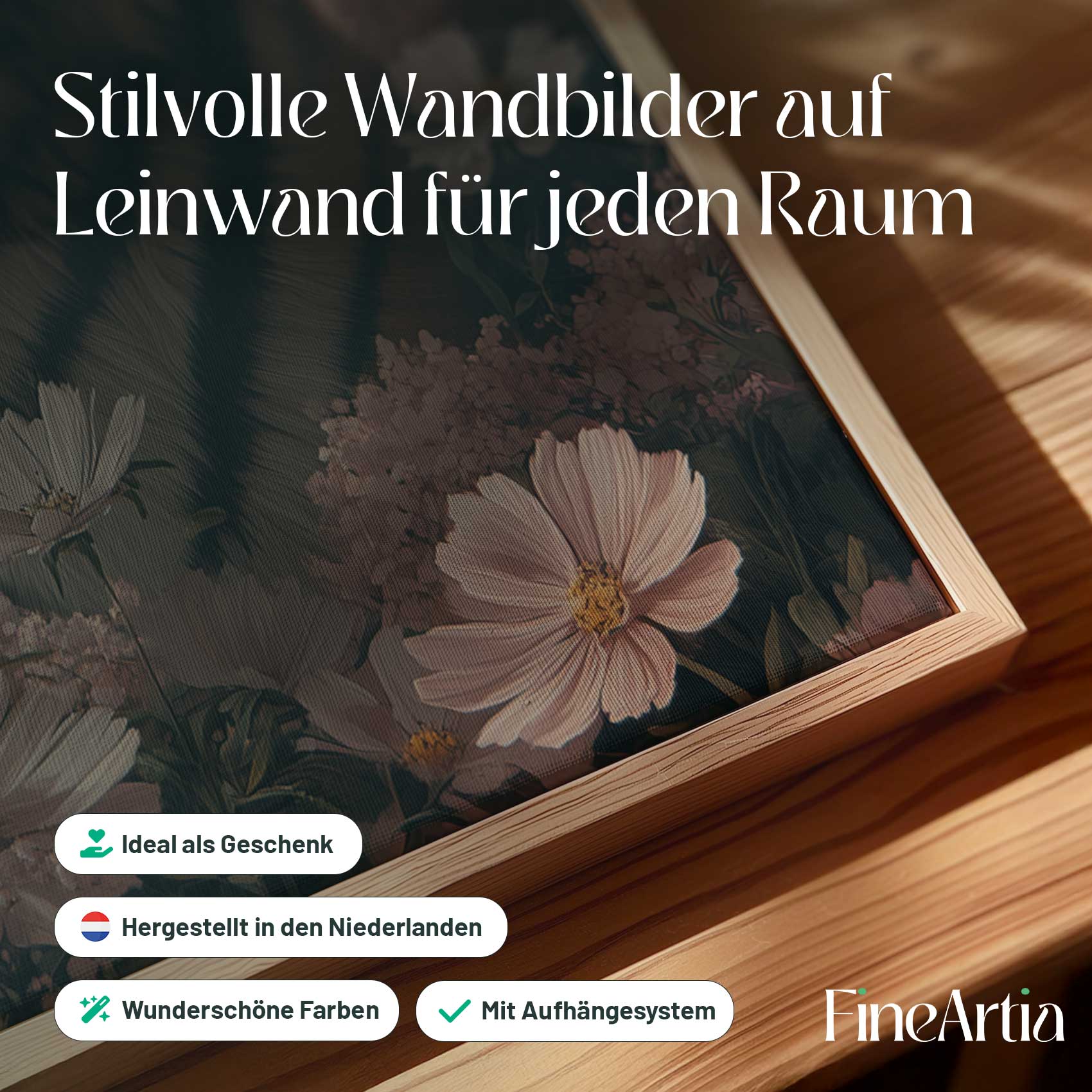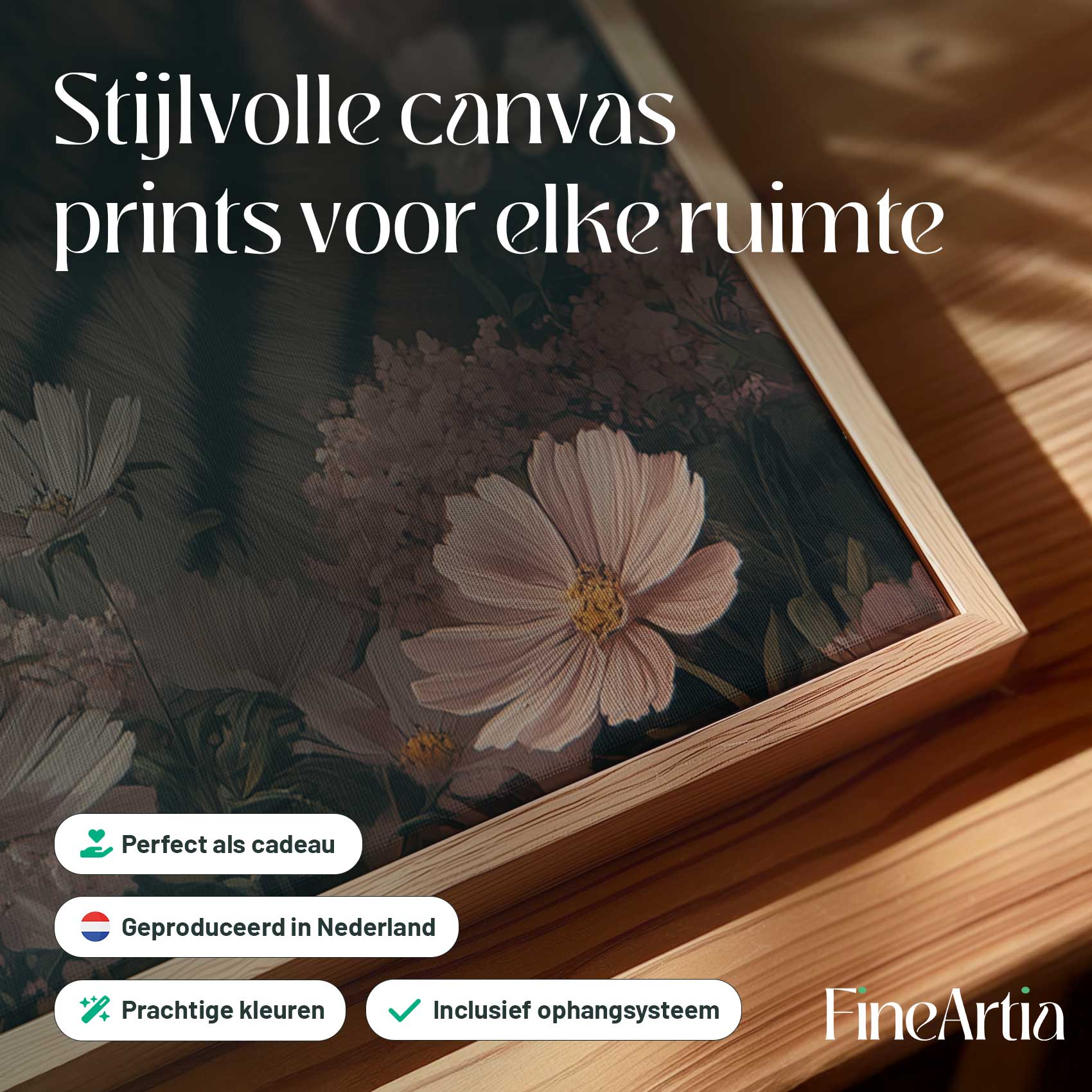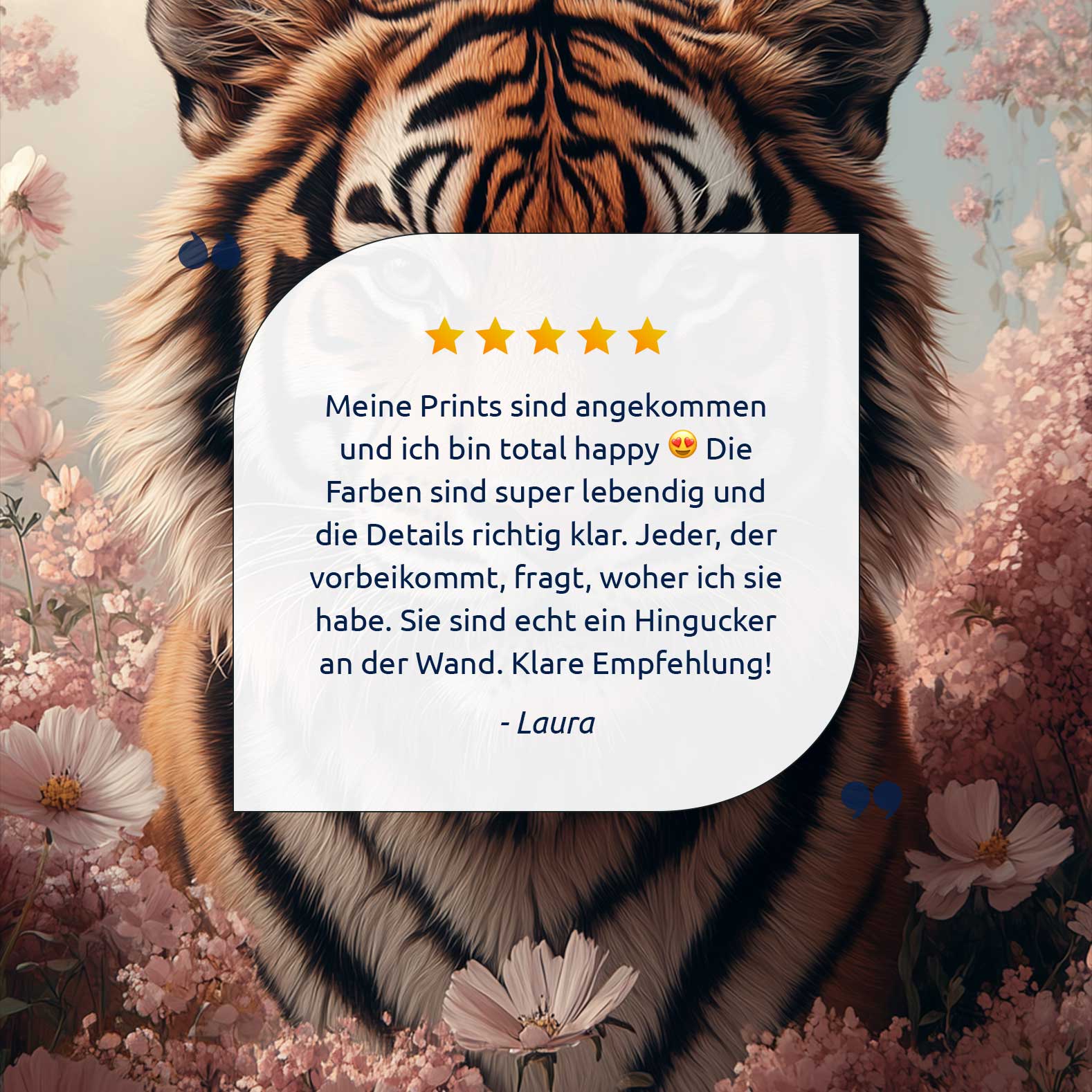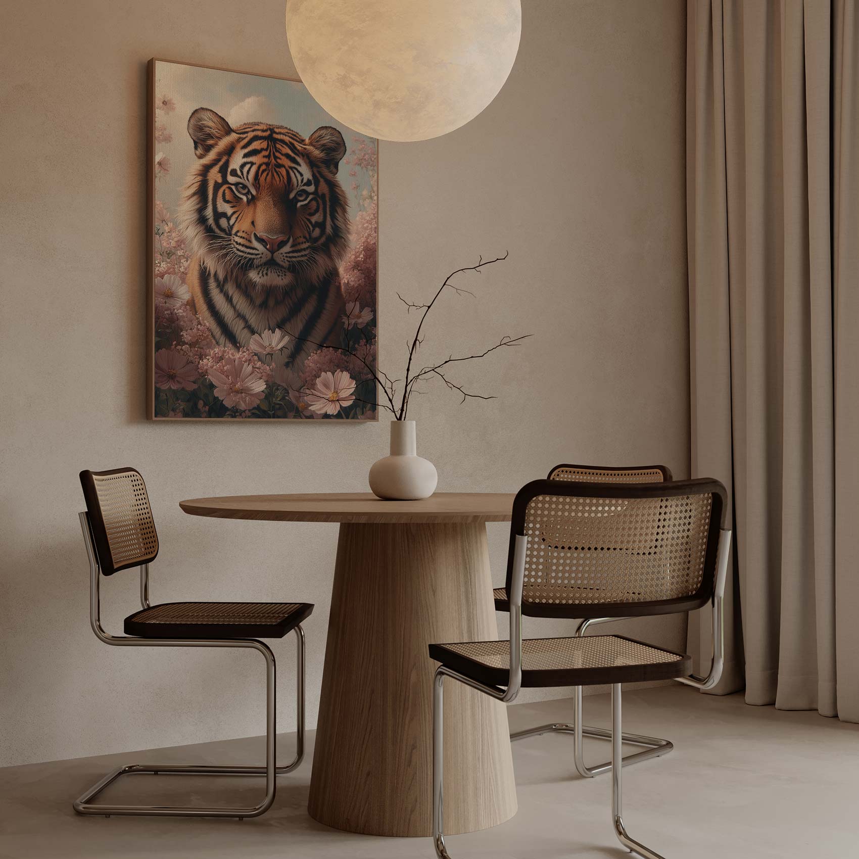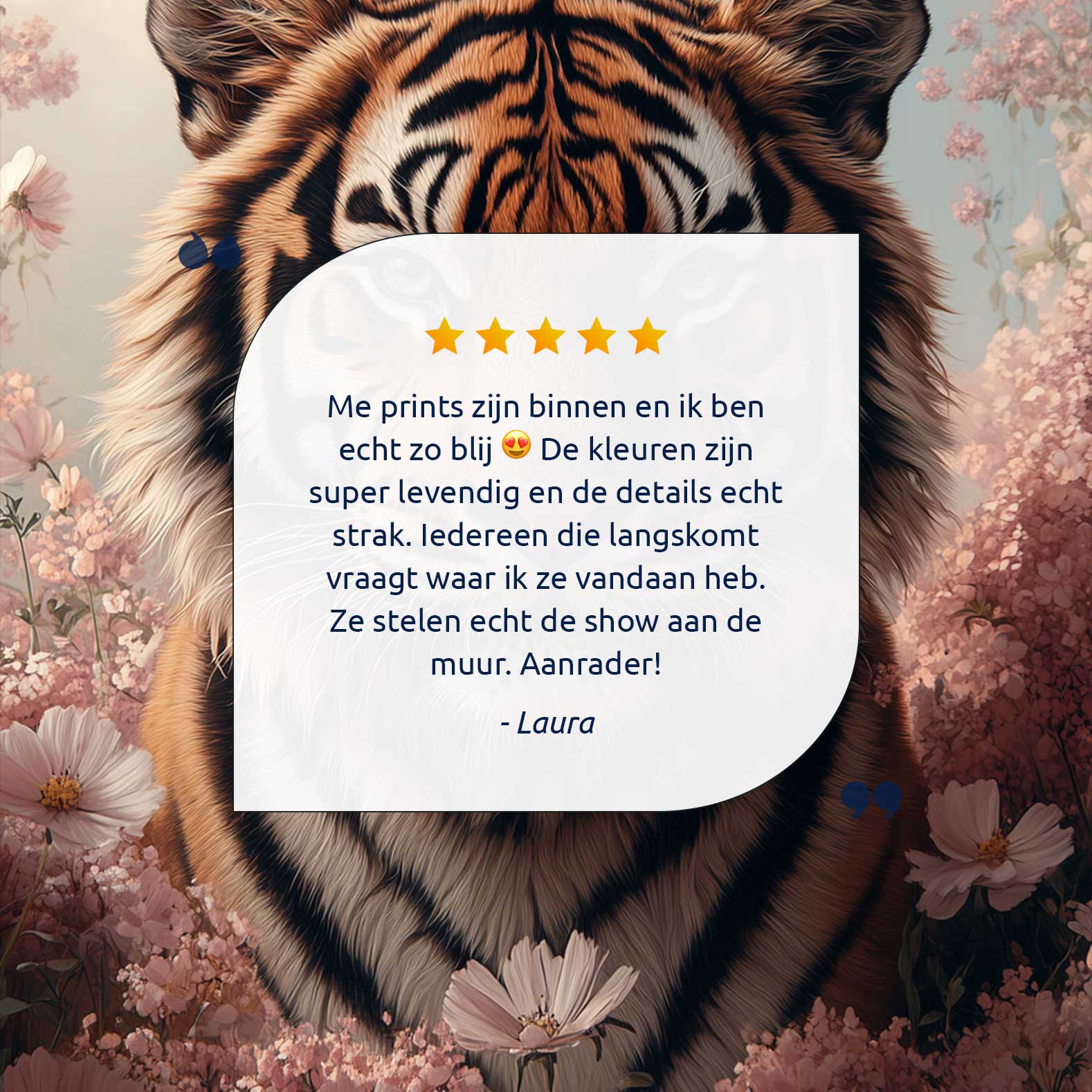 Terug naar collectie Canvas Tijger tussen roze bloemen