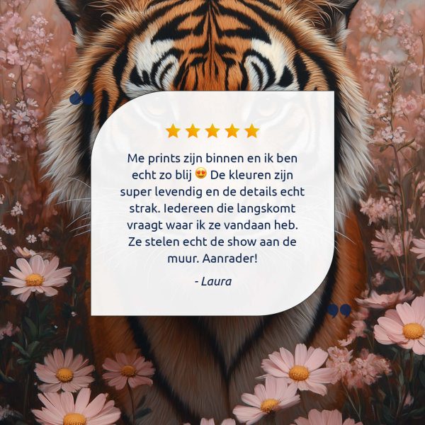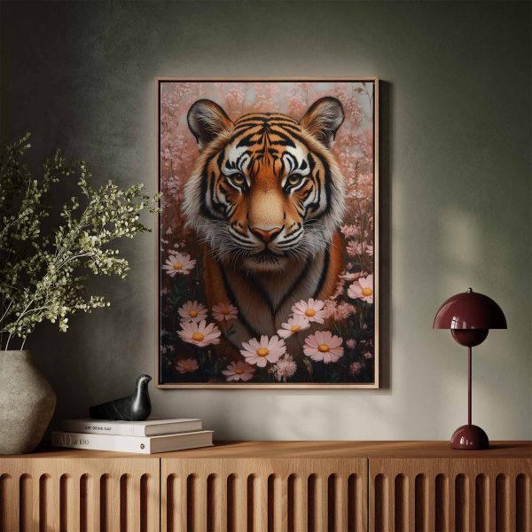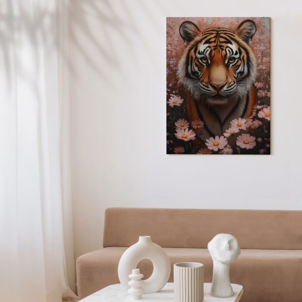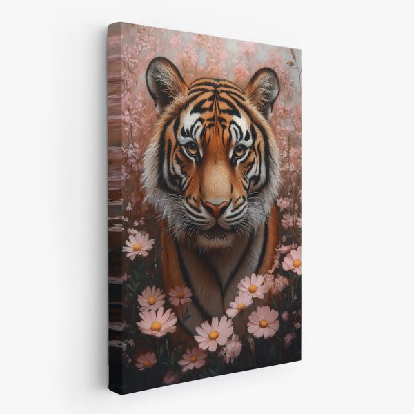 Terug naar collectie Canvas Tijger tussen roze bloemen