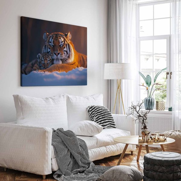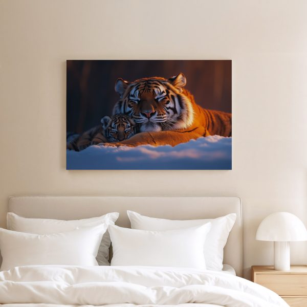 Tijgermoeder en welp in sneeuw